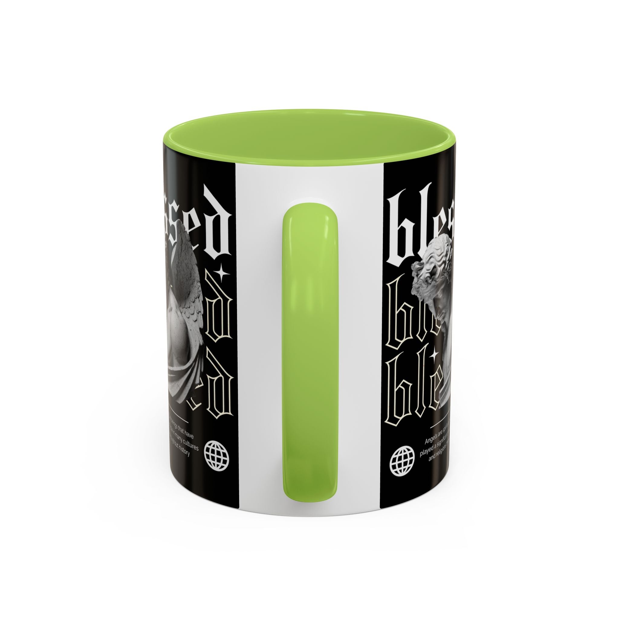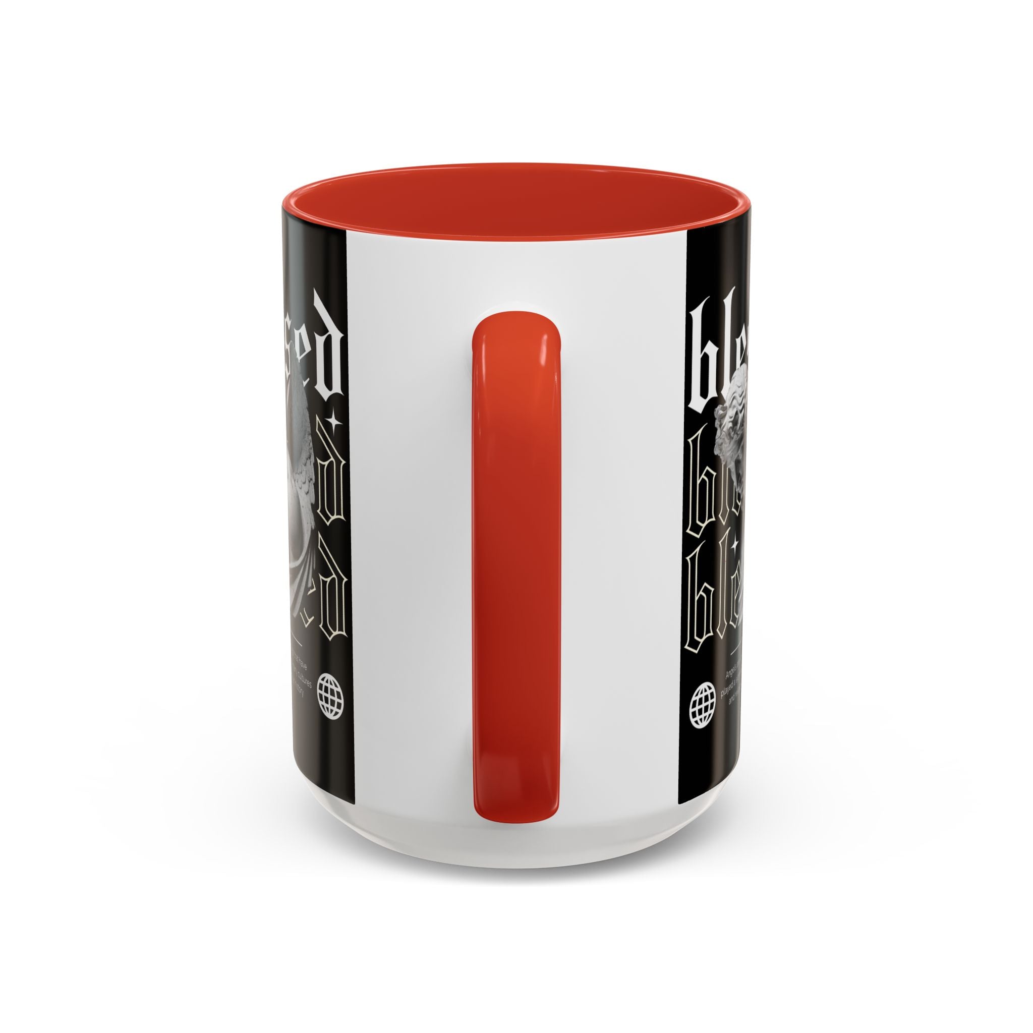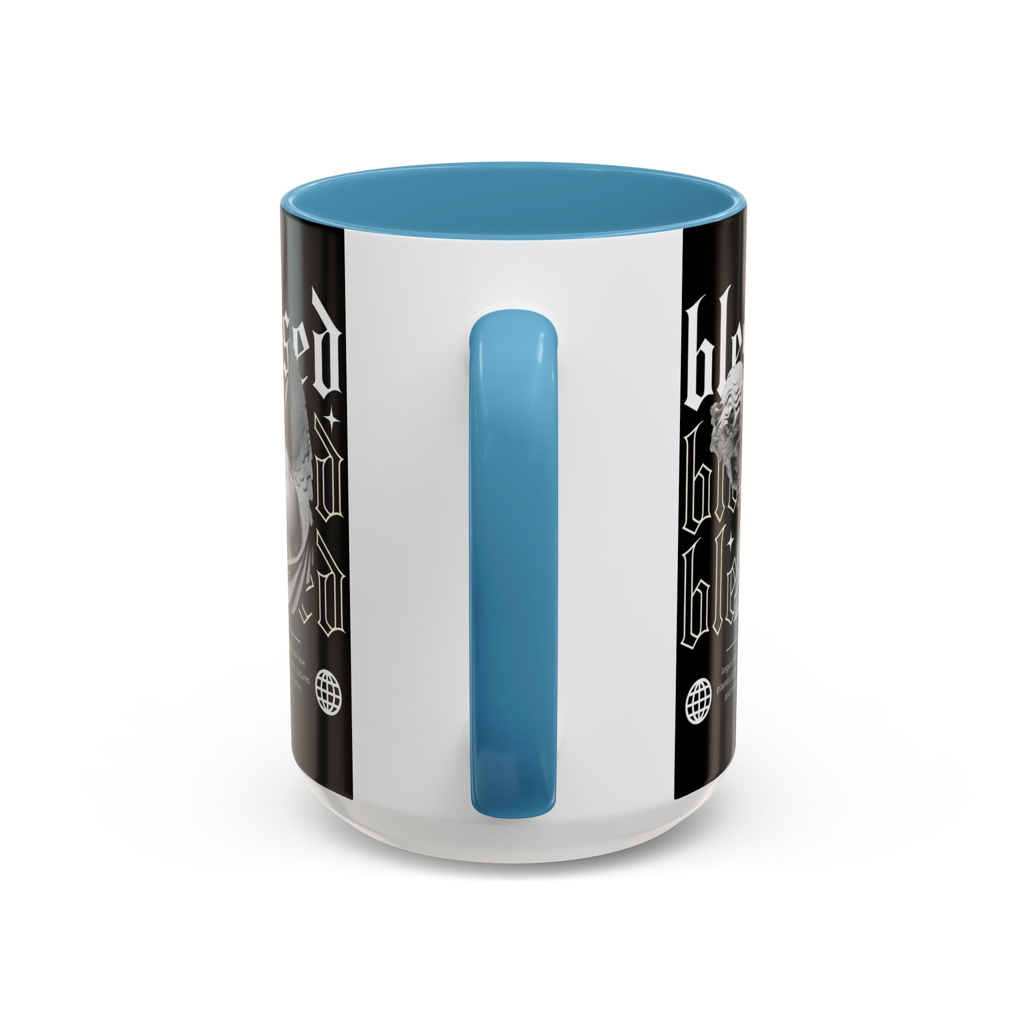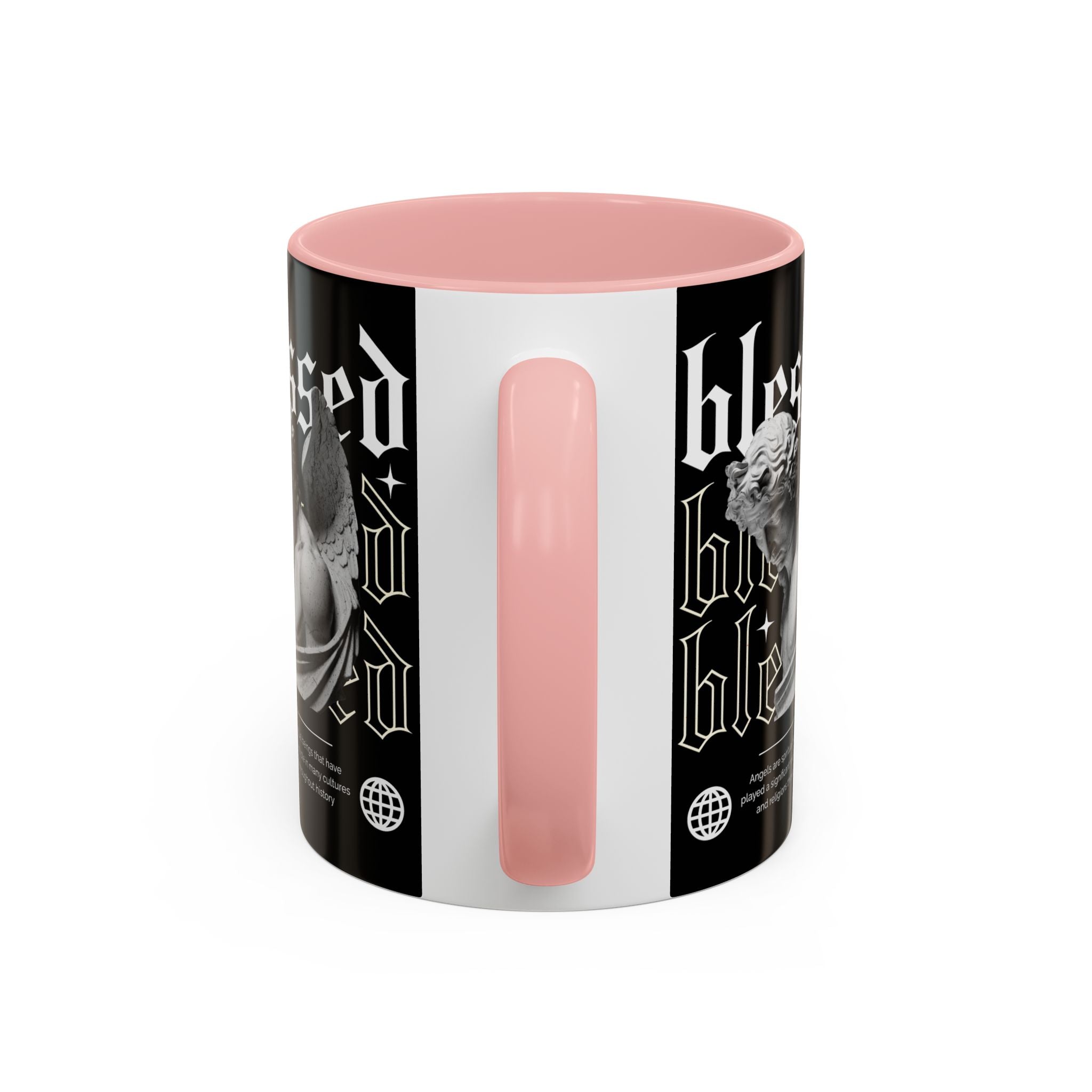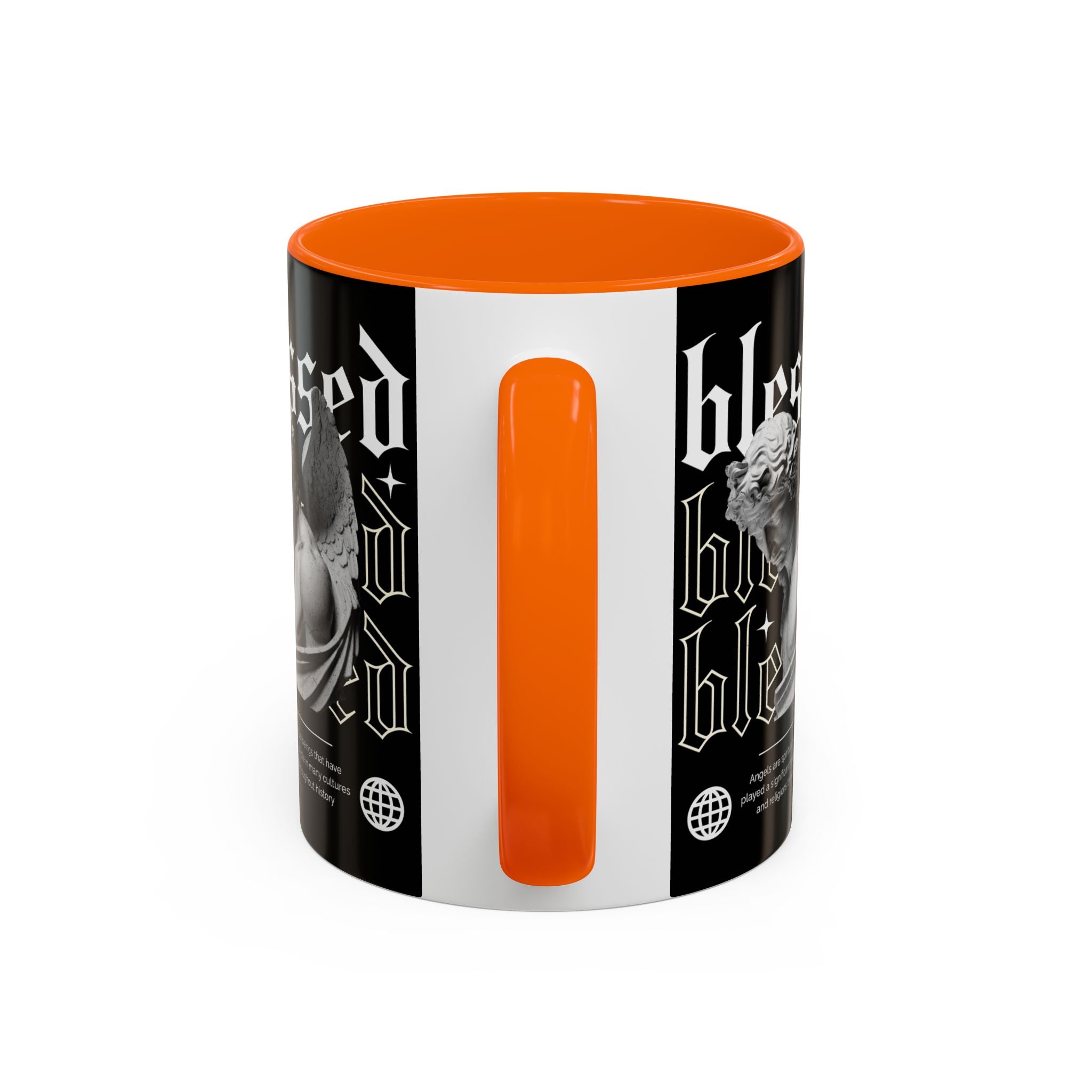 Start your day with more than just coffee—start it with faith, art, and bold design. The Blessed Accent Coffee Mug features a sculpted angel statue graphic paired with gothic “Blessed” lettering, turning your daily drinkware into a statement of spirituality and strength.