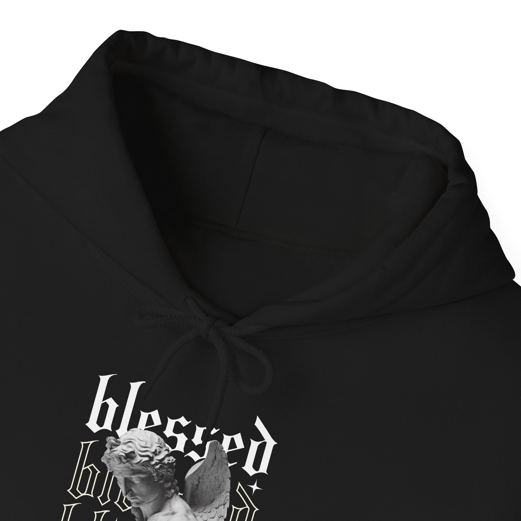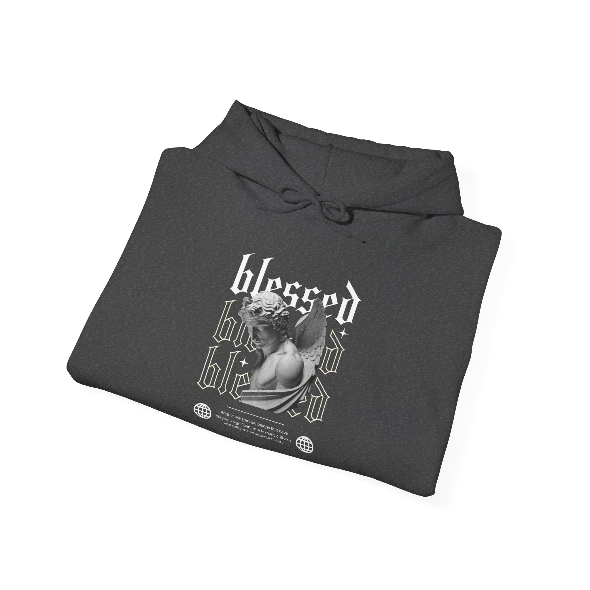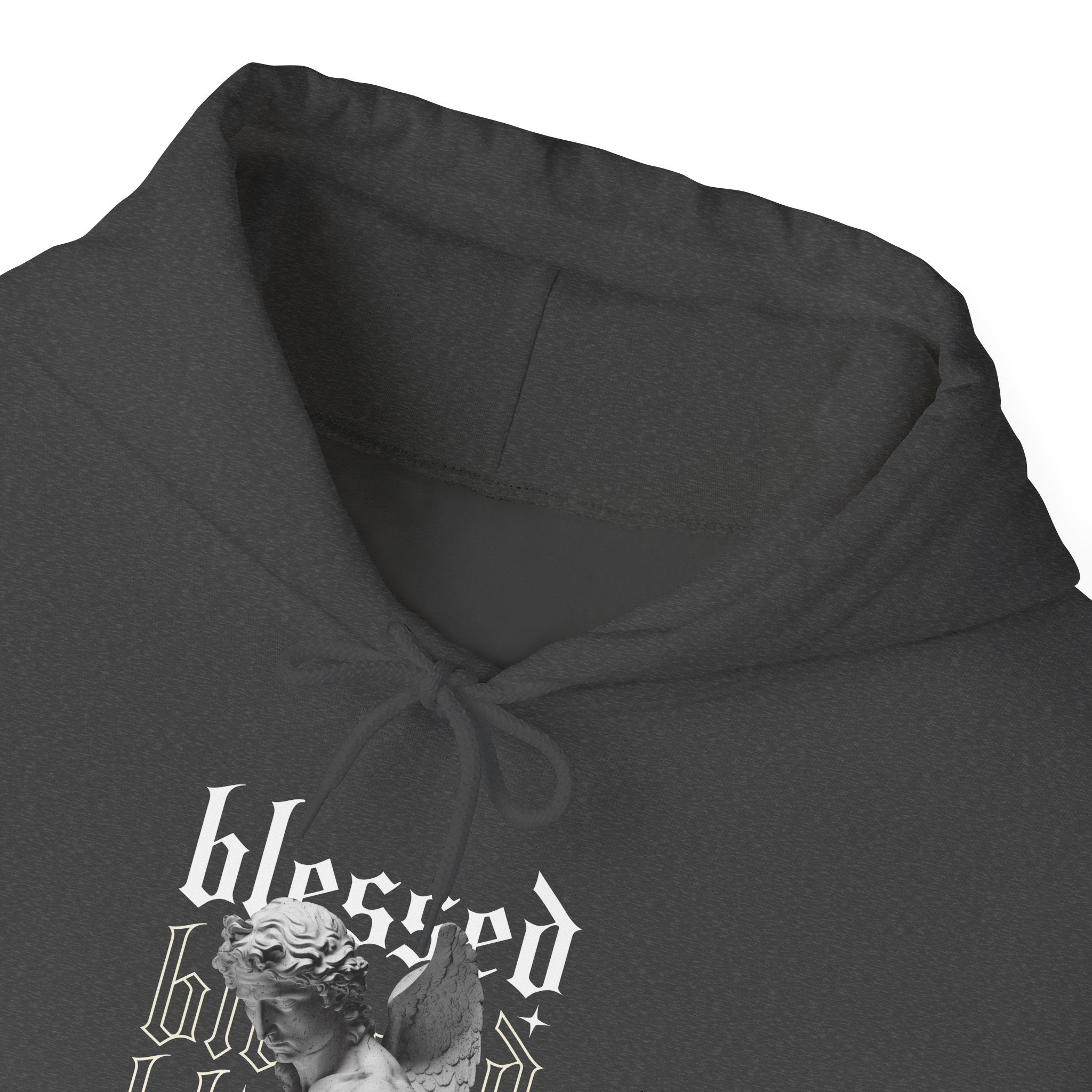 The Blessed Unisex Heavy Blend™ Hooded Sweatshirt combines faith, gothic artistry, and modern streetwear style into one bold piece. Featuring a detailed angel statue graphic with gothic “Blessed” lettering, this hoodie is a symbol of spirituality and strength—designed for those who wear their beliefs with pride and style.