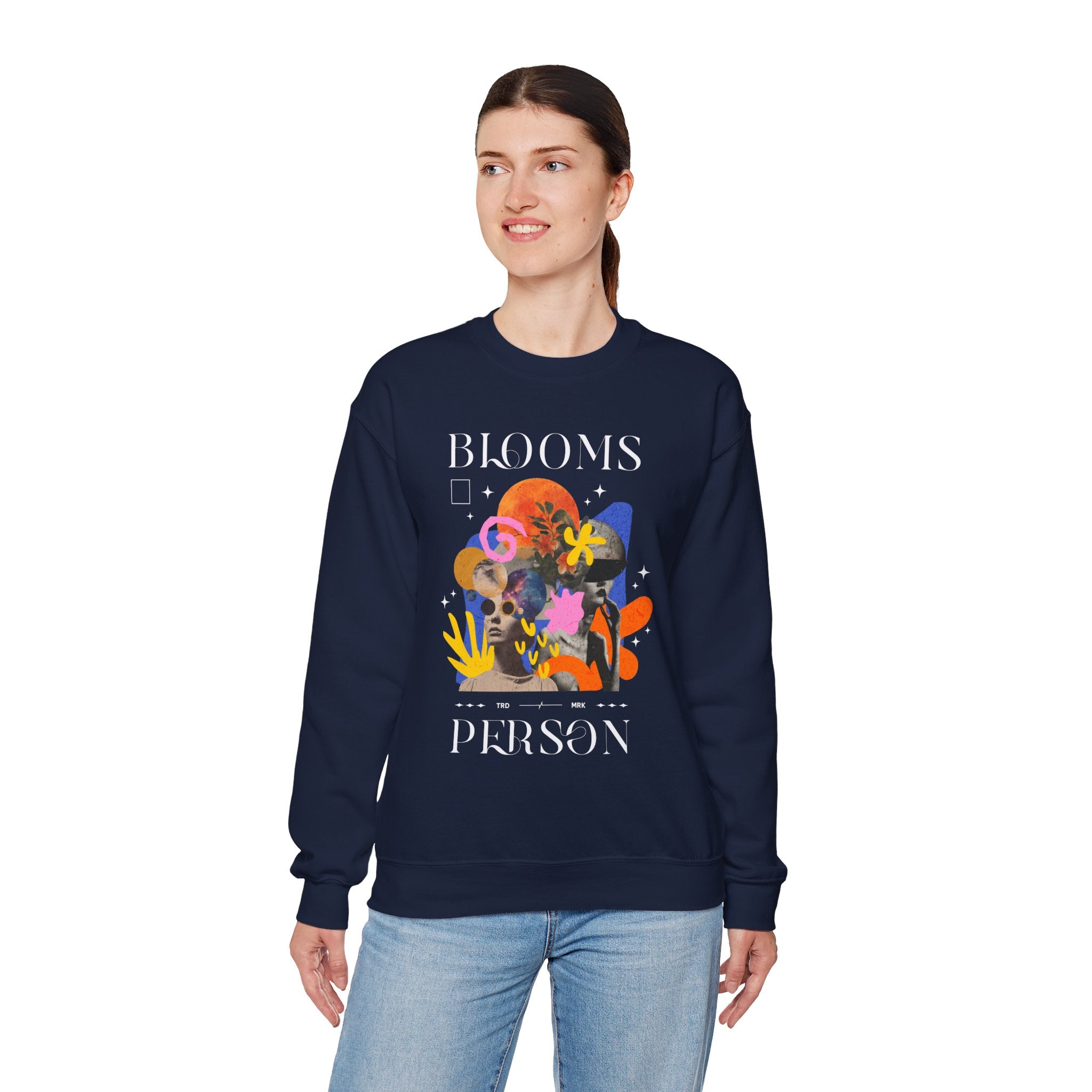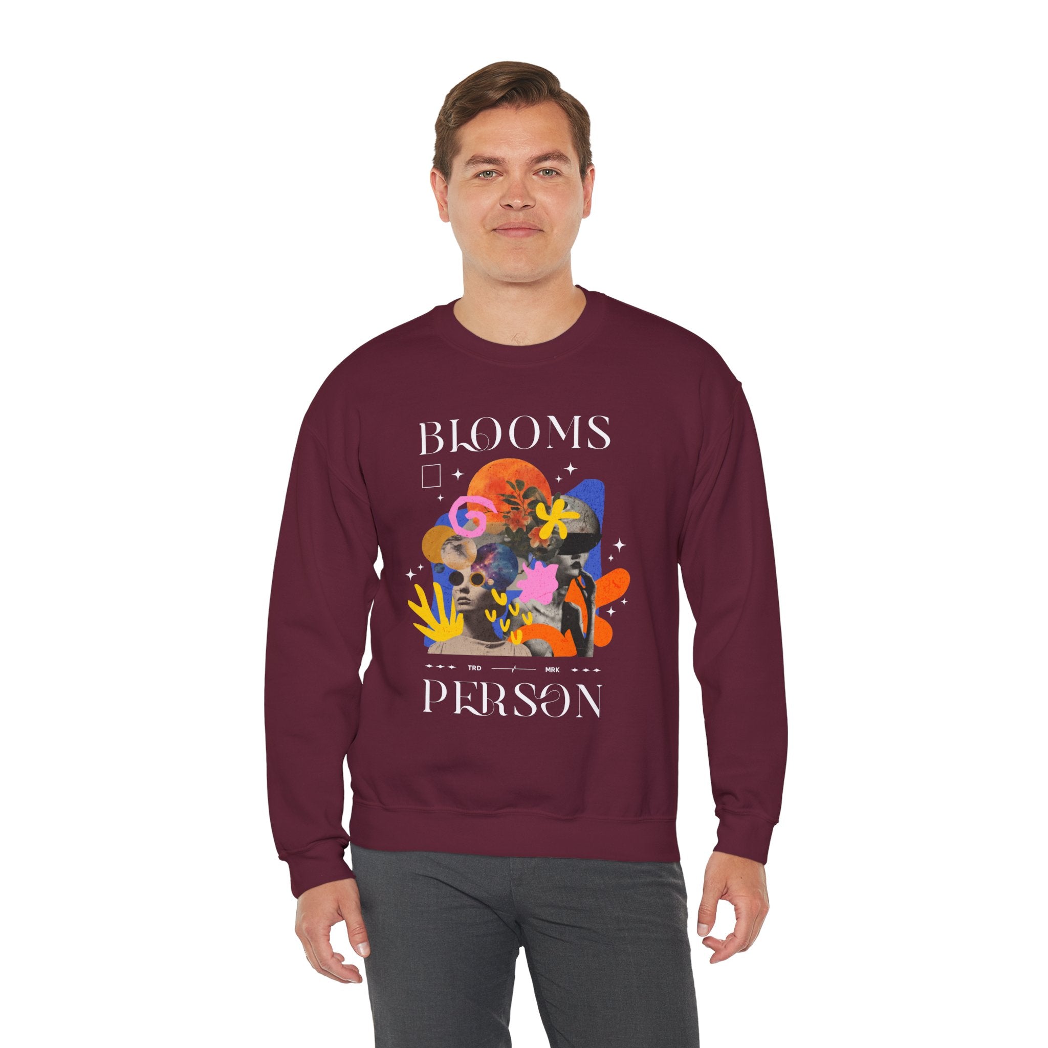 The Blooms Person Unisex Heavy Blend™ Crewneck Sweatshirt is a bold celebration of growth, imagination, and individuality. With its vivid collage of floral and abstract shapes blooming from human figures, this pullover captures the creative explosion of ideas, self-expression, and the beauty of blooming into your truest self.