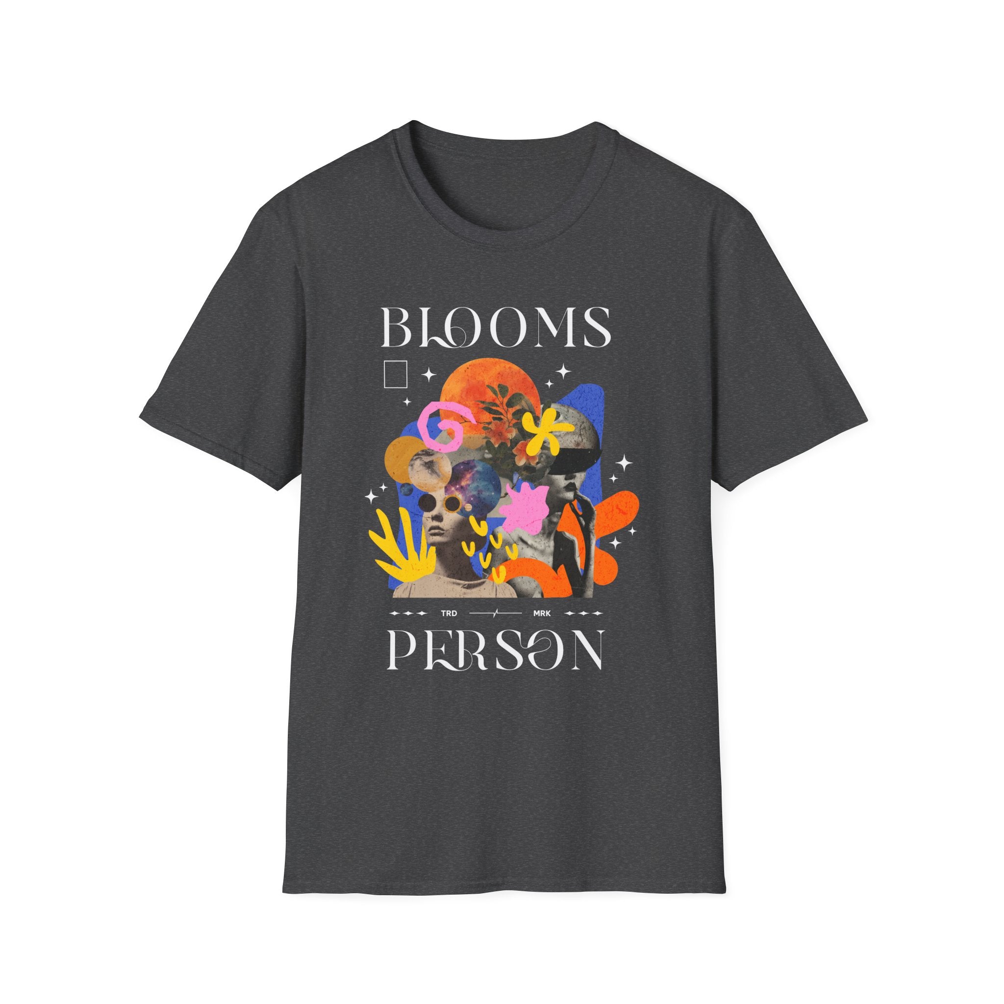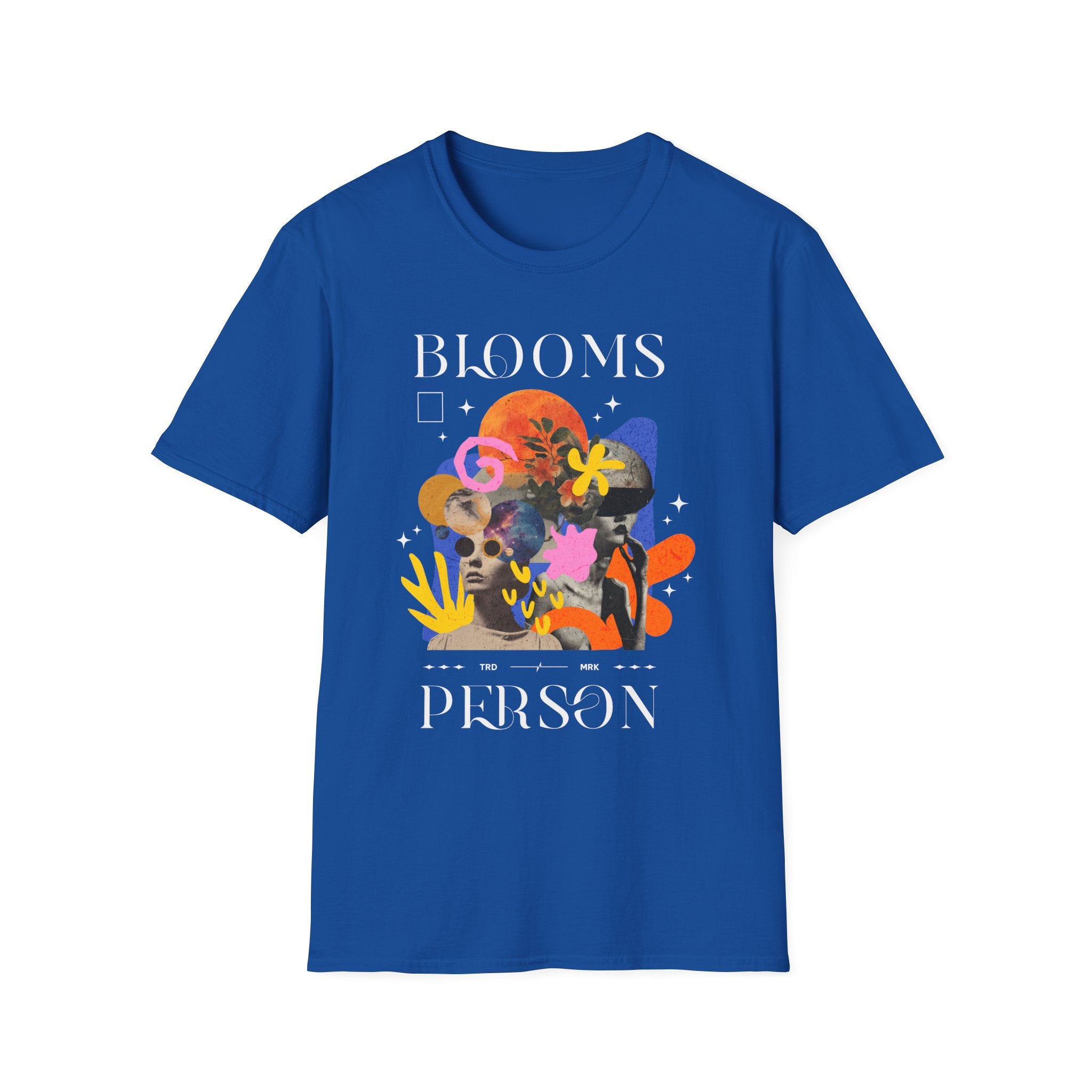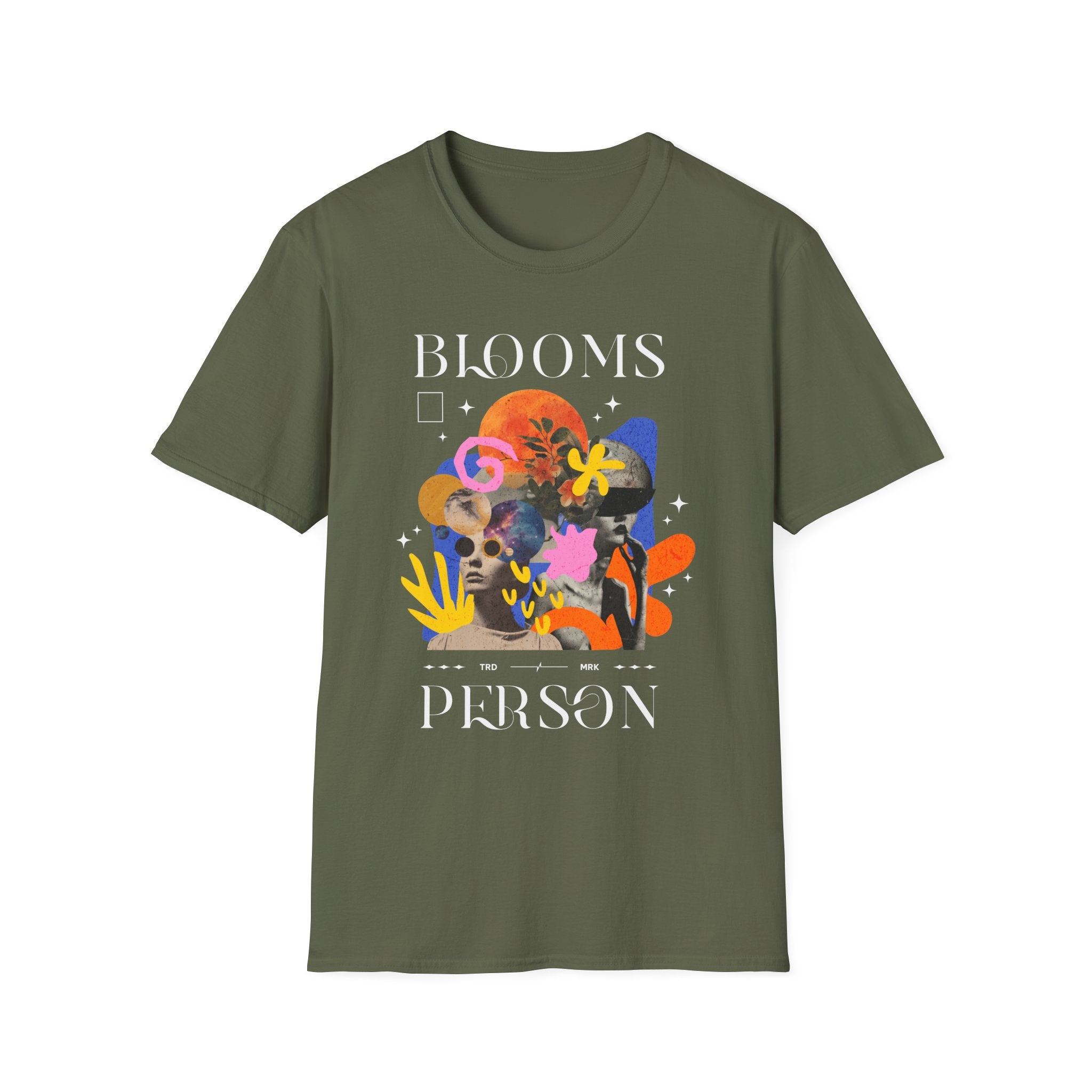 The Blooms Person Unisex Softstyle T-Shirt celebrates expression, individuality, and imagination. Featuring a vibrant collage of floral and abstract shapes blooming from human figures, this design represents the growth of ideas, inner creativity, and colorful energy of the human spirit.