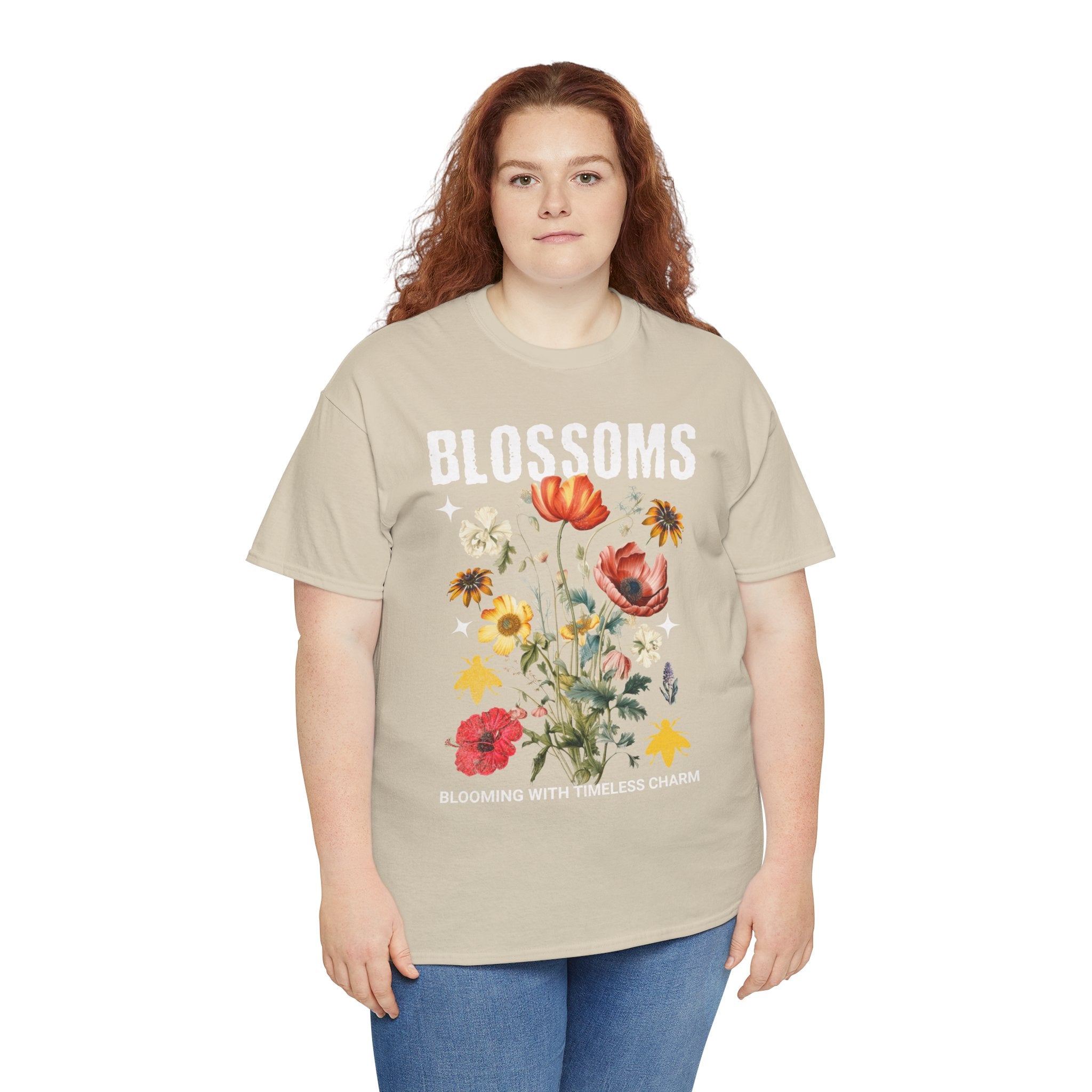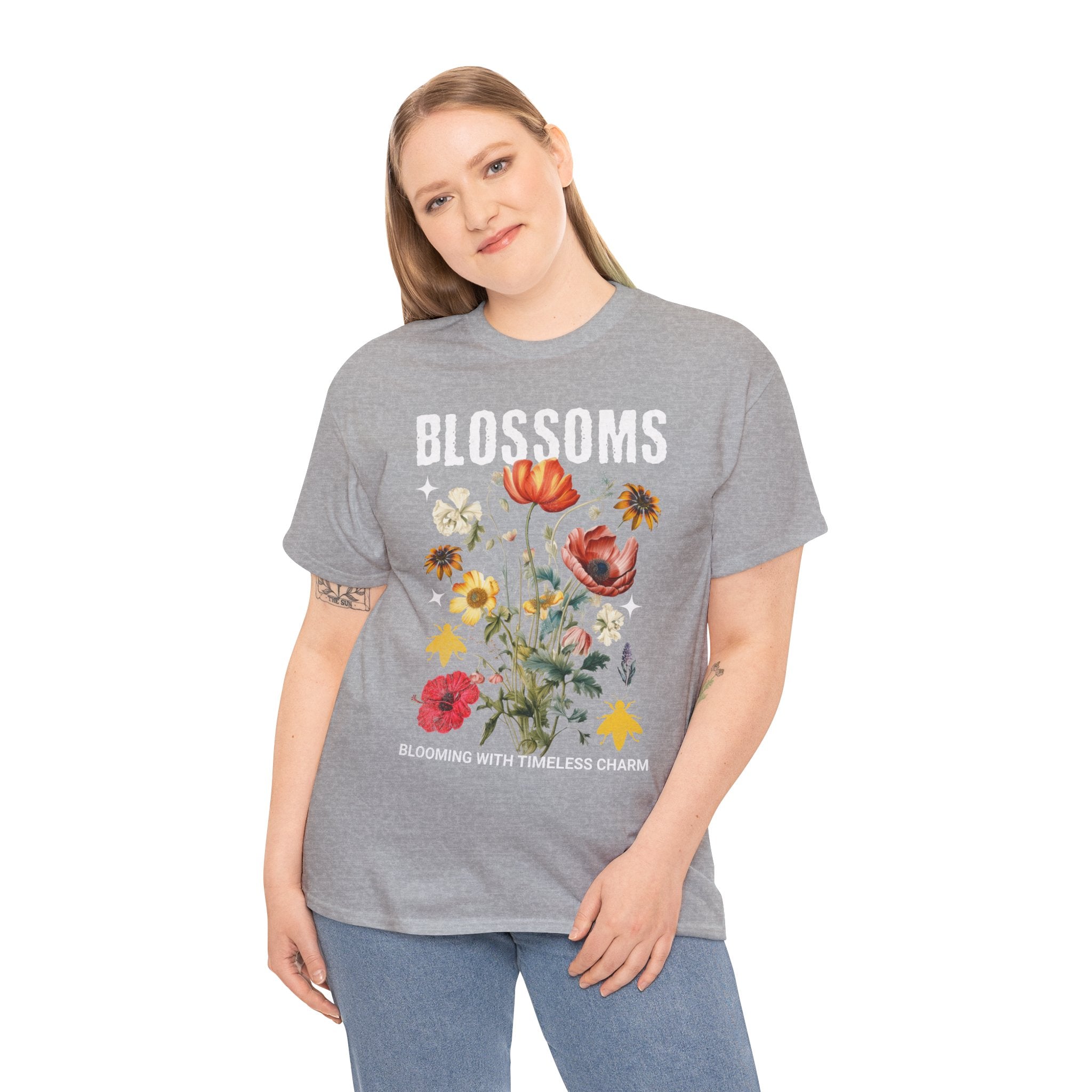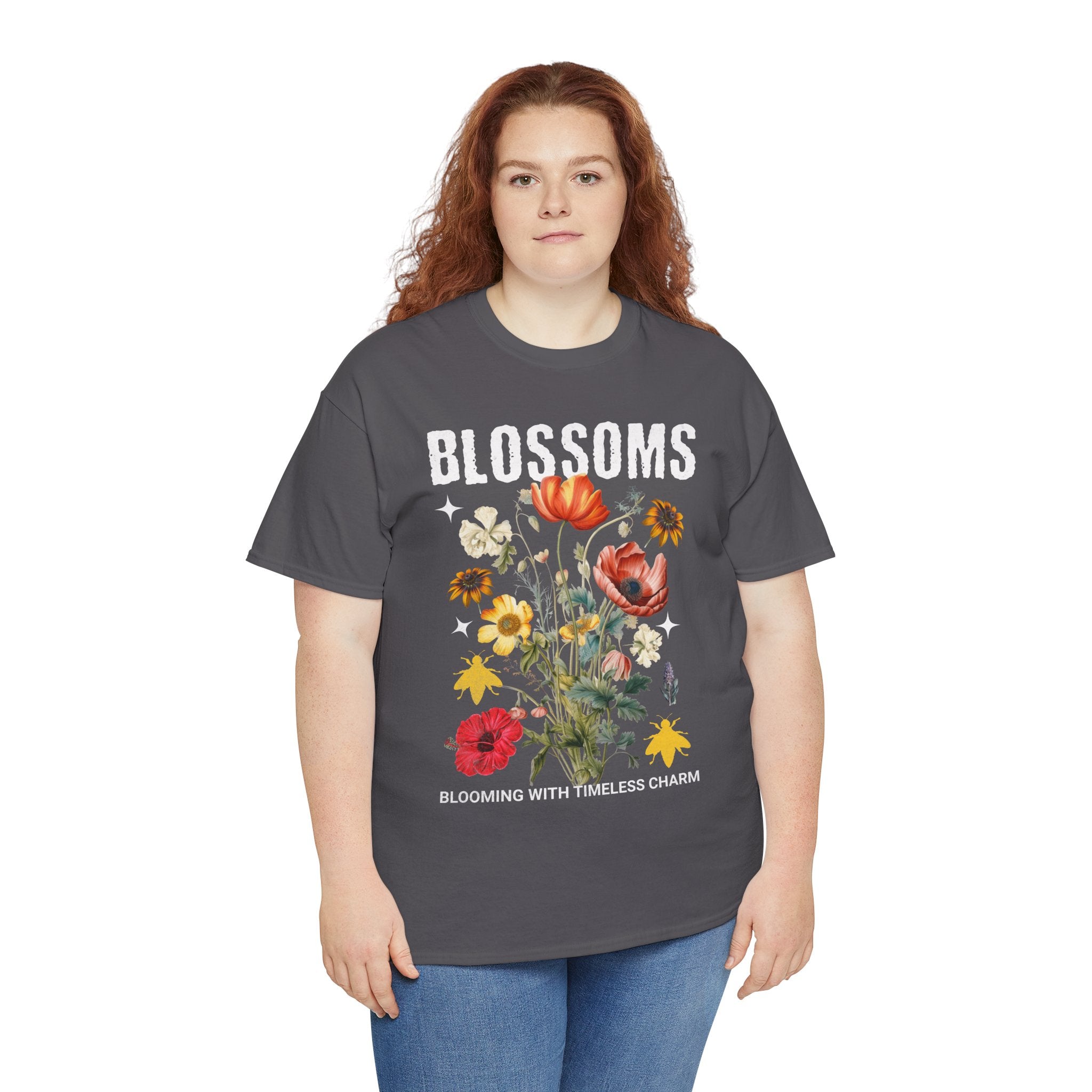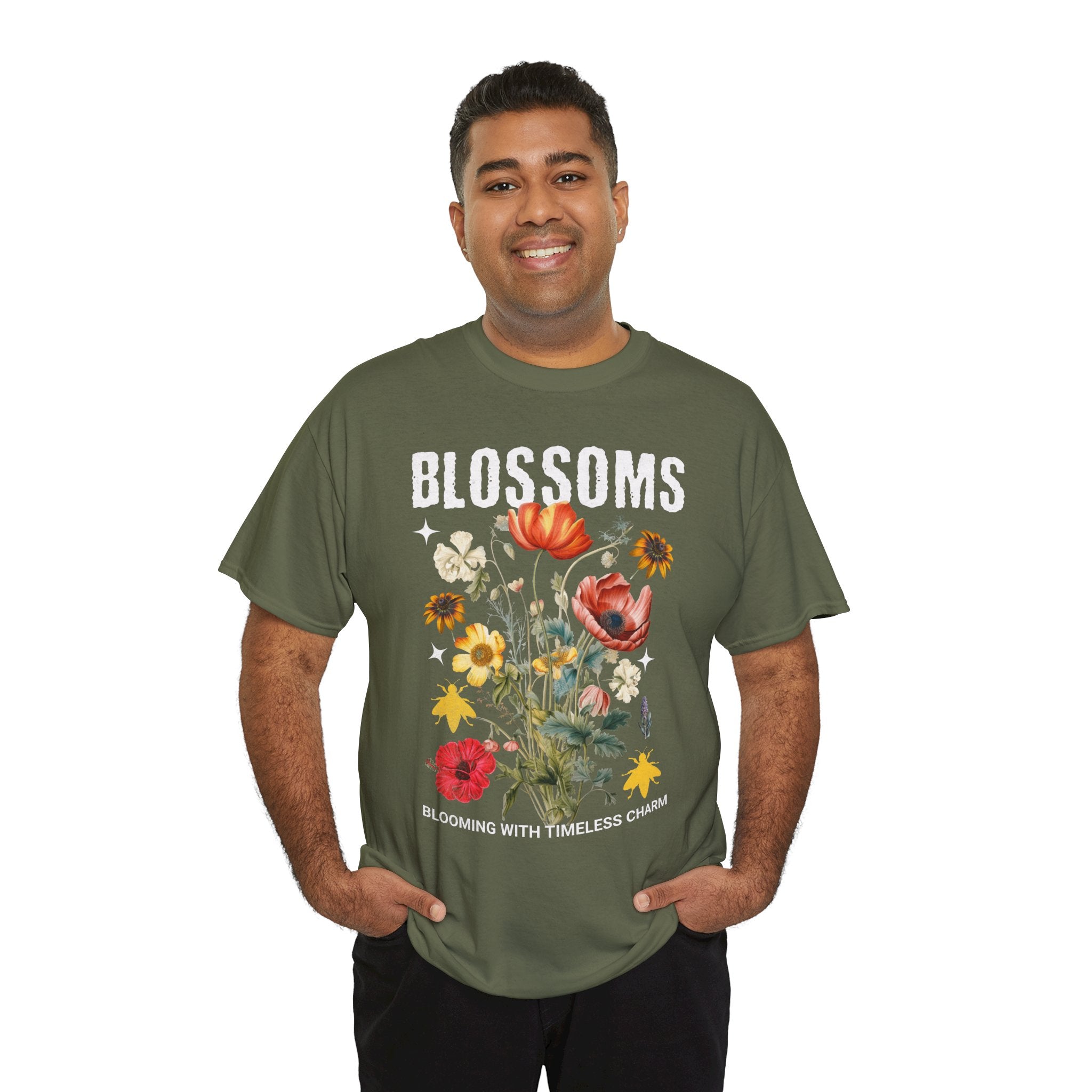 Celebrate the timeless beauty of nature with the Blossoms Unisex Heavy Cotton Tee, a stunning floral design that symbolizes growth, elegance, and resilience. With the message “Blooming With Timeless Charm,” this tee brings fresh energy and sophistication to your streetwear collection.