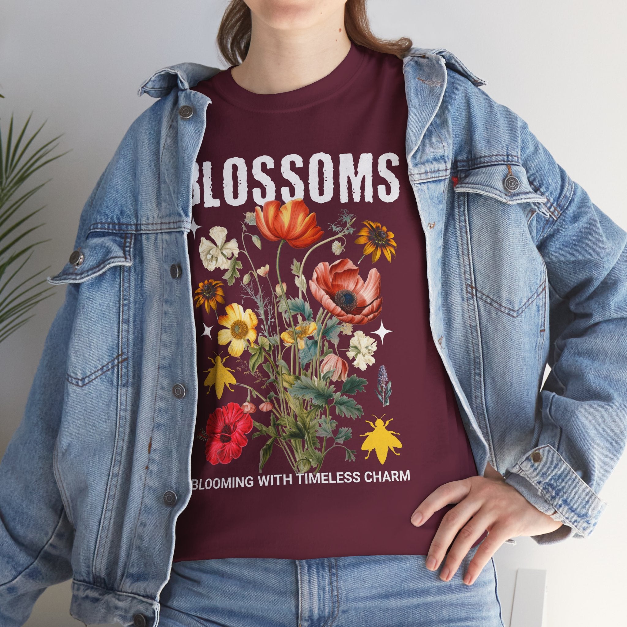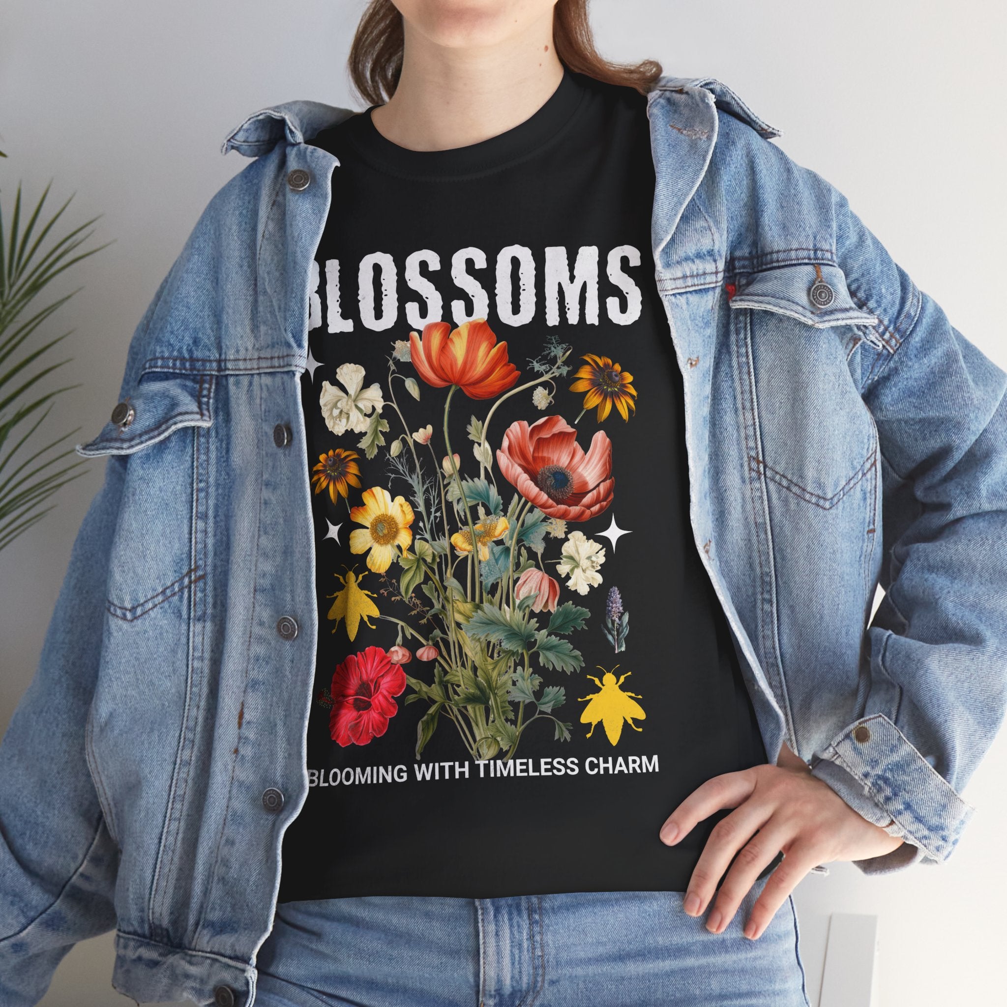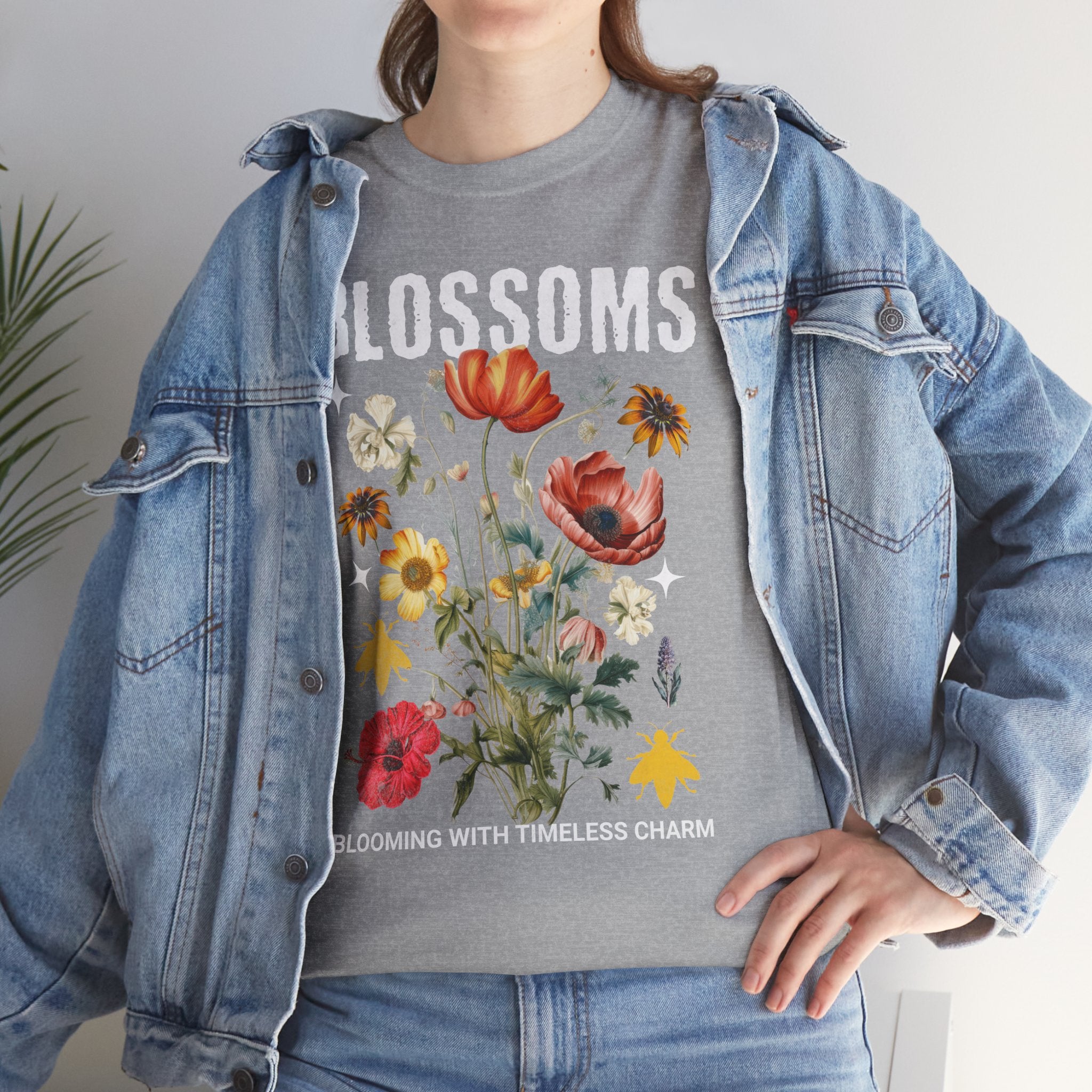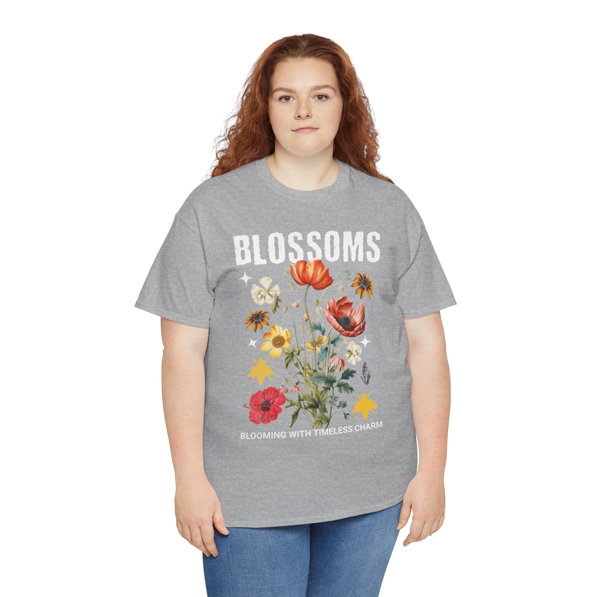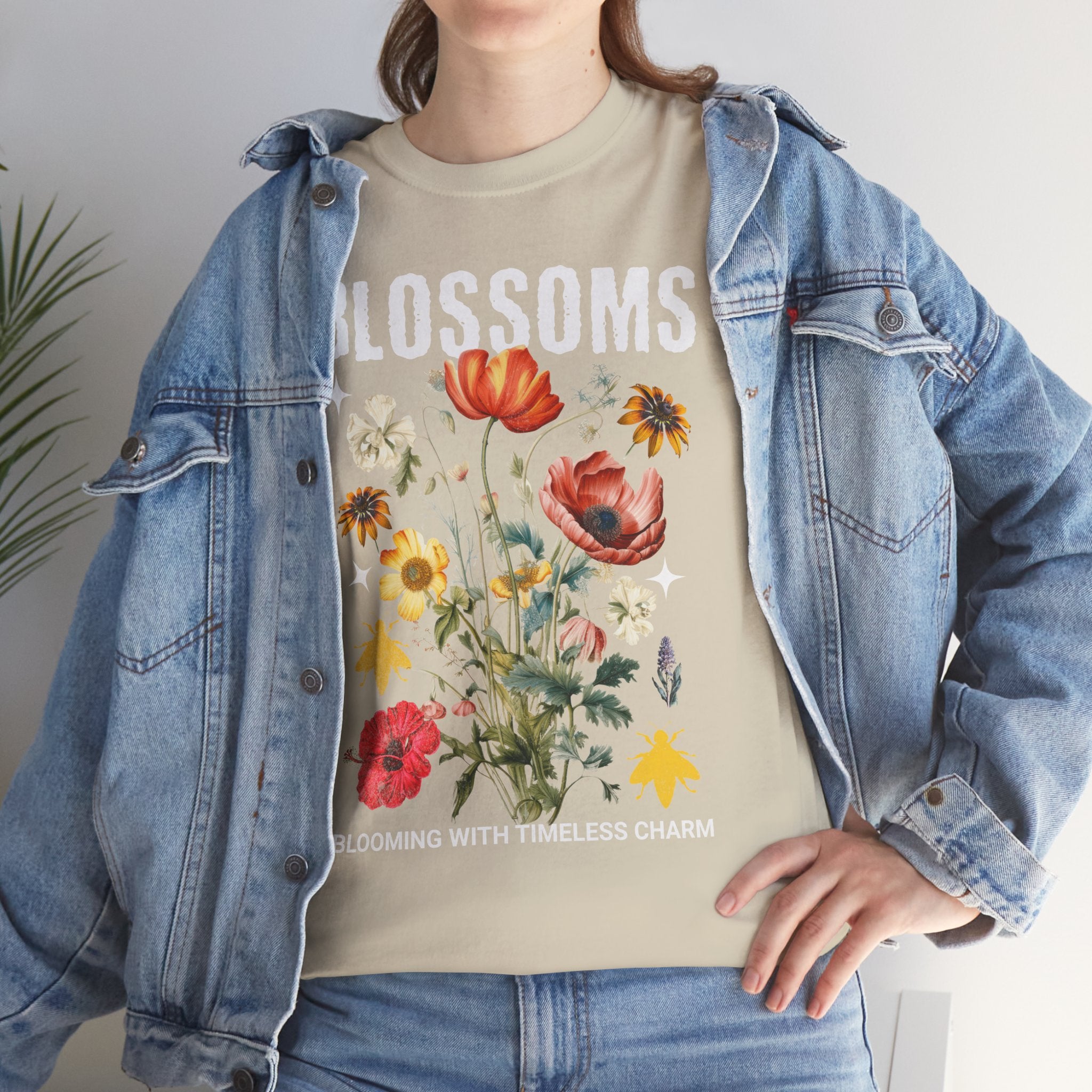 Celebrate the timeless beauty of nature with the Blossoms Unisex Heavy Cotton Tee, a stunning floral design that symbolizes growth, elegance, and resilience. With the message “Blooming With Timeless Charm,” this tee brings fresh energy and sophistication to your streetwear collection.