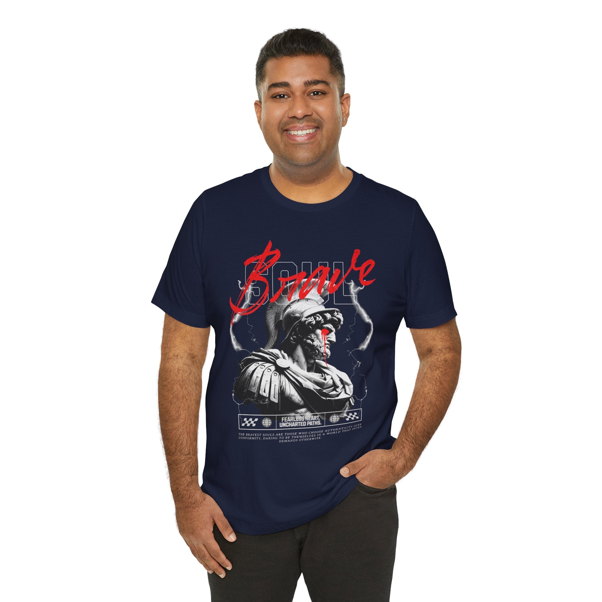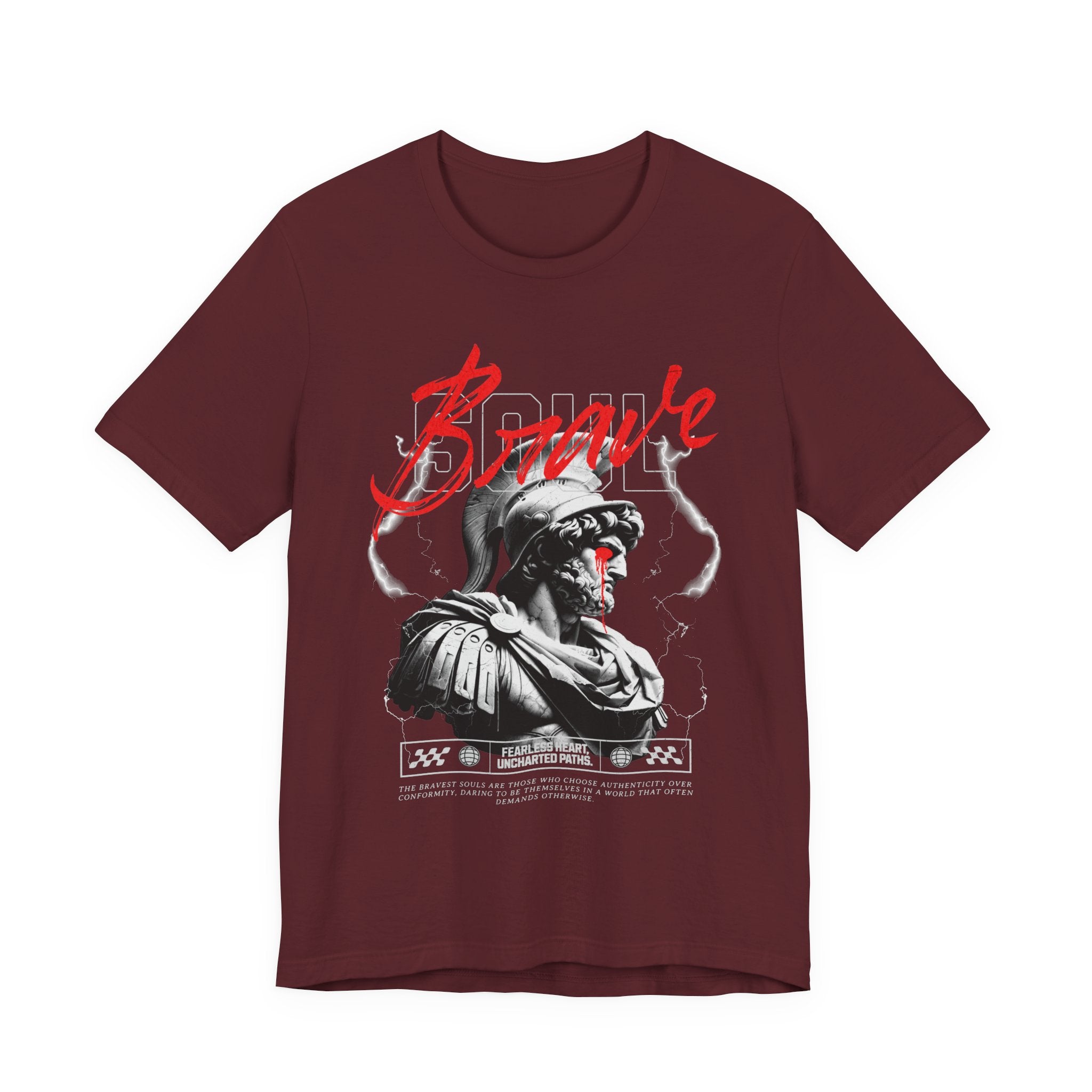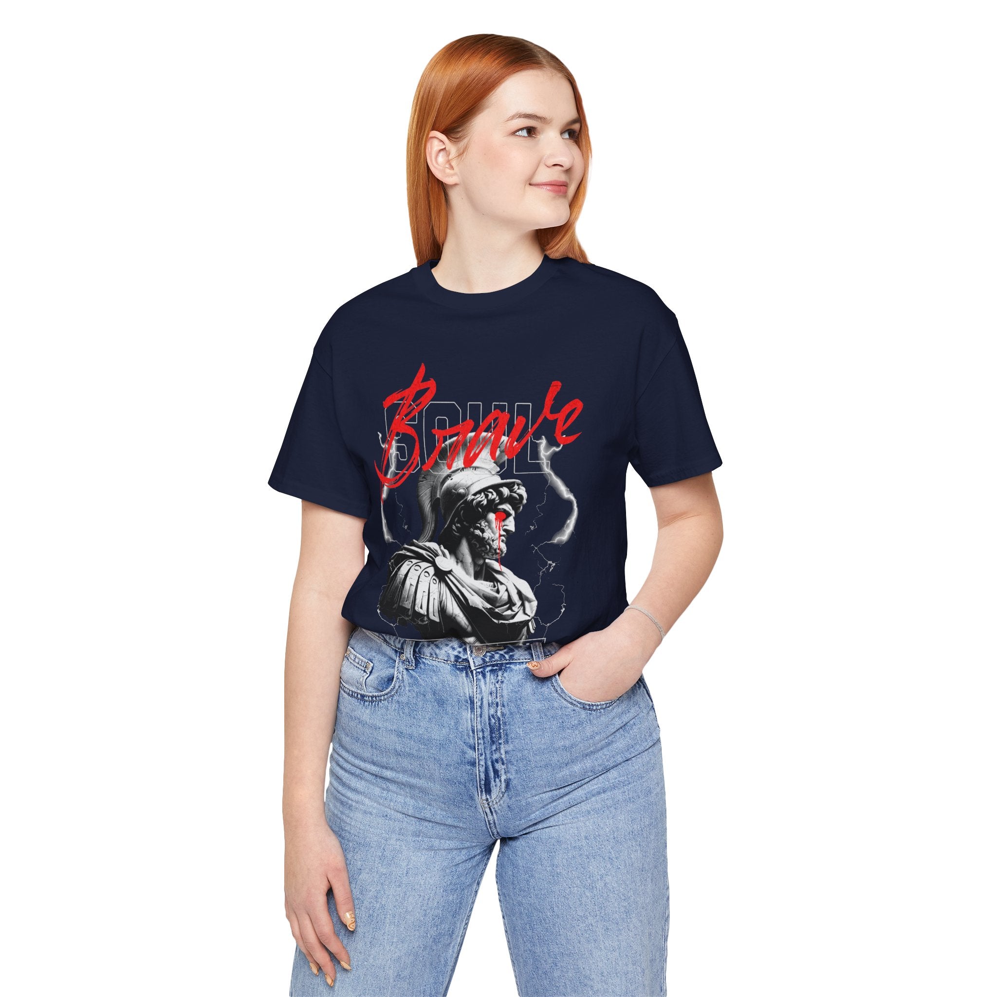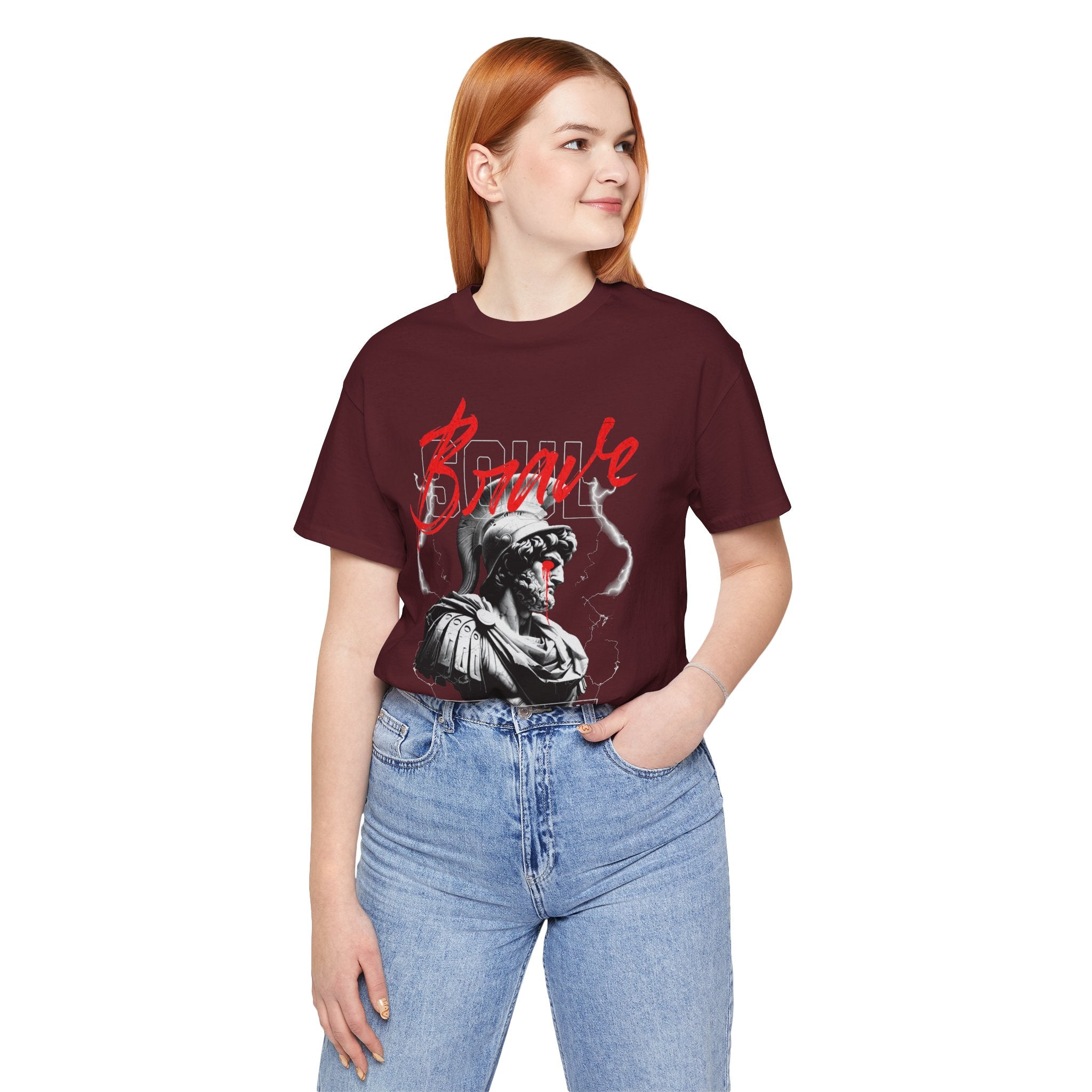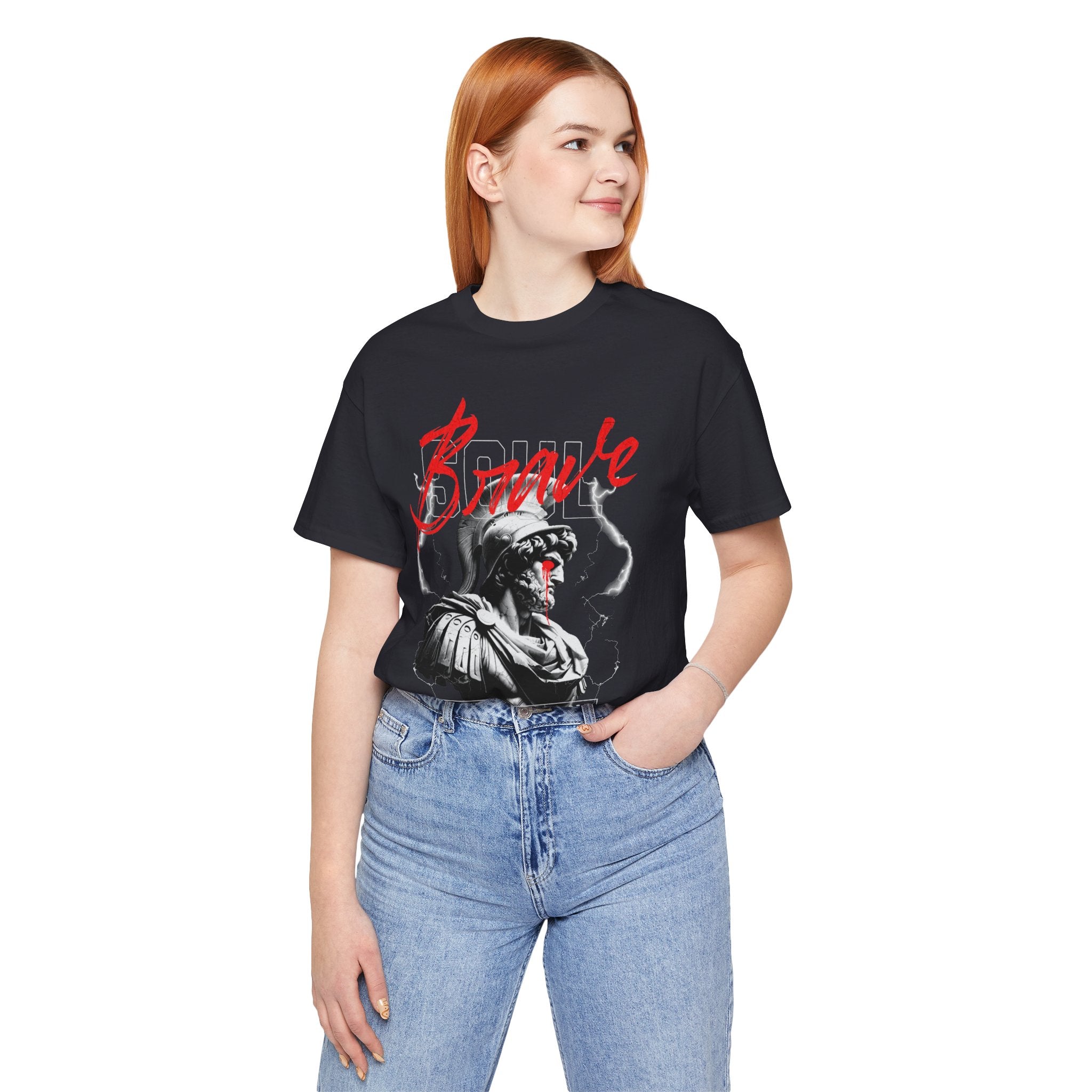 The Brave Warrior Unisex Jersey Short Sleeve Tee is more than clothing—it’s a mindset. With a bold gladiator-inspired artwork and striking red “Brave” lettering, this premium tee symbolizes fearlessness, resilience, and authenticity. Every detail of the design speaks to those who walk uncharted paths and refuse to conform.