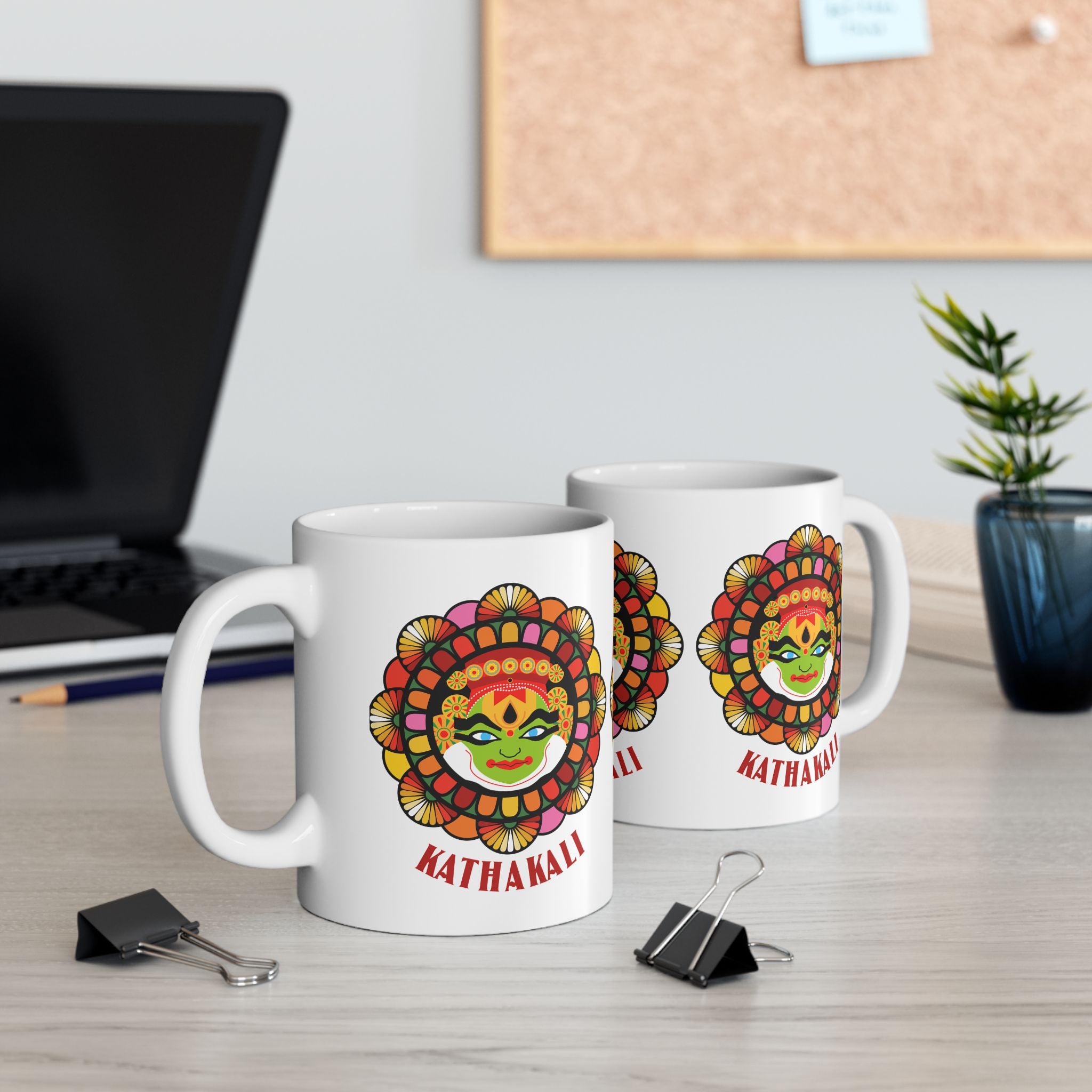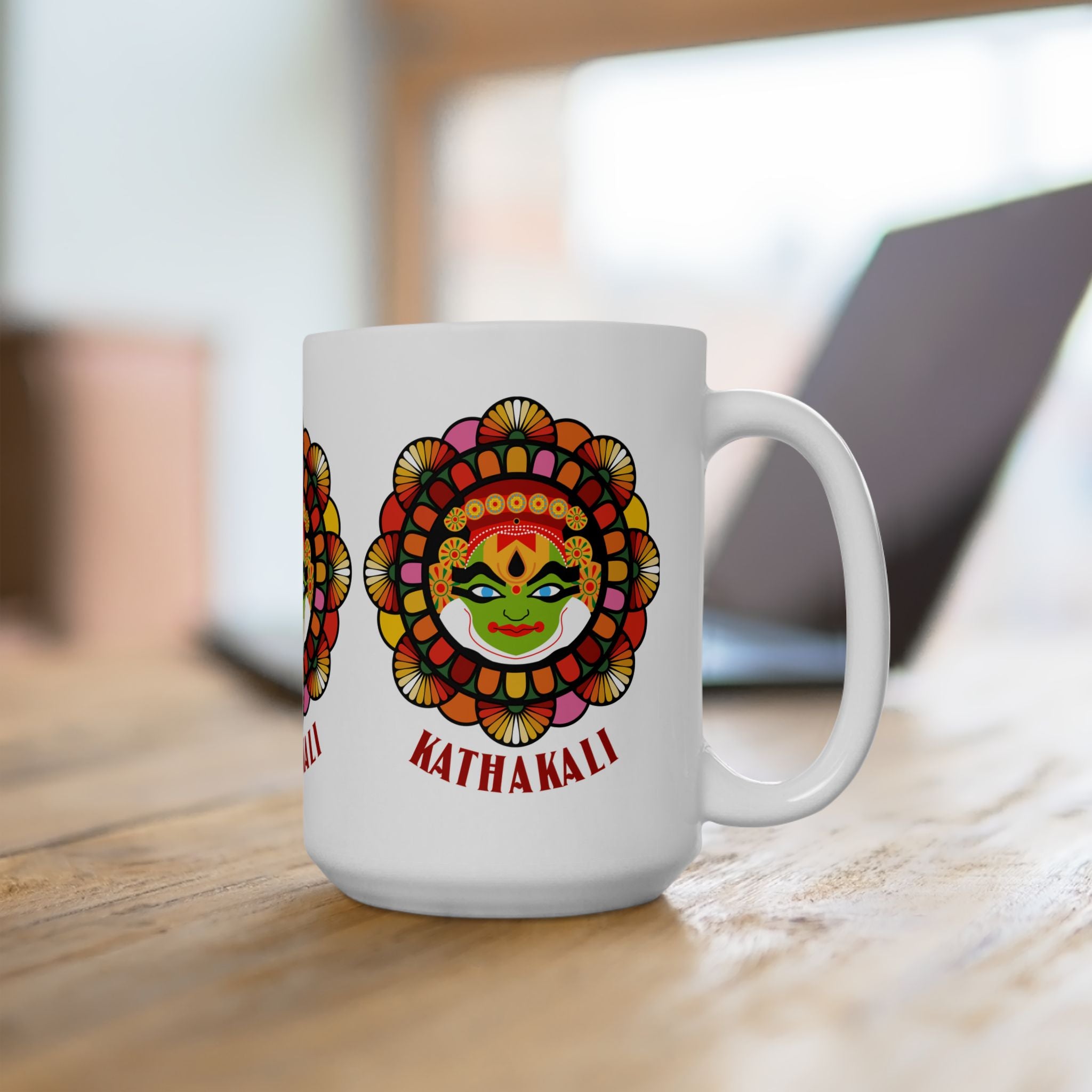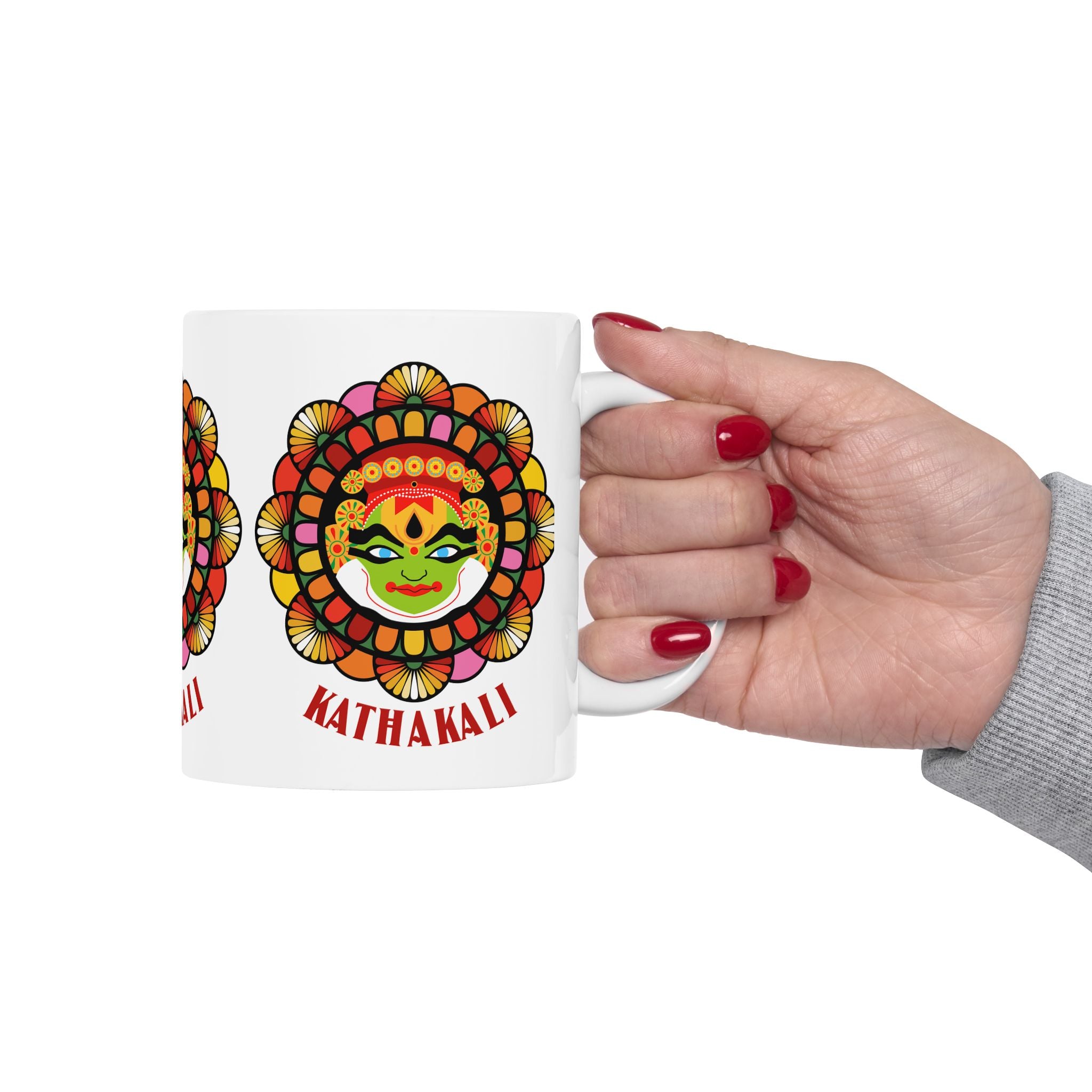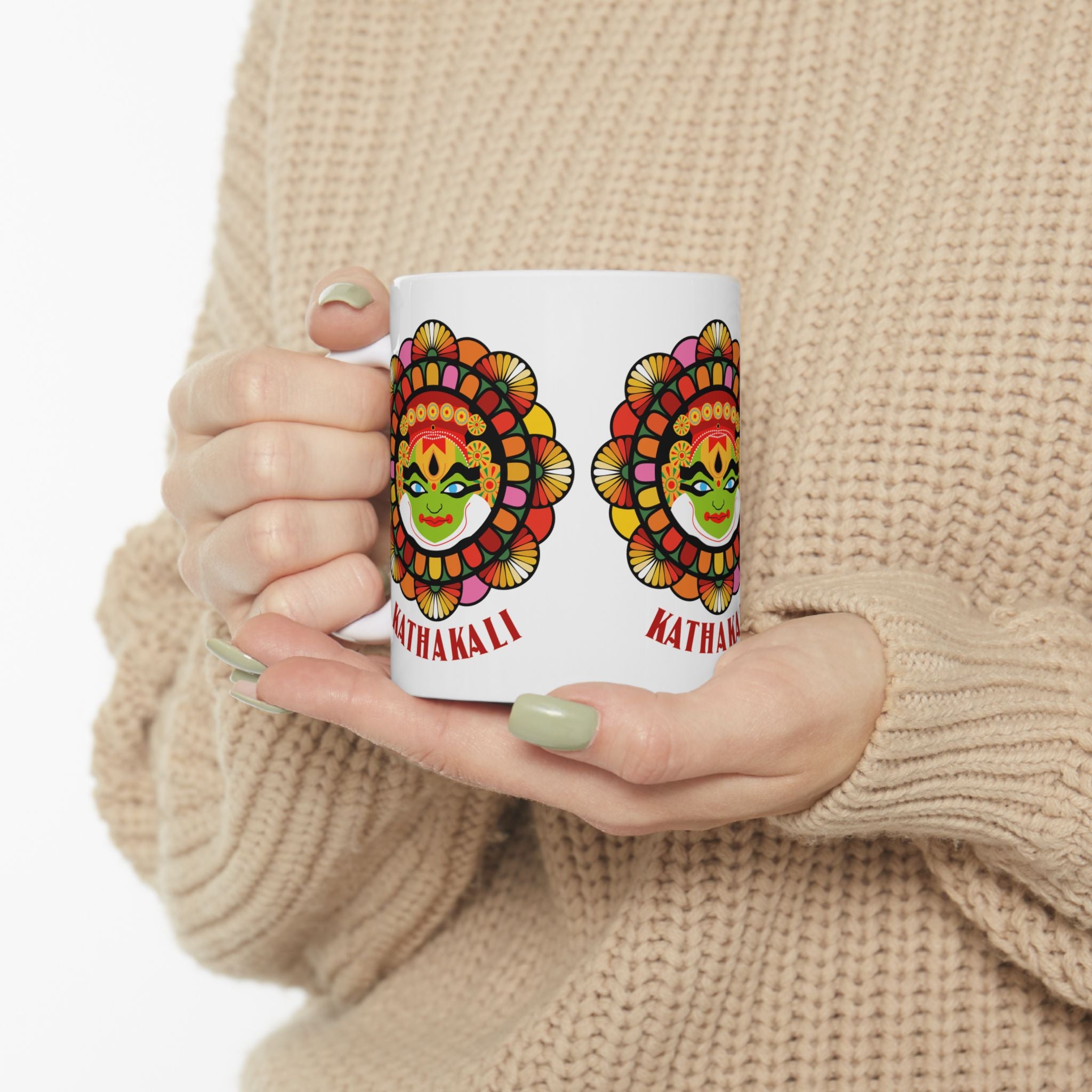 Celebrate the artistry of Kerala’s legendary Kathakali dance-drama with this Ceramic Mug. Featuring a vibrant Kathakali face design, this mug brings cultural storytelling, color, and heritage into your daily routine.