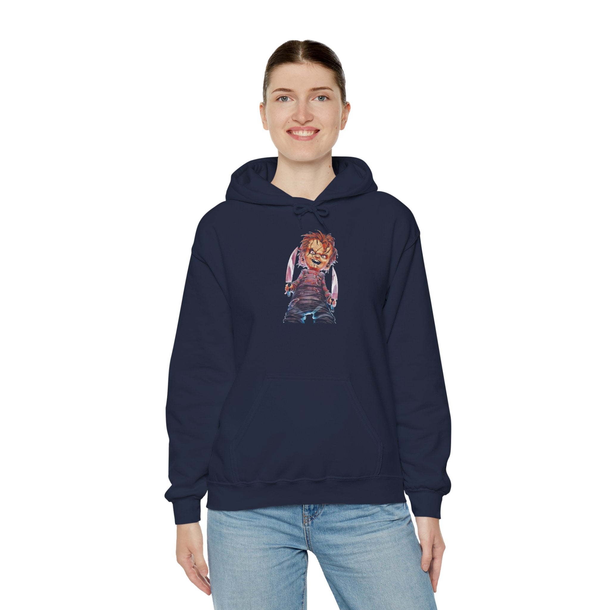 The Chucky Horror Hoodie captures the twisted charisma of a timeless horror icon — the doll that redefined fear with a grin.