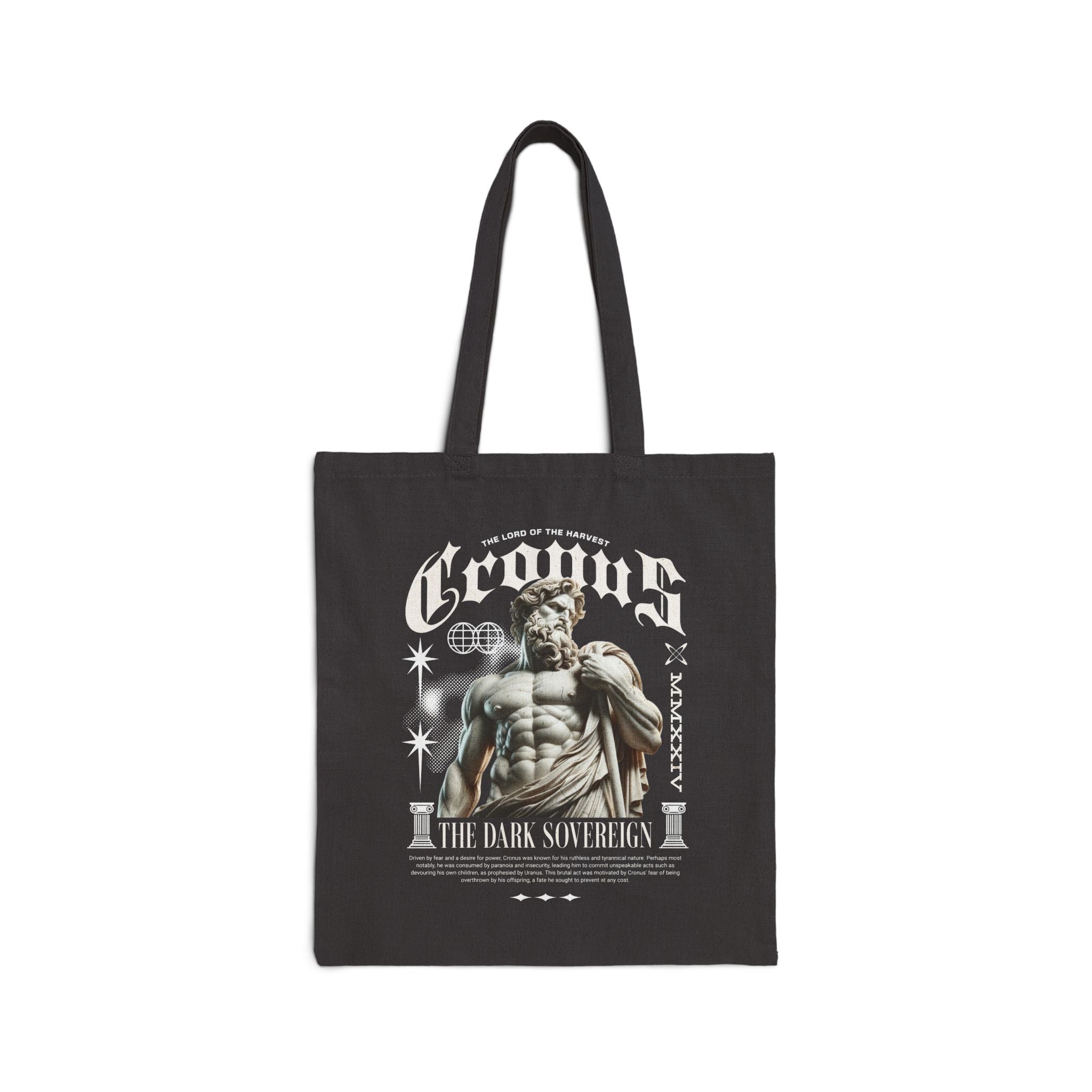 The Cronus The Dark Sovereign Cotton Canvas Tote Bag is more than a bag—it’s a symbol of strength, culture, and timeless mythology. Featuring a statuesque graphic of Cronus, the Lord of the Harvest, with gothic typography, this tote turns everyday carry into a statement of dominance and resilience.