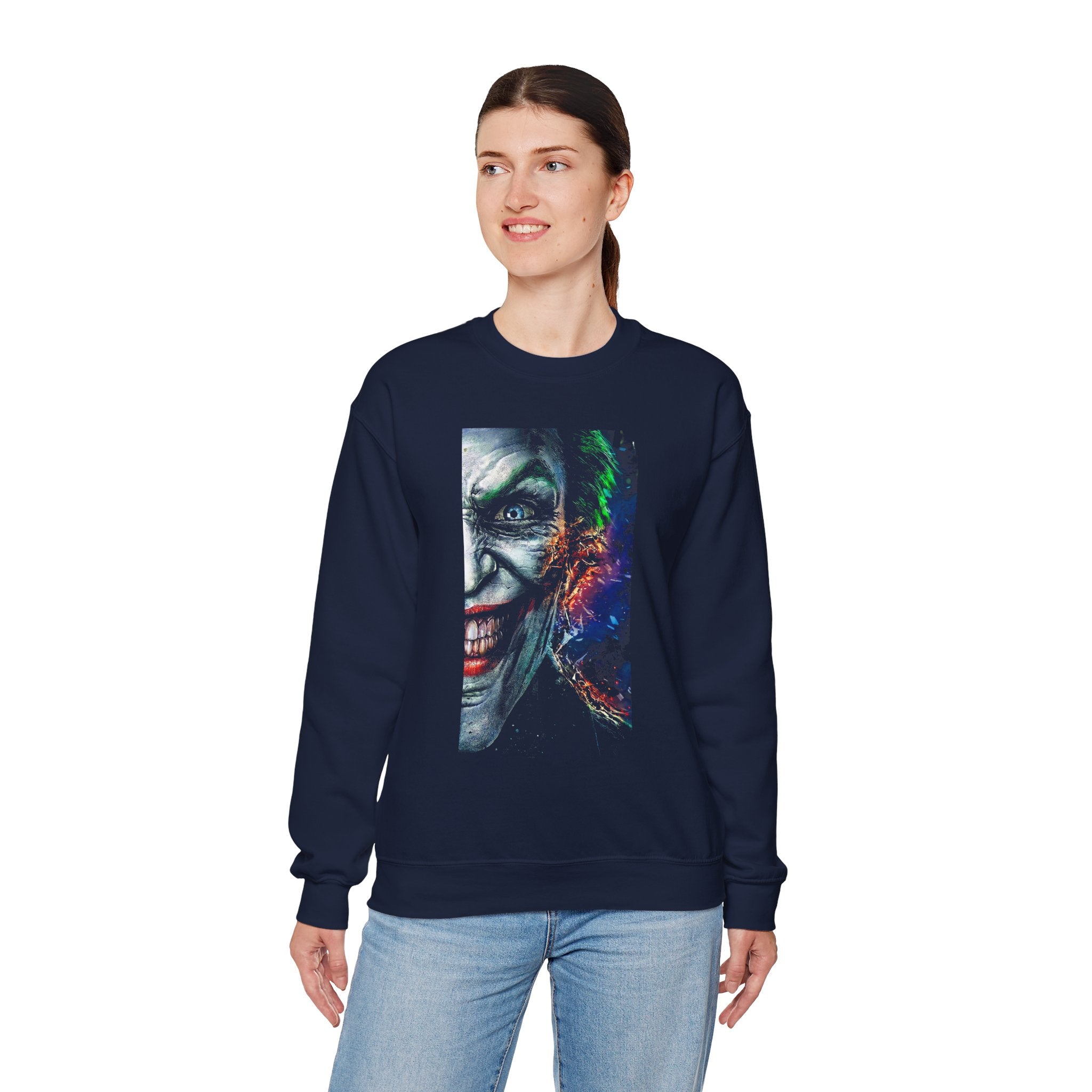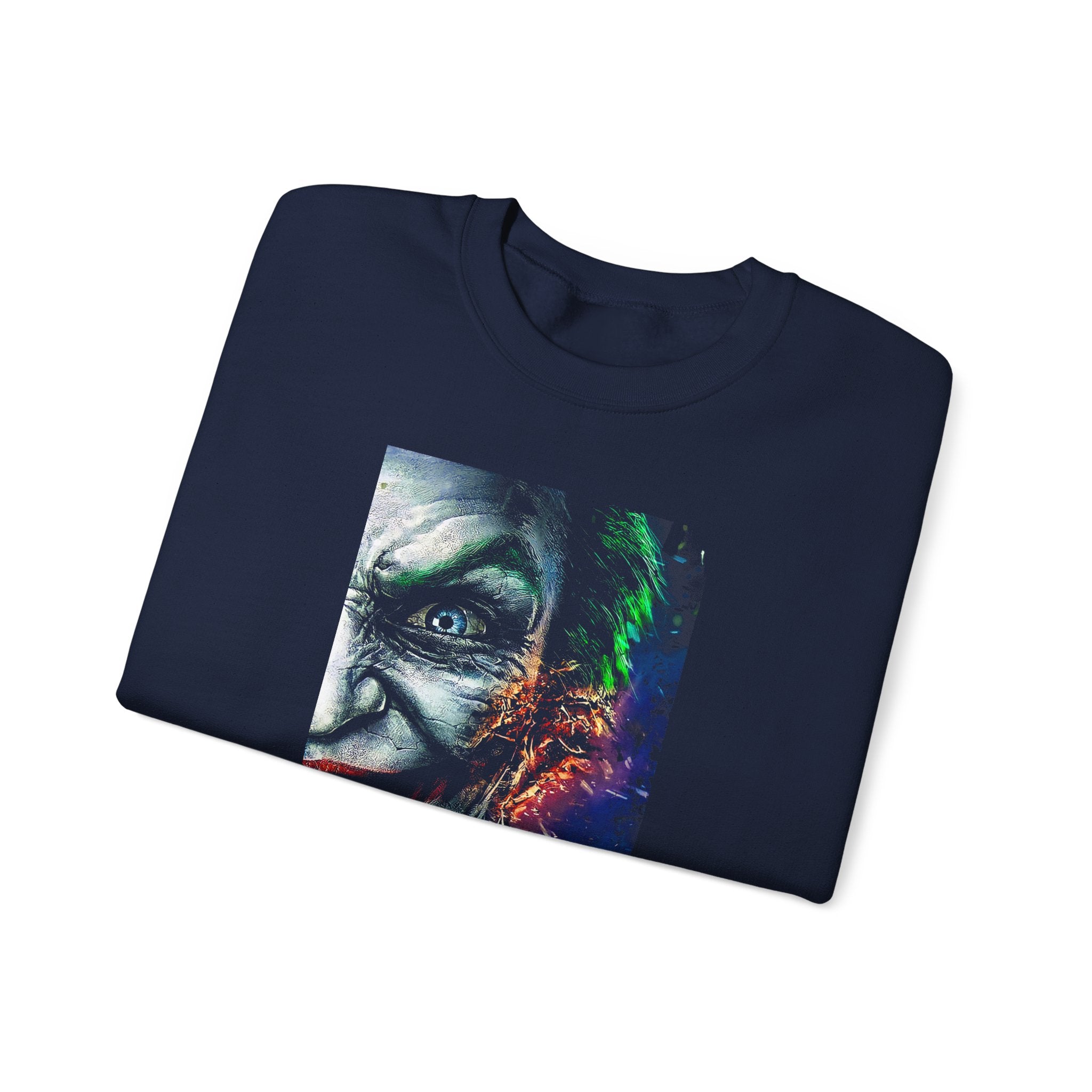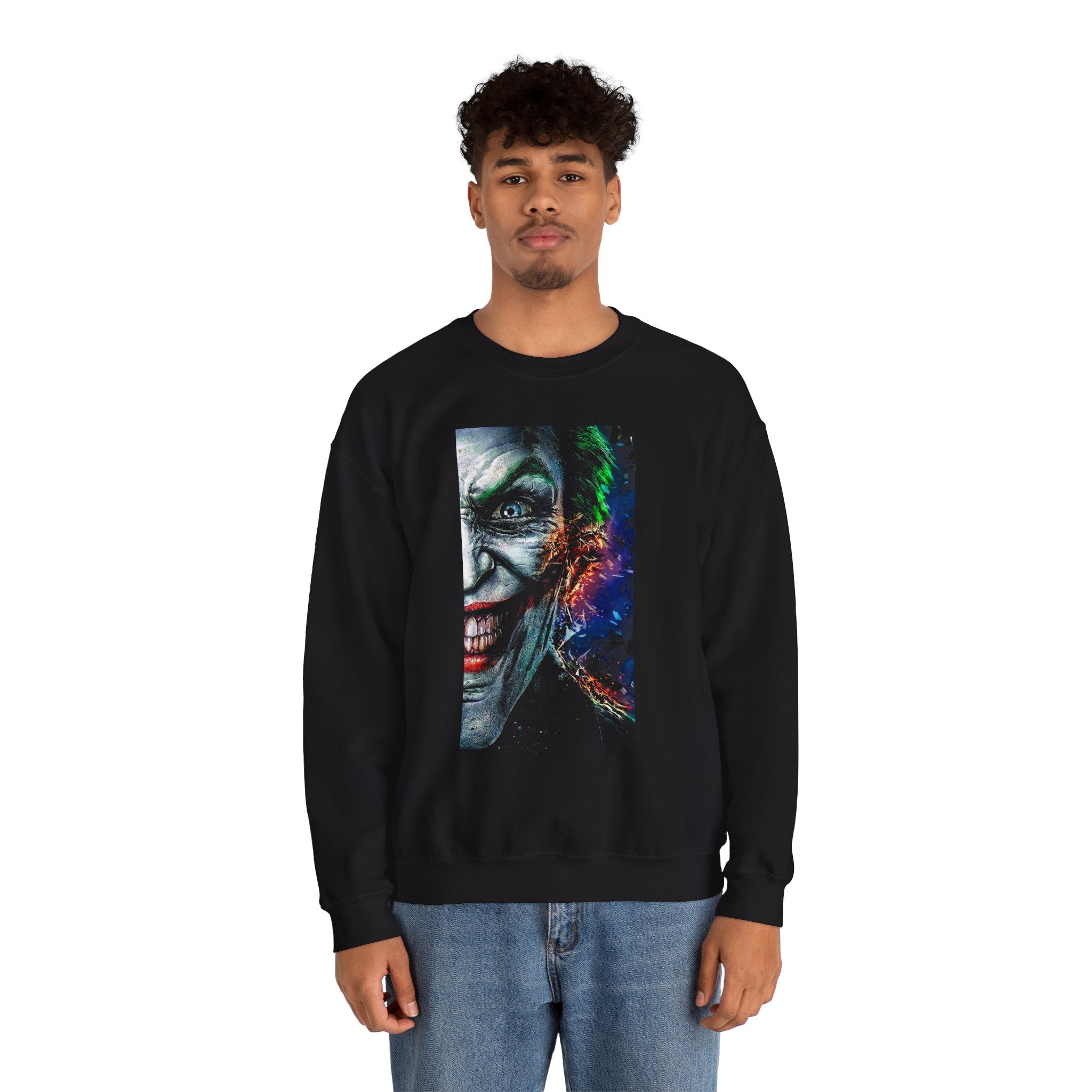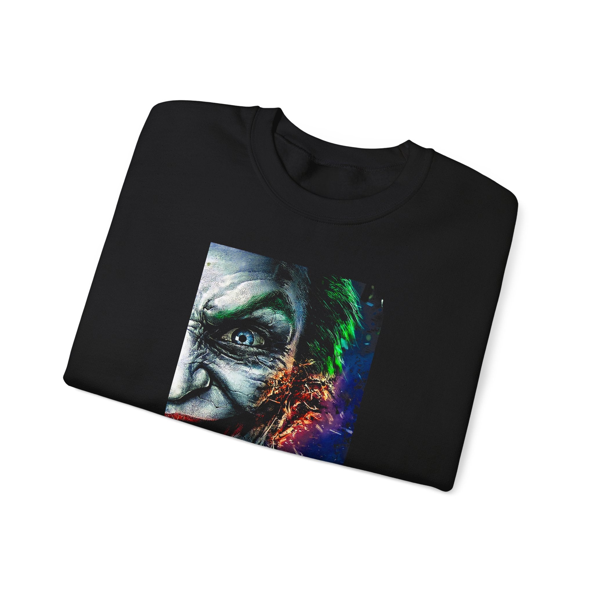 The Split Insanity Sweatshirt captures the raw, electric tension between order and chaos — the calm before creation and the fire that fuels it.