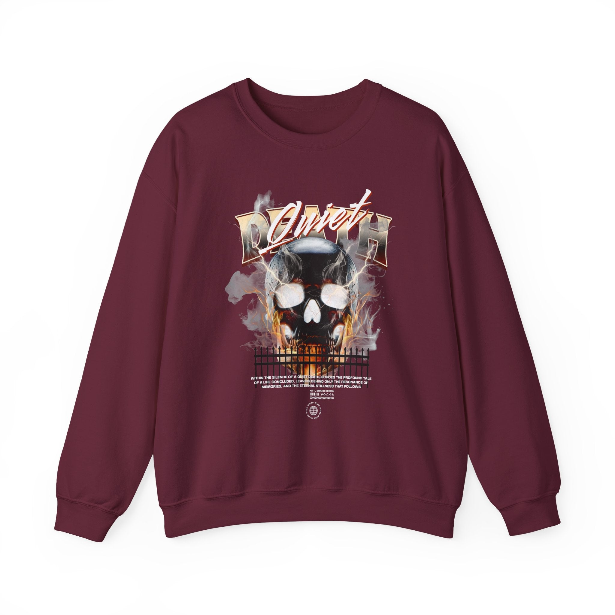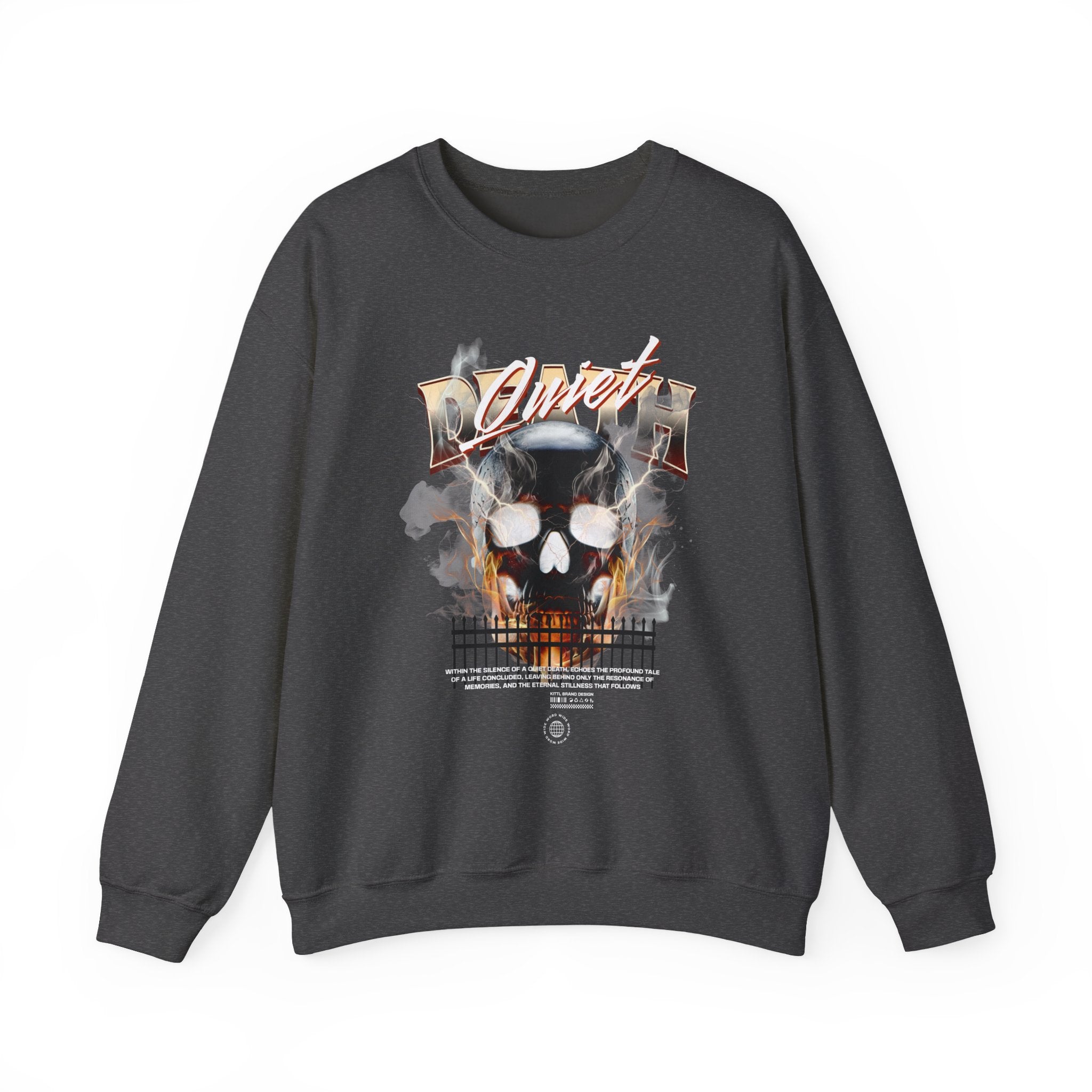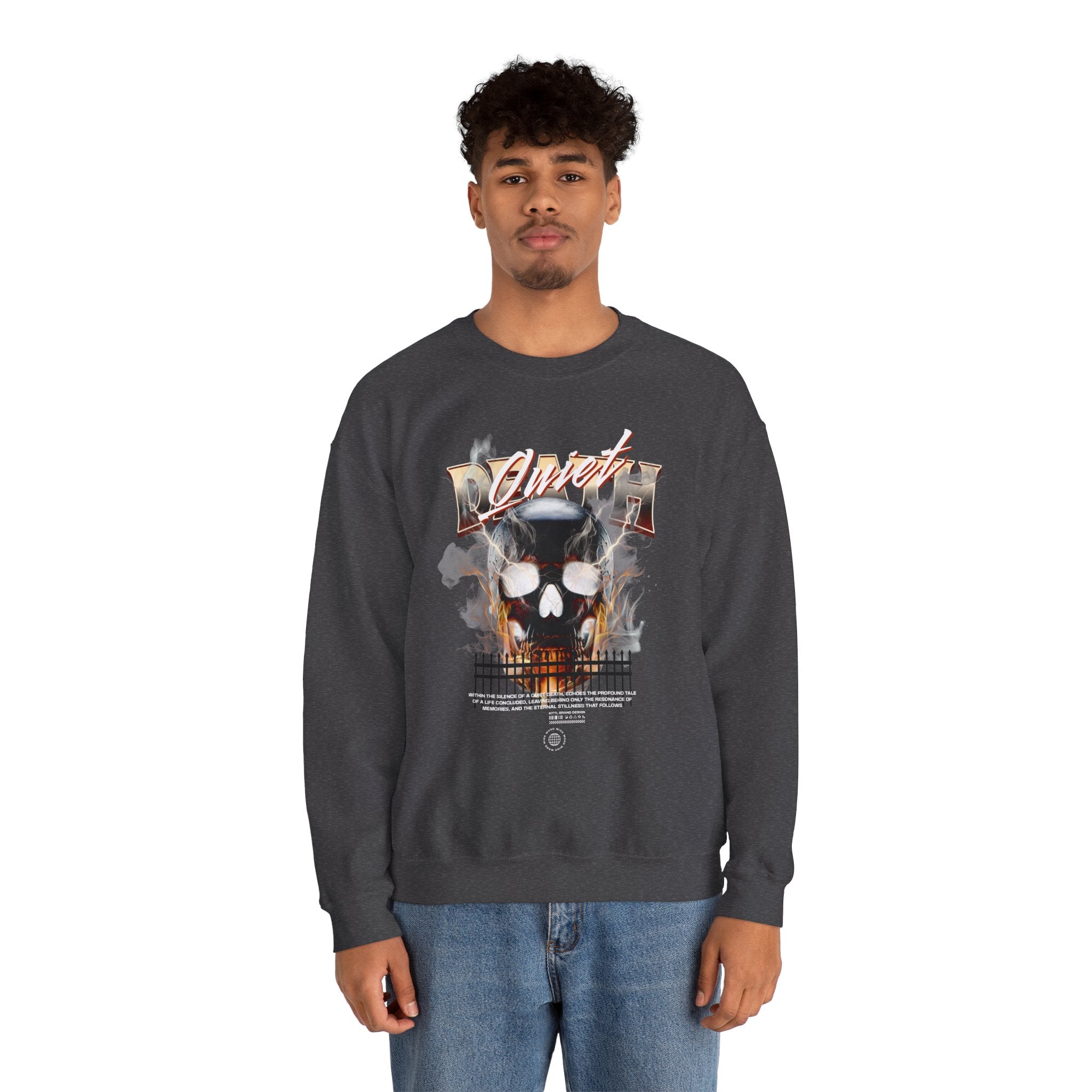 The Death Silence Unisex Heavy Blend™ Crewneck Sweatshirt is a bold mix of dark gothic streetwear and fiery symbolism. Featuring a smoke and flame engulfed skull with distressed gothic lettering, this pullover captures the essence of rebellion, mortality, and the shadows of silence. Built for those who crave gothic fashion, skull art, and horror-inspired style, it’s a true statement piece.