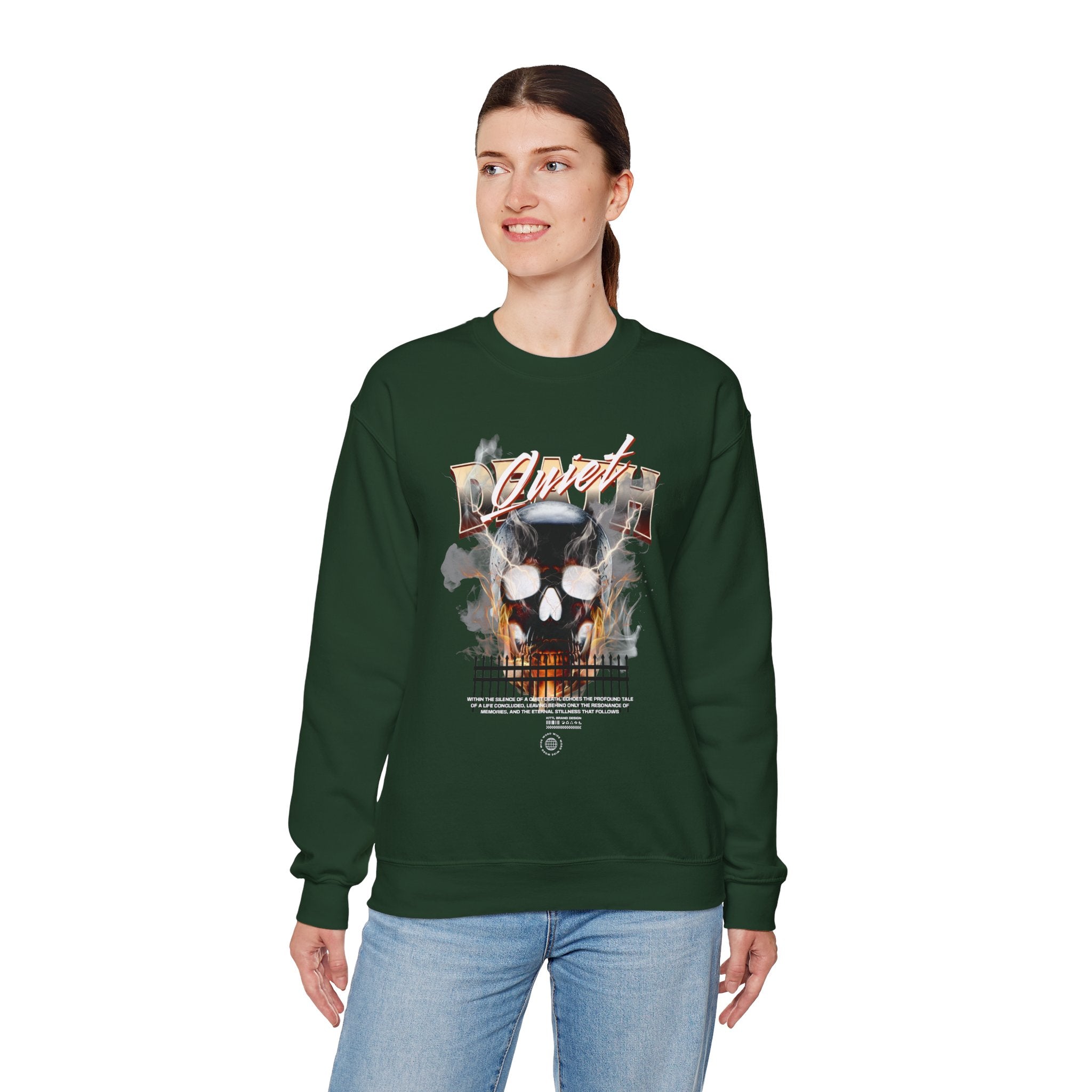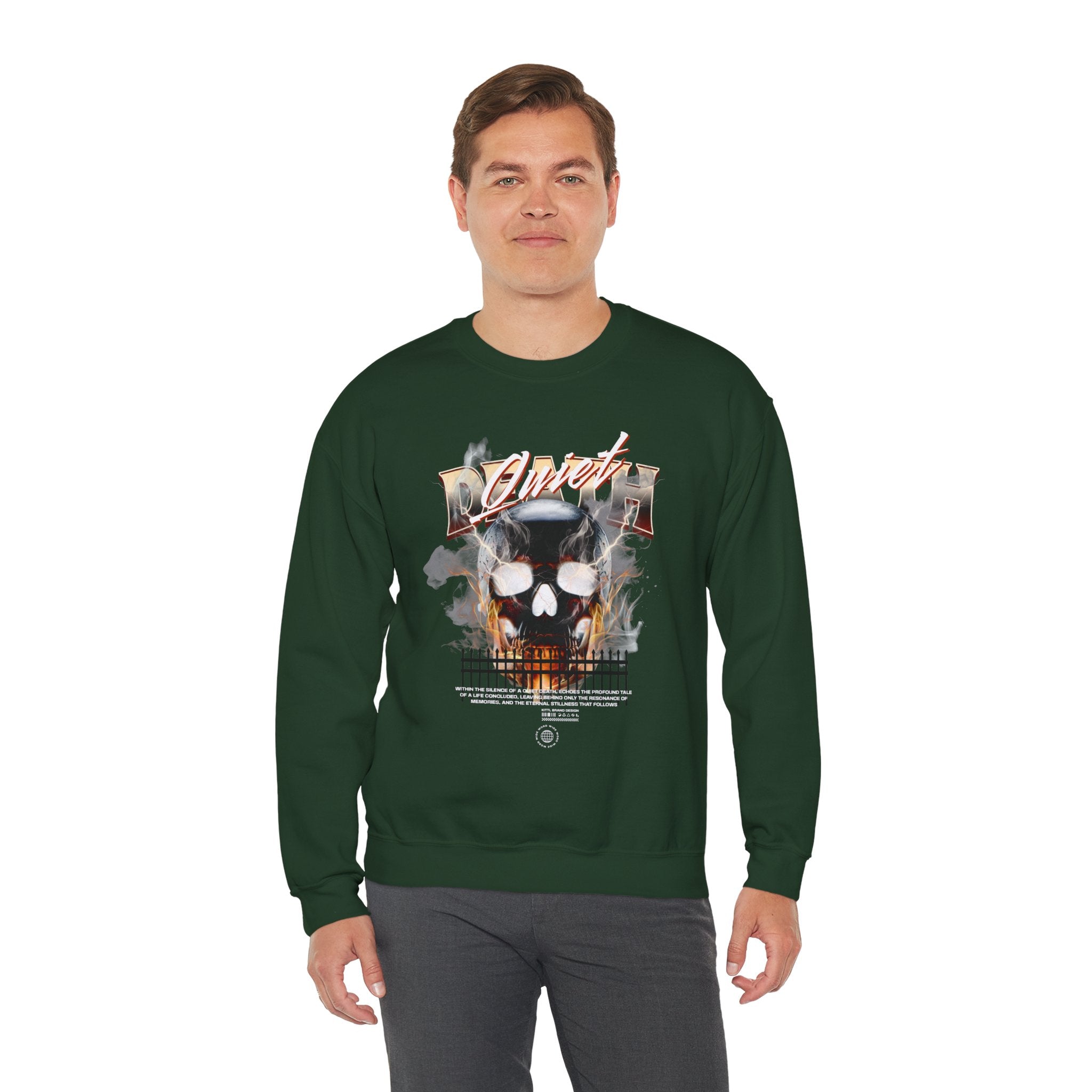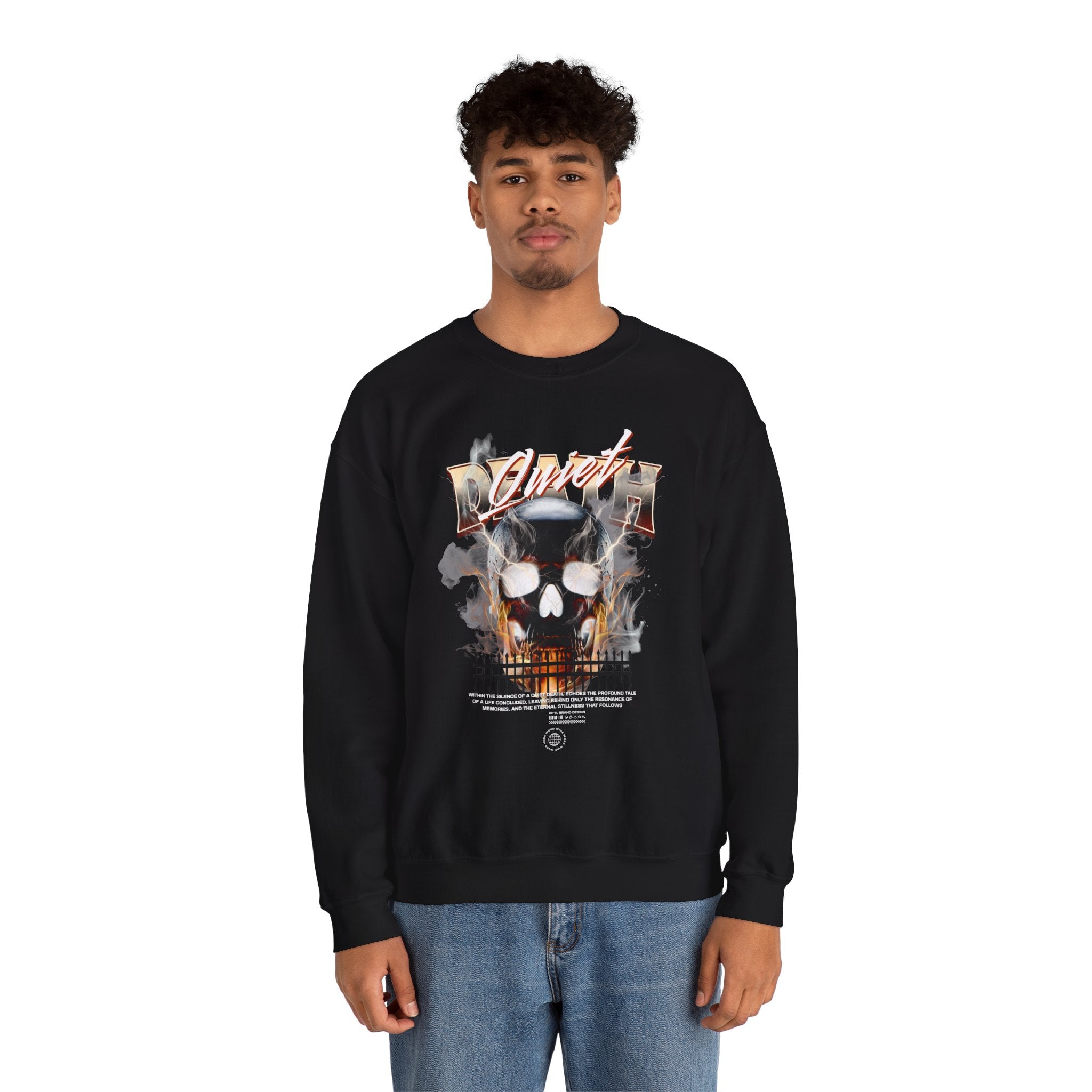 The Death Silence Unisex Heavy Blend™ Crewneck Sweatshirt is a bold mix of dark gothic streetwear and fiery symbolism. Featuring a smoke and flame engulfed skull with distressed gothic lettering, this pullover captures the essence of rebellion, mortality, and the shadows of silence. Built for those who crave gothic fashion, skull art, and horror-inspired style, it’s a true statement piece.