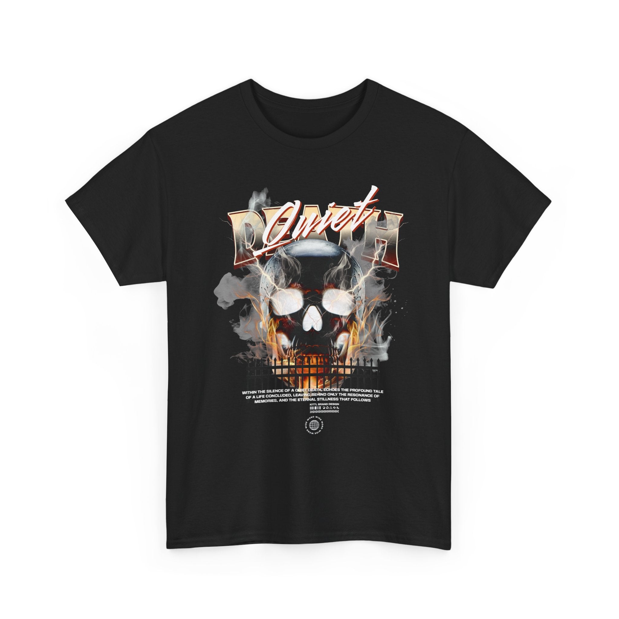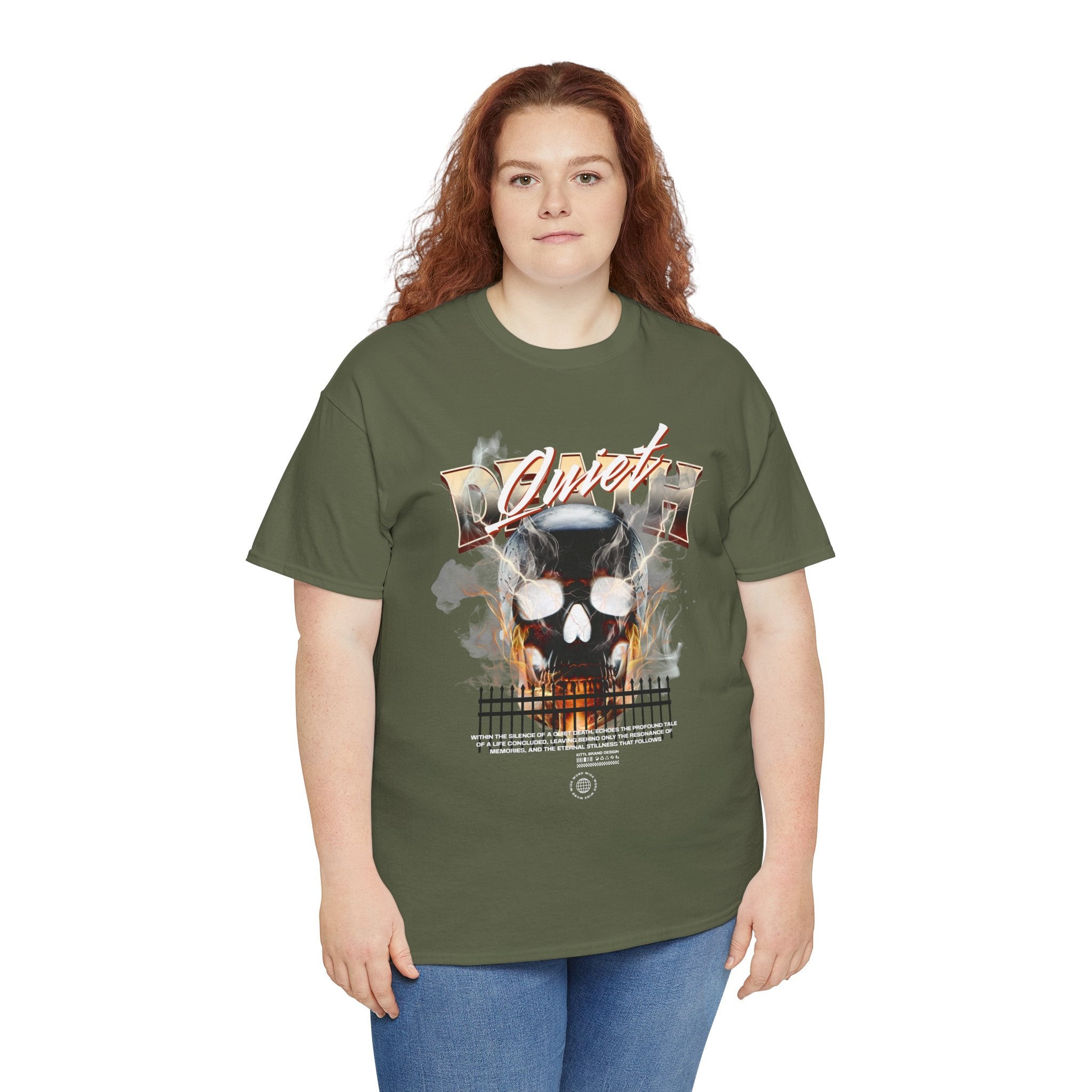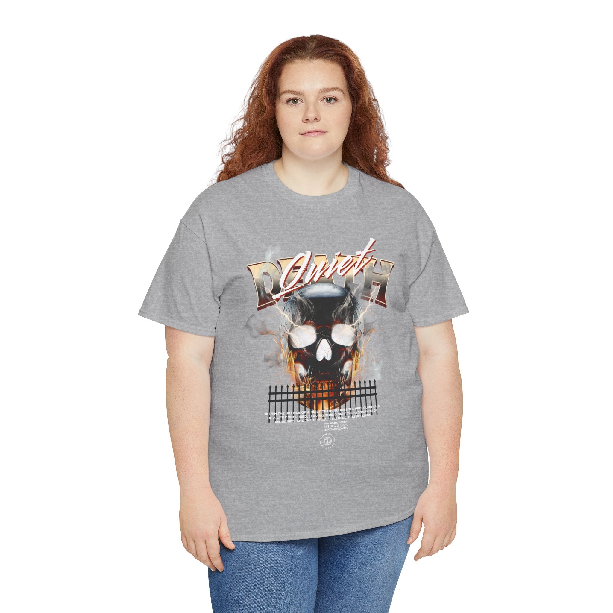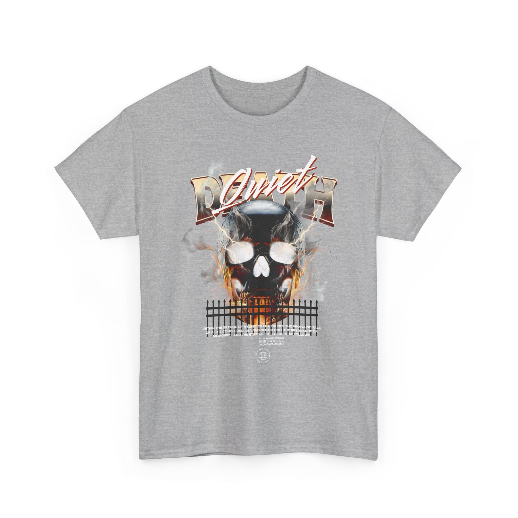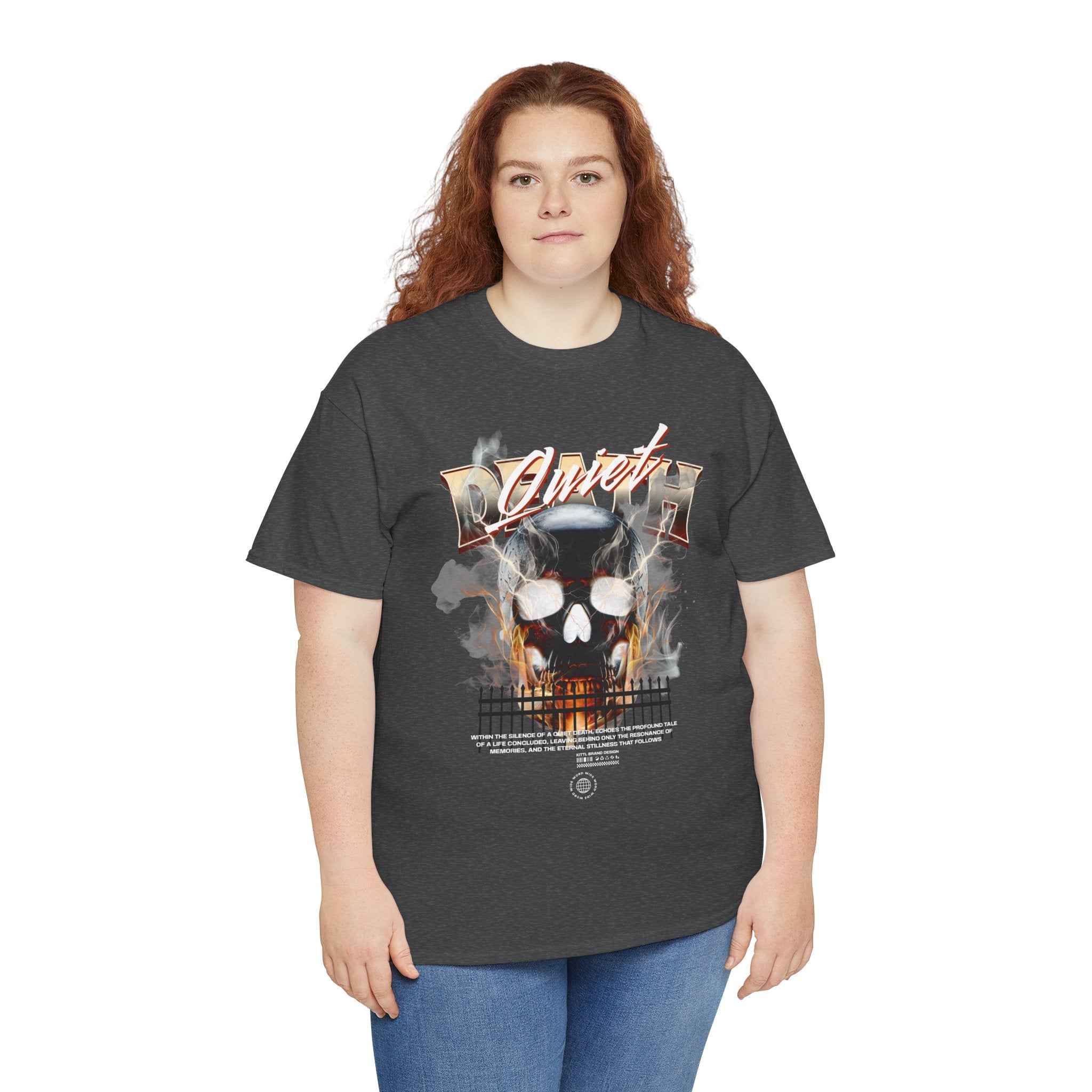 The Death Silence Unisex Heavy Cotton Tee is a fearless dive into the world of gothic art, dark symbolism, and fiery rebellion. Featuring a burning skull surrounded by smoke, flames, and bold distressed typography, this shirt captures the raw energy of life, death, and silence in between. A perfect piece for those who embrace dark aesthetics, horror fashion, and bold streetwear vibes.