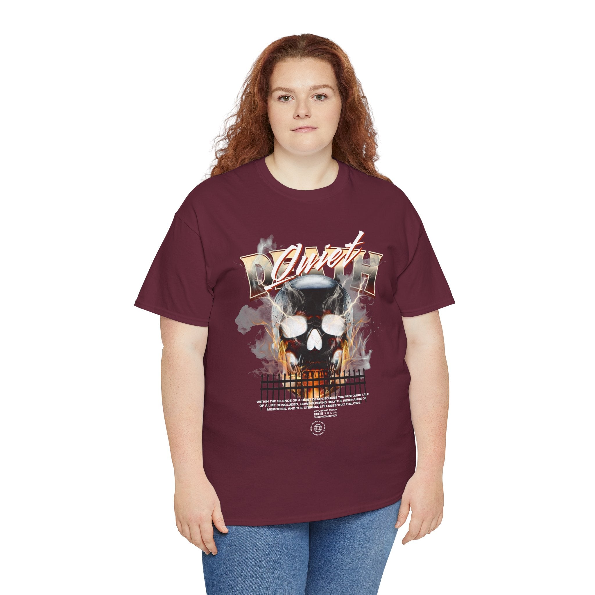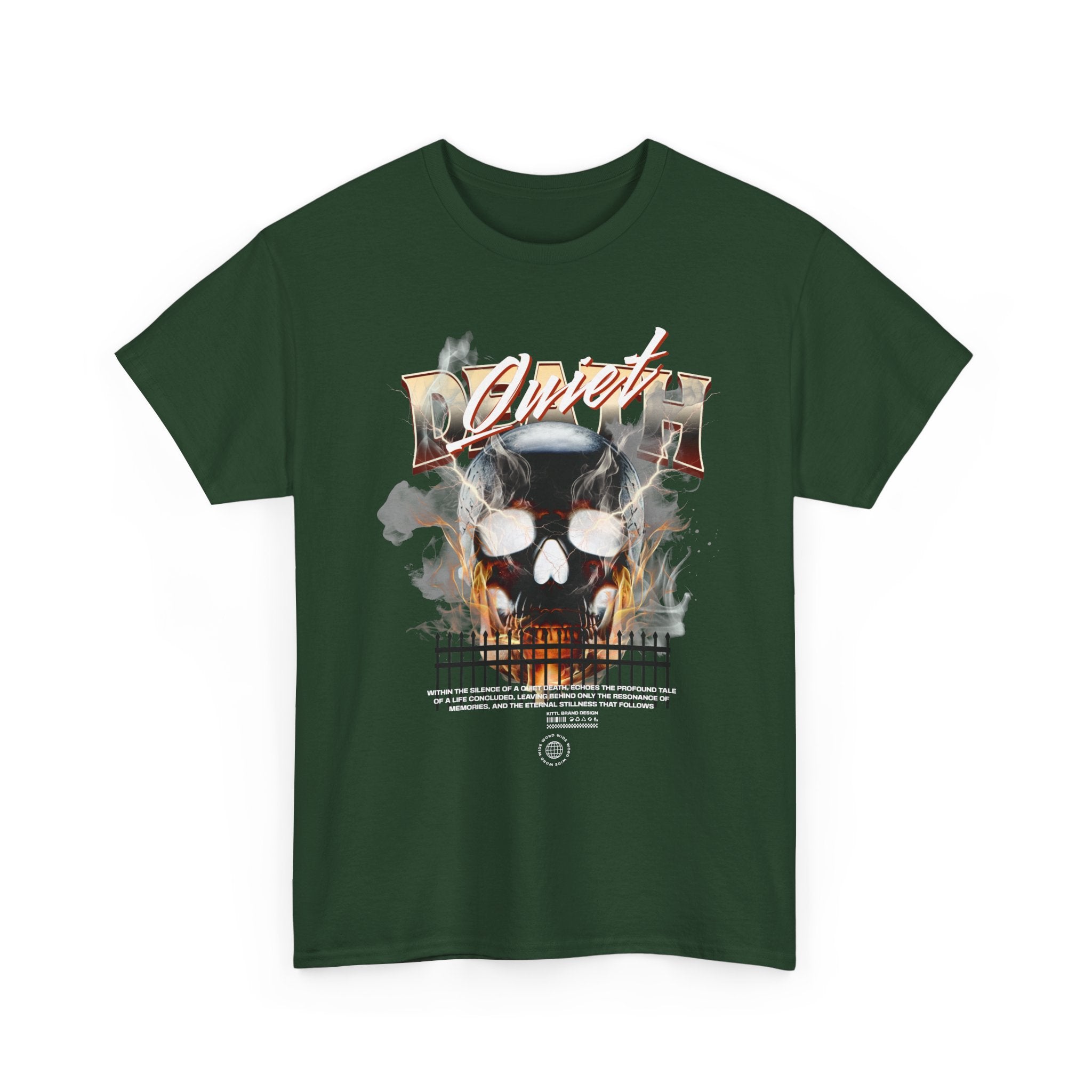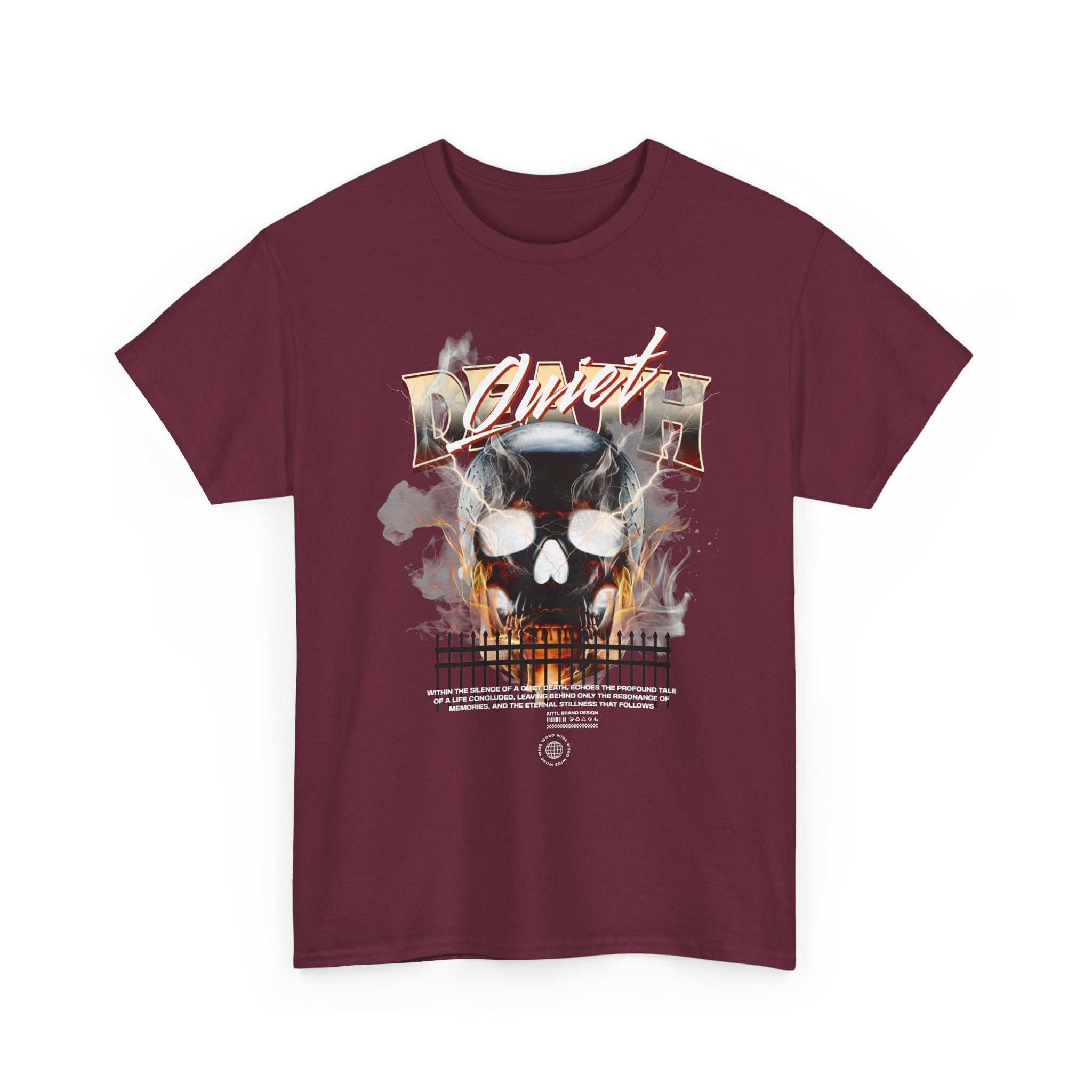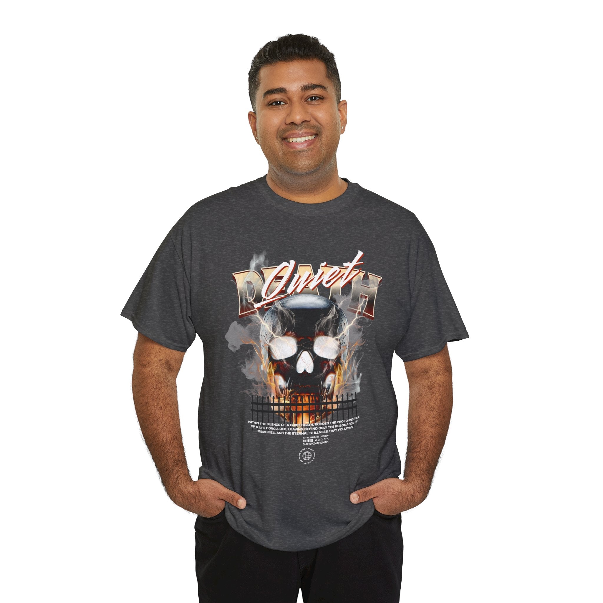 The Death Silence Unisex Heavy Cotton Tee is a fearless dive into the world of gothic art, dark symbolism, and fiery rebellion. Featuring a burning skull surrounded by smoke, flames, and bold distressed typography, this shirt captures the raw energy of life, death, and silence in between. A perfect piece for those who embrace dark aesthetics, horror fashion, and bold streetwear vibes.