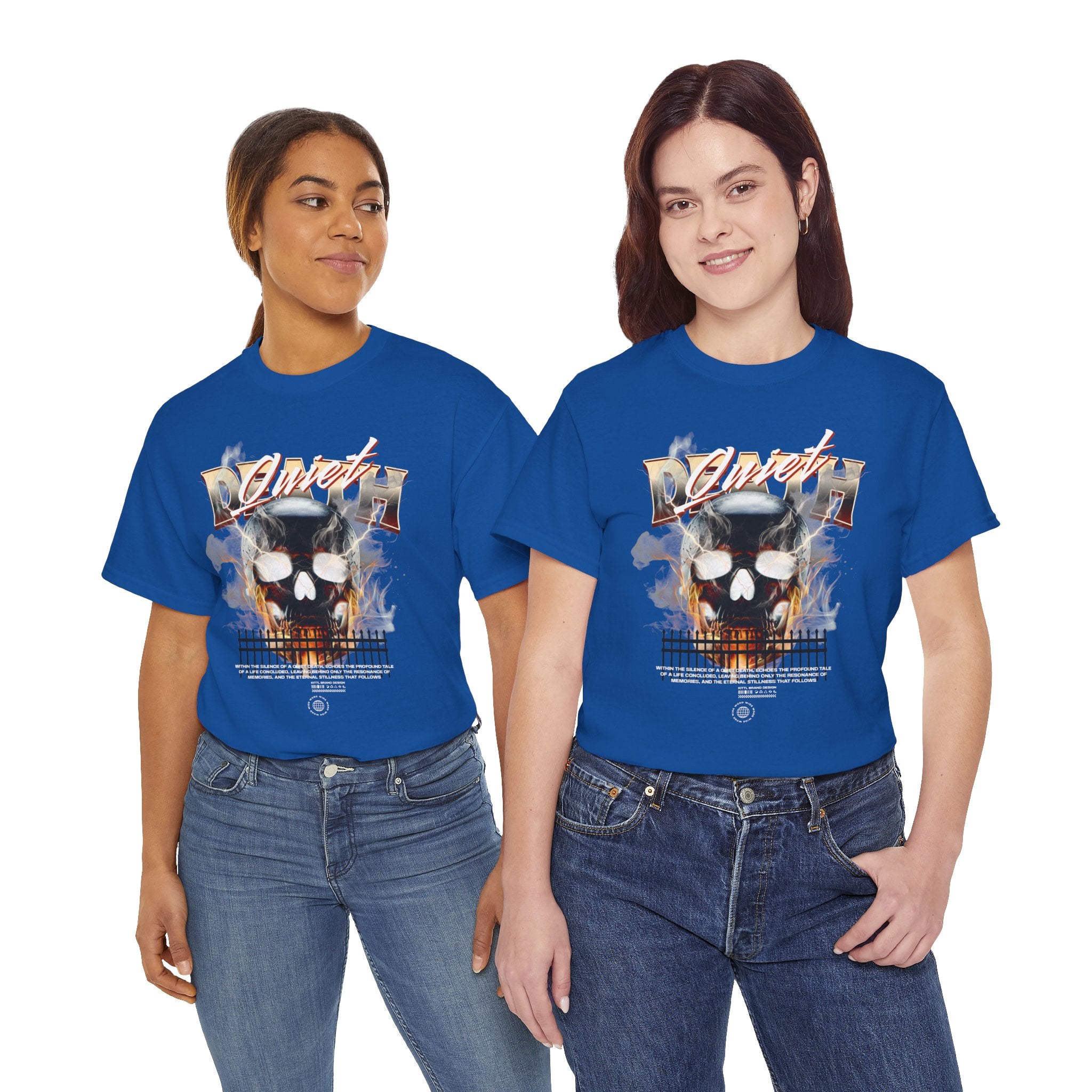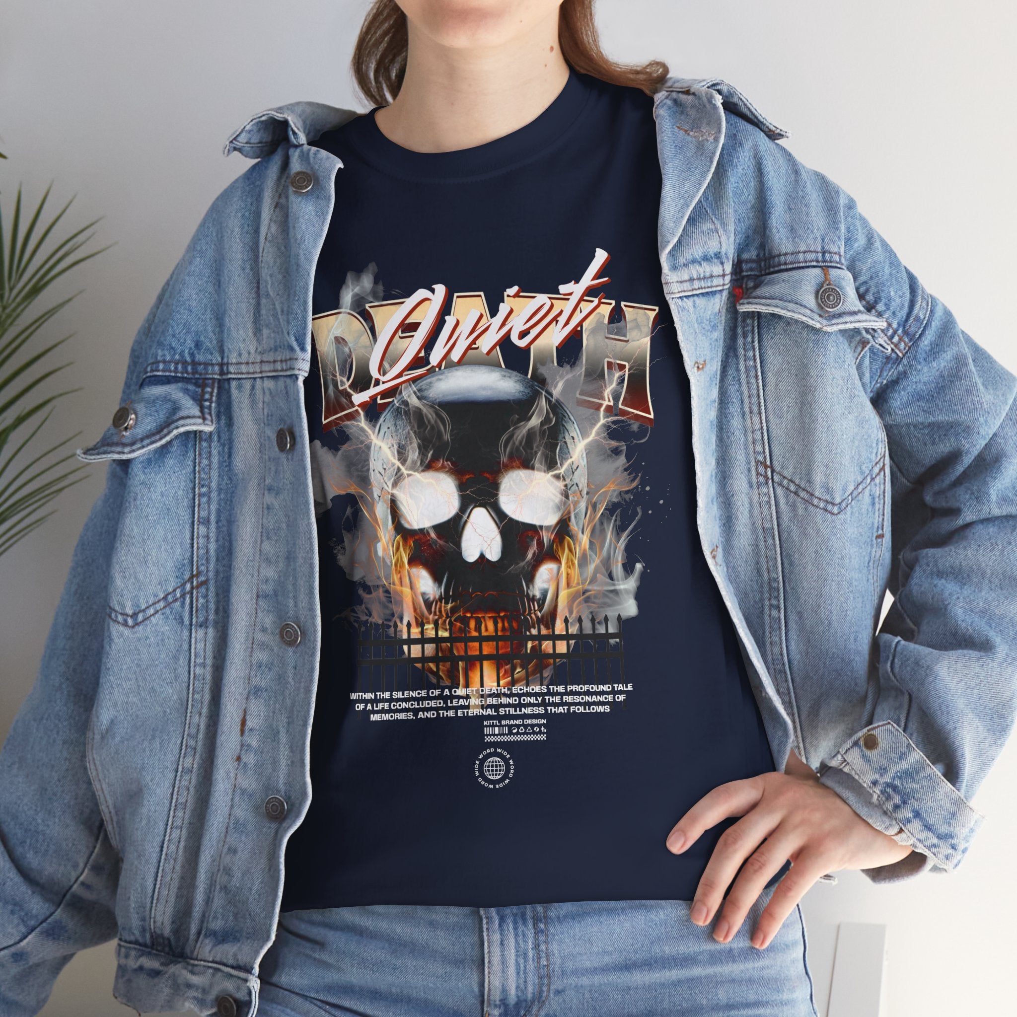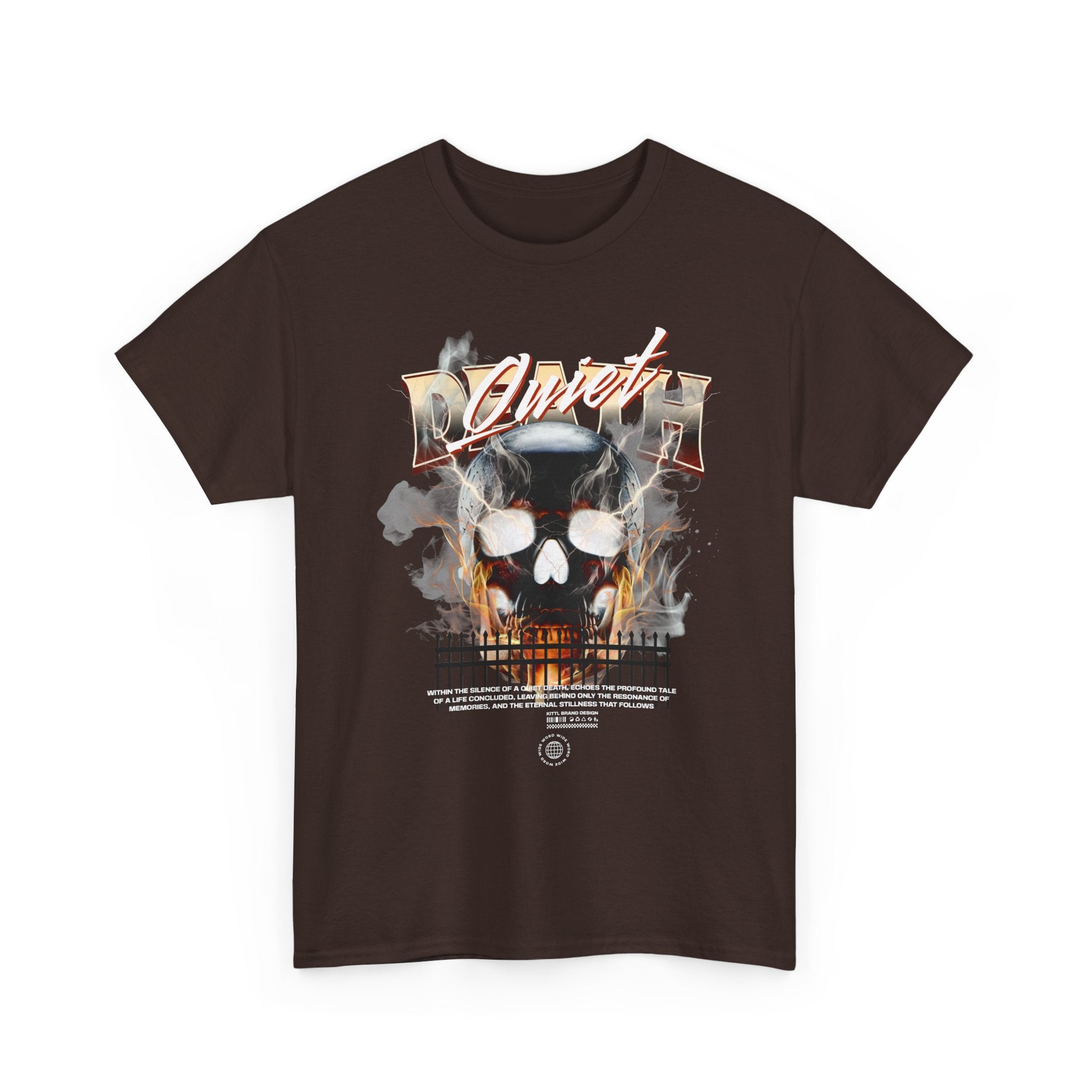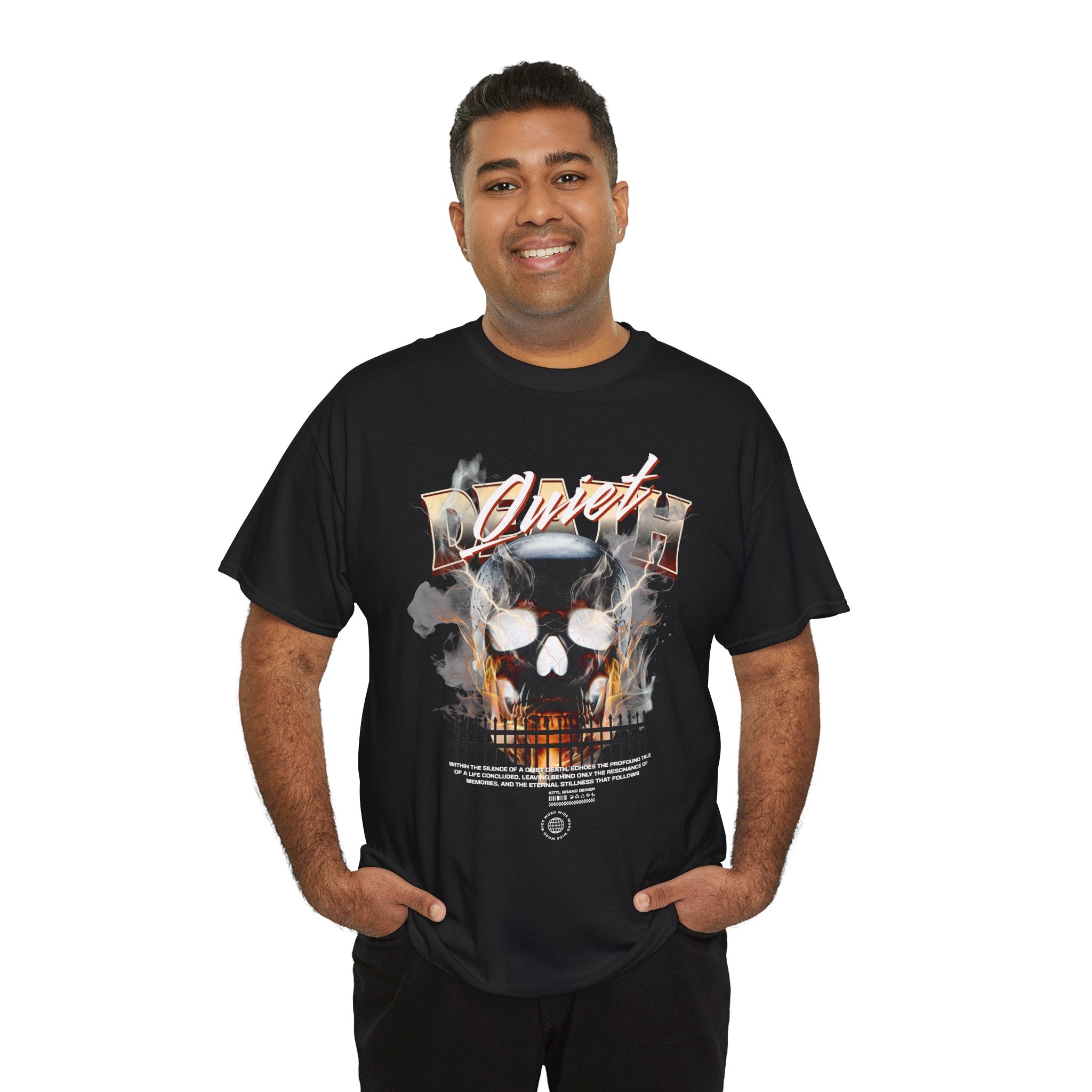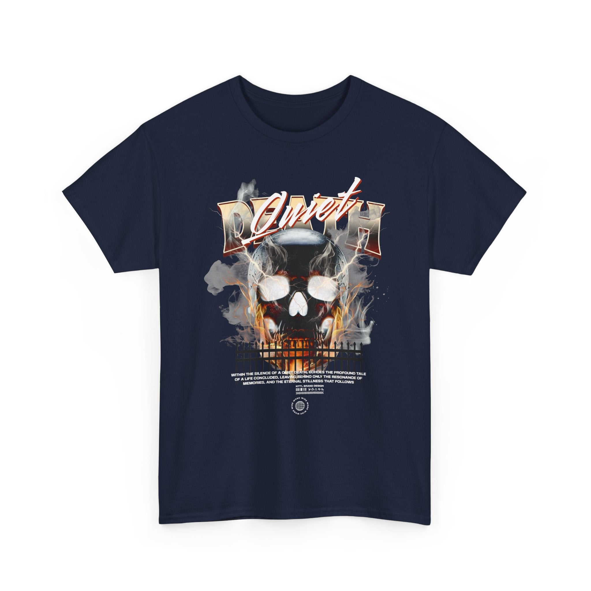 The Death Silence Unisex Heavy Cotton Tee is a fearless dive into the world of gothic art, dark symbolism, and fiery rebellion. Featuring a burning skull surrounded by smoke, flames, and bold distressed typography, this shirt captures the raw energy of life, death, and silence in between. A perfect piece for those who embrace dark aesthetics, horror fashion, and bold streetwear vibes.