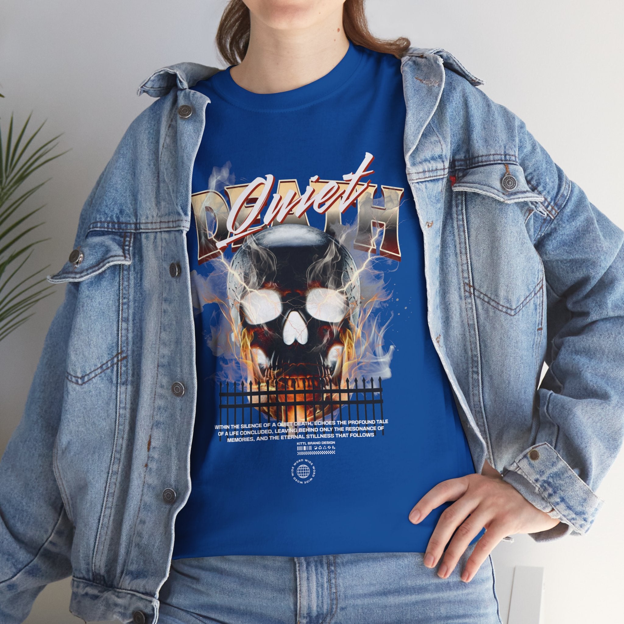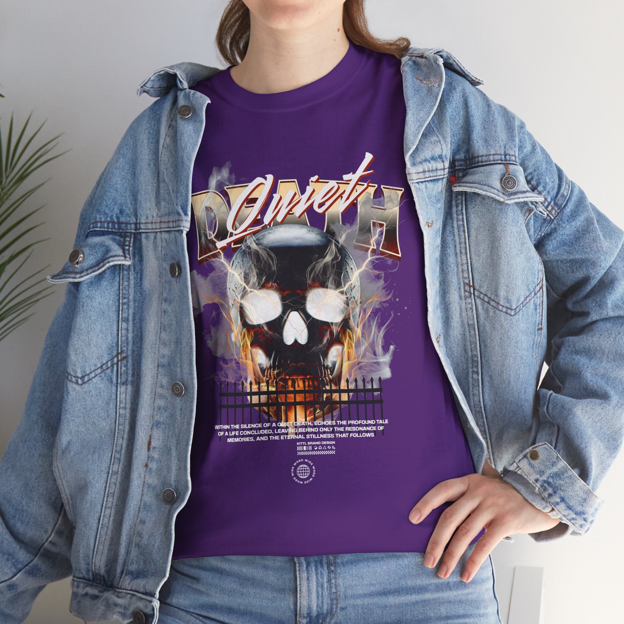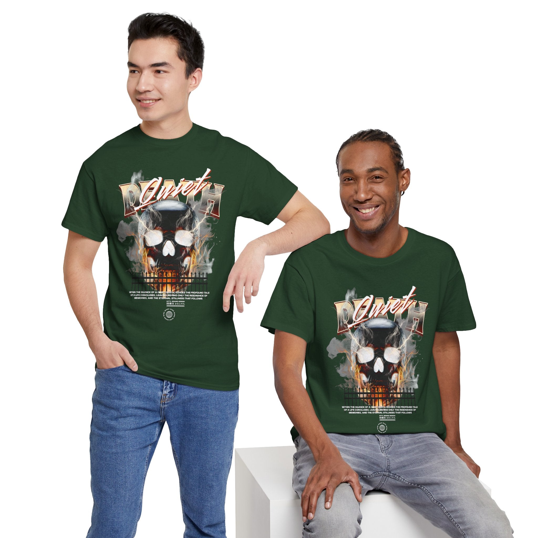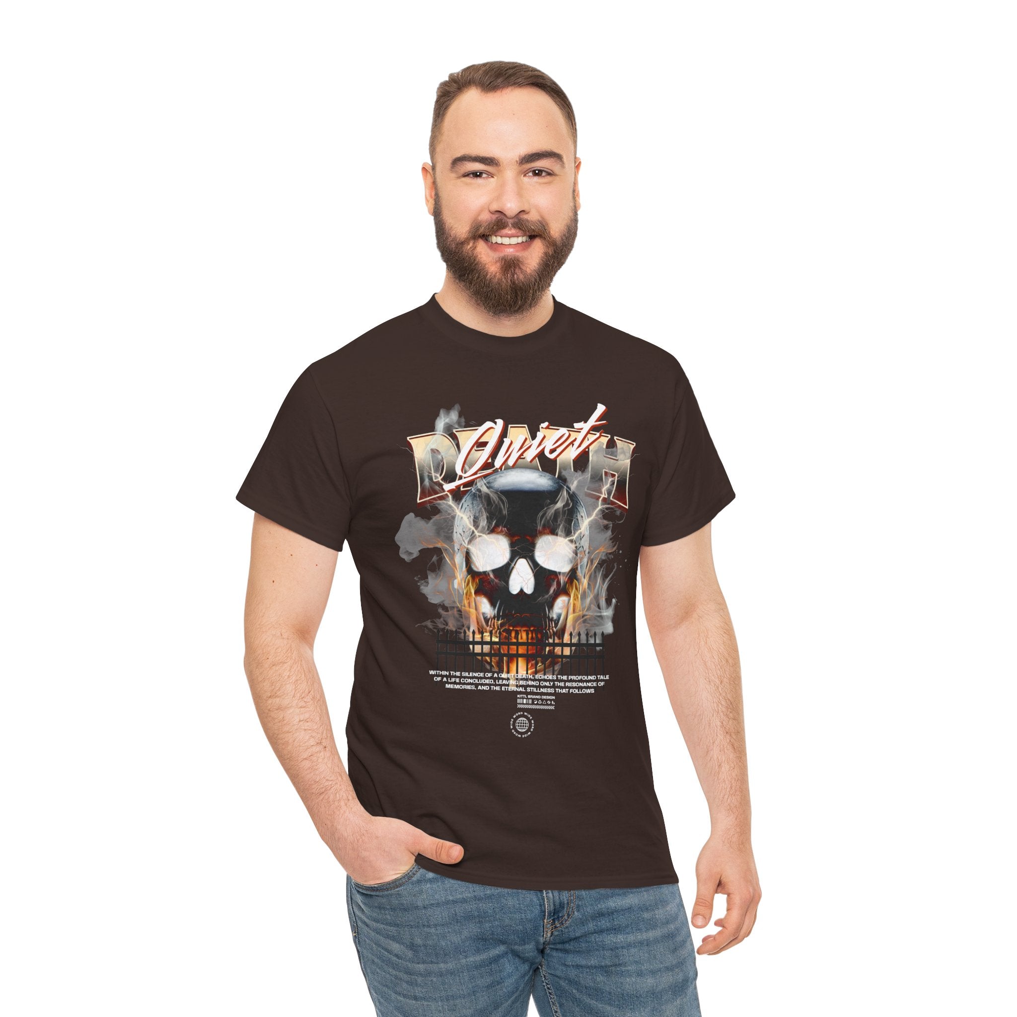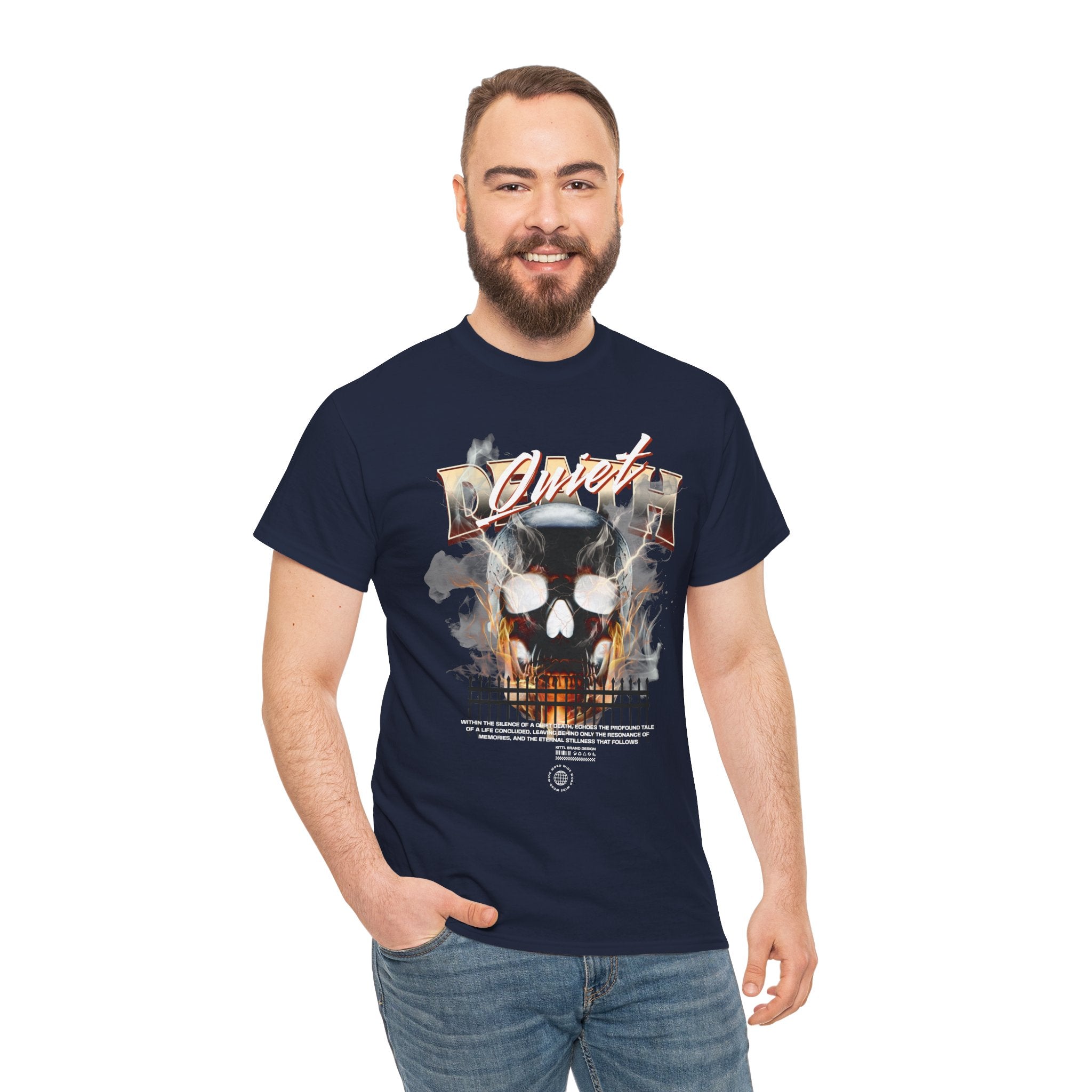 The Death Silence Unisex Heavy Cotton Tee is a fearless dive into the world of gothic art, dark symbolism, and fiery rebellion. Featuring a burning skull surrounded by smoke, flames, and bold distressed typography, this shirt captures the raw energy of life, death, and silence in between. A perfect piece for those who embrace dark aesthetics, horror fashion, and bold streetwear vibes.