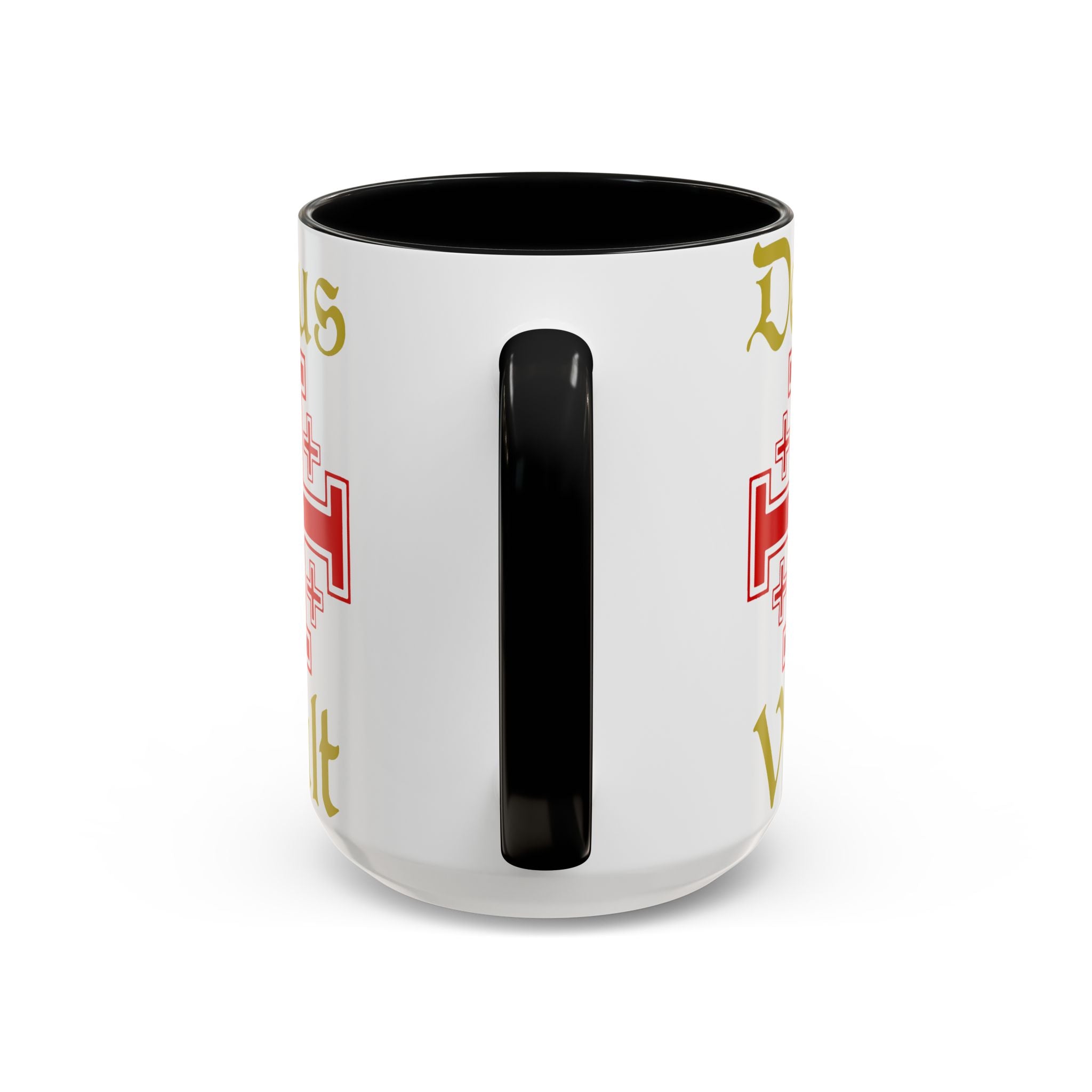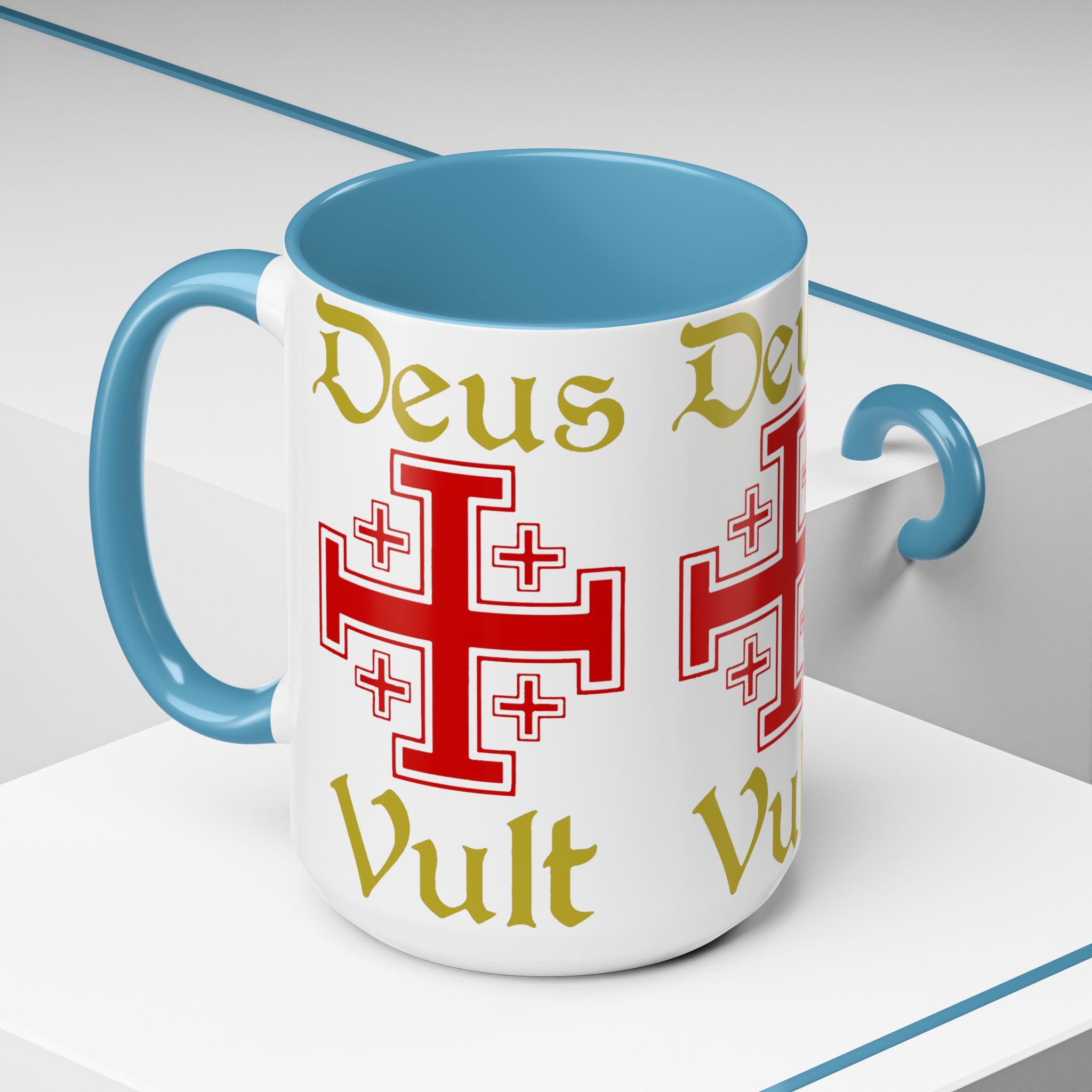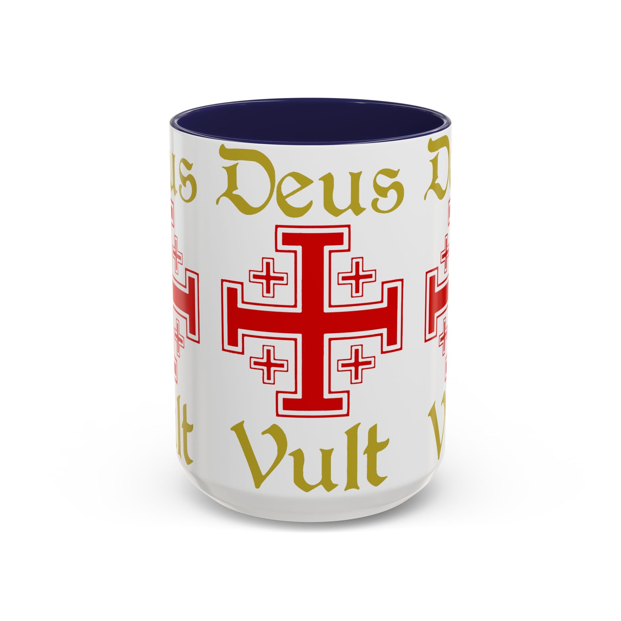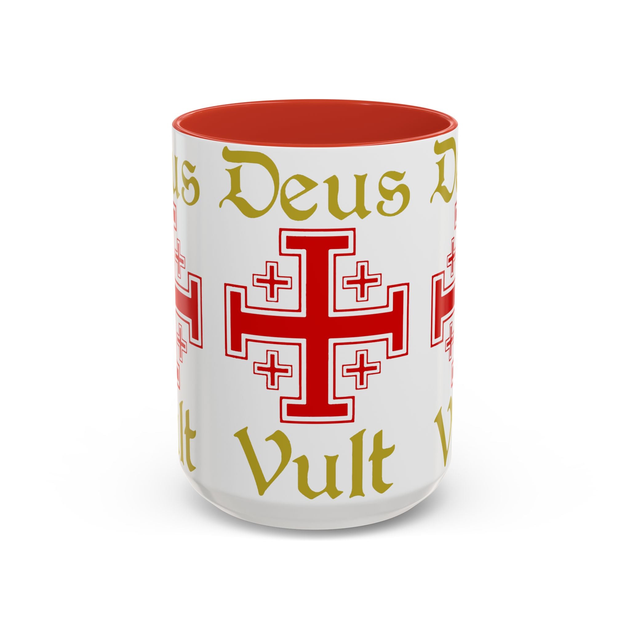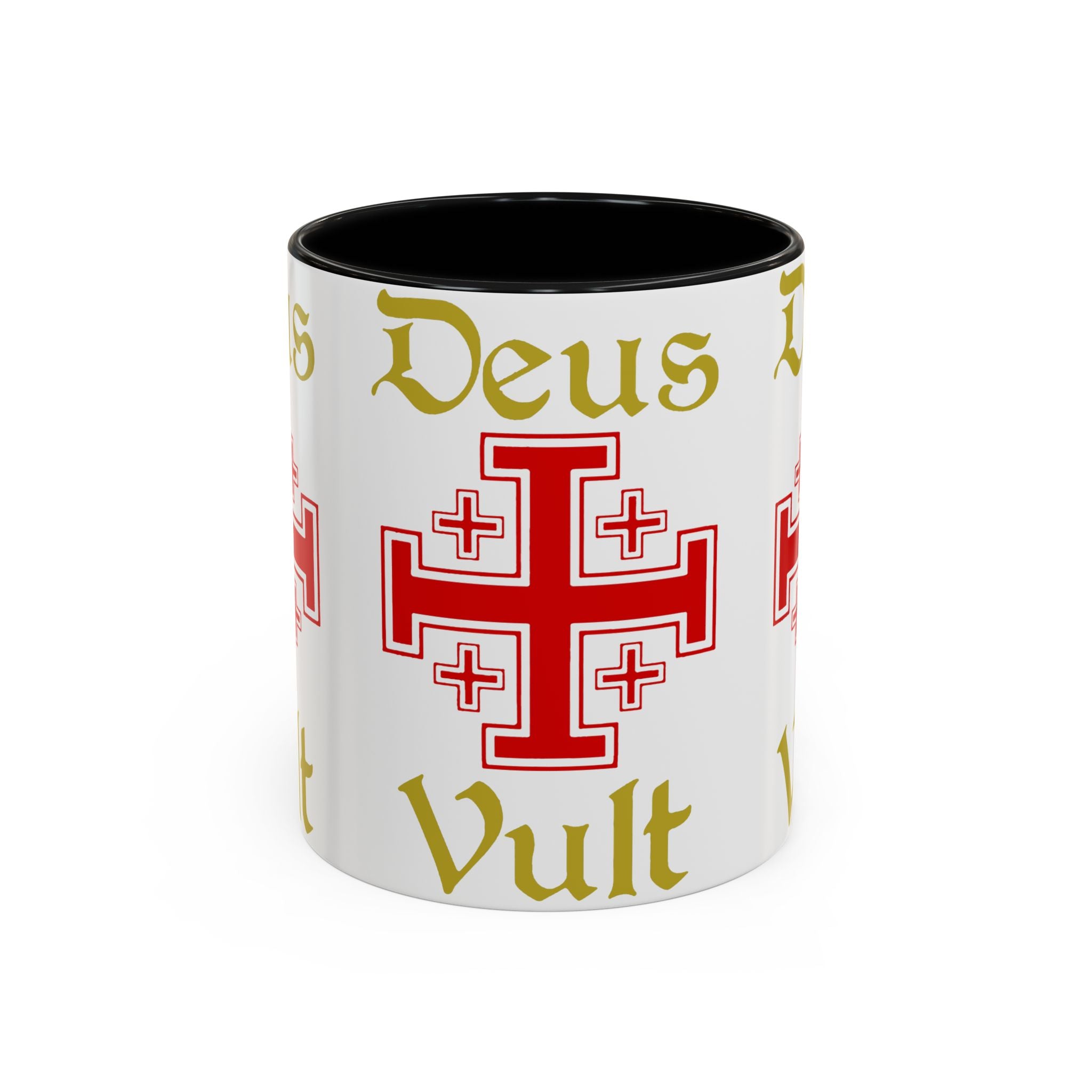 The Deus Vult Accent Coffee Mug combines powerful medieval symbolism with modern durability. Featuring the red Jerusalem cross with bold “Deus Vult” lettering in gold, this mug is more than just drinkware — it’s a declaration of courage, resilience, and faith.