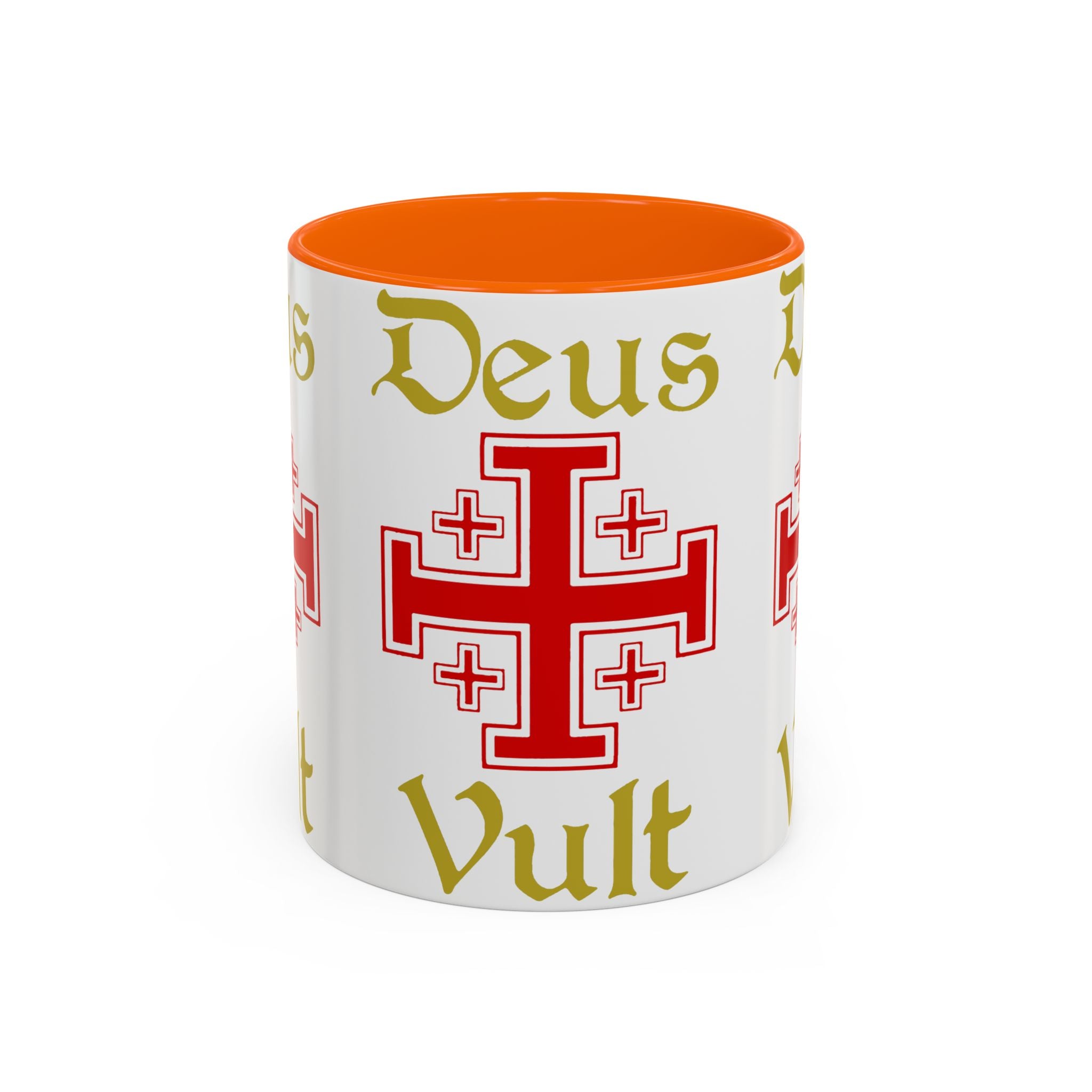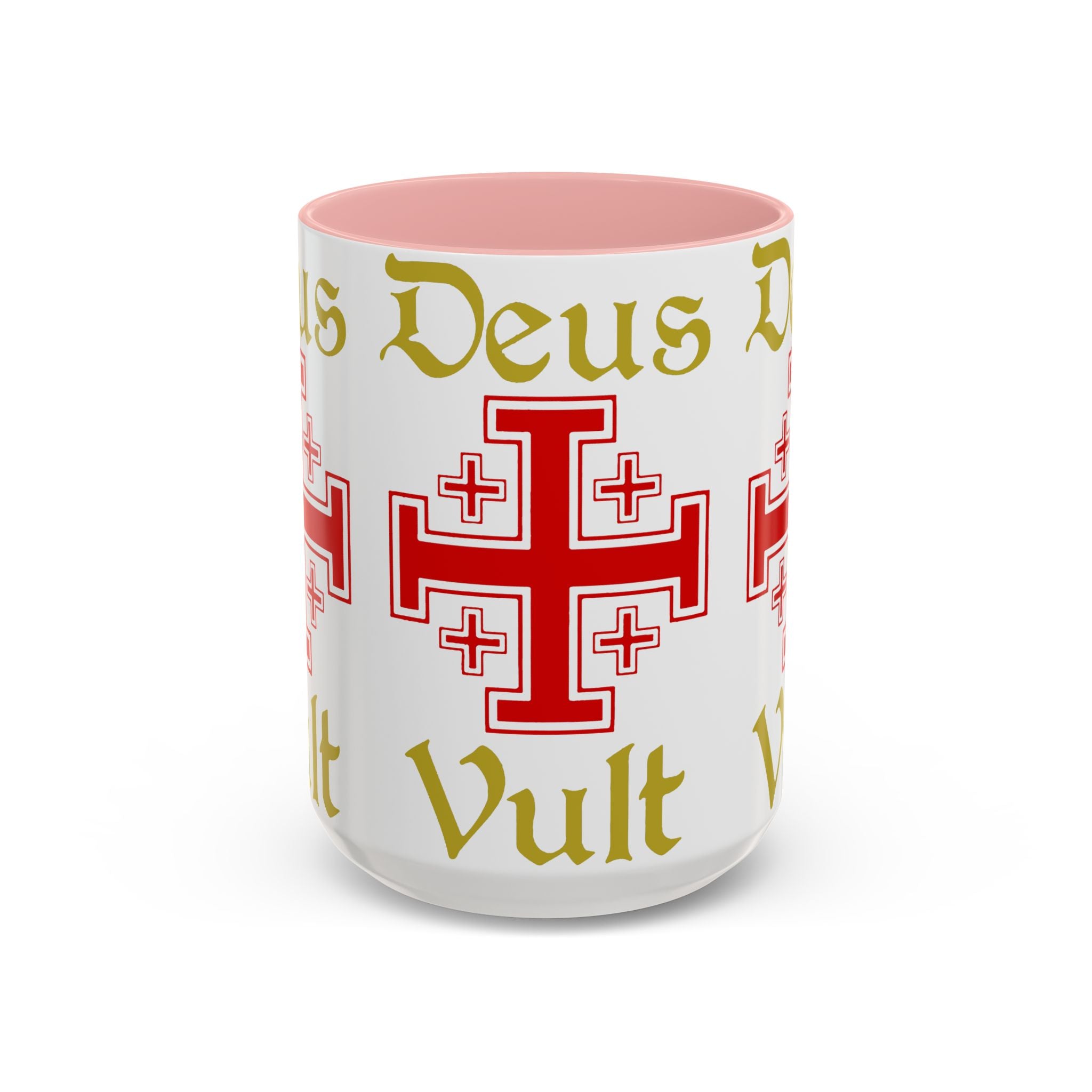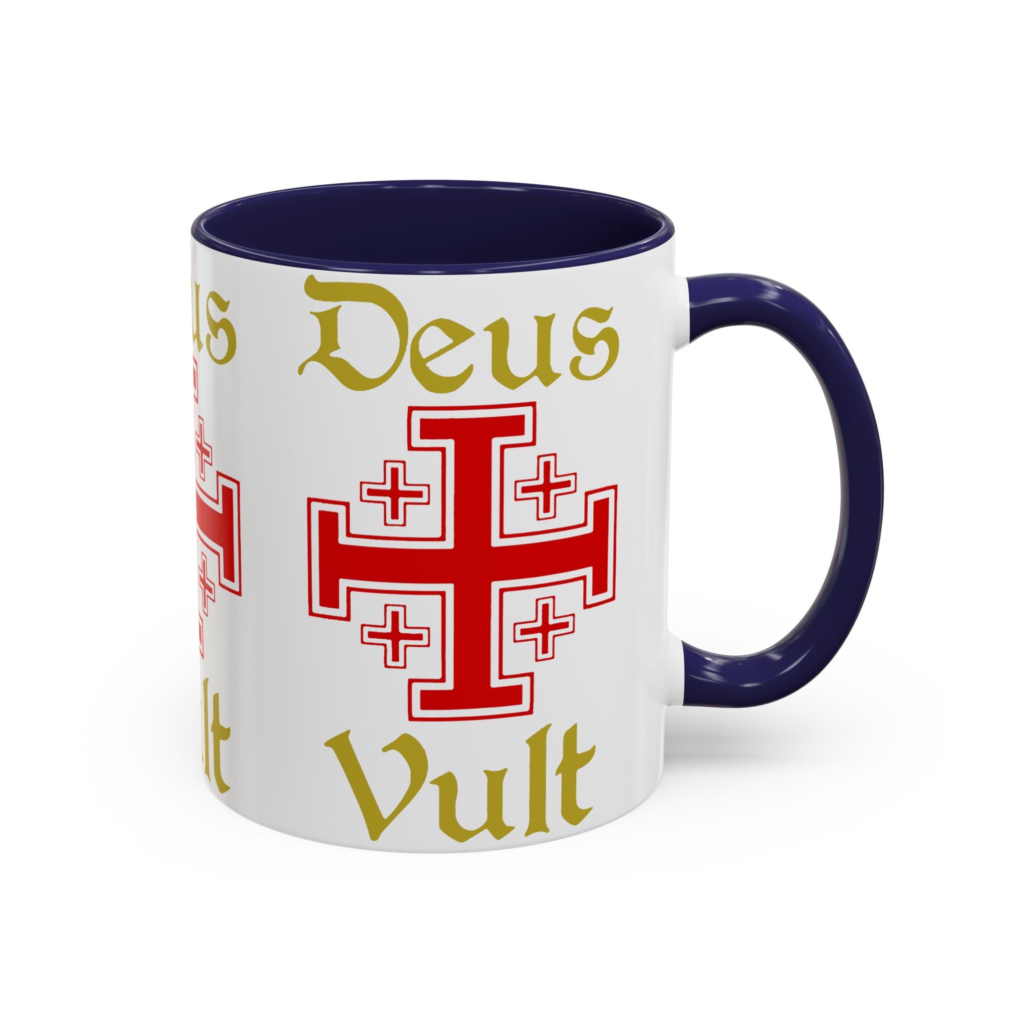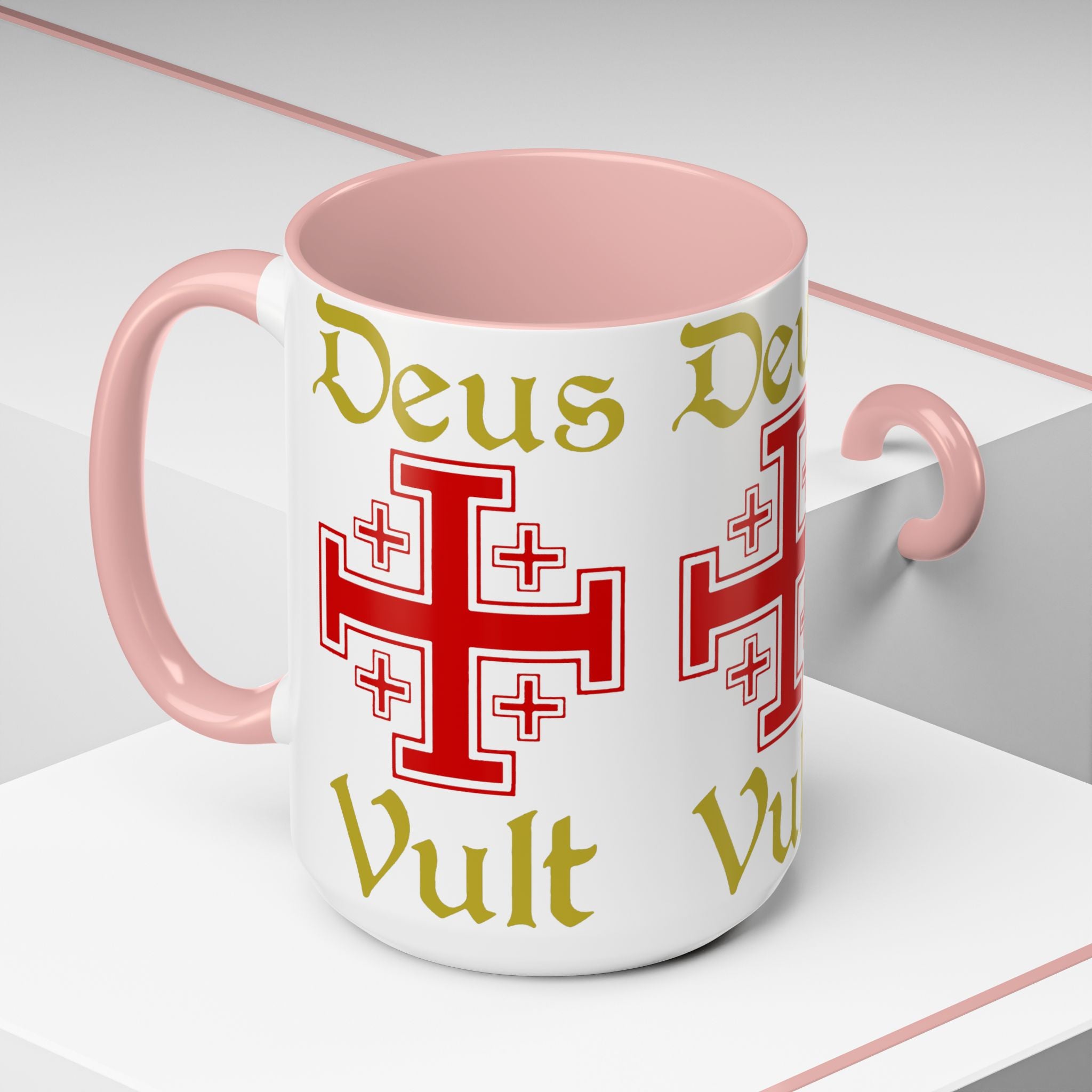 The Deus Vult Accent Coffee Mug combines powerful medieval symbolism with modern durability. Featuring the red Jerusalem cross with bold “Deus Vult” lettering in gold, this mug is more than just drinkware — it’s a declaration of courage, resilience, and faith.