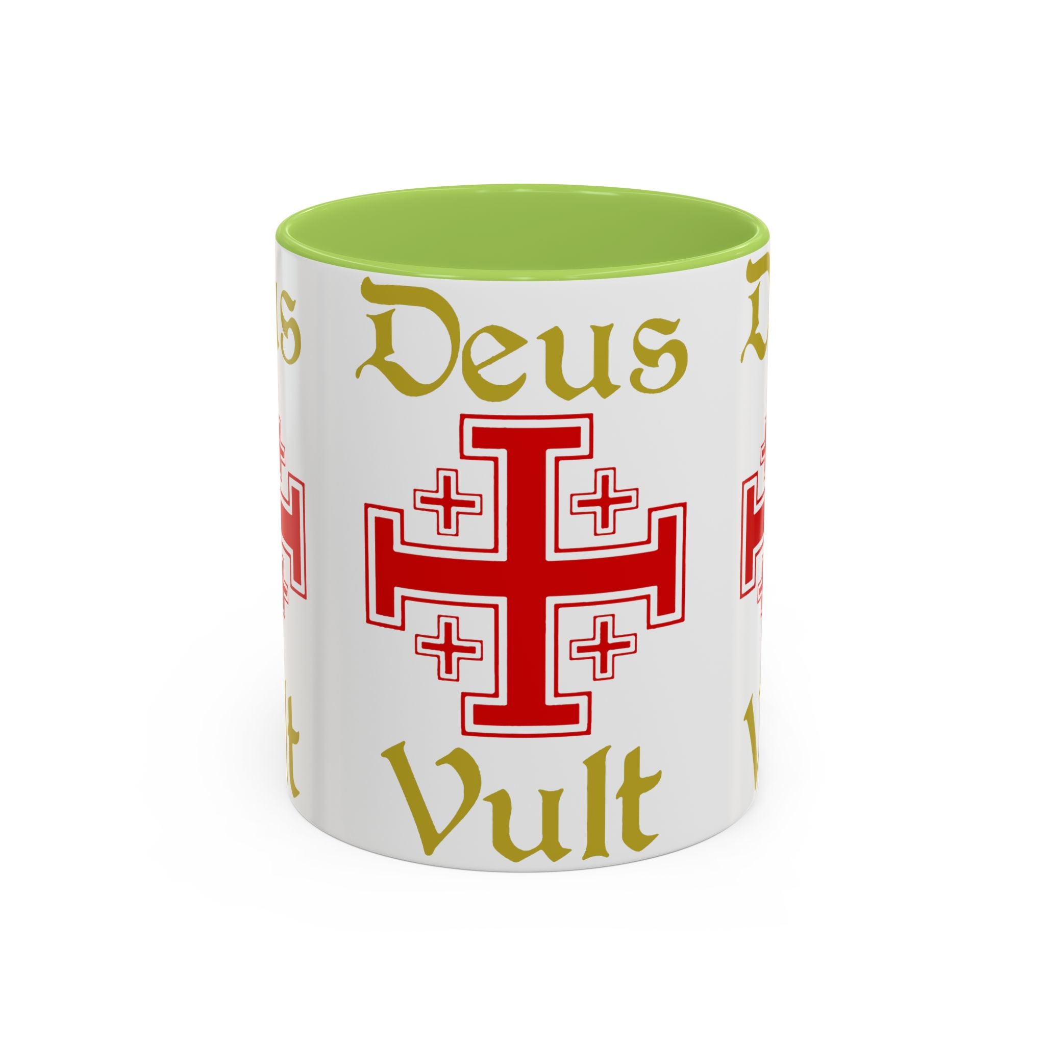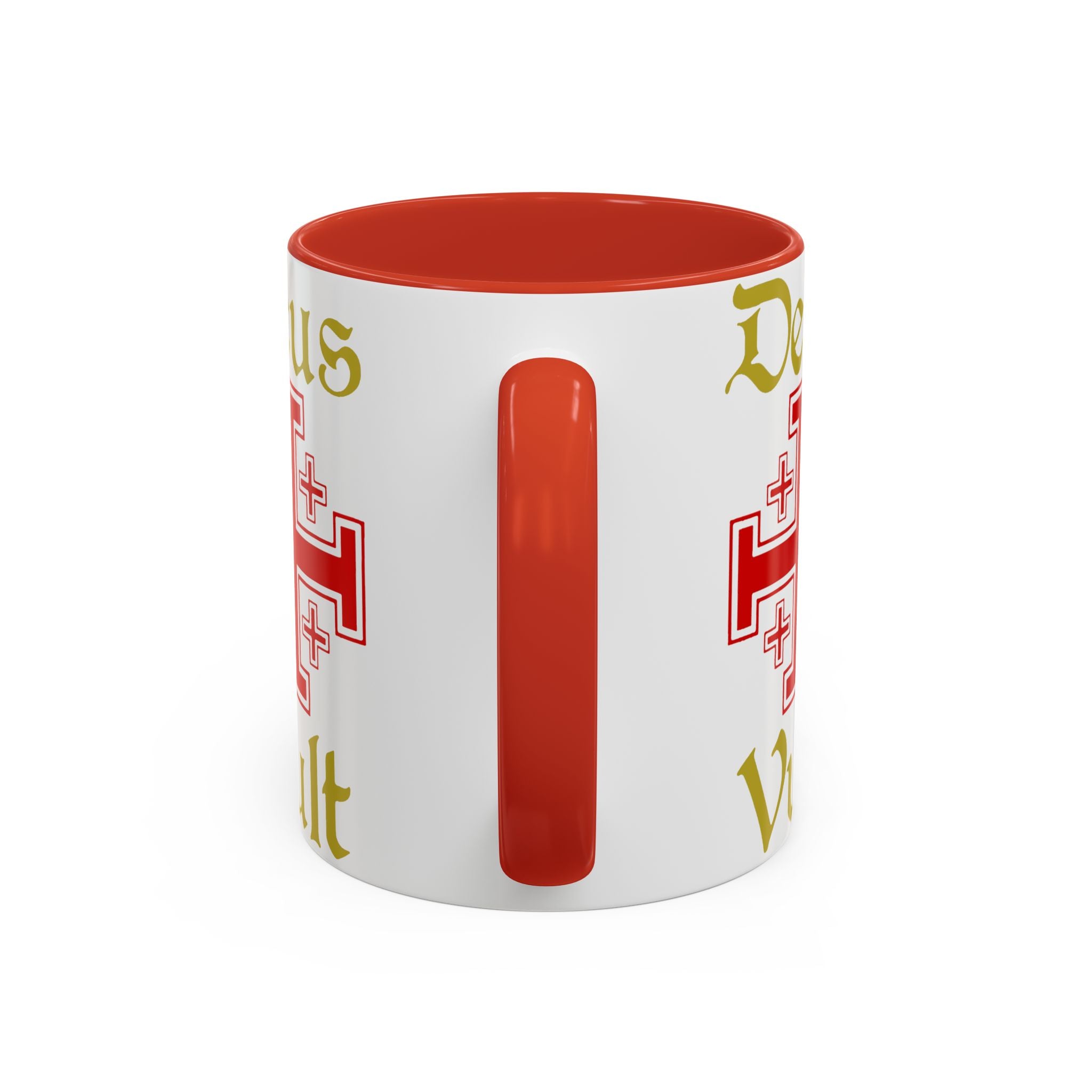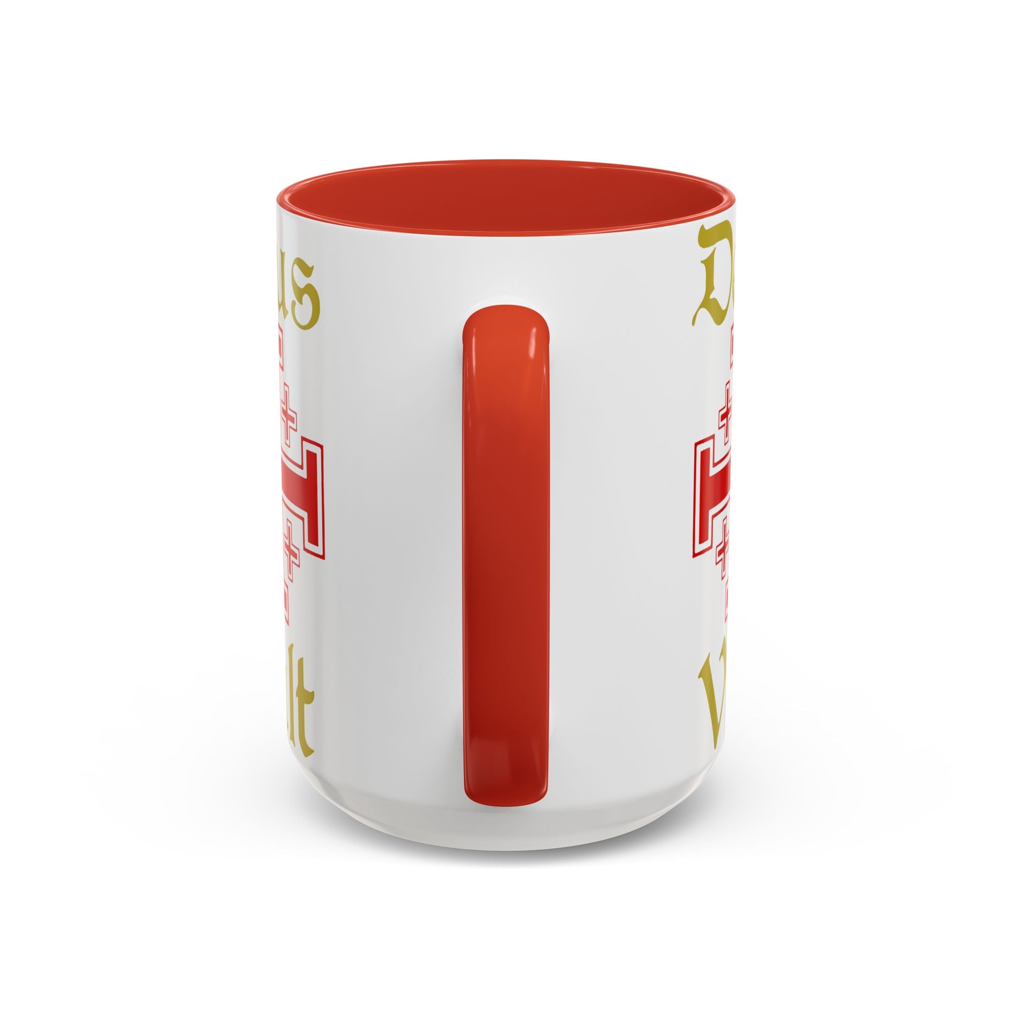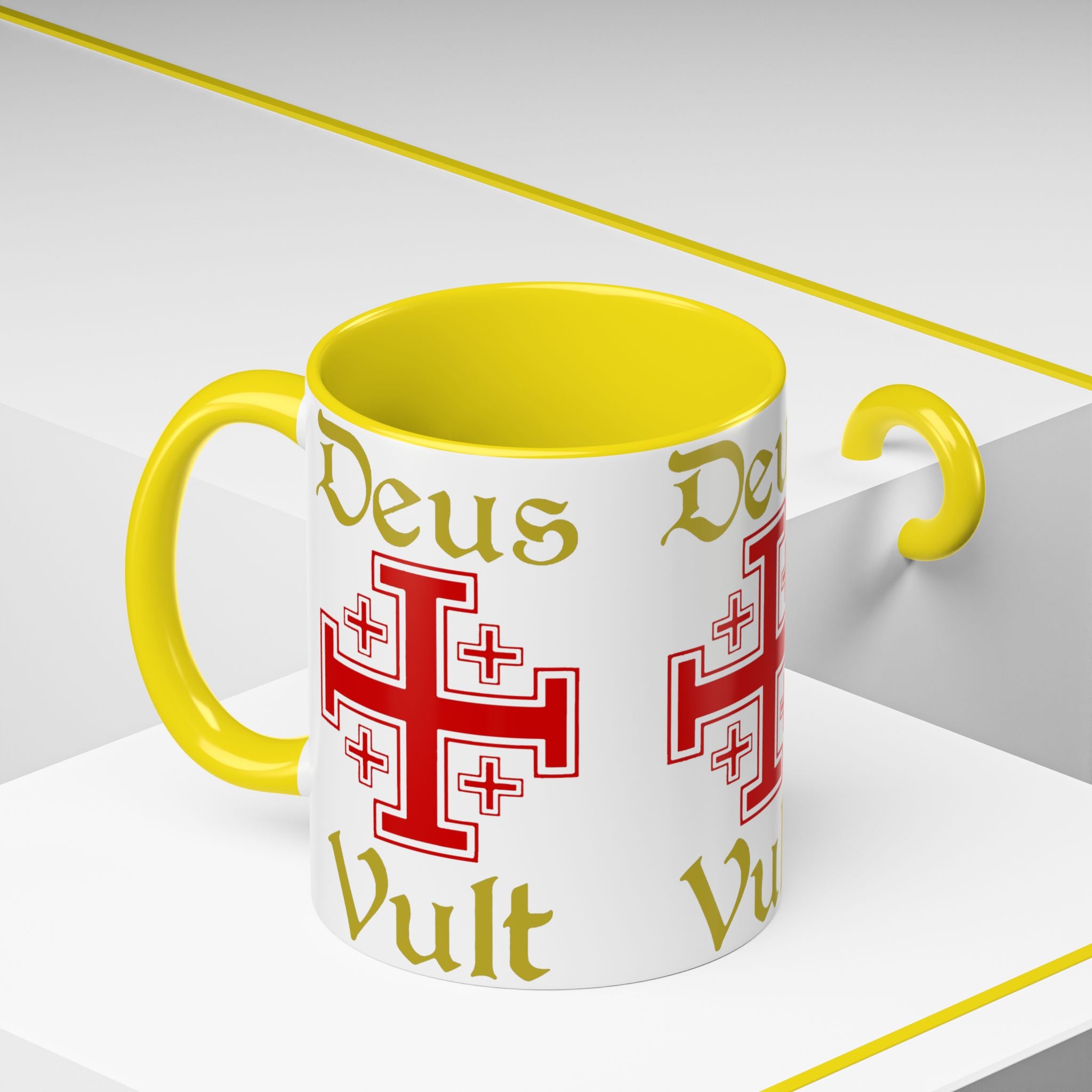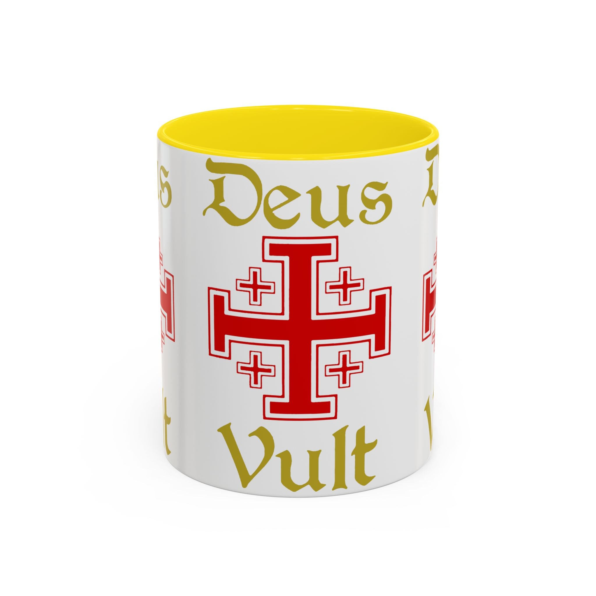 The Deus Vult Accent Coffee Mug combines powerful medieval symbolism with modern durability. Featuring the red Jerusalem cross with bold “Deus Vult” lettering in gold, this mug is more than just drinkware — it’s a declaration of courage, resilience, and faith.