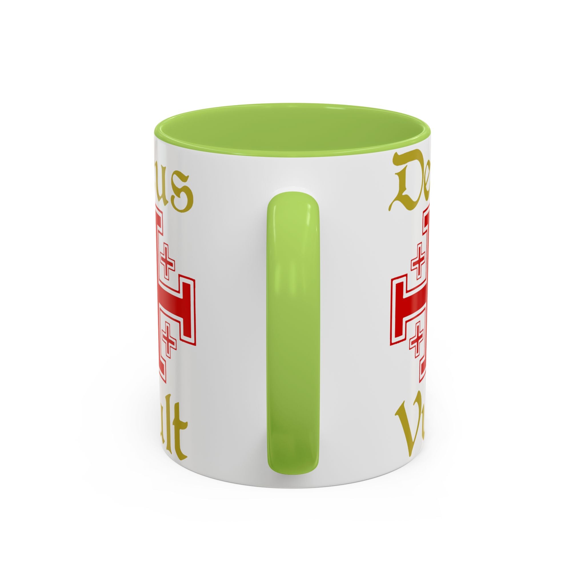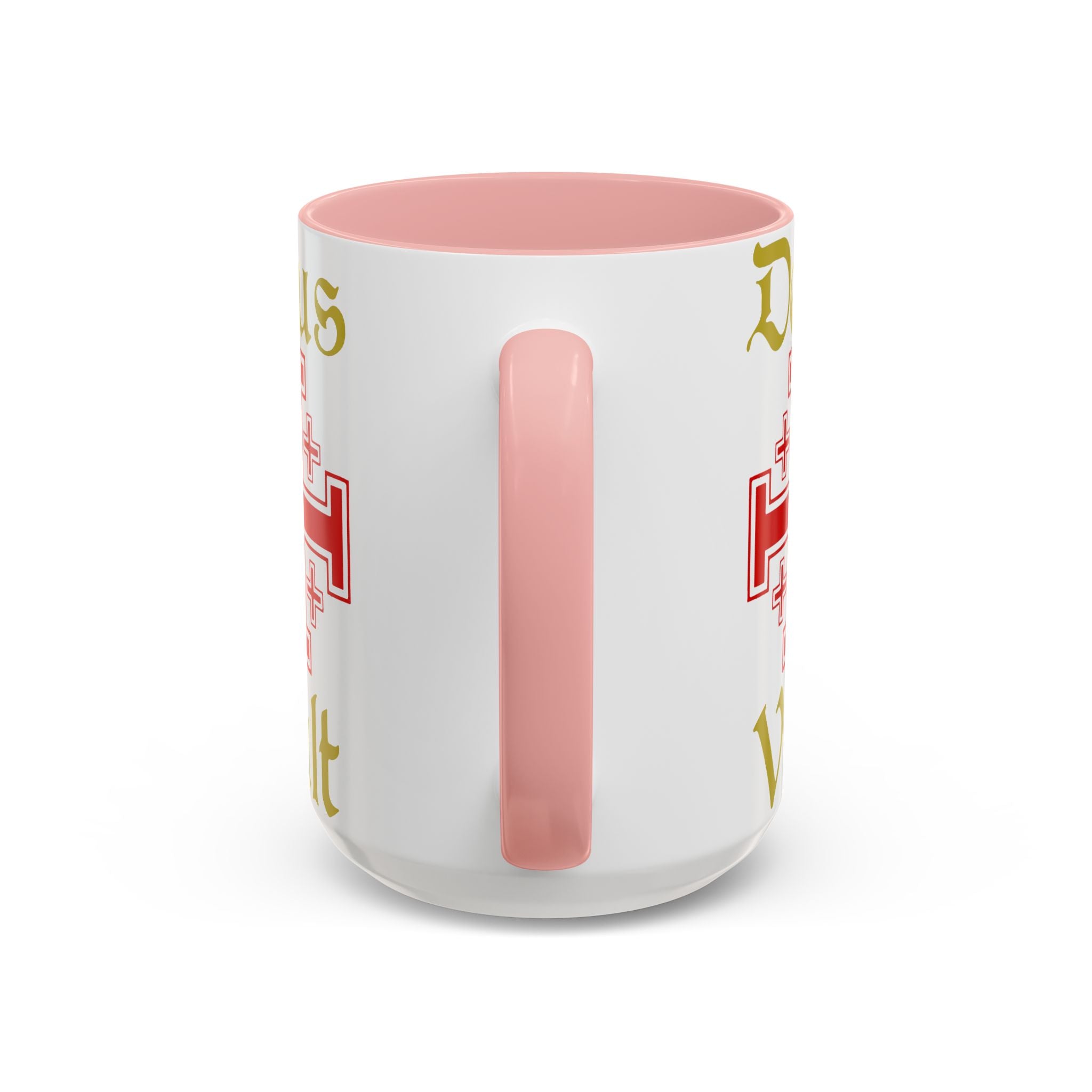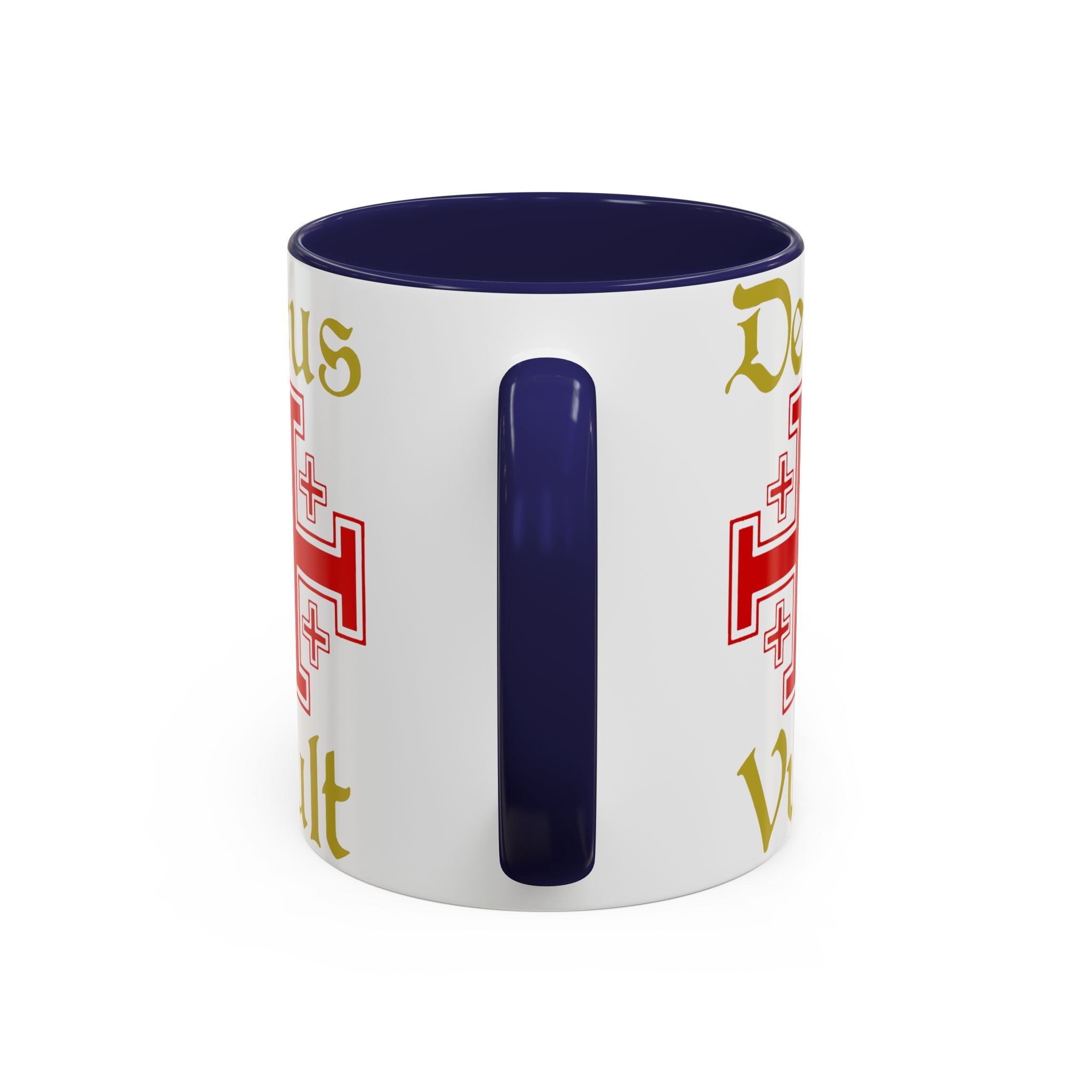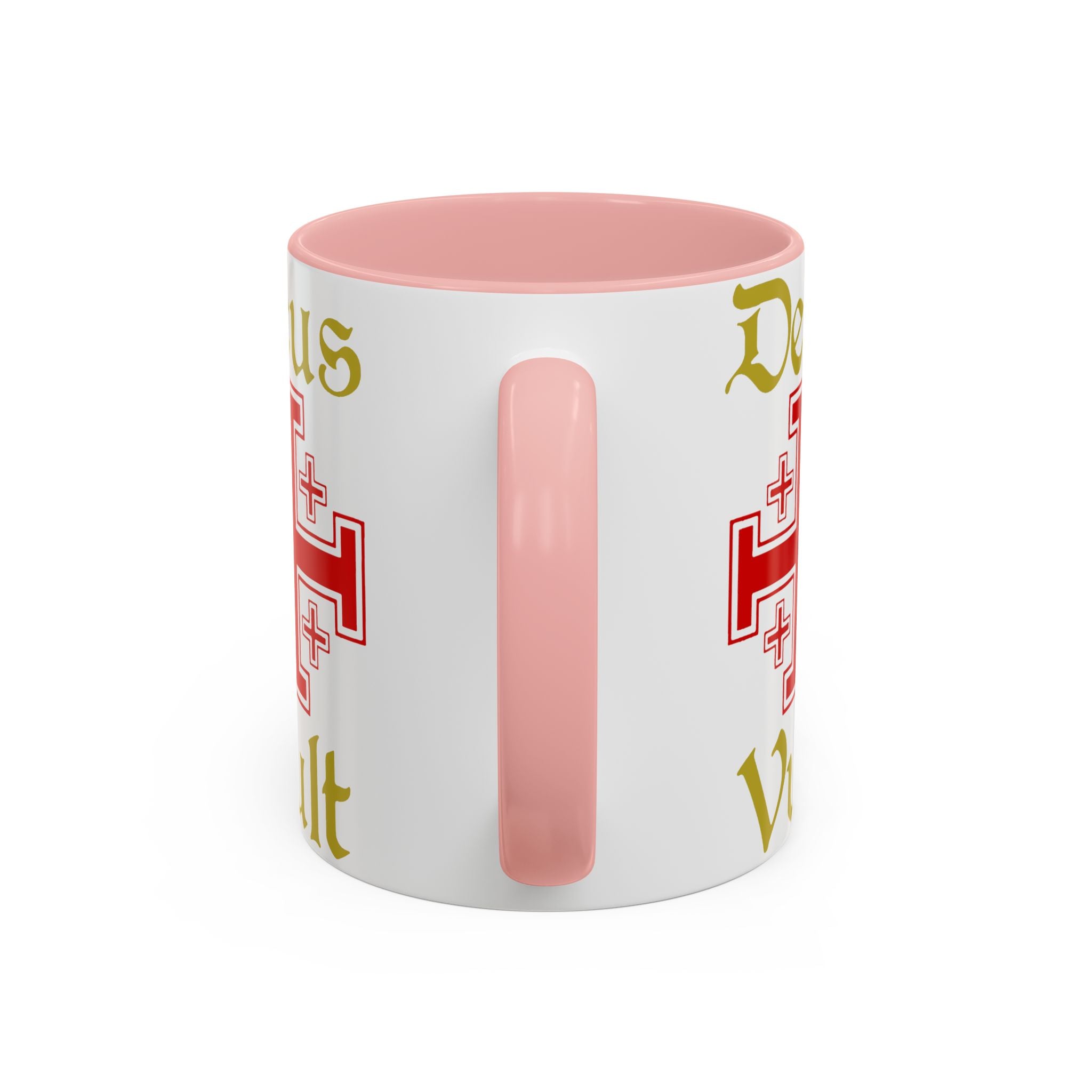The Deus Vult Accent Coffee Mug combines powerful medieval symbolism with modern durability. Featuring the red Jerusalem cross with bold “Deus Vult” lettering in gold, this mug is more than just drinkware — it’s a declaration of courage, resilience, and faith.