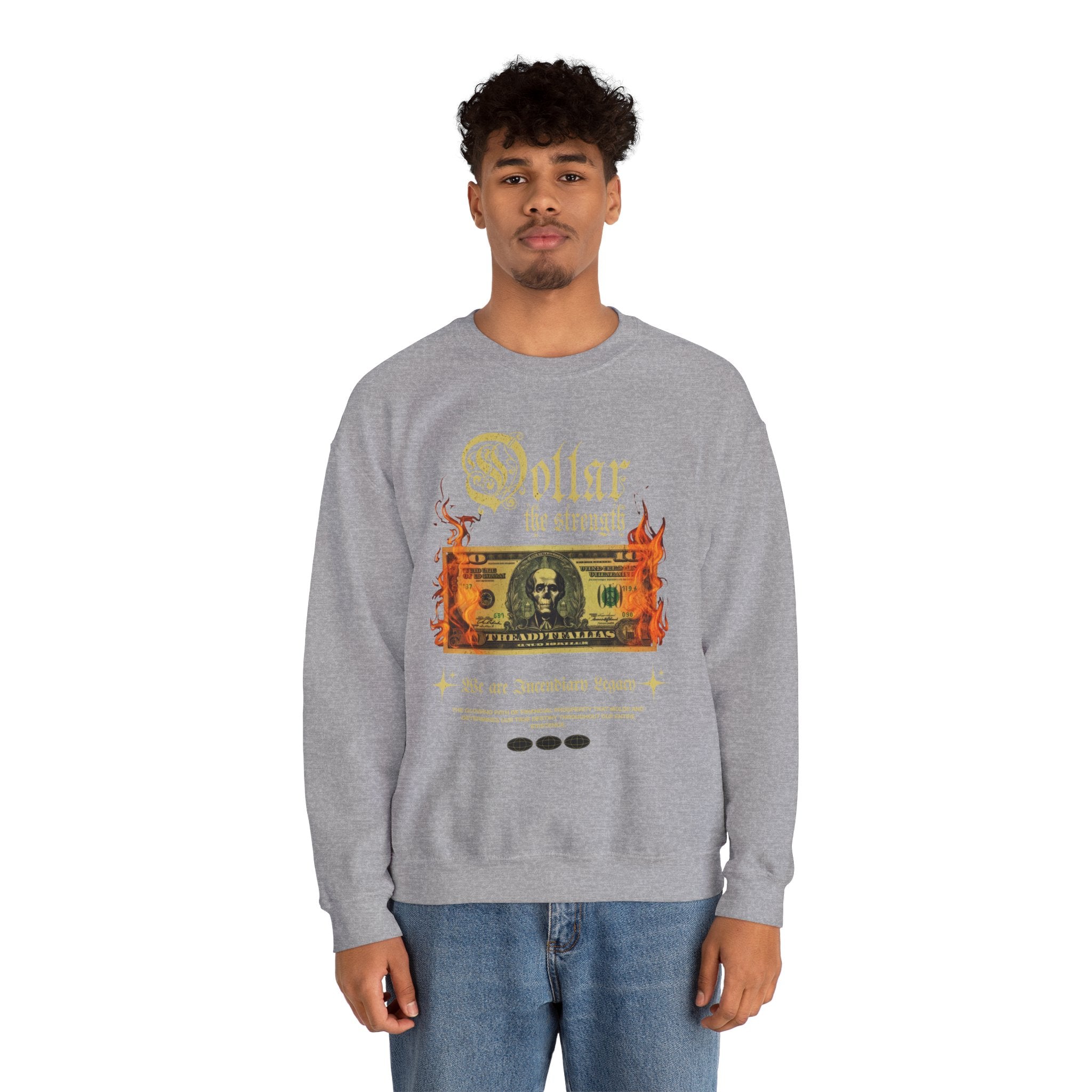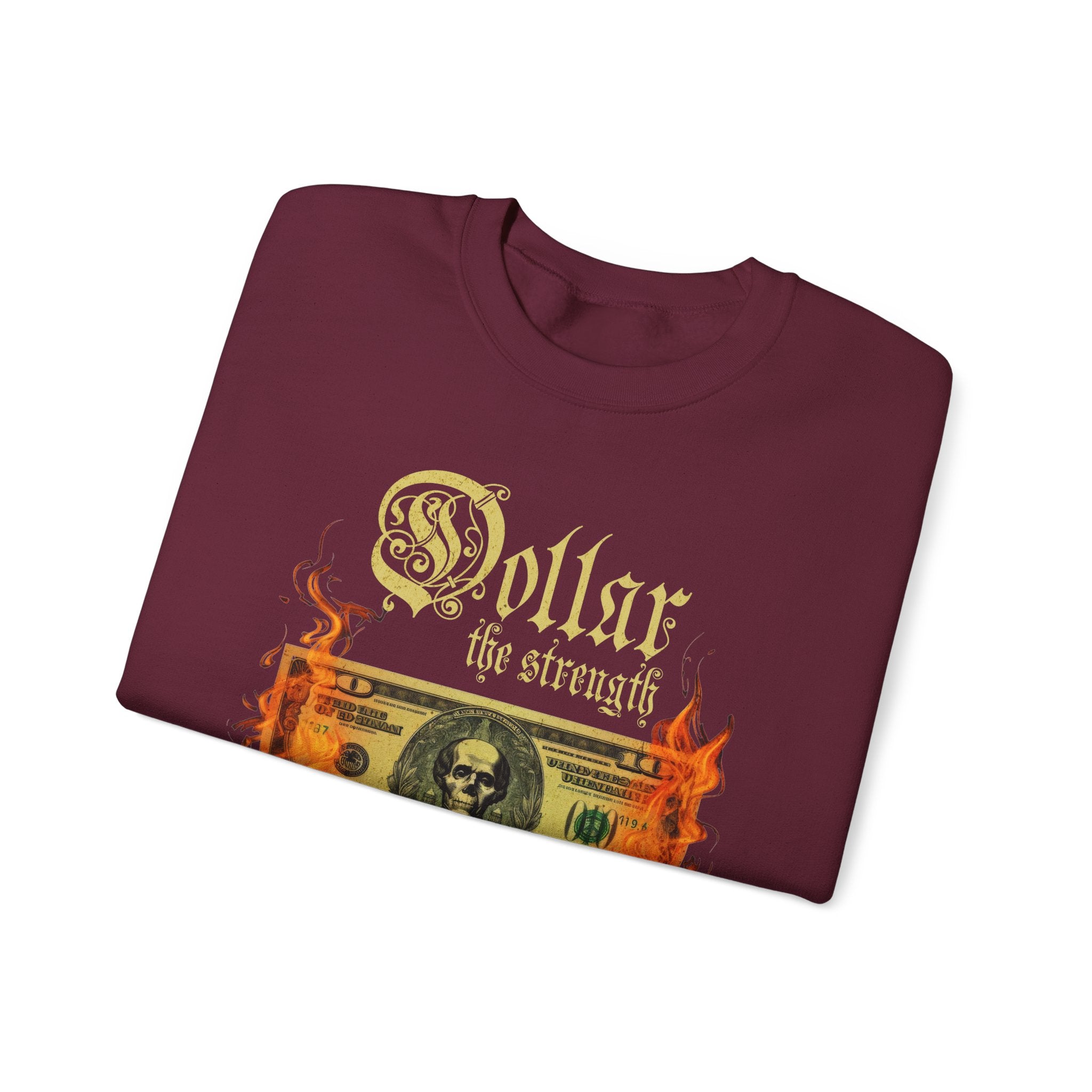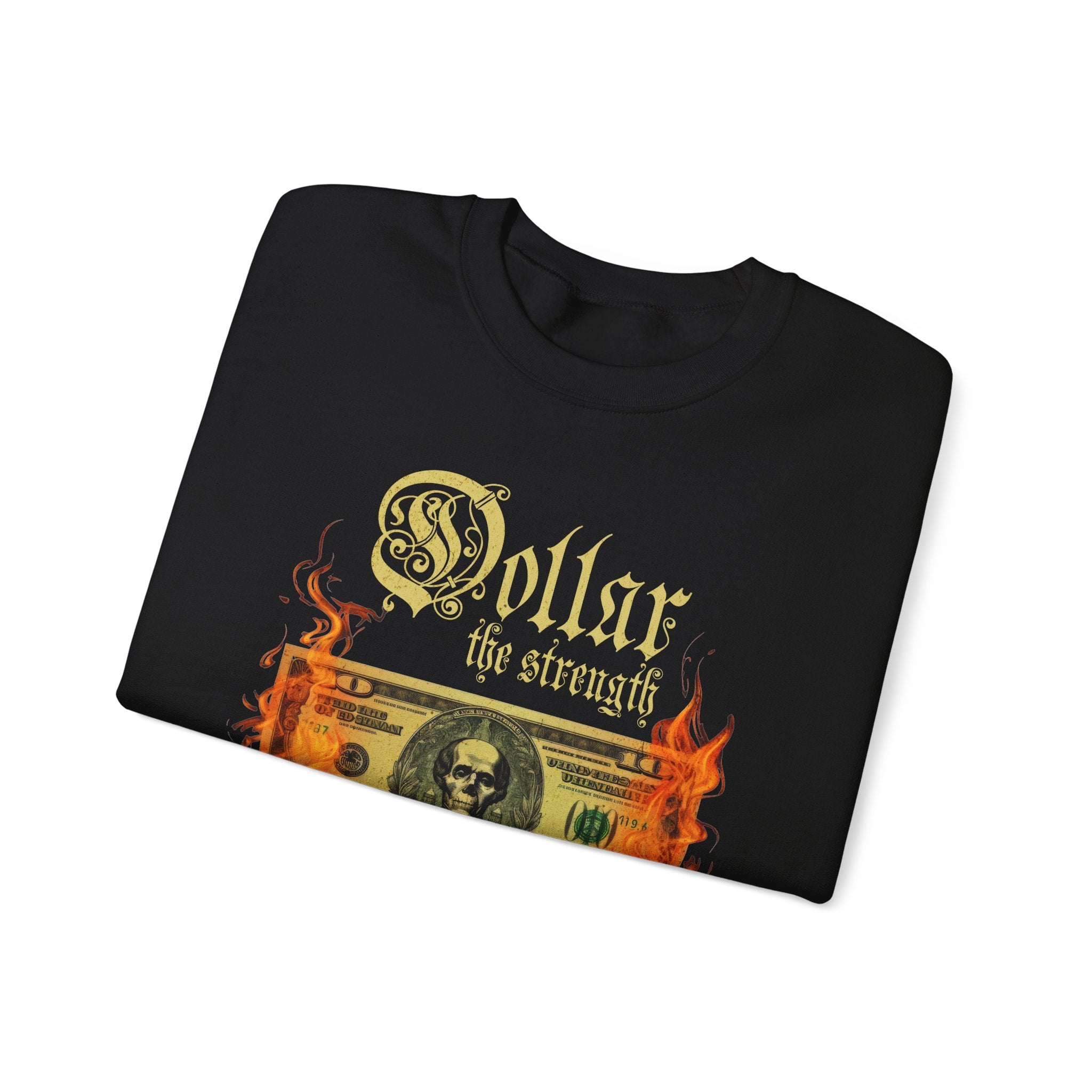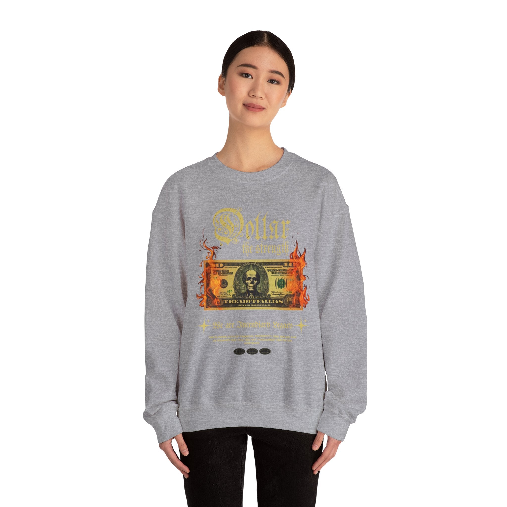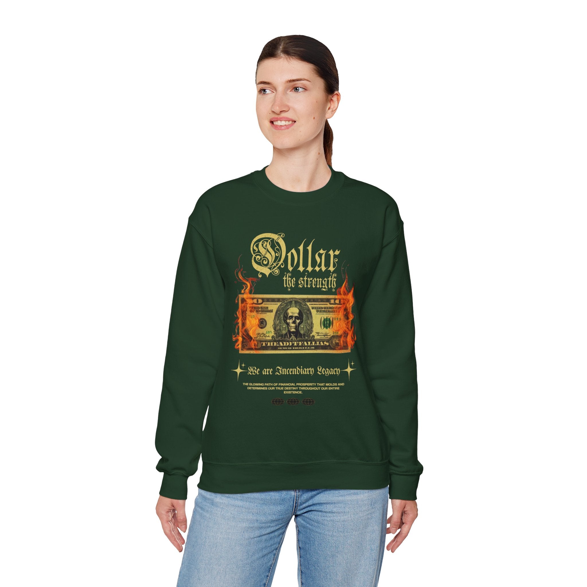 The Dollar The Strength Unisex Heavy Blend™ Crewneck Sweatshirt embodies the hustler’s mentality and fiery pursuit of success. With its burning dollar bill graphic in roaring flames, gothic-inspired lettering, and motivational slogan “We Are Incendiary Legacy”, this pullover is a powerful fashion statement for those who chase prosperity and legacy fearlessly.
