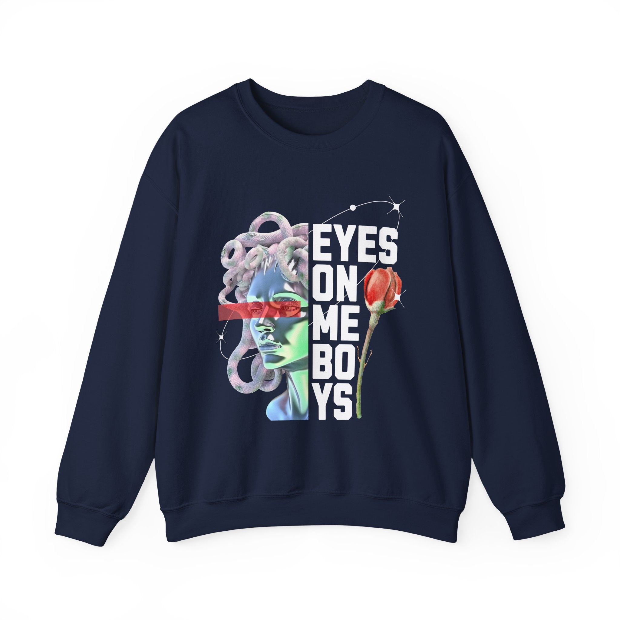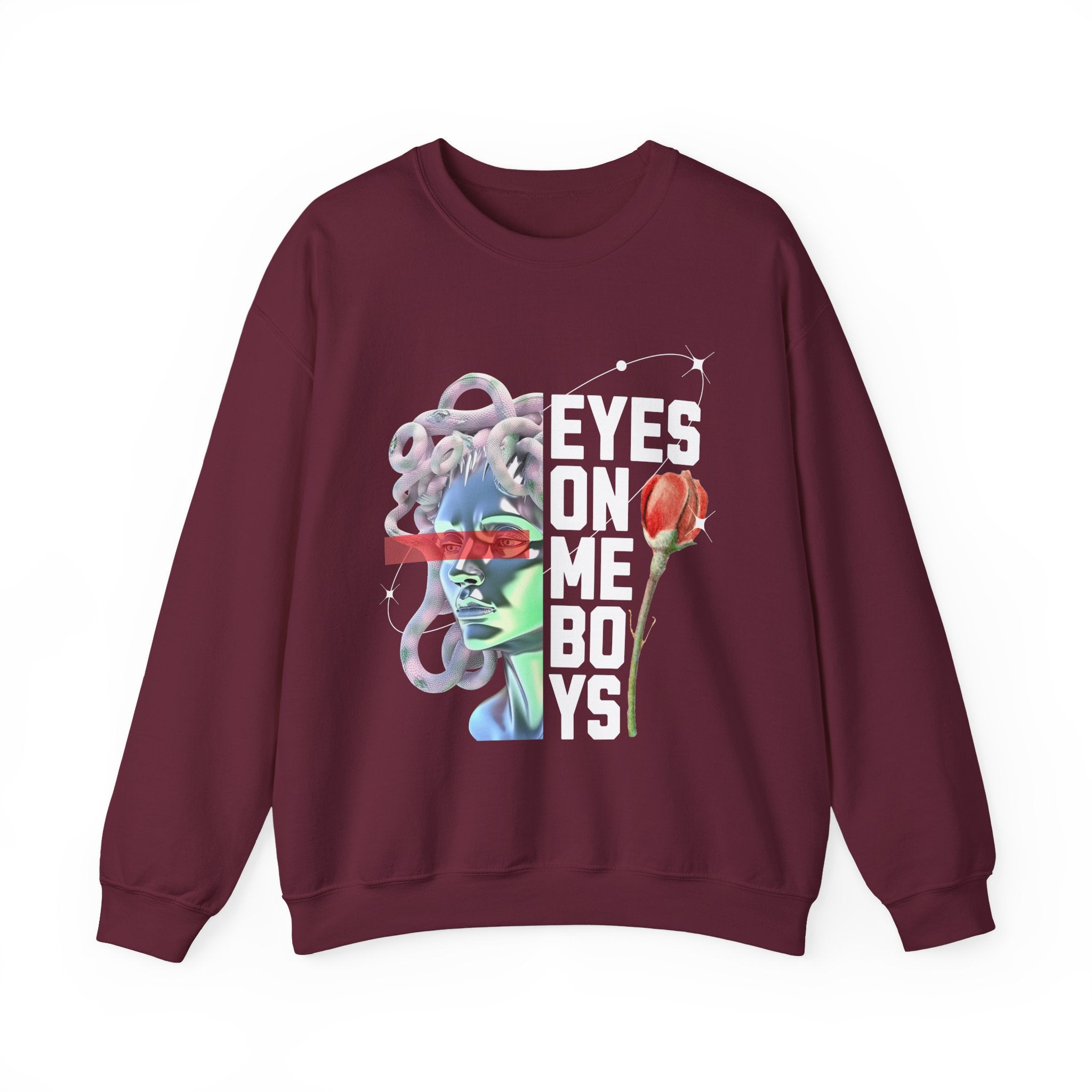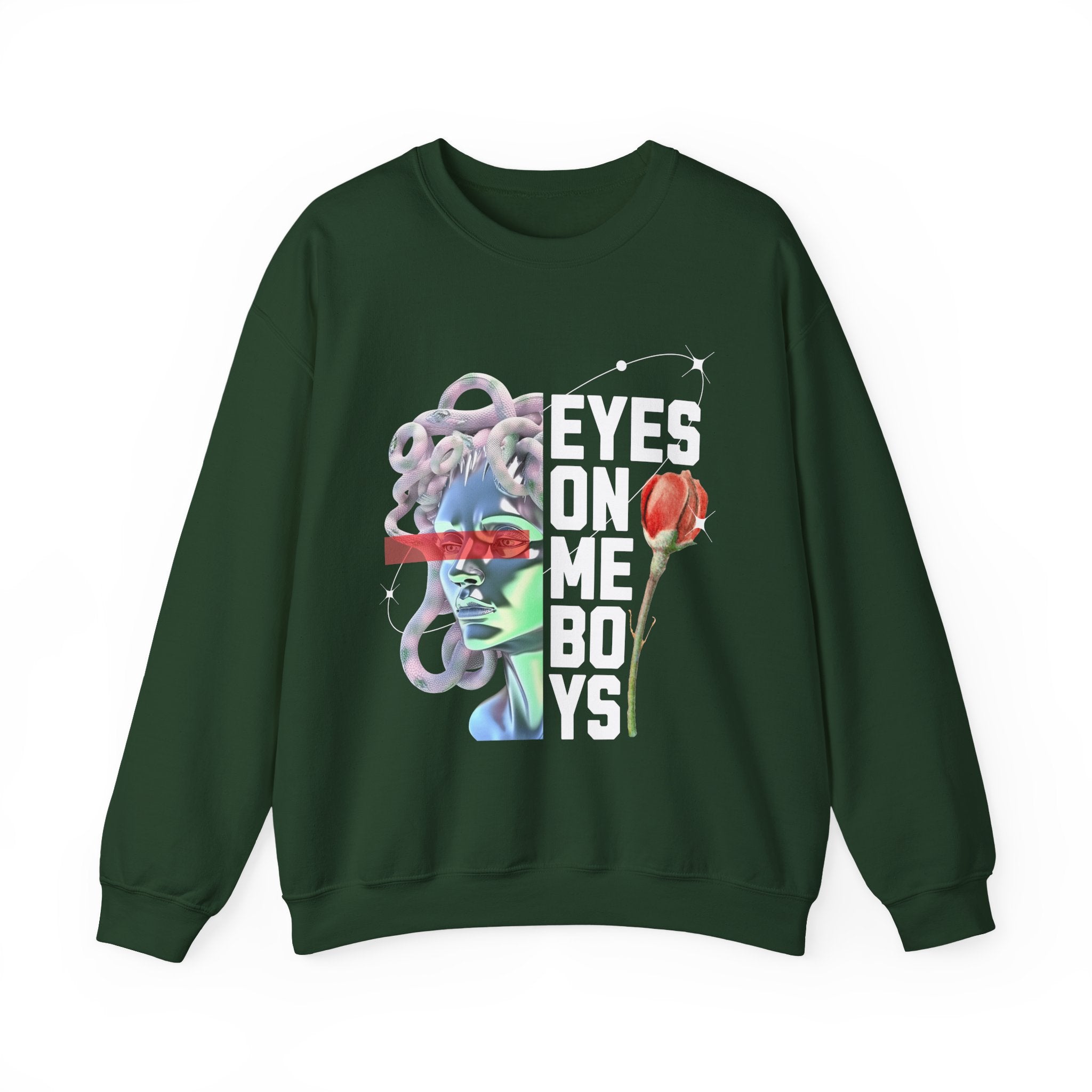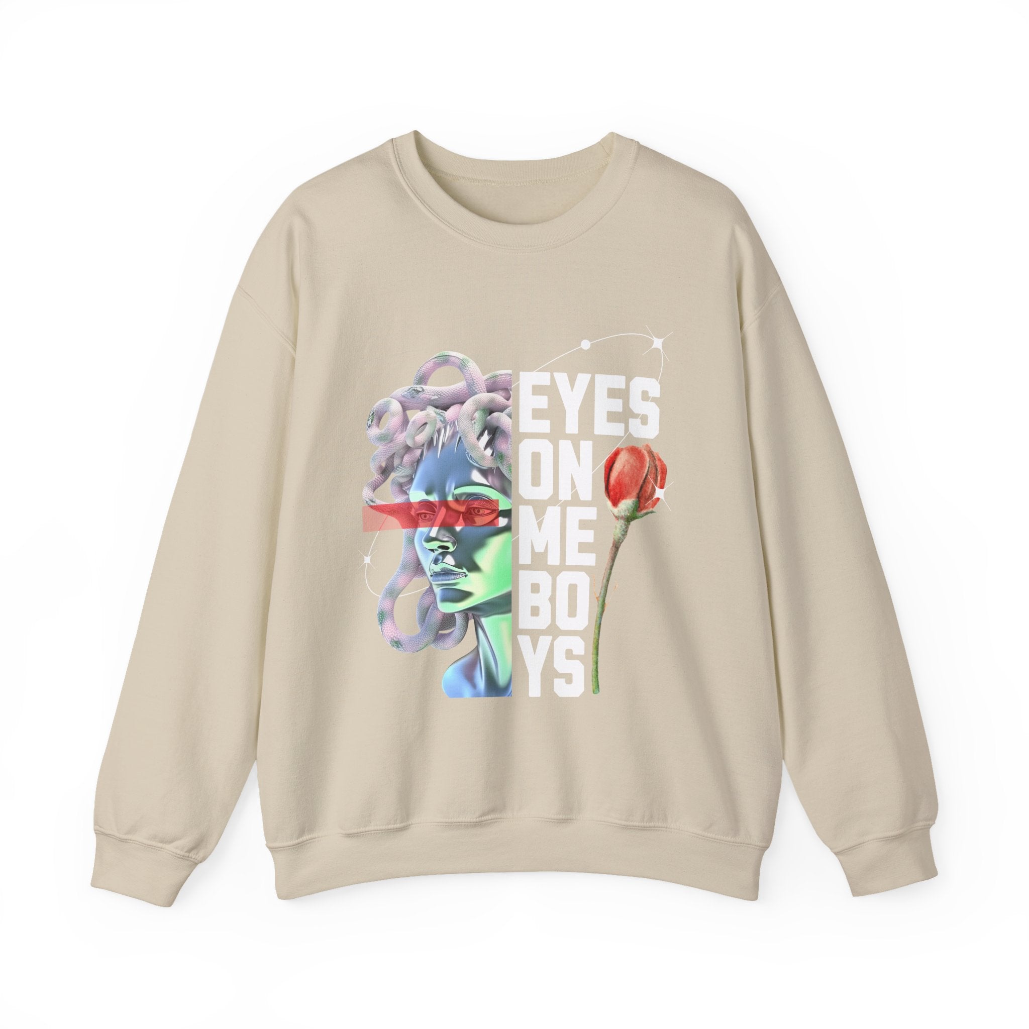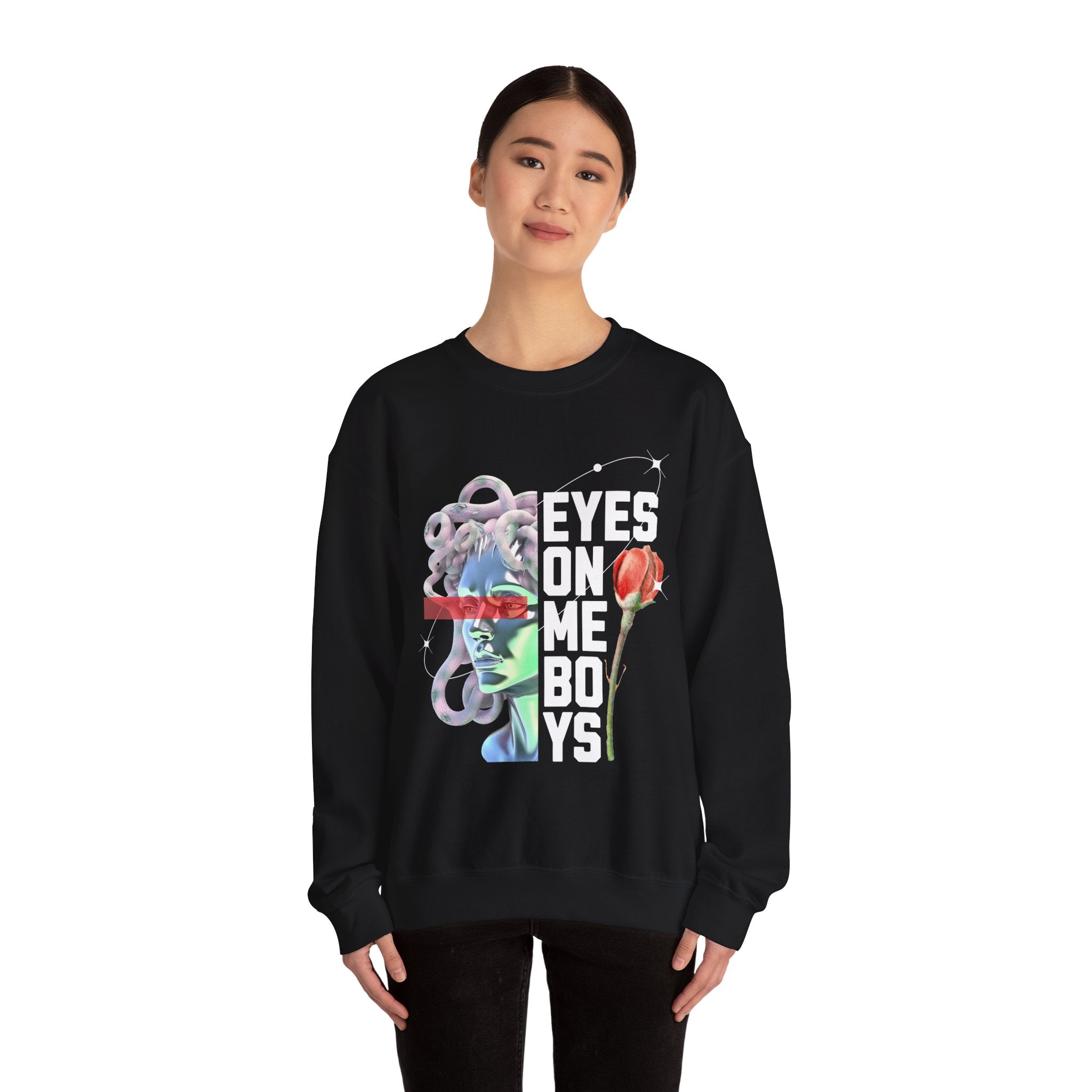Show off your fearless side with the Eyes On Me Boys Crewneck Sweatshirt, where mythology meets bold streetwear. Featuring a striking Medusa-inspired design, this sweatshirt embodies empowerment, confidence, and individuality. The glowing eyes and powerful aesthetic make this more than just apparel—it’s a statement of self-expression.