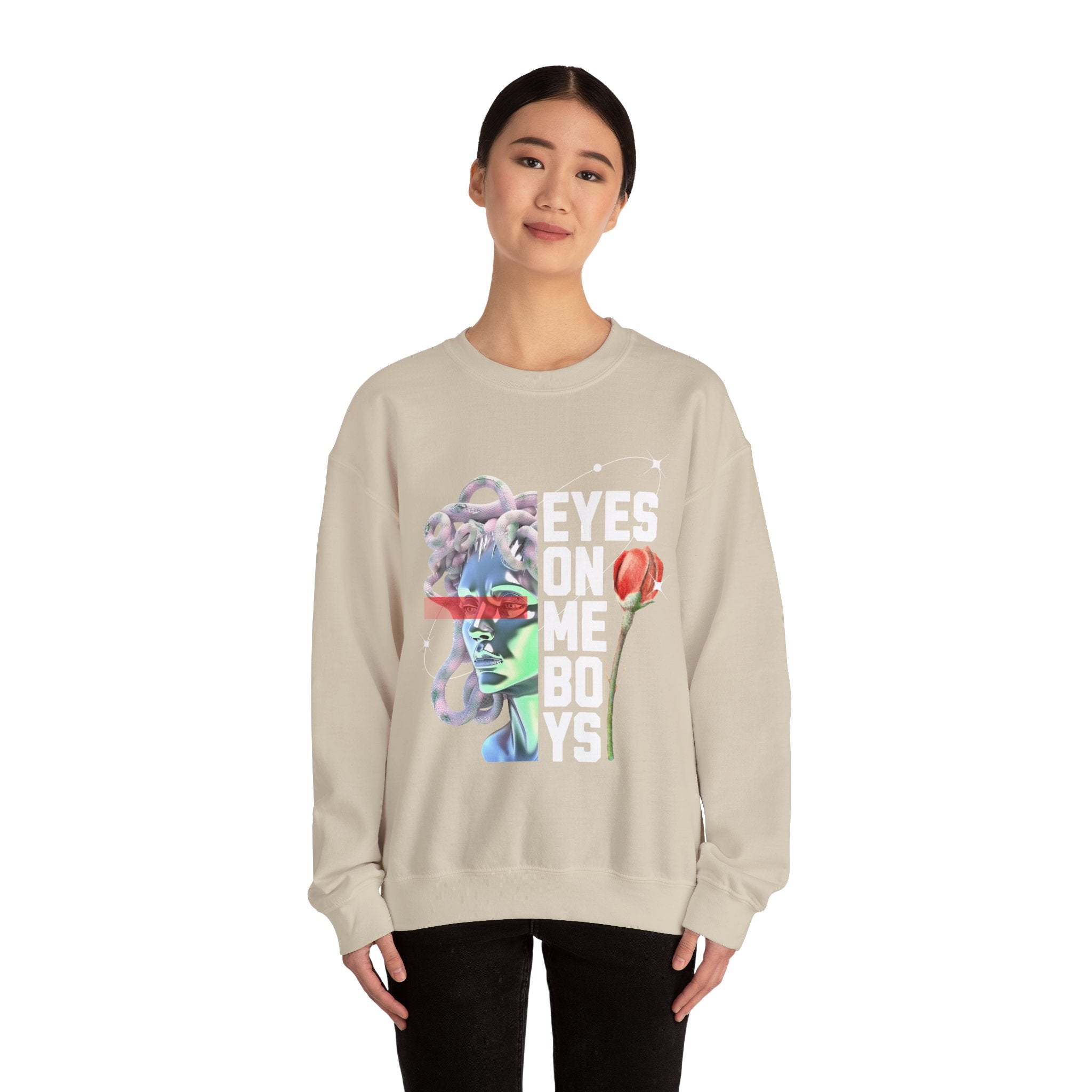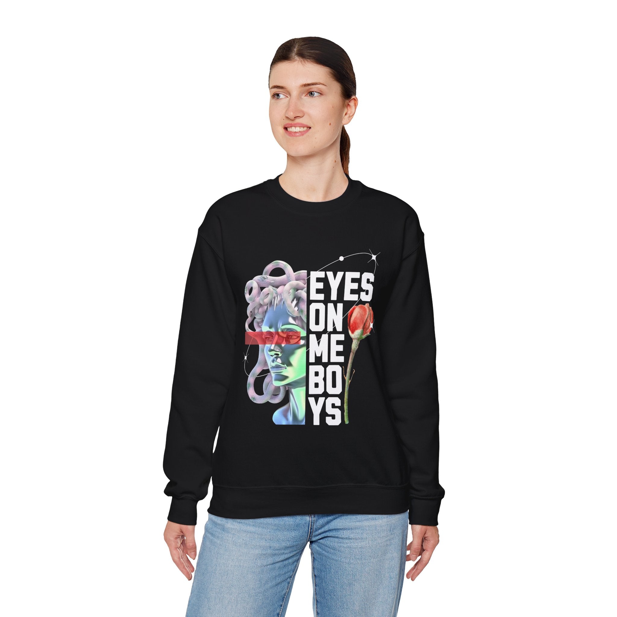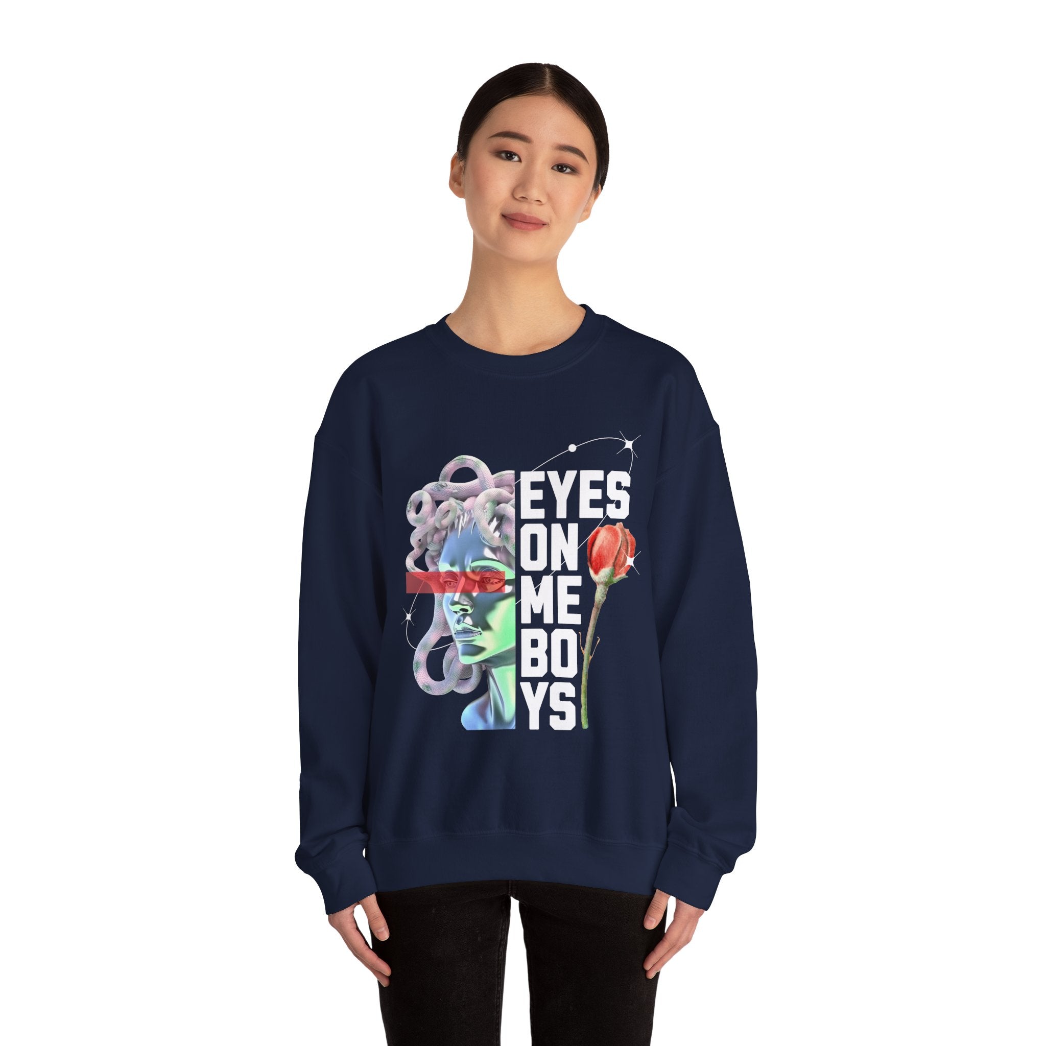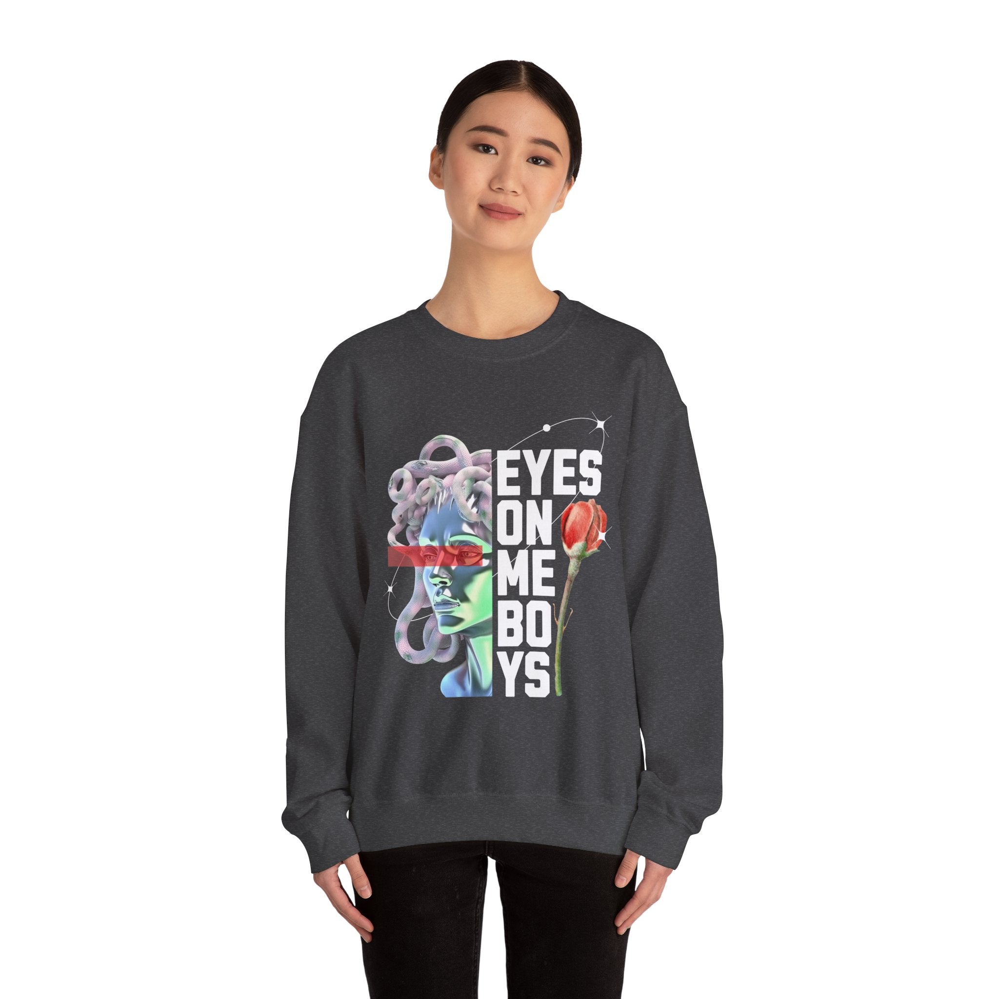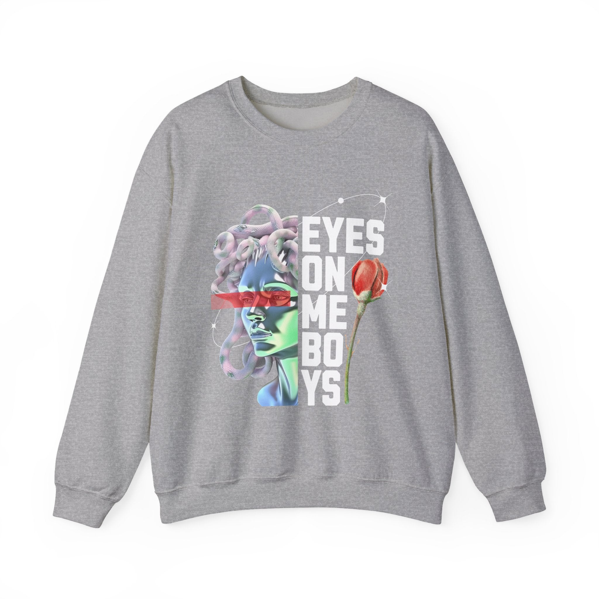 Show off your fearless side with the Eyes On Me Boys Crewneck Sweatshirt, where mythology meets bold streetwear. Featuring a striking Medusa-inspired design, this sweatshirt embodies empowerment, confidence, and individuality. The glowing eyes and powerful aesthetic make this more than just apparel—it’s a statement of self-expression.
