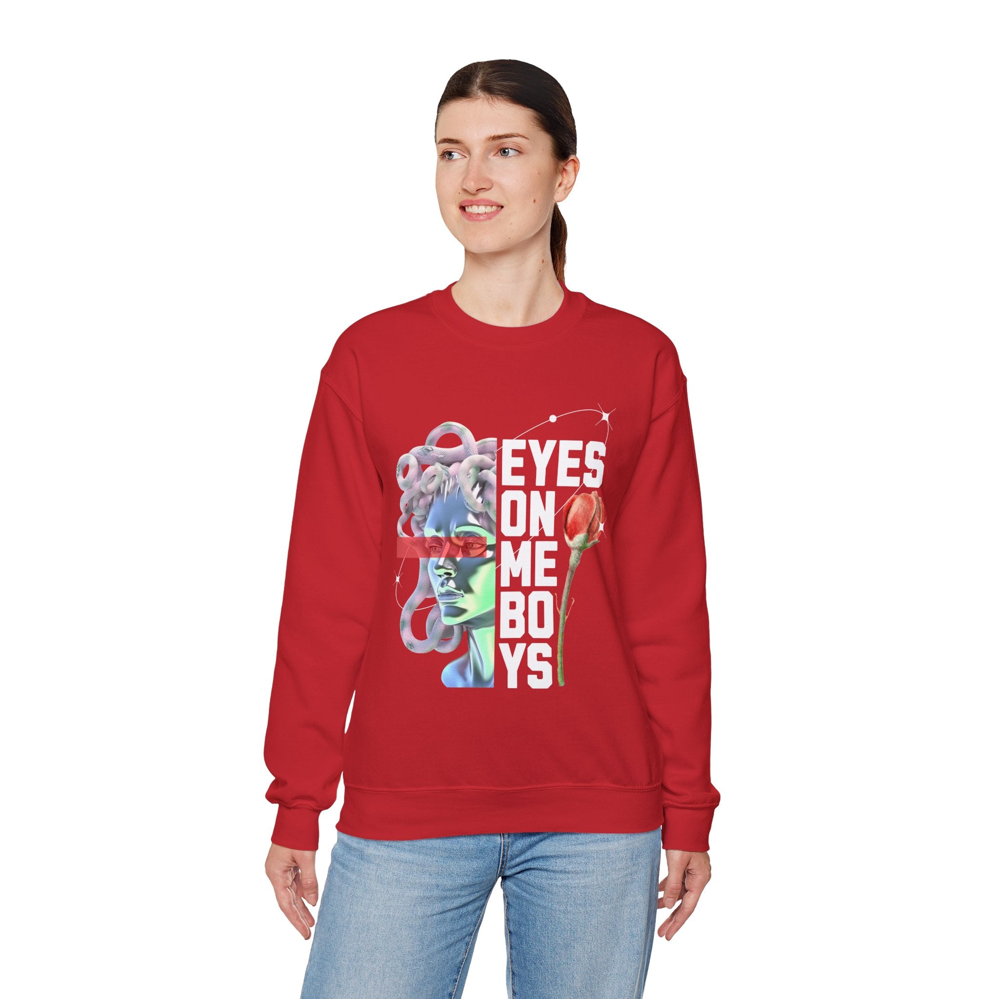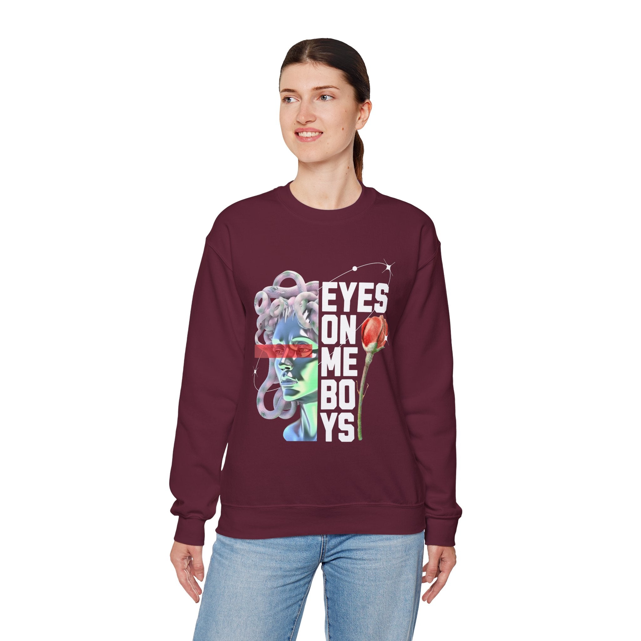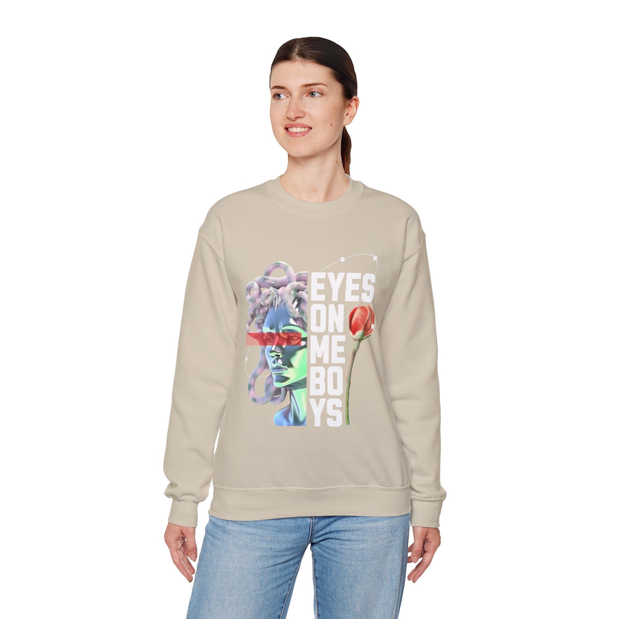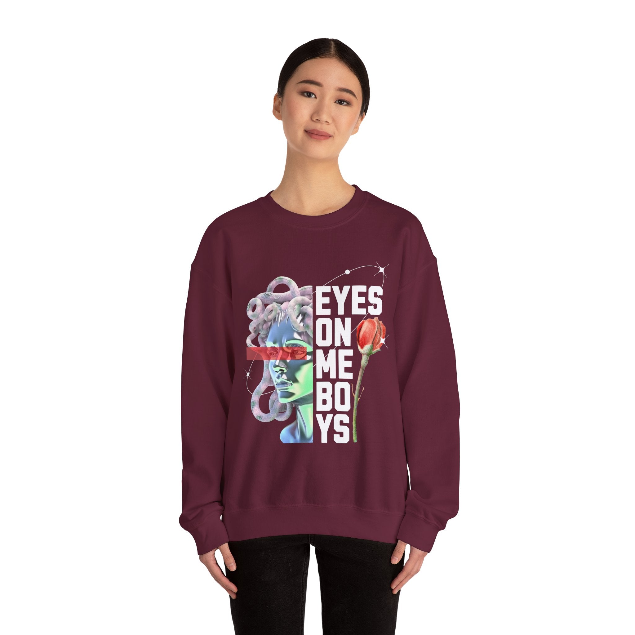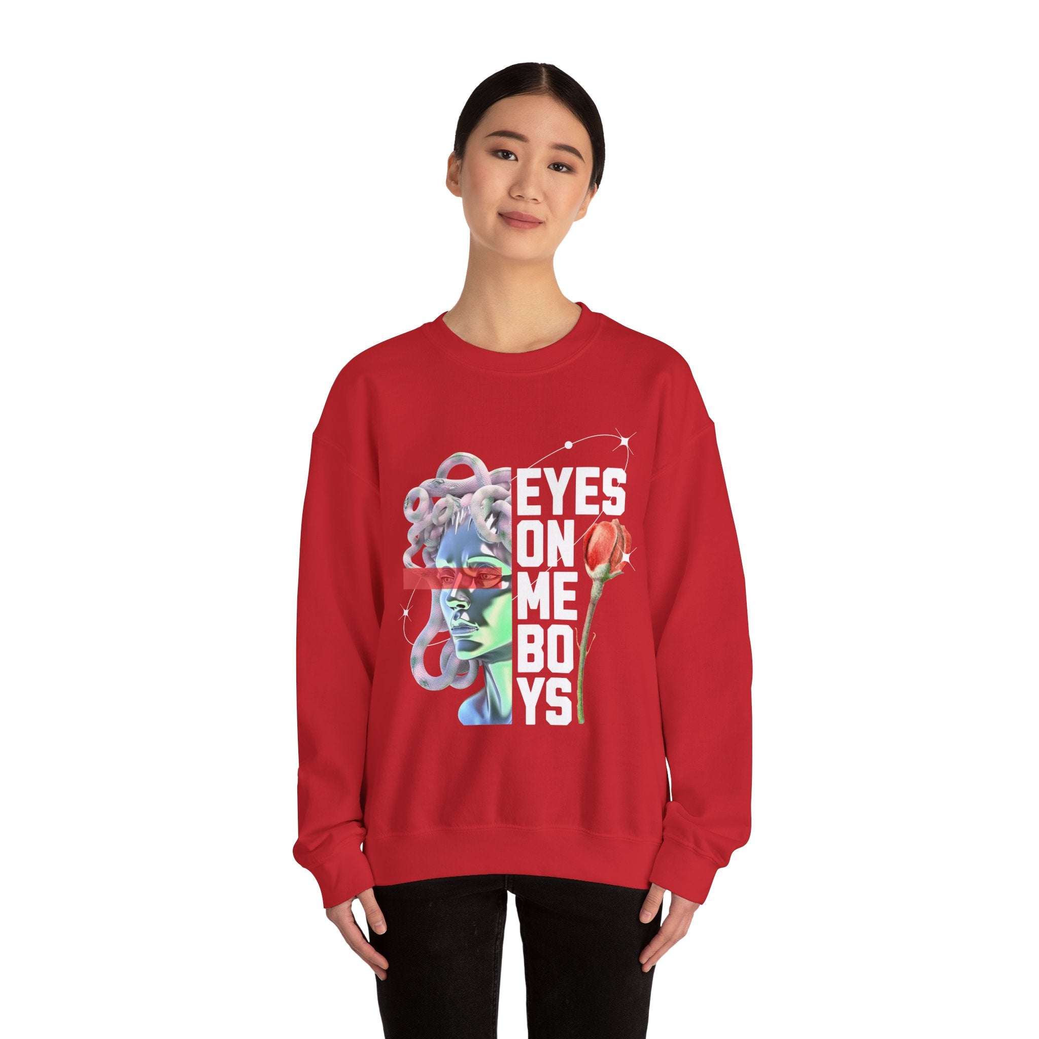 Show off your fearless side with the Eyes On Me Boys Crewneck Sweatshirt, where mythology meets bold streetwear. Featuring a striking Medusa-inspired design, this sweatshirt embodies empowerment, confidence, and individuality. The glowing eyes and powerful aesthetic make this more than just apparel—it’s a statement of self-expression.