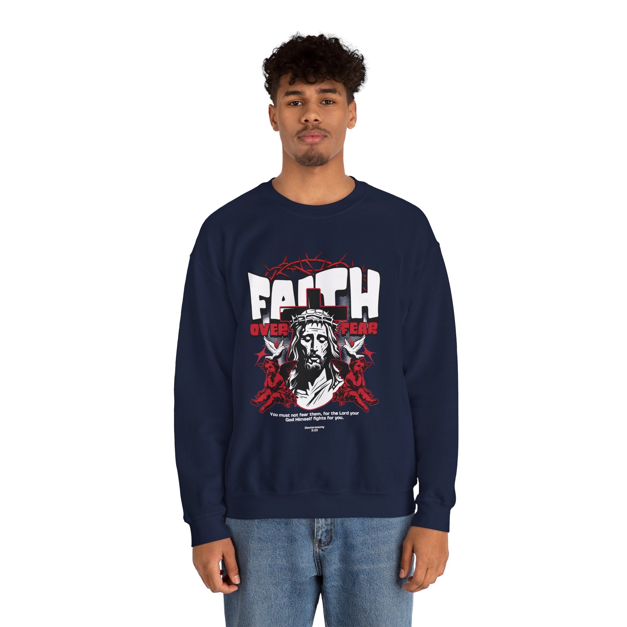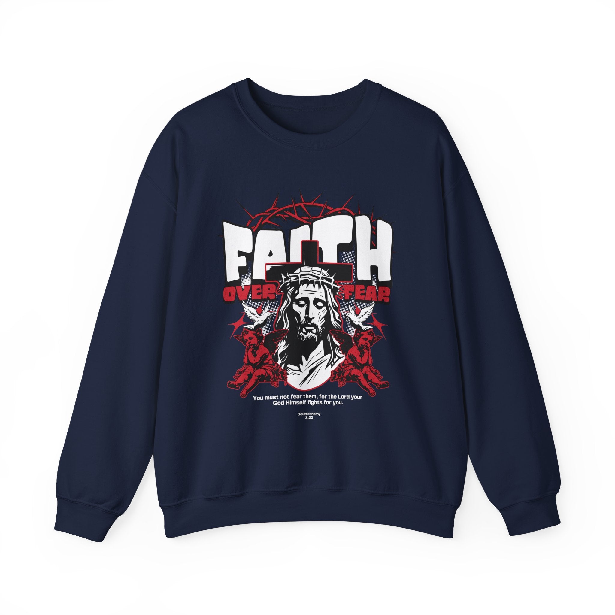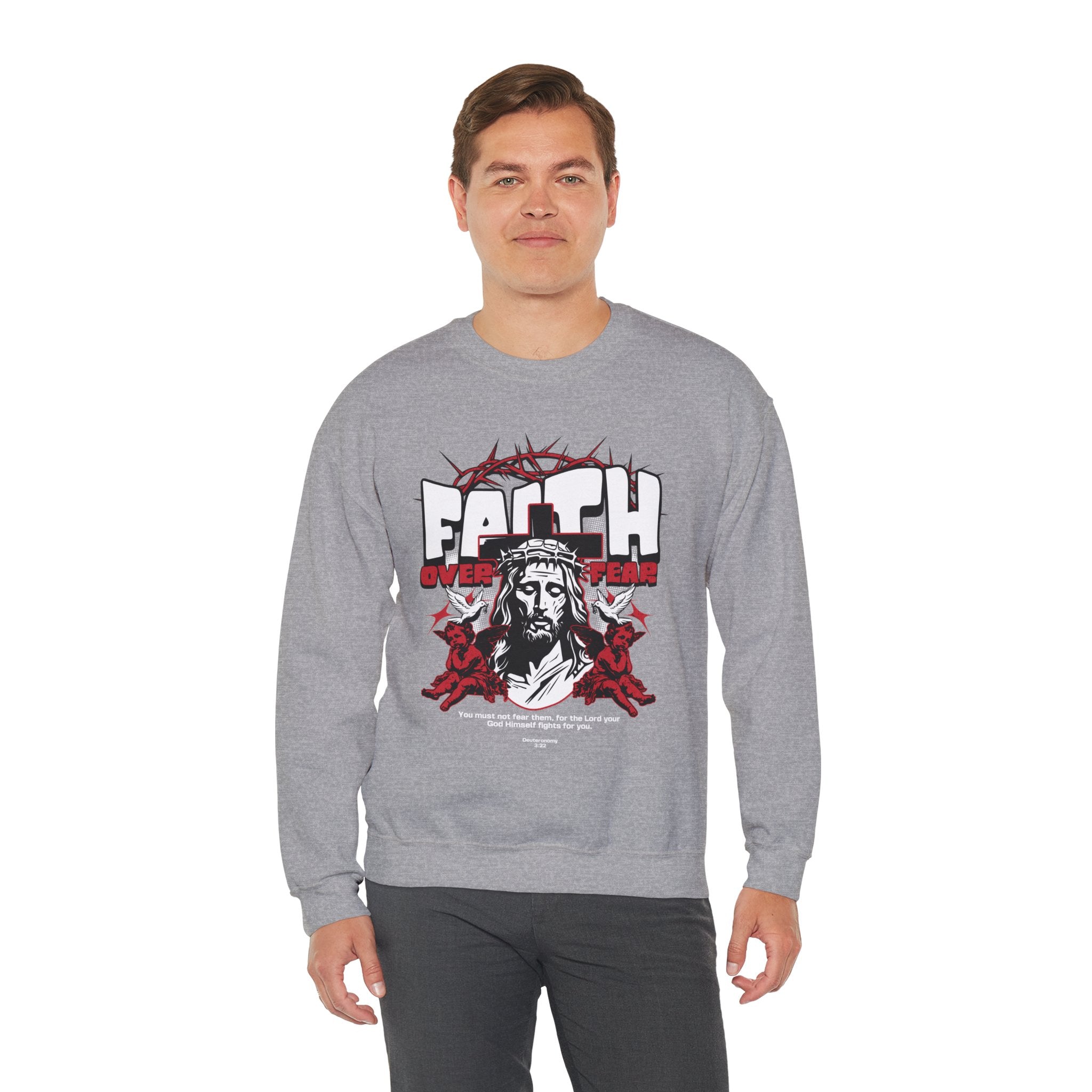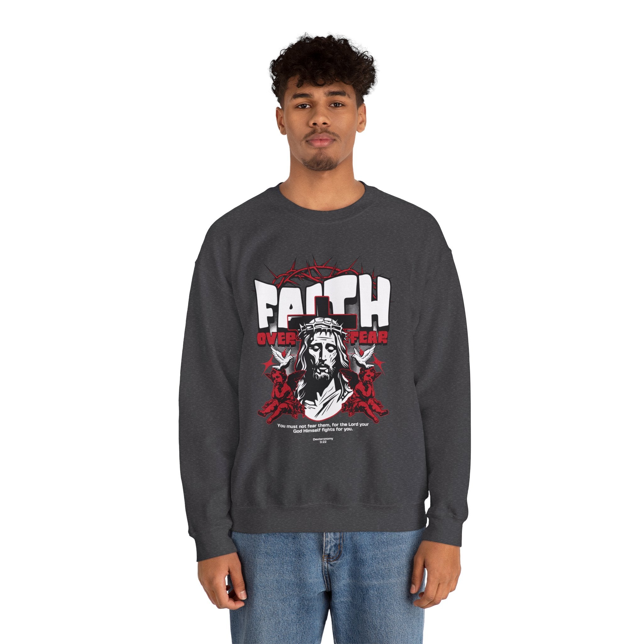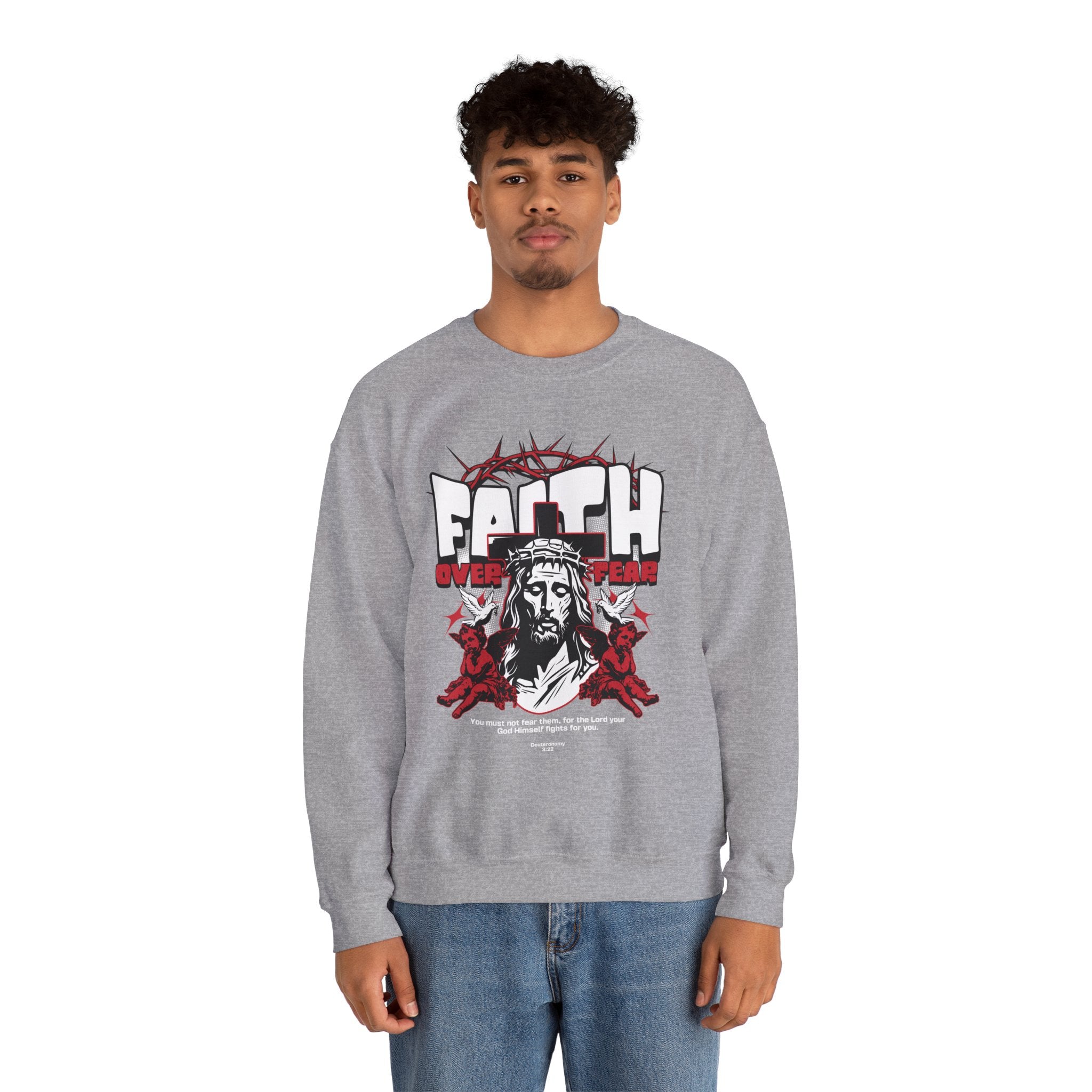 The Faith Over Fear Unisex Heavy Blend™ Crewneck Sweatshirt is a bold reminder that faith is stronger than fear. Featuring a striking image of Jesus with the crown of thorns, flanked by angels and paired with the verse “You must not fear them, for the Lord your God Himself fights for you” (Deuteronomy 3:22), this sweatshirt serves as a wearable testimony of courage, hope, and divine strength.
