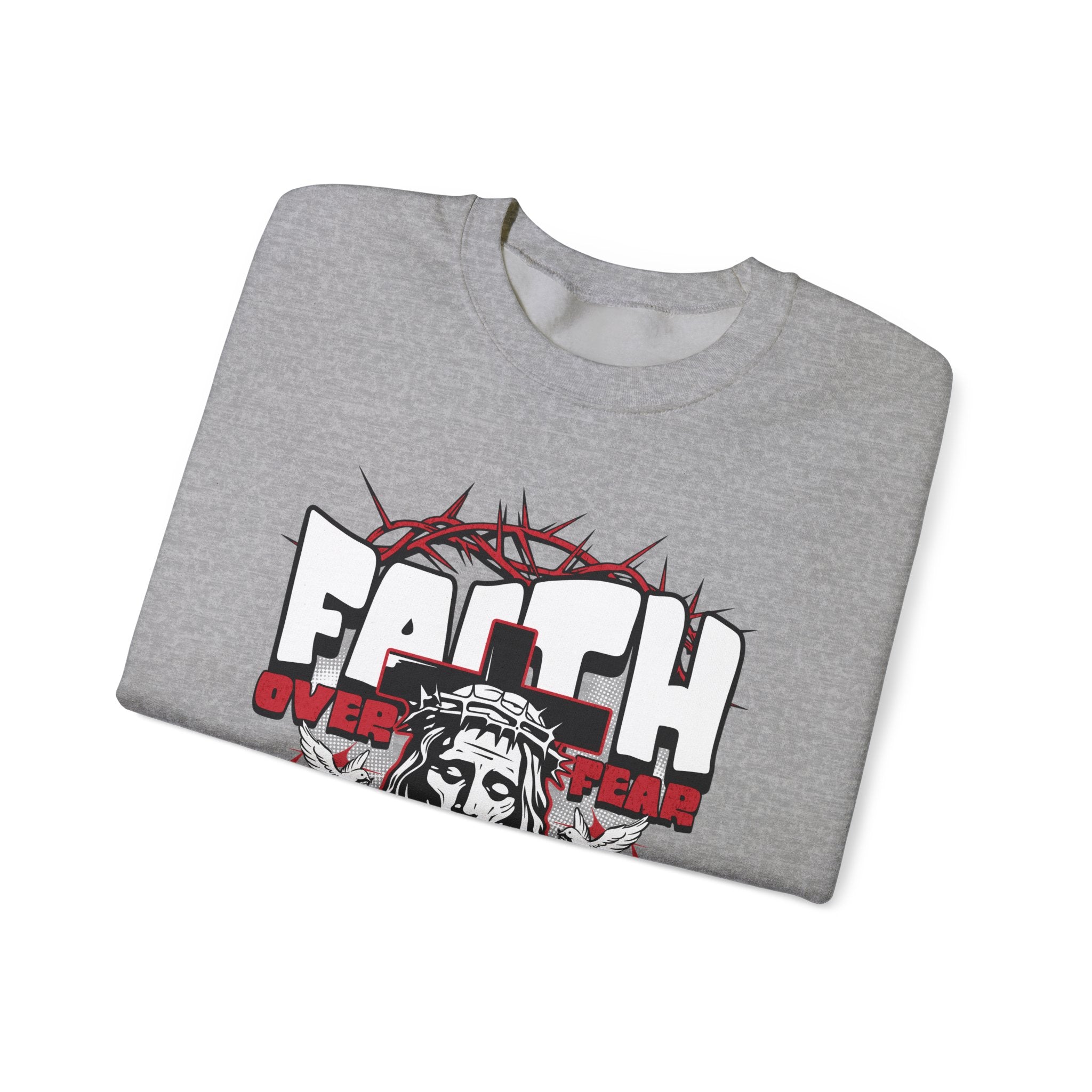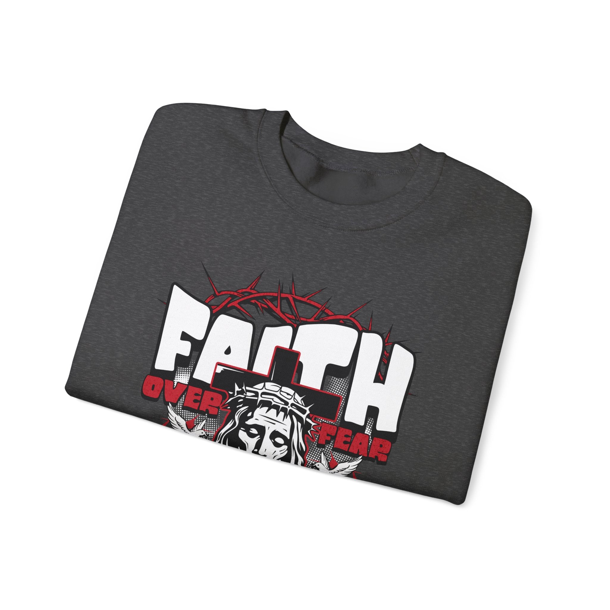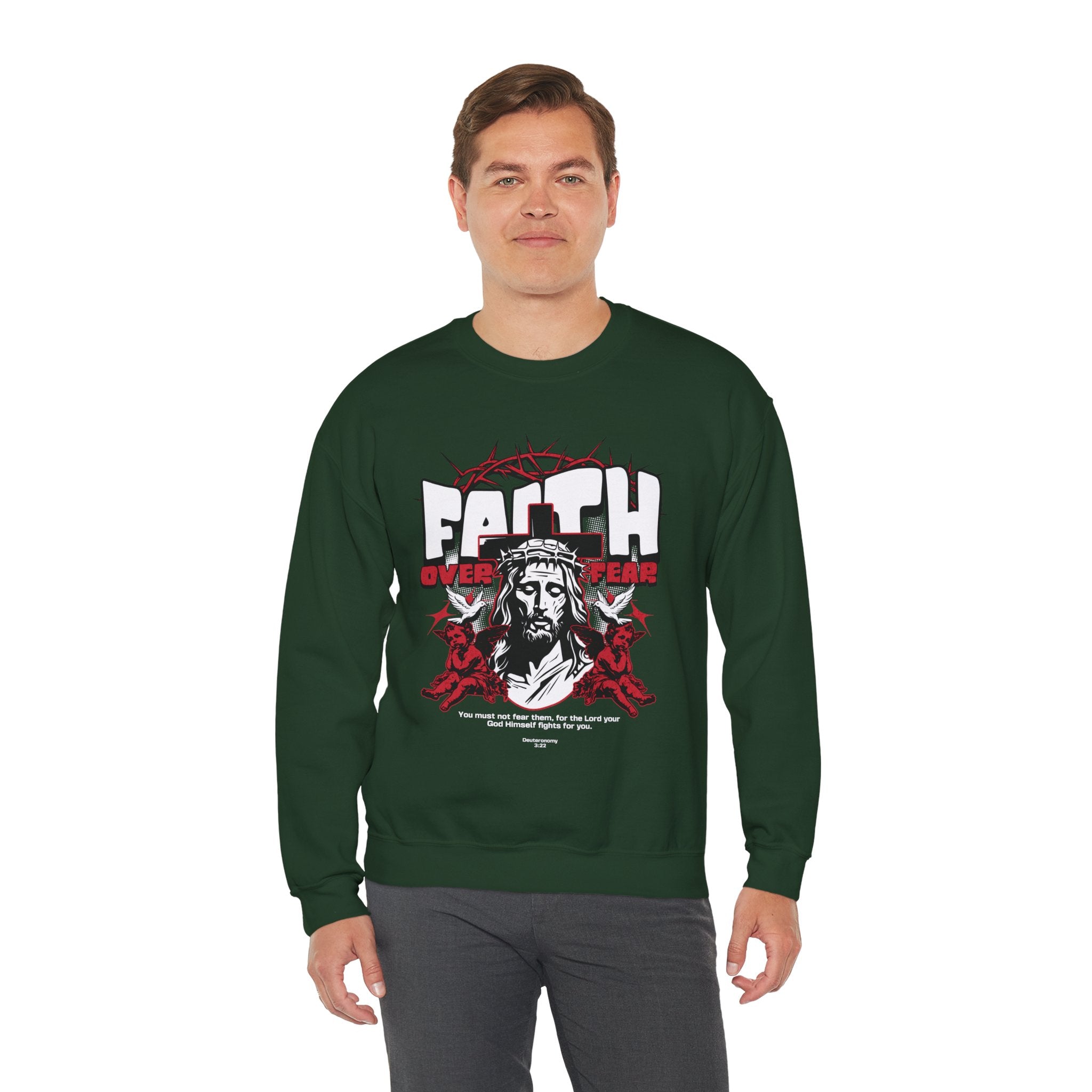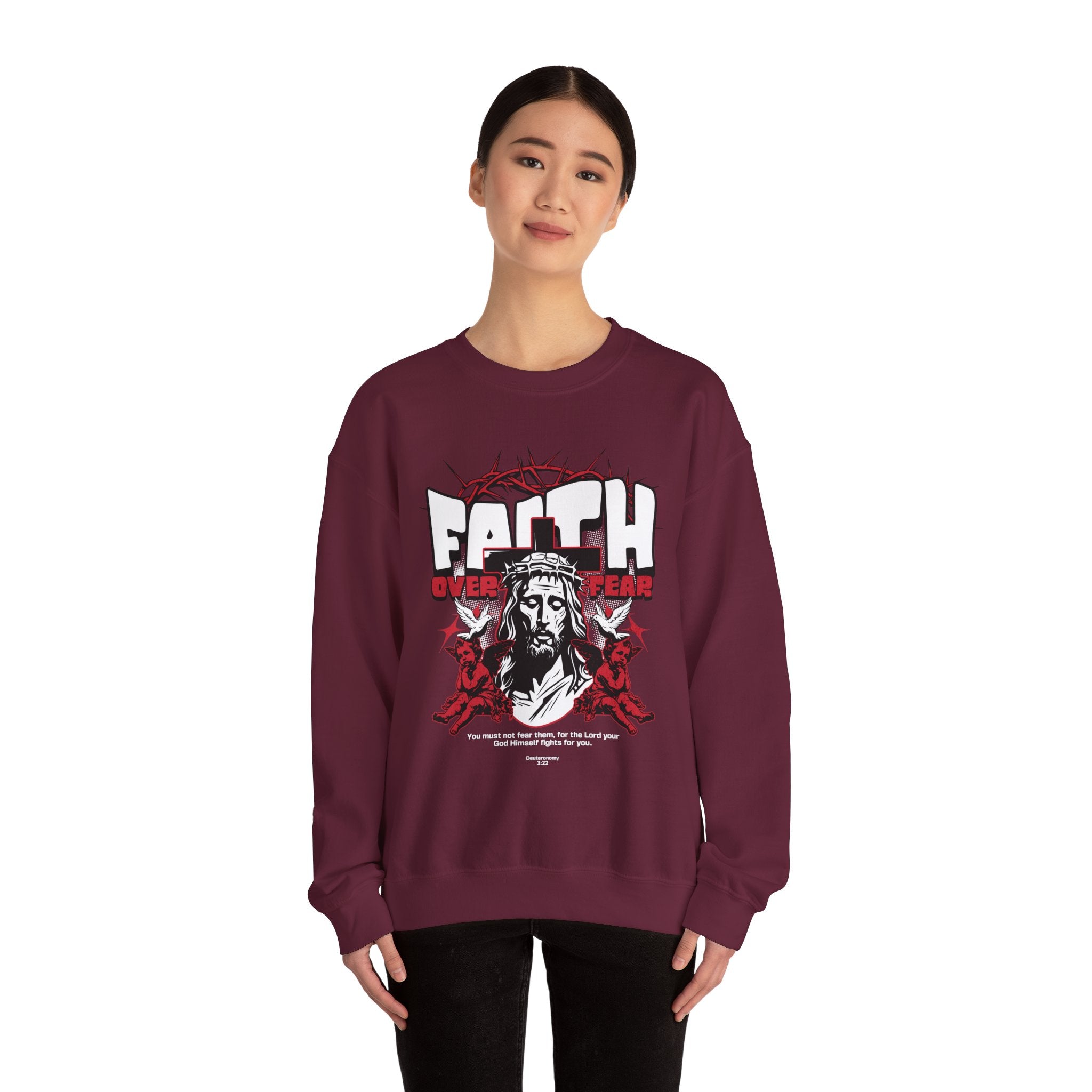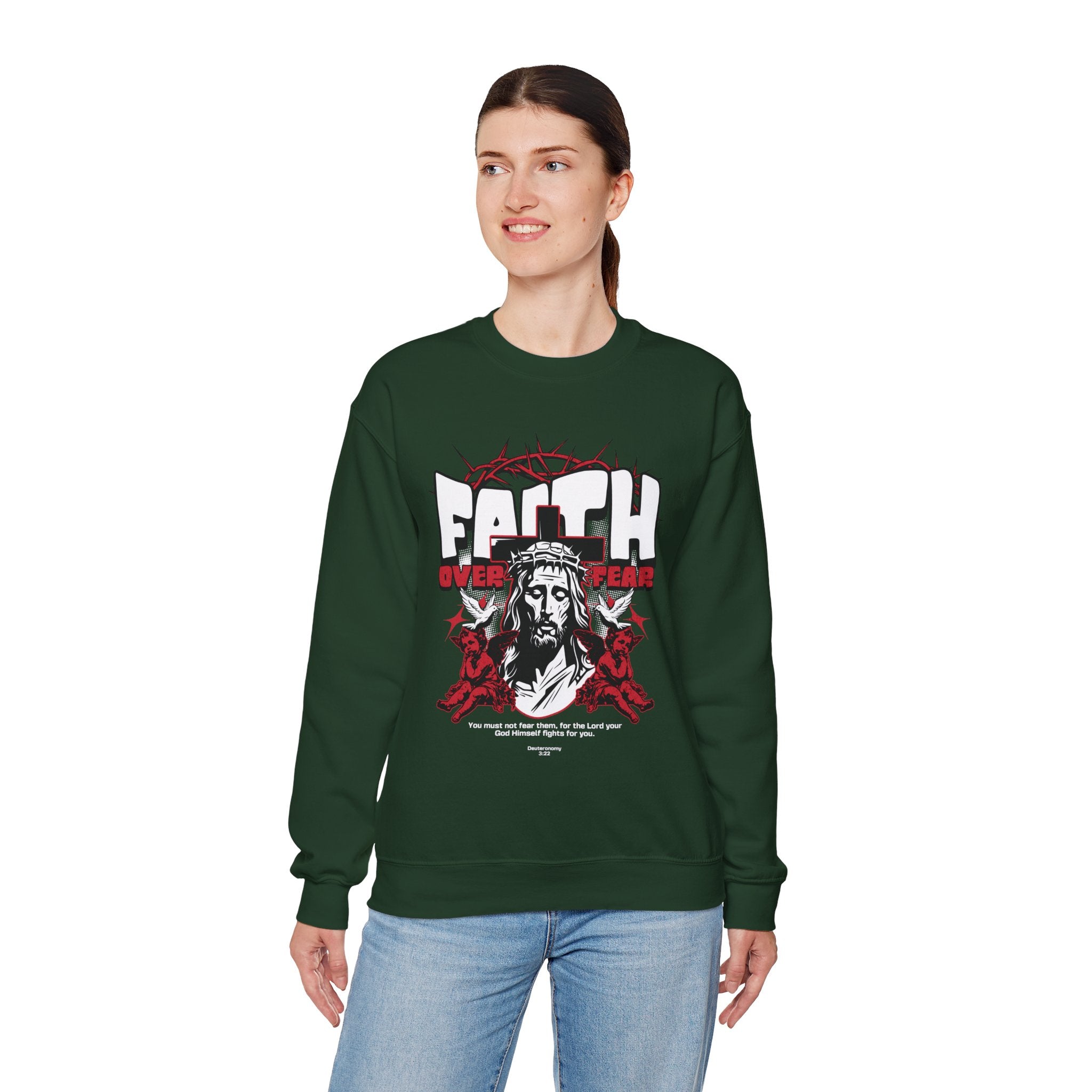 The Faith Over Fear Unisex Heavy Blend™ Crewneck Sweatshirt is a bold reminder that faith is stronger than fear. Featuring a striking image of Jesus with the crown of thorns, flanked by angels and paired with the verse “You must not fear them, for the Lord your God Himself fights for you” (Deuteronomy 3:22), this sweatshirt serves as a wearable testimony of courage, hope, and divine strength.