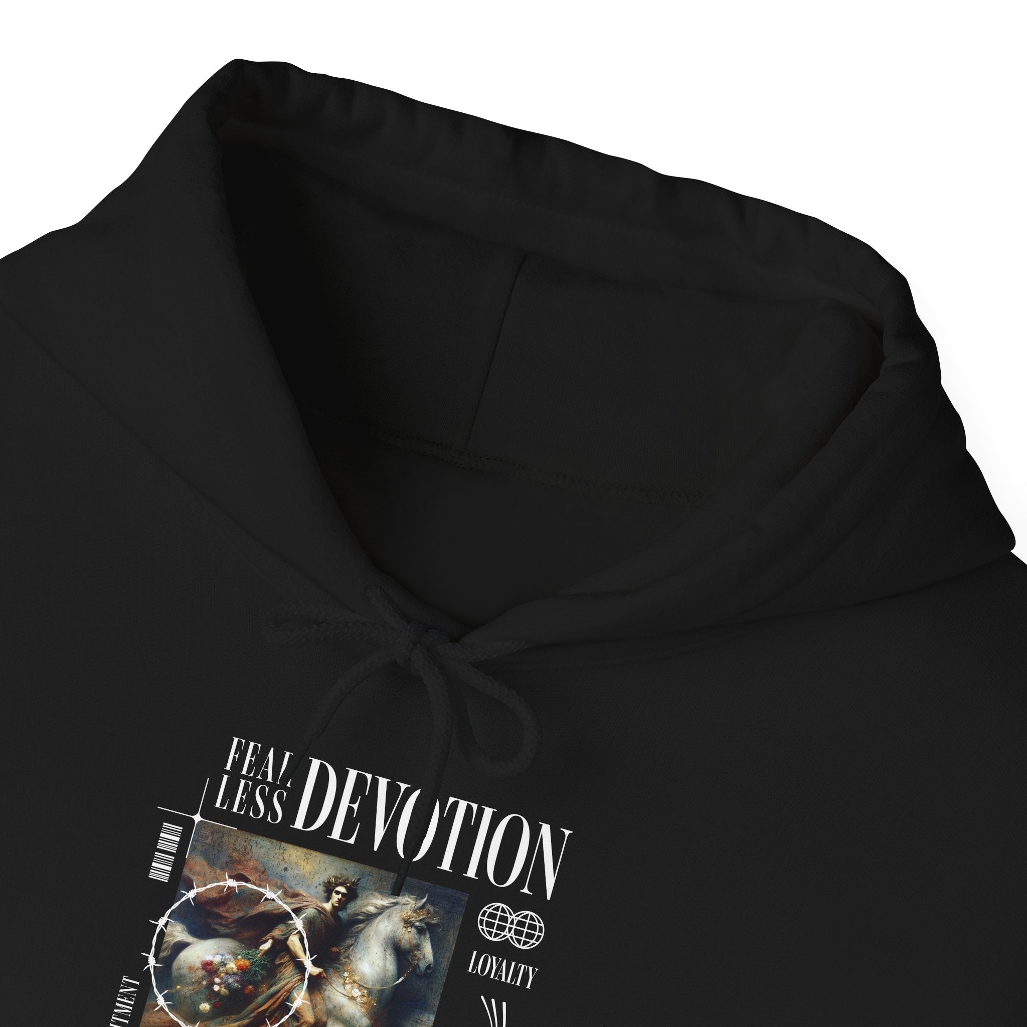 The Fearless Devotion Unisex Heavy Blend™ Hooded Sweatshirt is a bold mix of classical art and modern streetwear energy. Featuring a dramatic artwork of loyalty, courage, and unwavering spirit, this hoodie captures the essence of fearless commitment while keeping you wrapped in warmth and comfort.