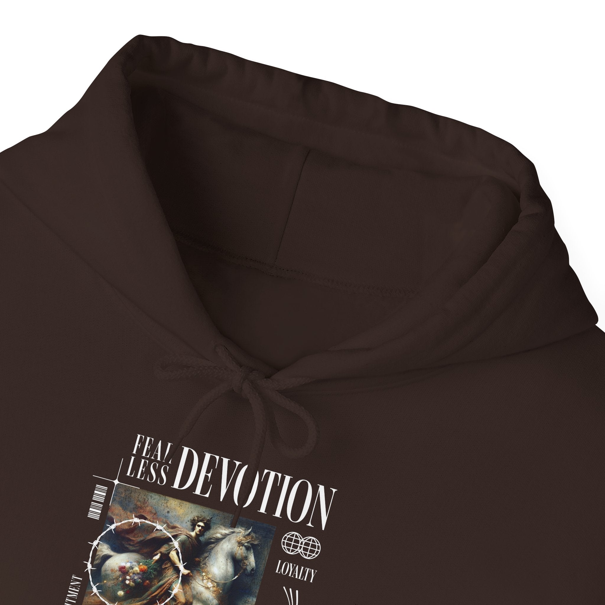 Unisex Heavy Blend™ fleece pullover hoodie with fearless devotion artwork