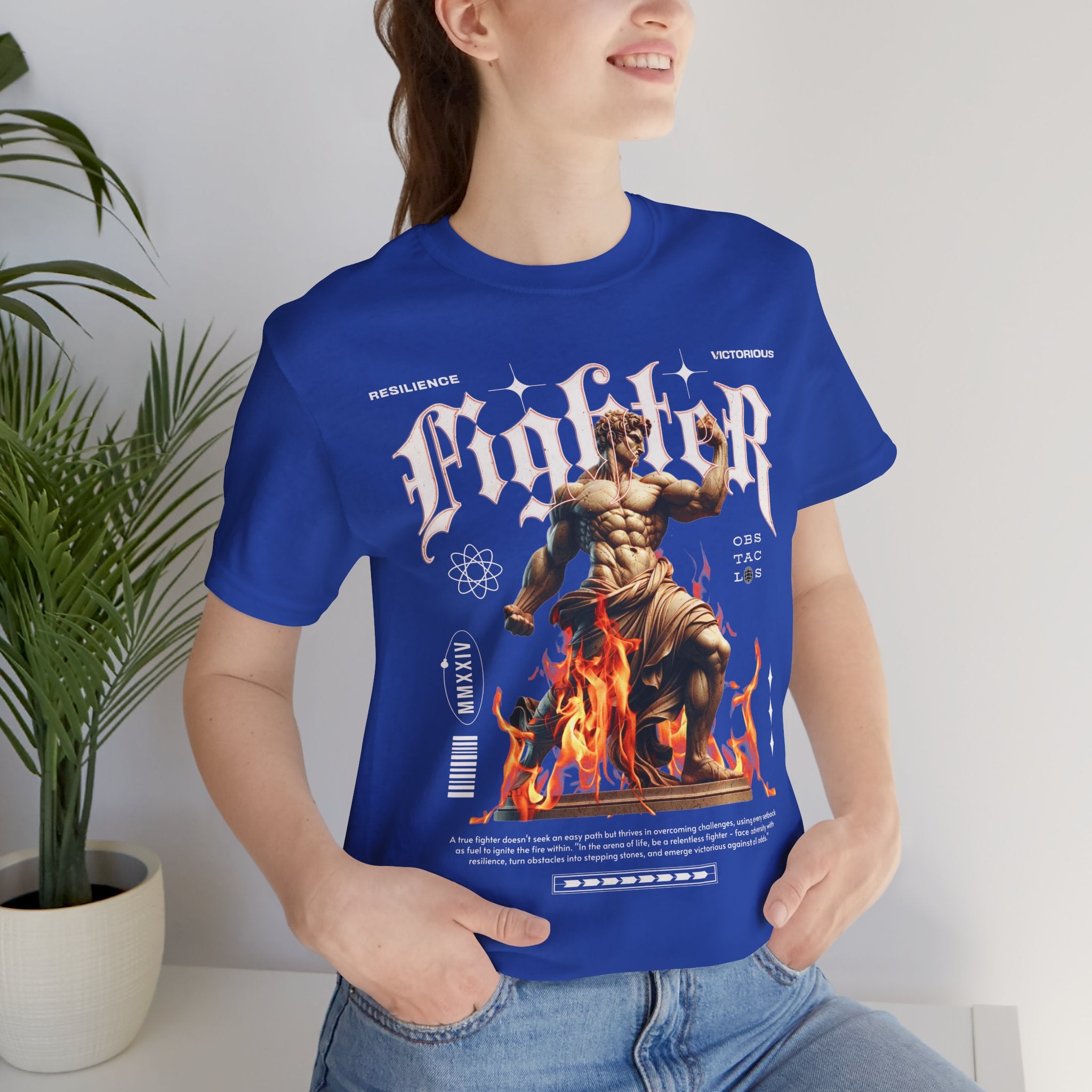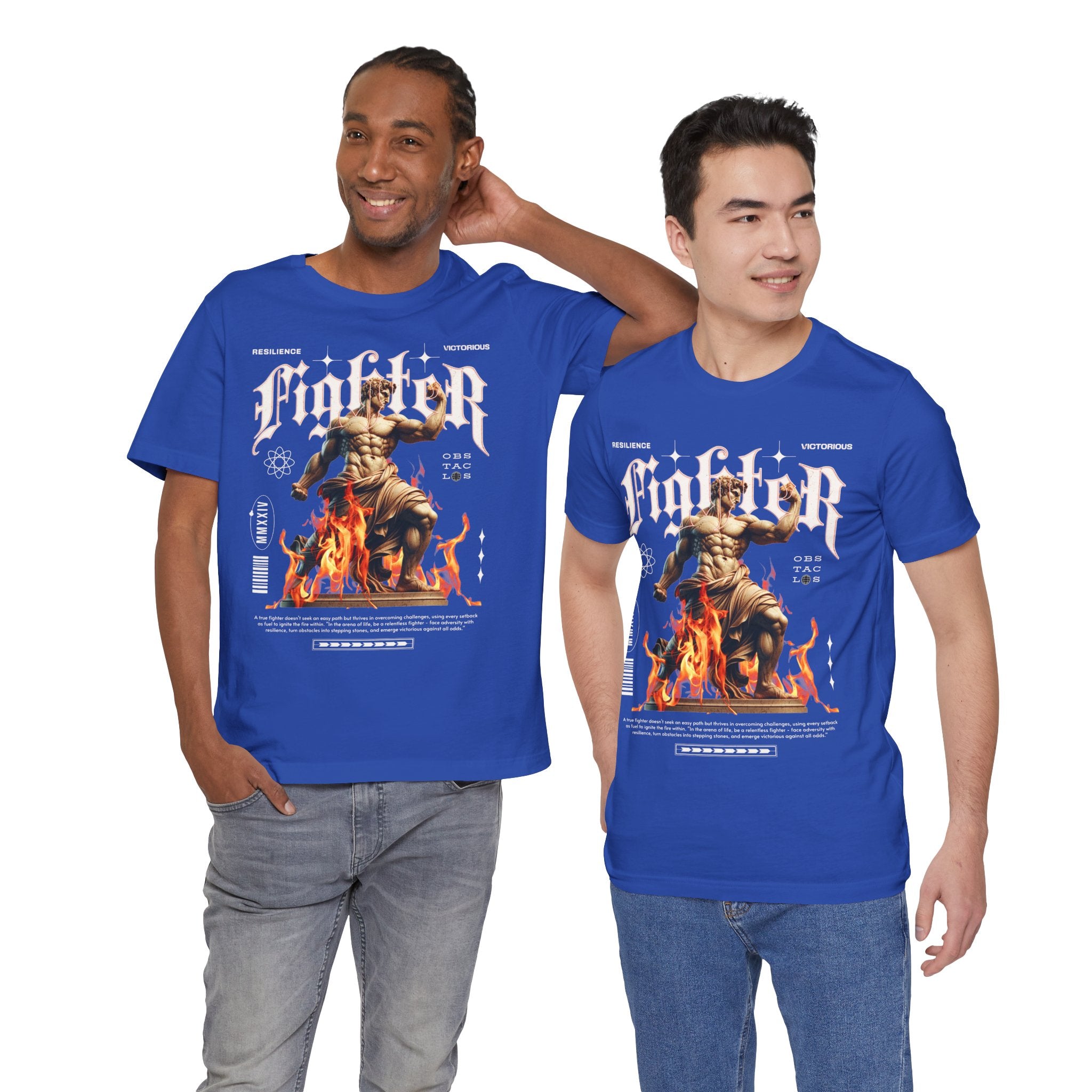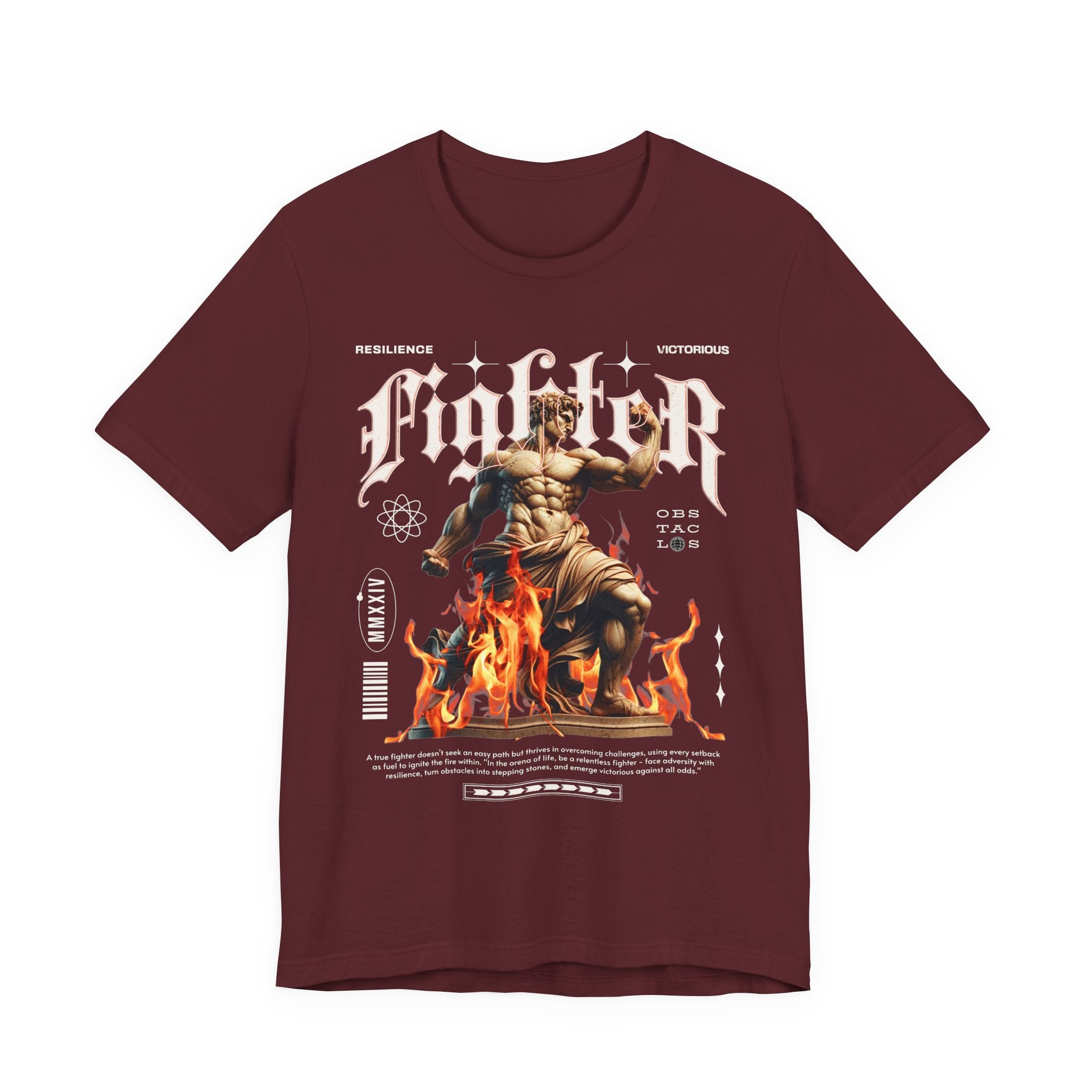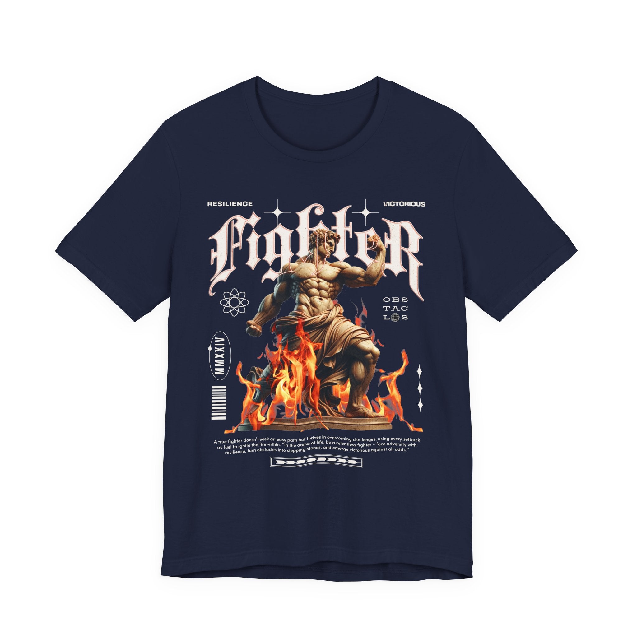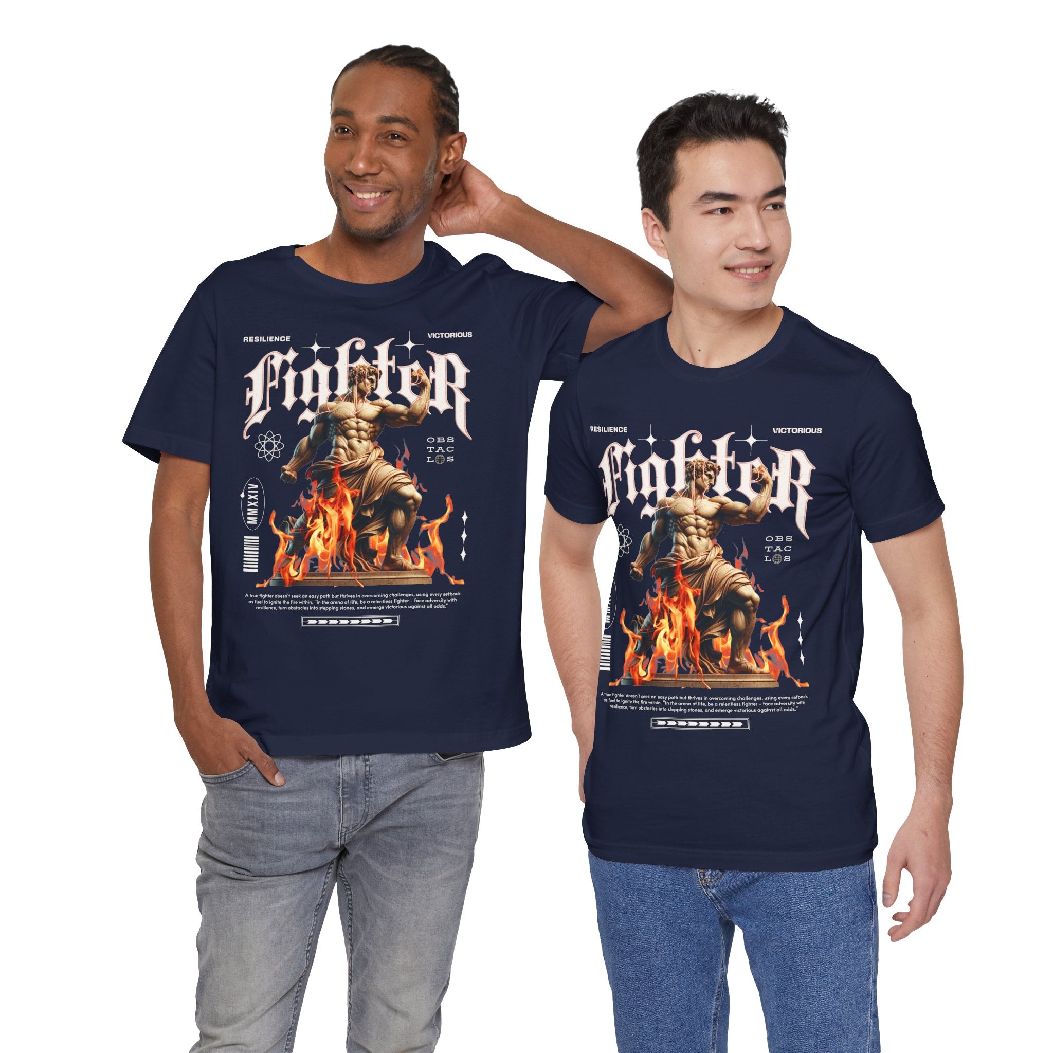 This Fighter Graphic Unisex Jersey Short Sleeve Tee is more than just clothing β itβs a symbol of resilience, strength, and victory. Featuring a bold statue-inspired artwork rising from flames, it captures the unstoppable spirit of overcoming obstacles and pushing through challenges.