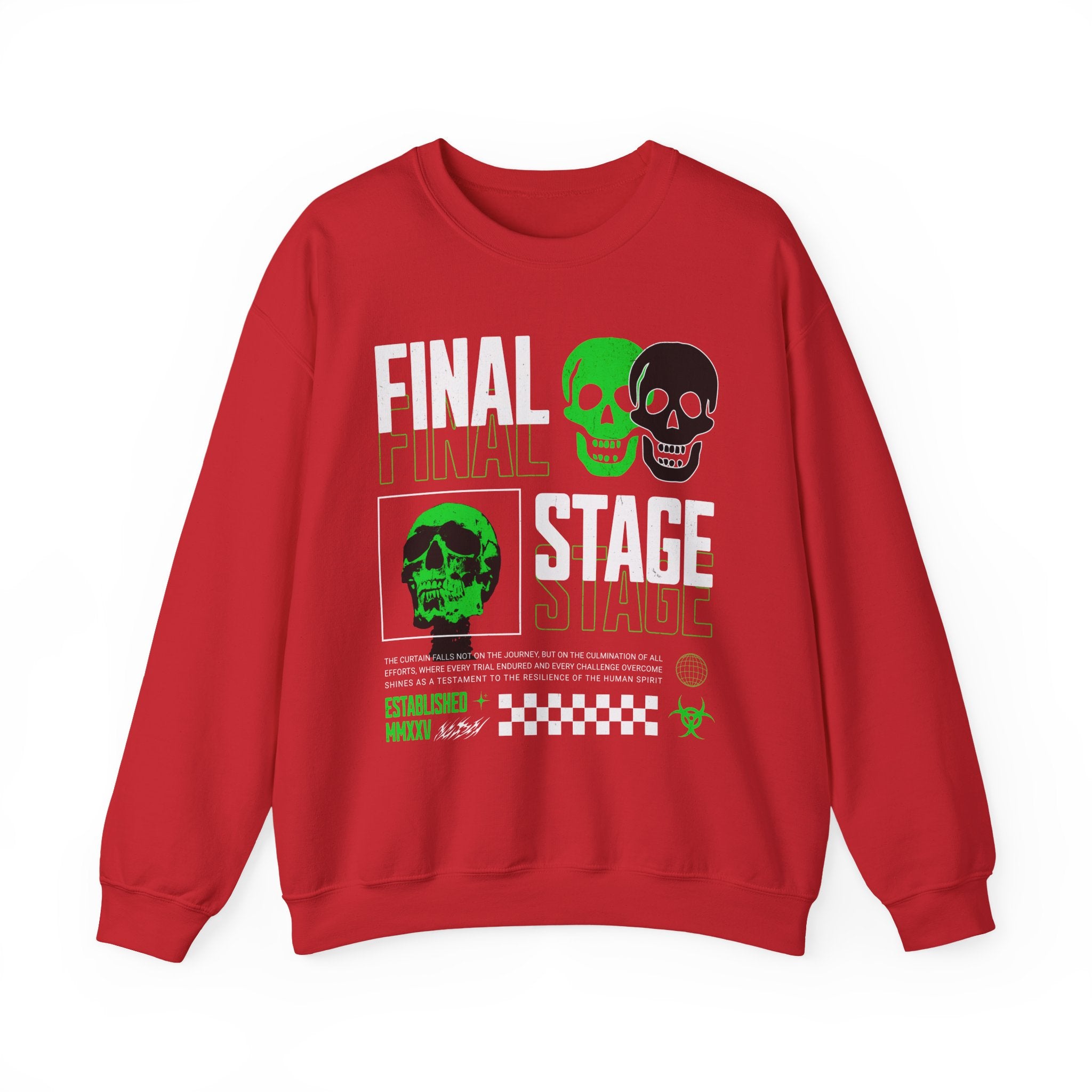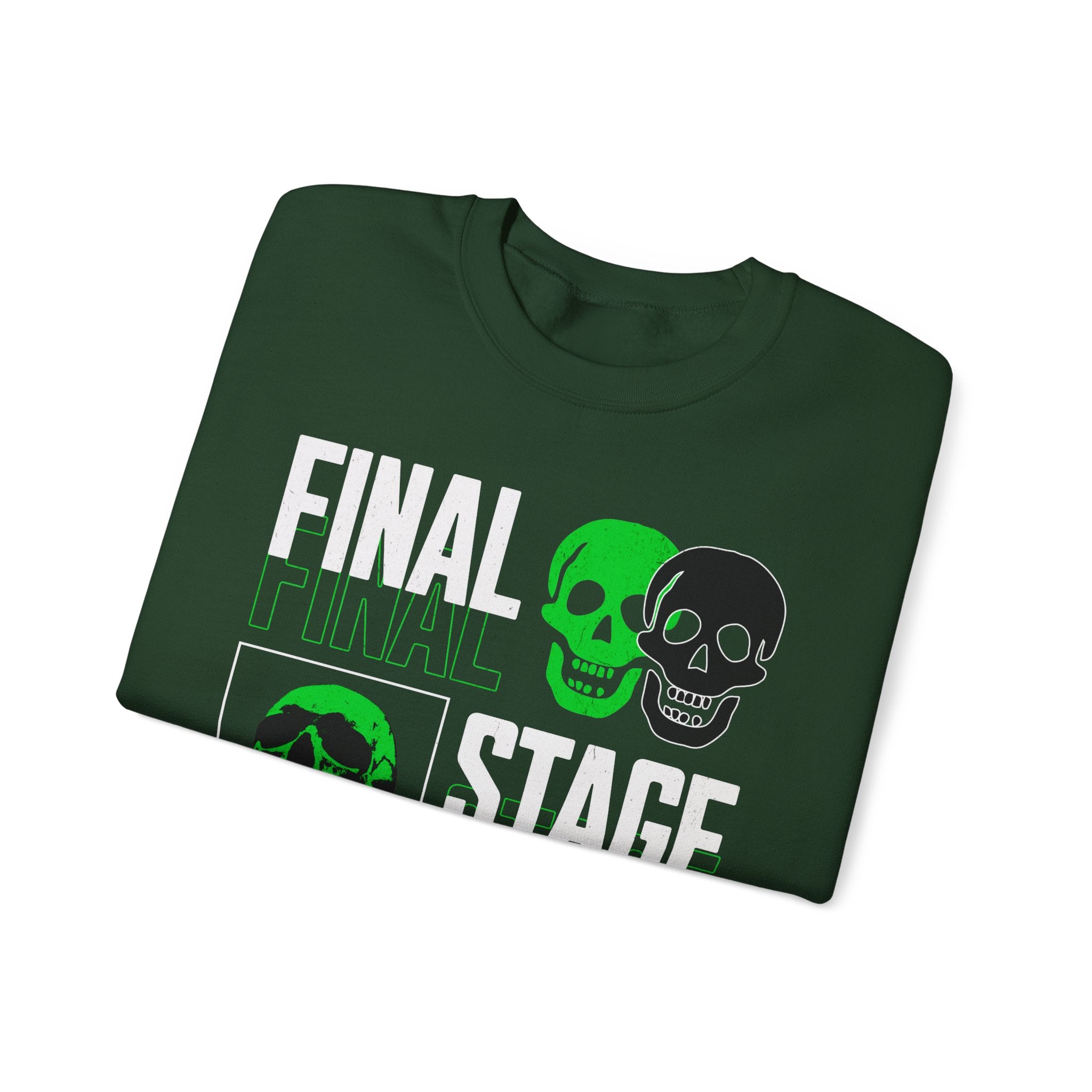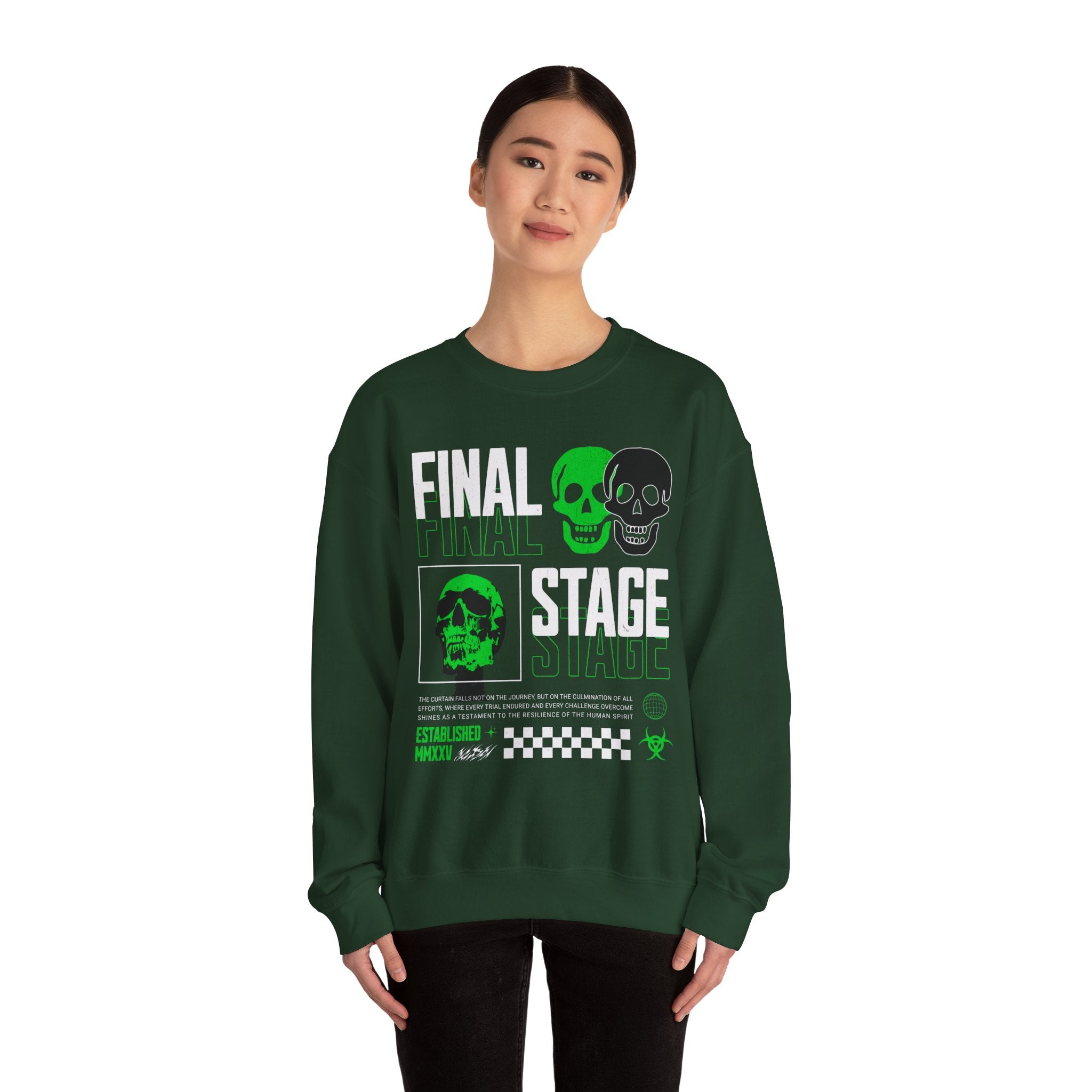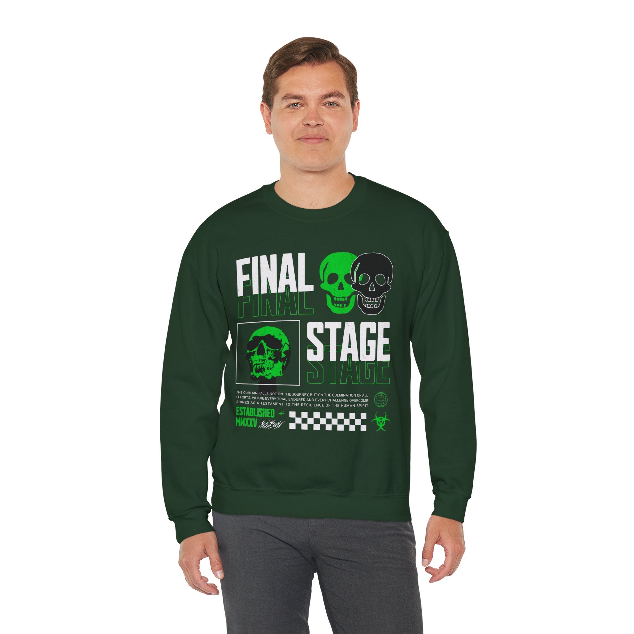 The Final Stage Unisex Heavy Blend™ Crewneck Sweatshirt combines streetwear edge, bold skull graphics, and cyberpunk inspiration. With its neon green and monochrome skull artwork paired with futuristic typography, this pullover is a reminder of resilience, grit, and determination to overcome the final challenge.
