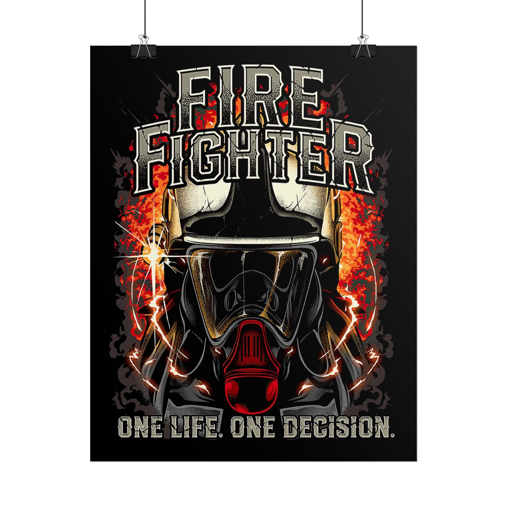 A striking wall art piece designed for firefighters, heroes, and hustlers, this poster brings the heart of firefighting into your space — reminding you daily of bravery, discipline, and relentless drive.