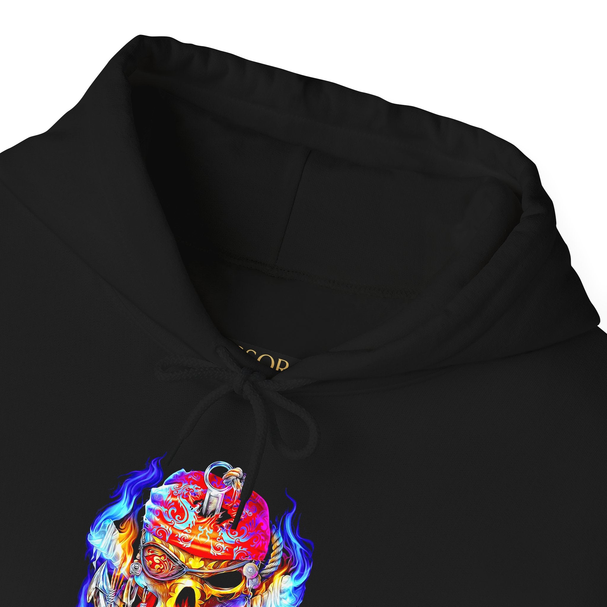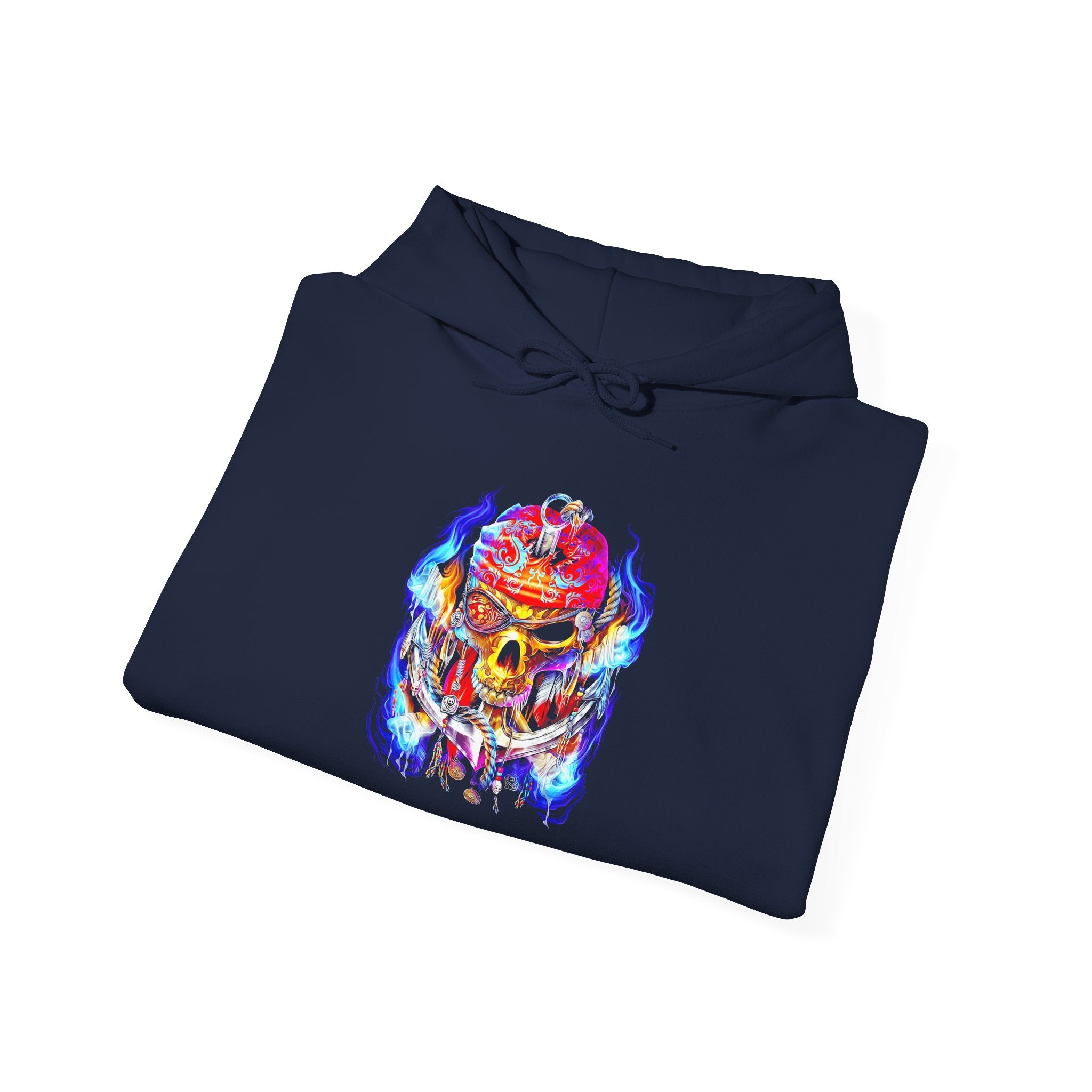 Set sail through the flames of chaos with the Flaming Pirate Skull Hoodie — a masterpiece of rebellion and style.