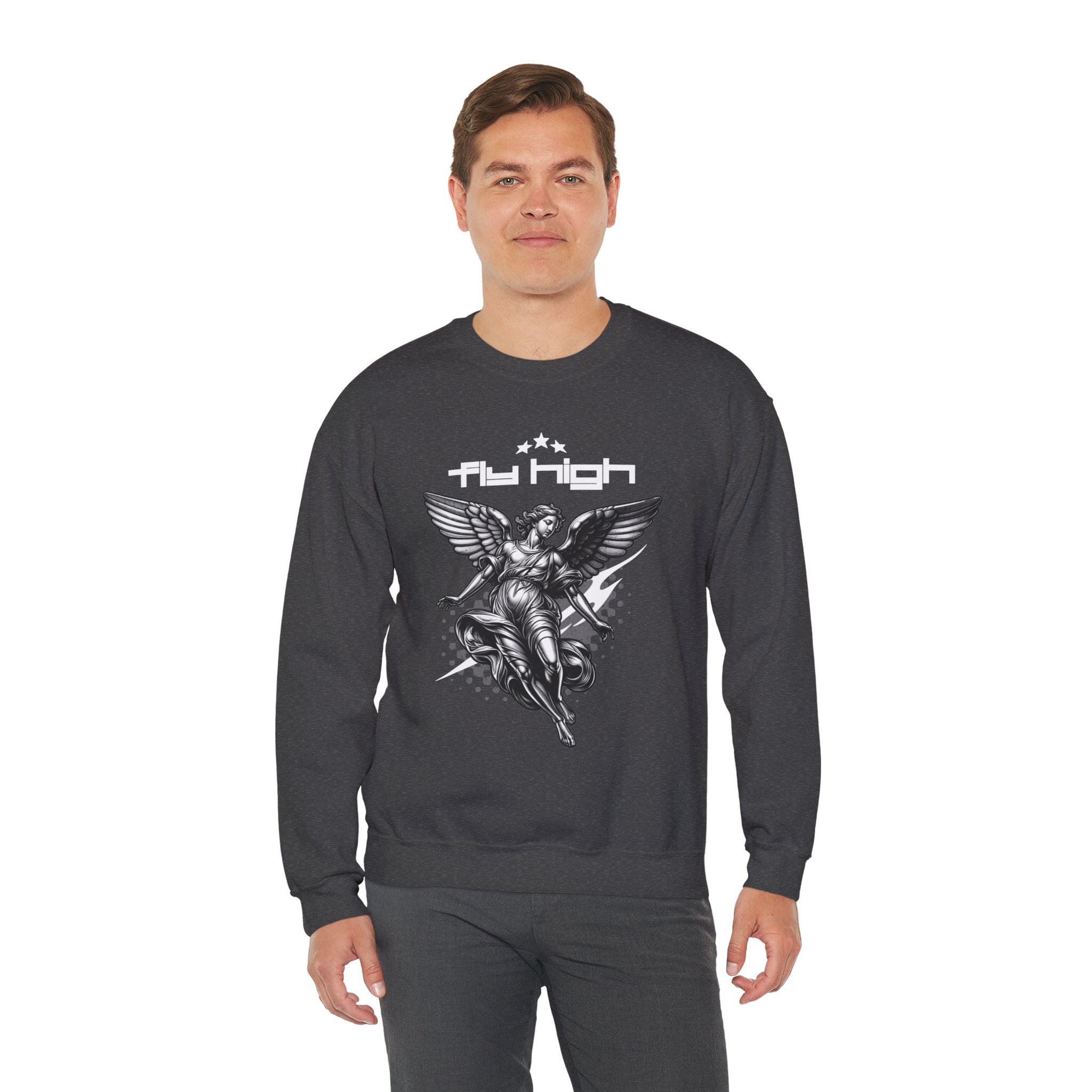 Unisex heavy blend crewneck sweatshirt with bold angel artwork