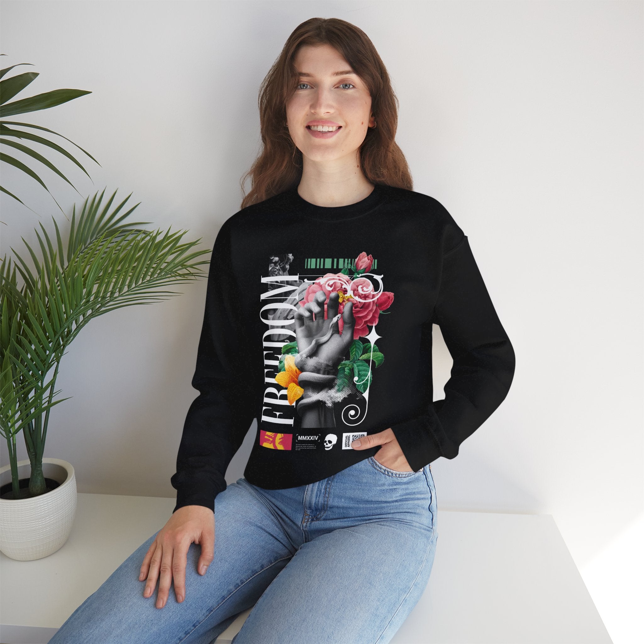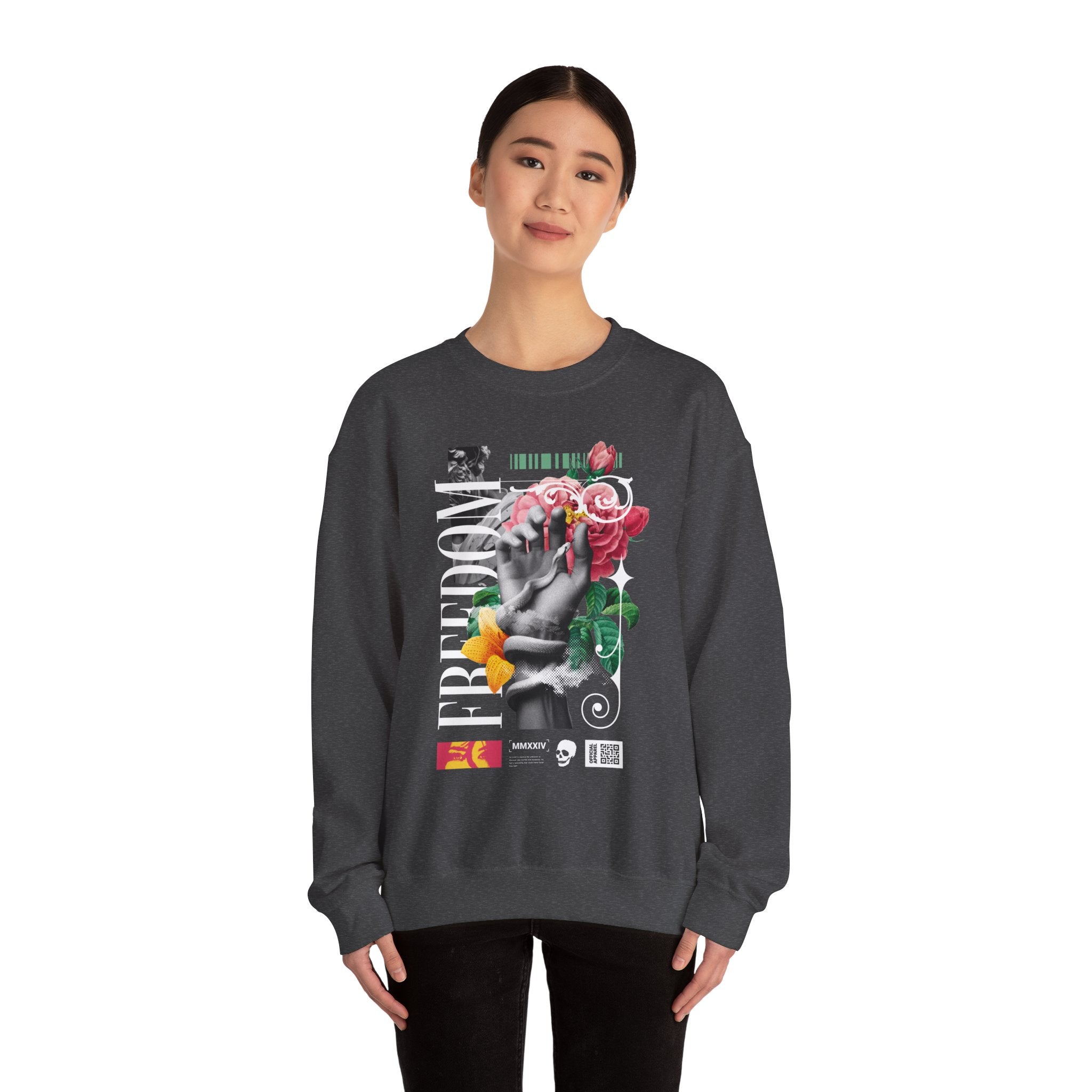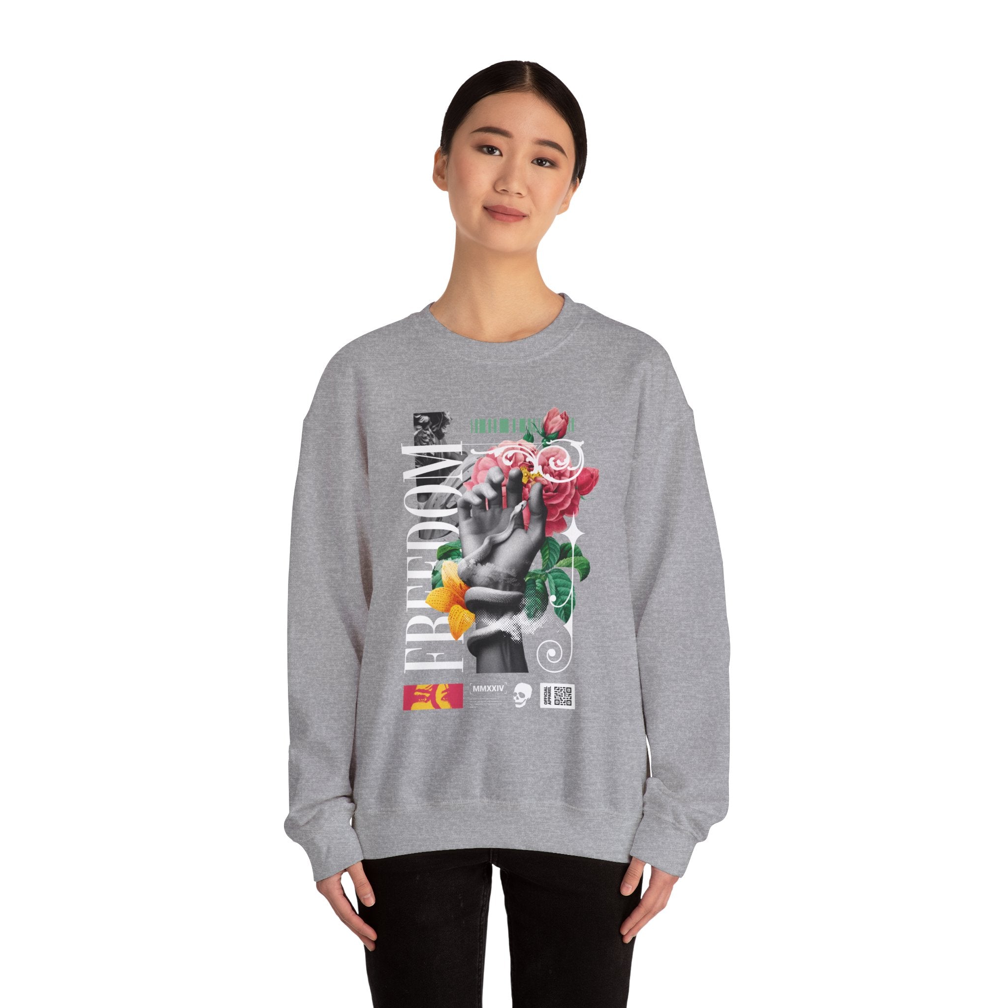 Experience comfort and style with this unisex heavy blend crewneck sweatshirt, designed for those who cherish individuality and self-expression. This cozy piece embodies a striking visual narrative, showcasing bold graphics that convey messages of freedom and empowerment. Perfect for casual outings, cozy nights in, or layering during those chilly days, it effortlessly fits into the lifestyles of trendsetters, art lovers, and advocates for change alike. This sweatshirt makes a thoughtful gift for birthdays, holidays, or simply to celebrate personal achievements, reminding us all to embrace our unique journeys.