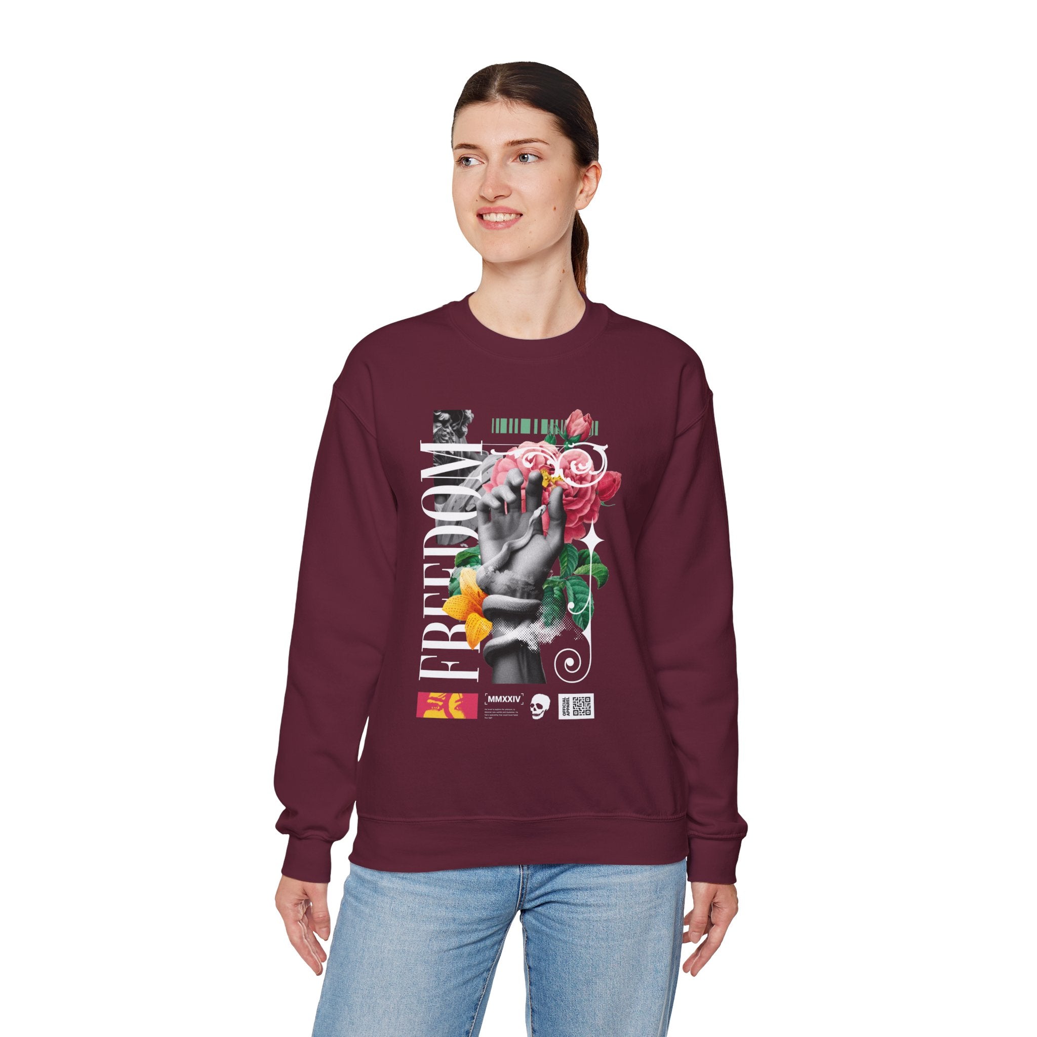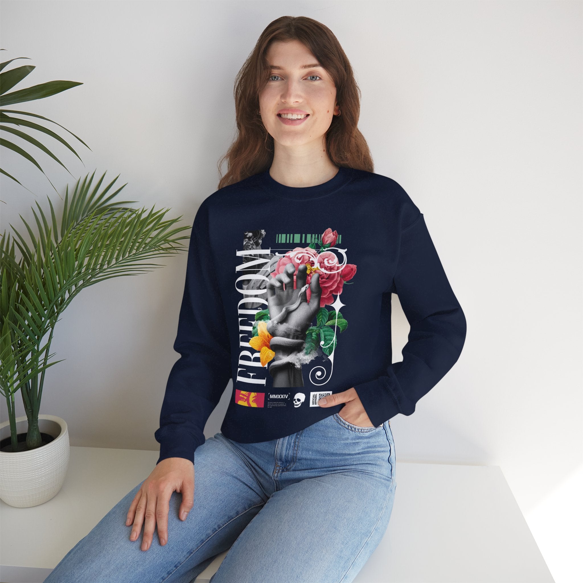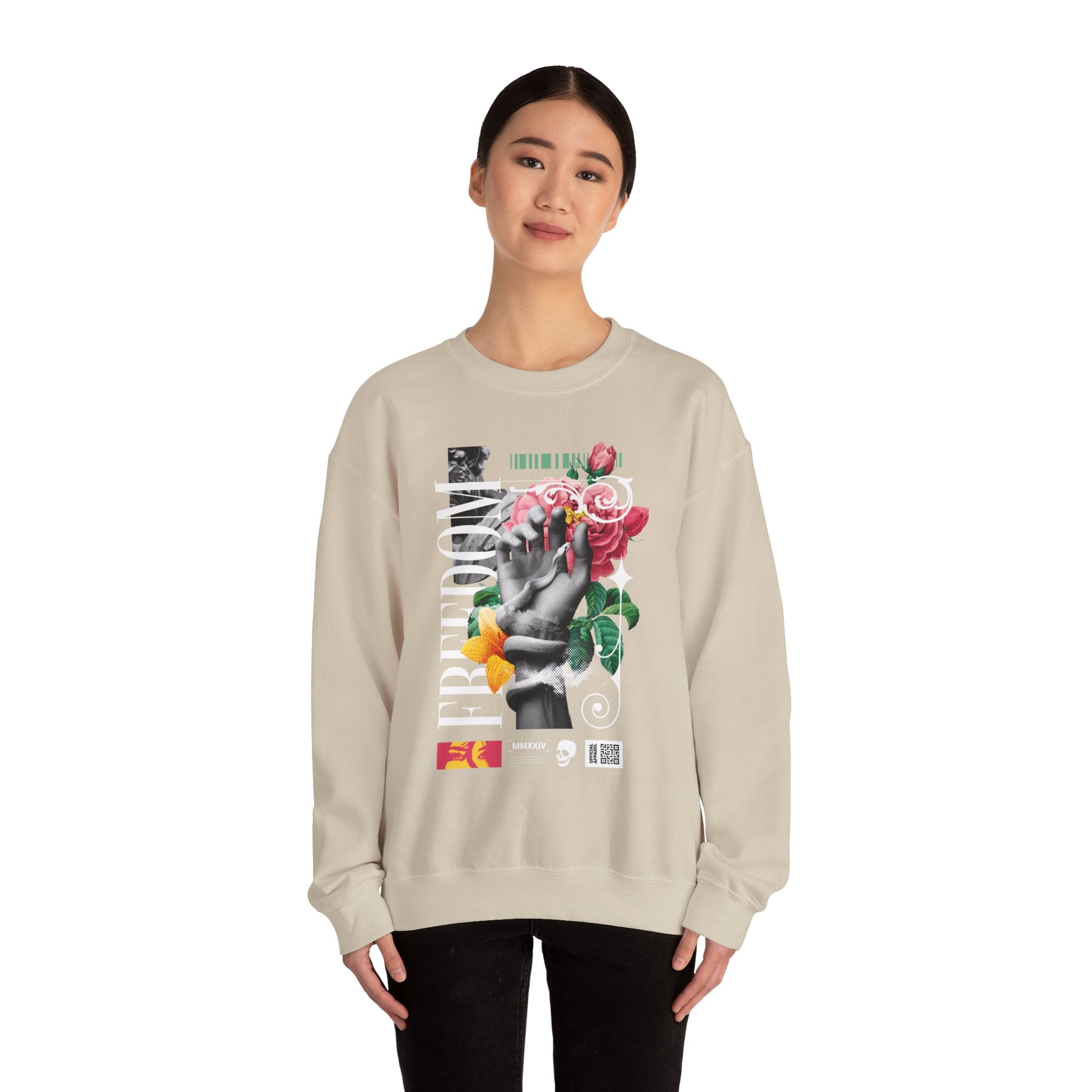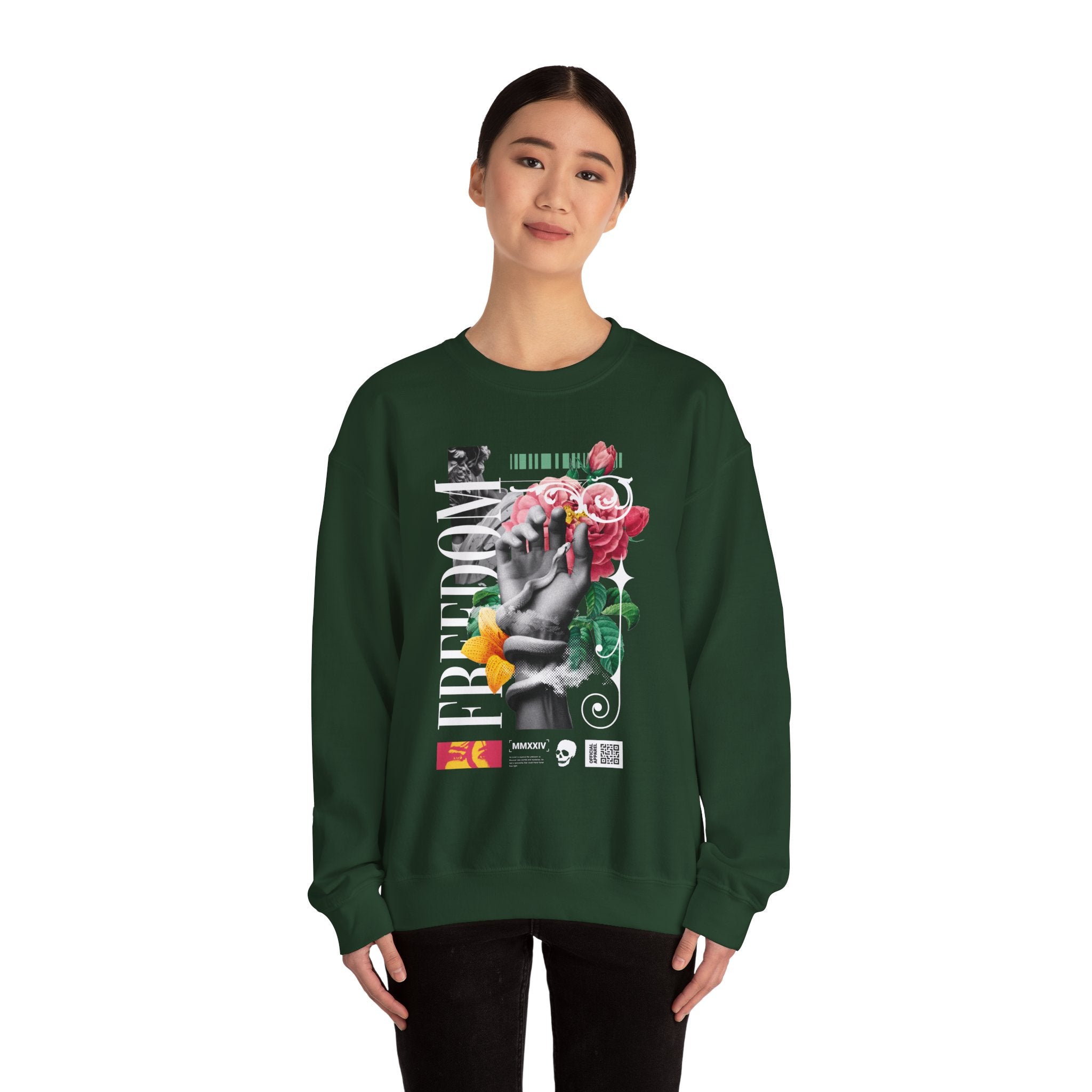 Experience comfort and style with this unisex heavy blend crewneck sweatshirt, designed for those who cherish individuality and self-expression. This cozy piece embodies a striking visual narrative, showcasing bold graphics that convey messages of freedom and empowerment. Perfect for casual outings, cozy nights in, or layering during those chilly days, it effortlessly fits into the lifestyles of trendsetters, art lovers, and advocates for change alike. This sweatshirt makes a thoughtful gift for birthdays, holidays, or simply to celebrate personal achievements, reminding us all to embrace our unique journeys.