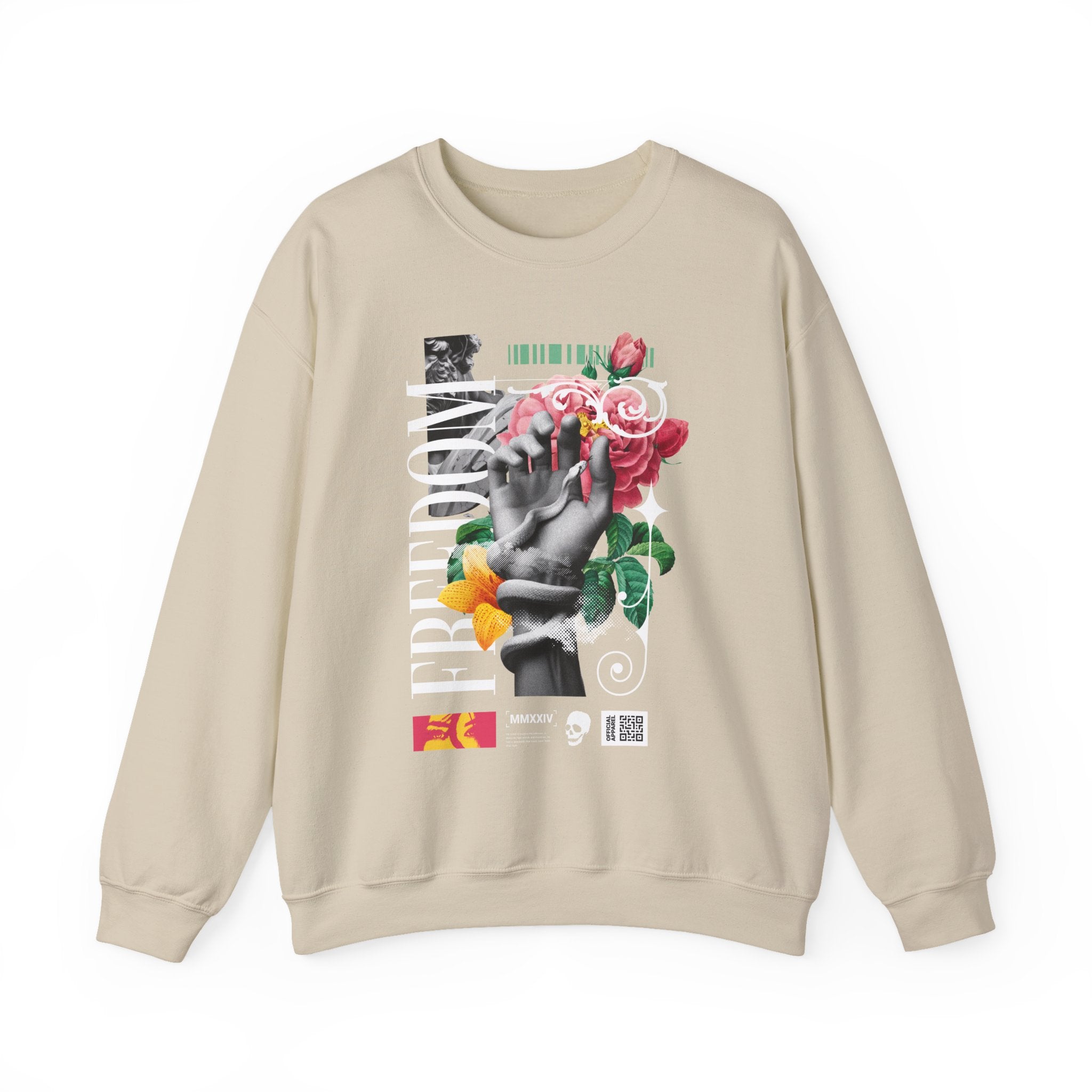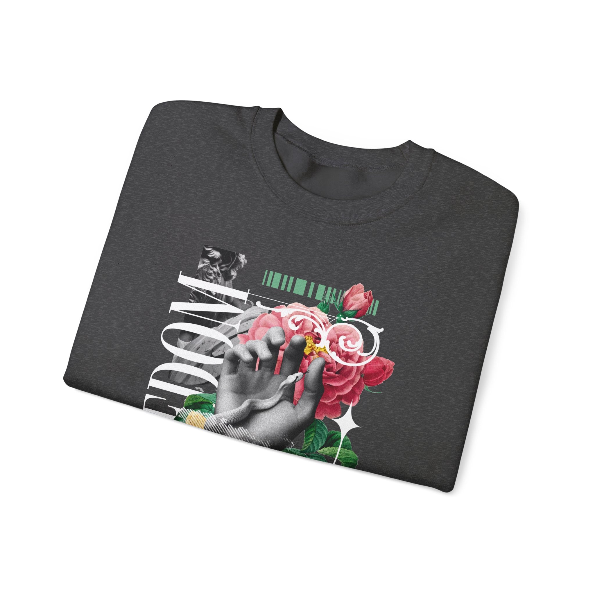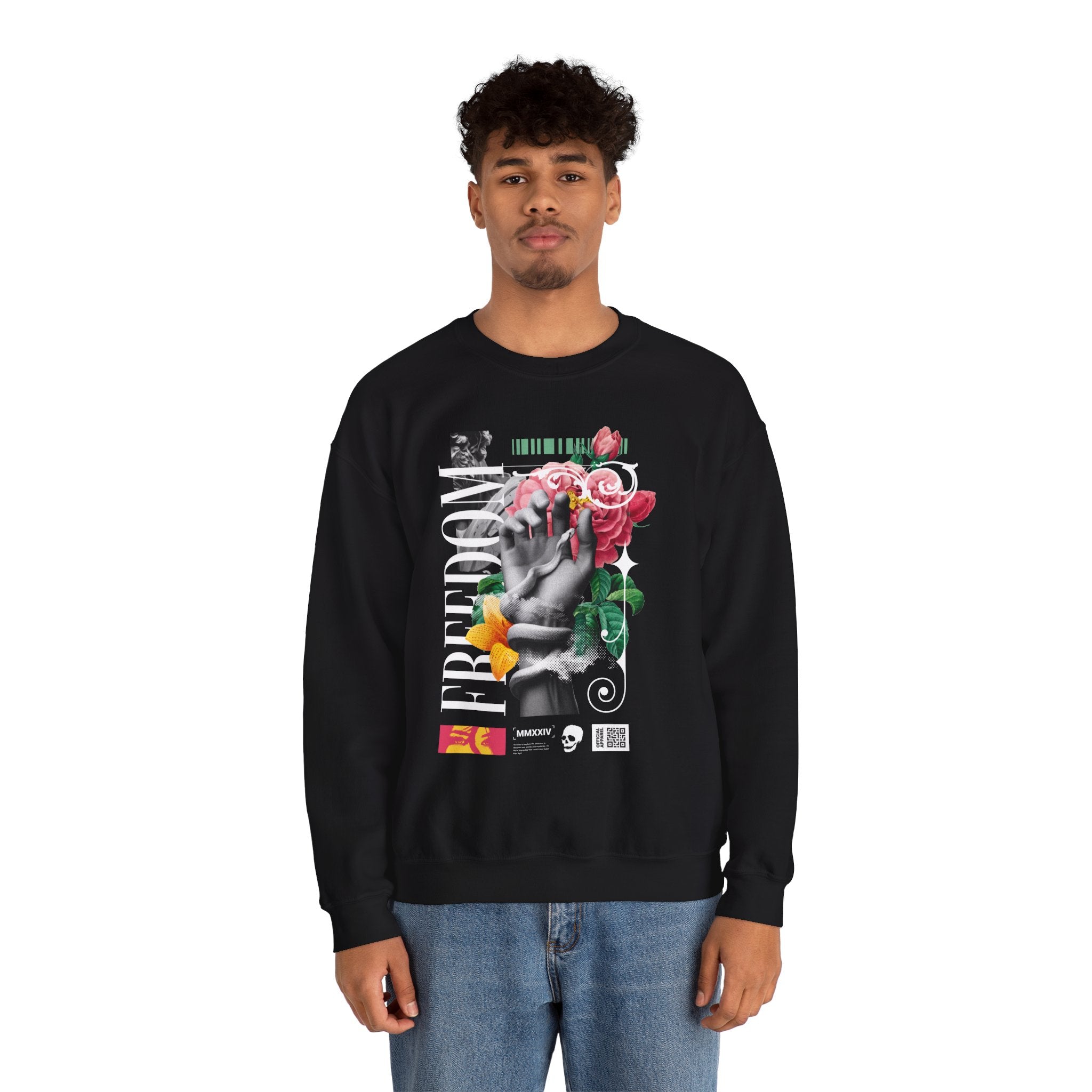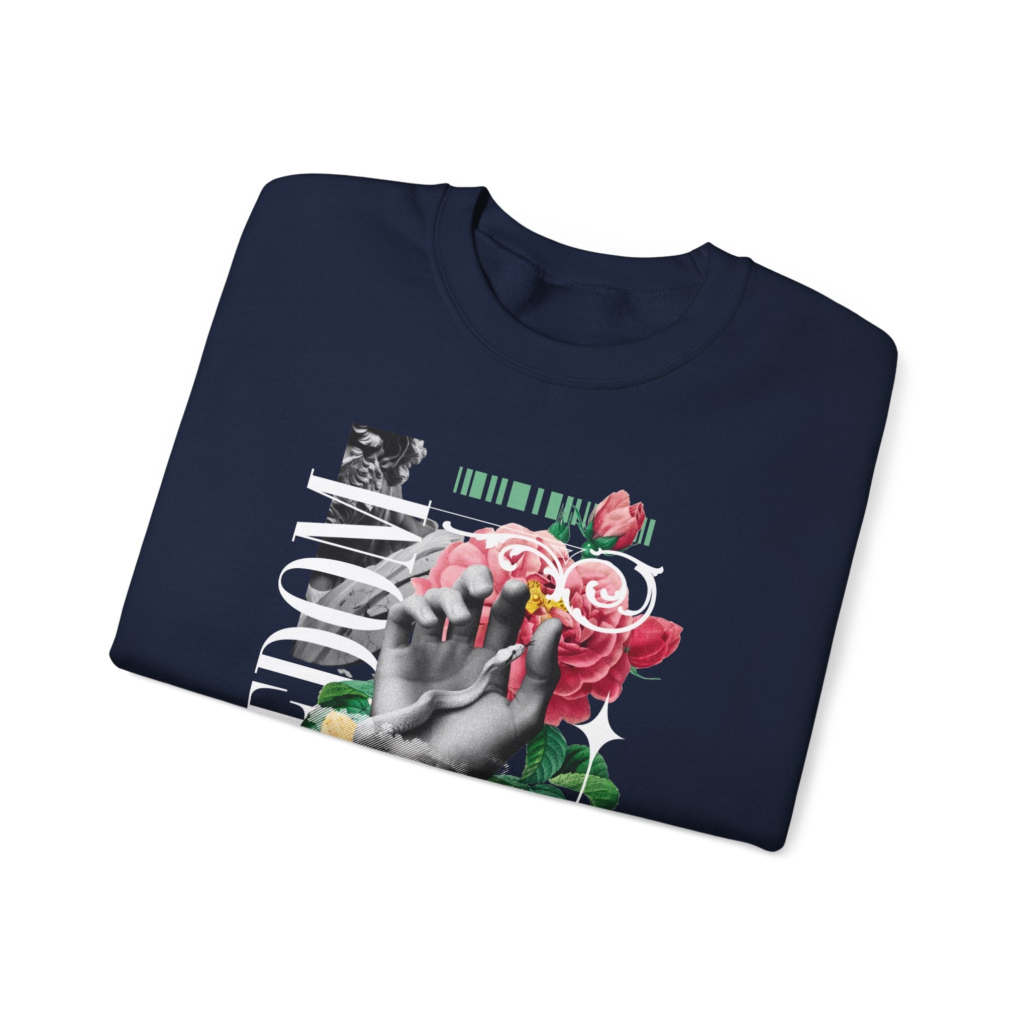 The Freedom Snake and Rose Crewneck blends artistic symbolism with everyday comfort. Featuring a striking design of a hand entwined with a snake and surrounded by roses, this sweatshirt represents courage, resilience, and the beauty of breaking free. Made with a cozy cotton-polyester blend, it’s the perfect piece to layer up while carrying a powerful message of strength and self-liberation.