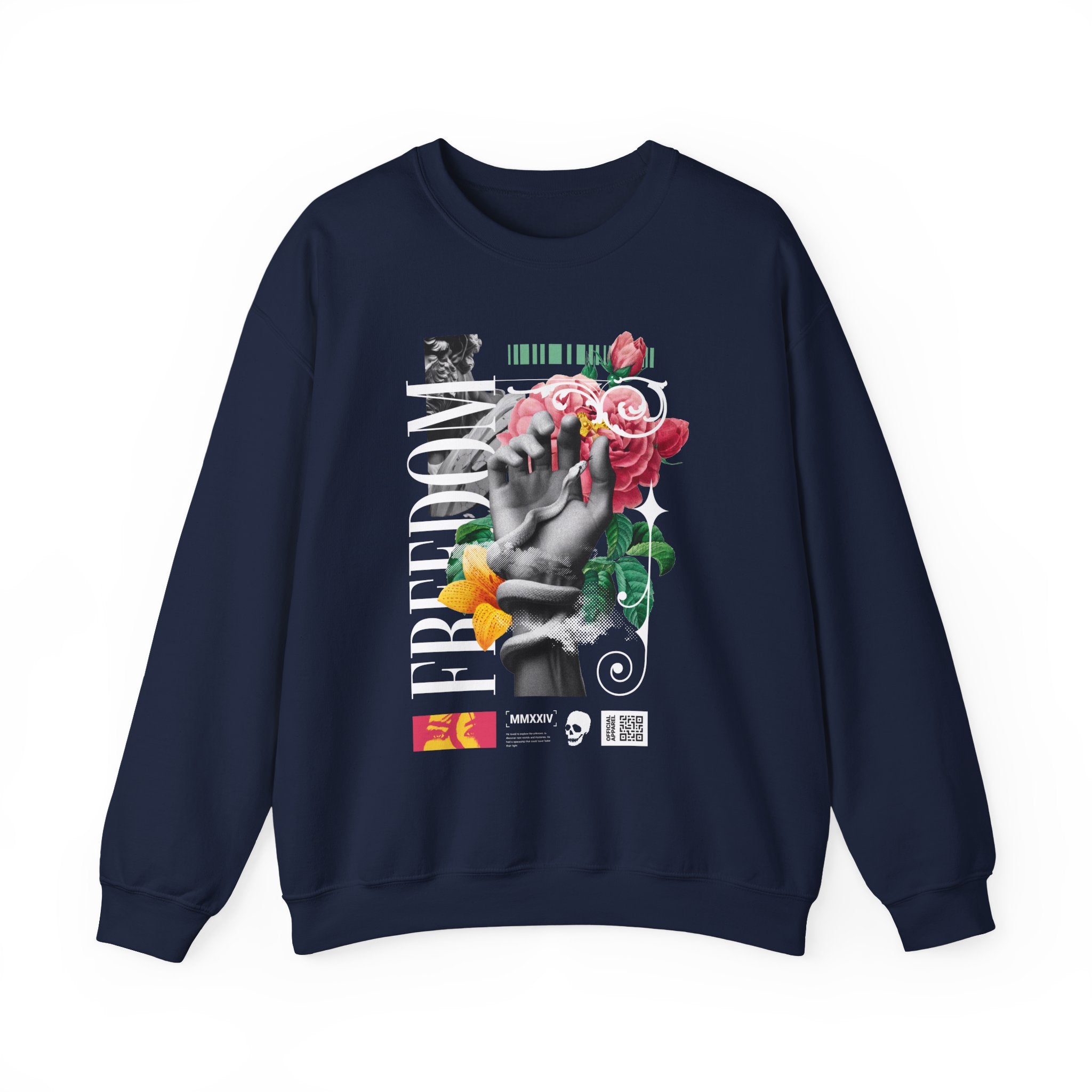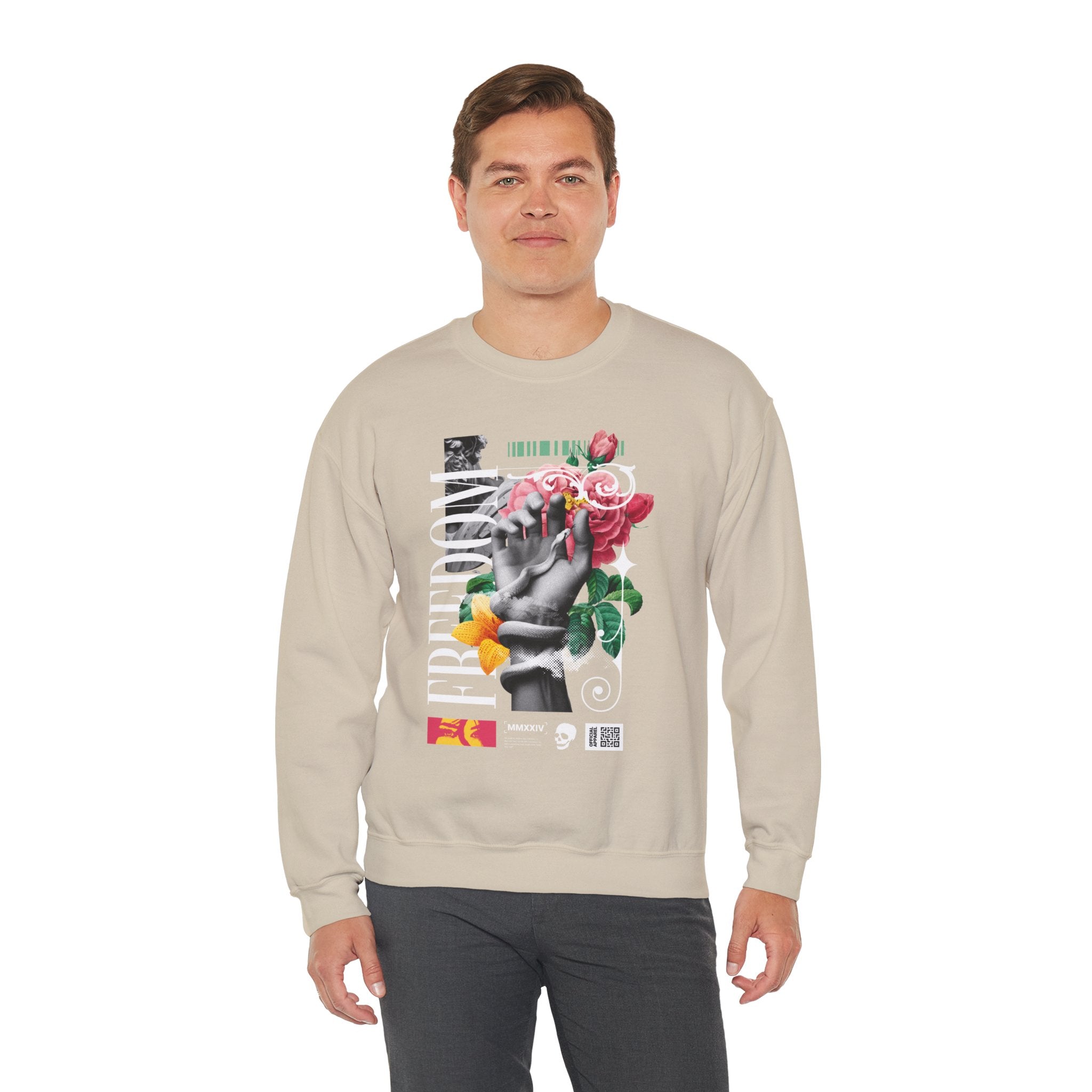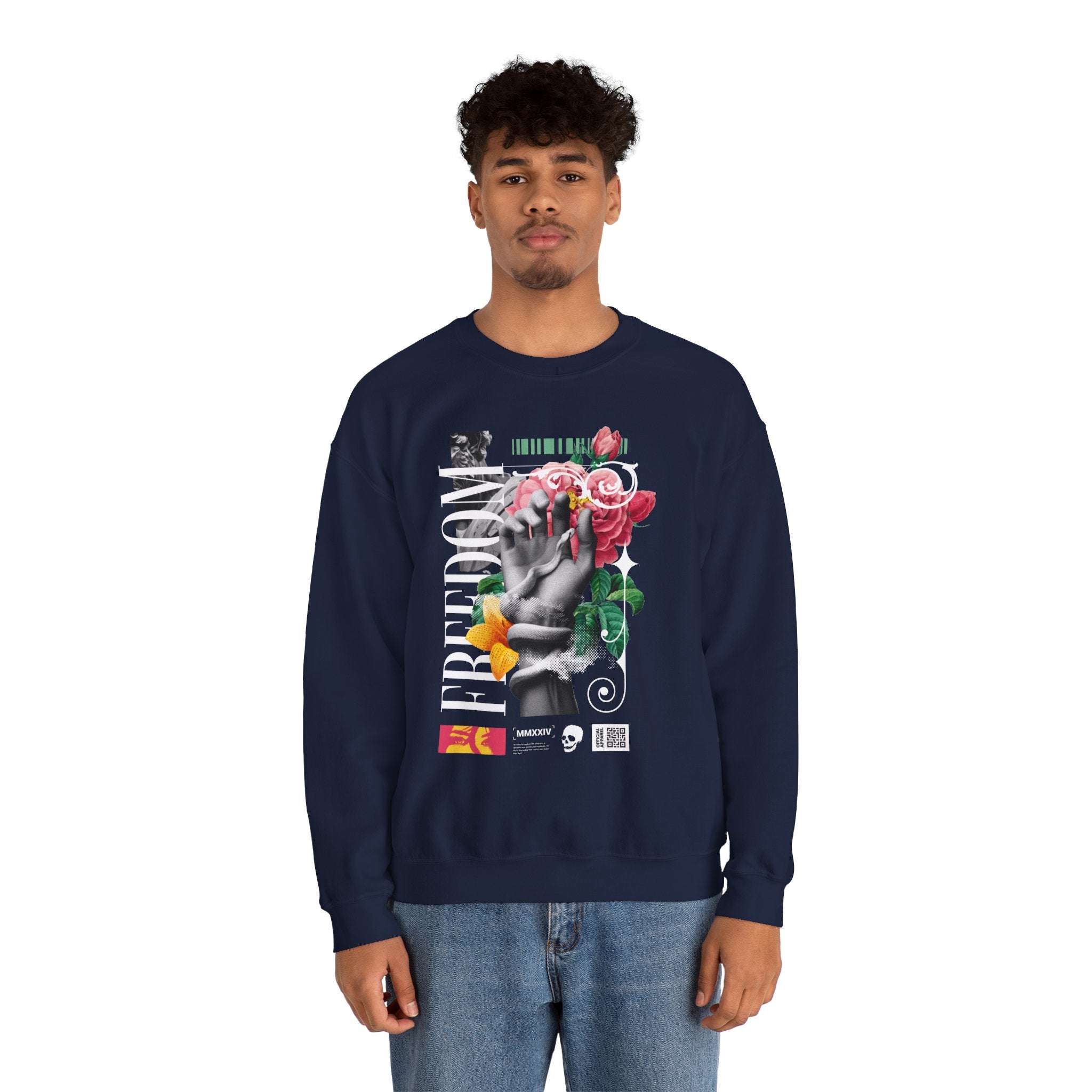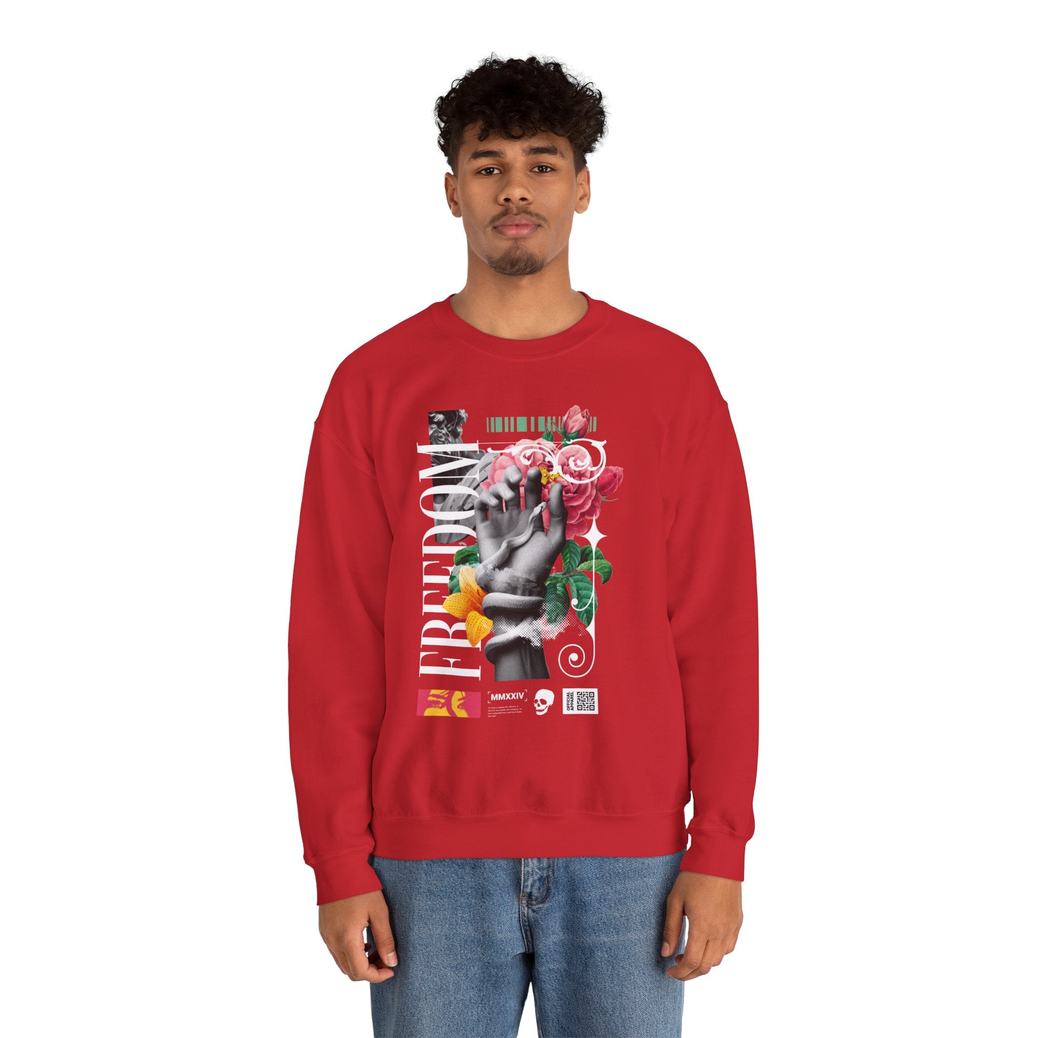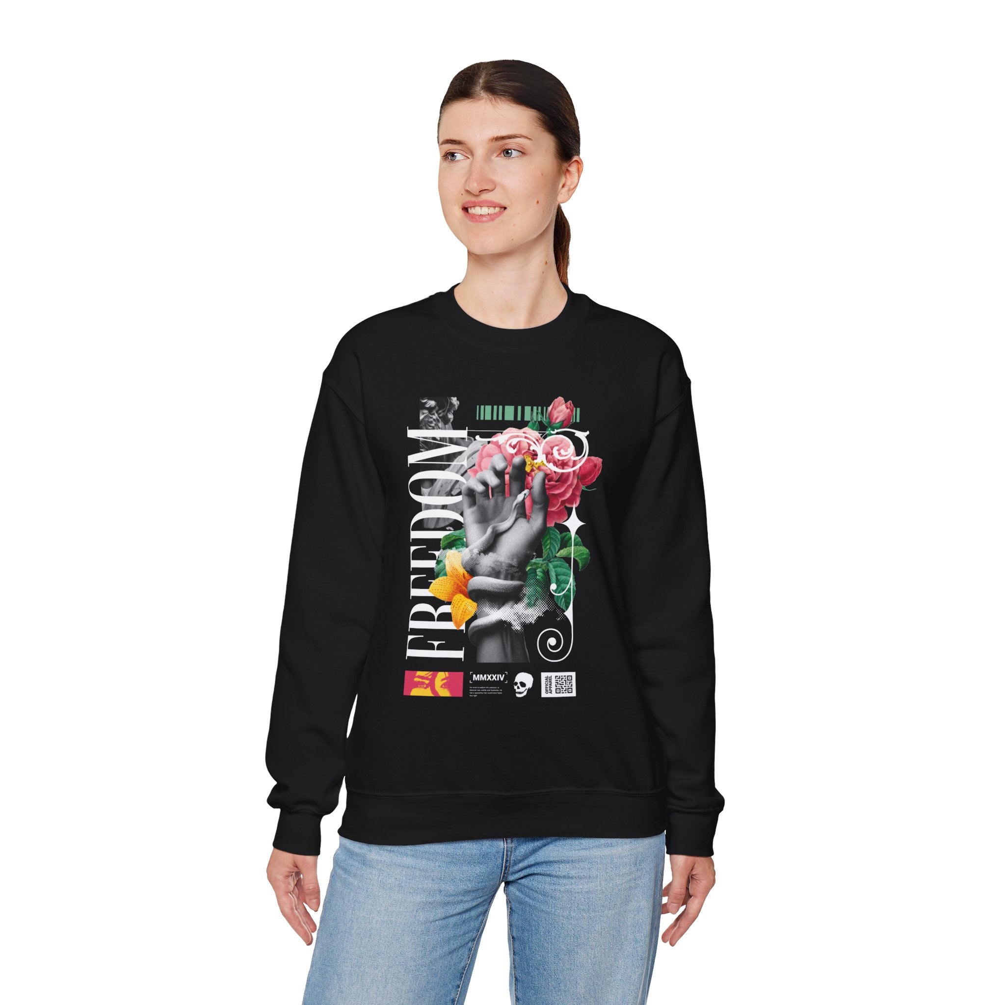 The Freedom Snake and Rose Crewneck blends artistic symbolism with everyday comfort. Featuring a striking design of a hand entwined with a snake and surrounded by roses, this sweatshirt represents courage, resilience, and the beauty of breaking free. Made with a cozy cotton-polyester blend, it’s the perfect piece to layer up while carrying a powerful message of strength and self-liberation.