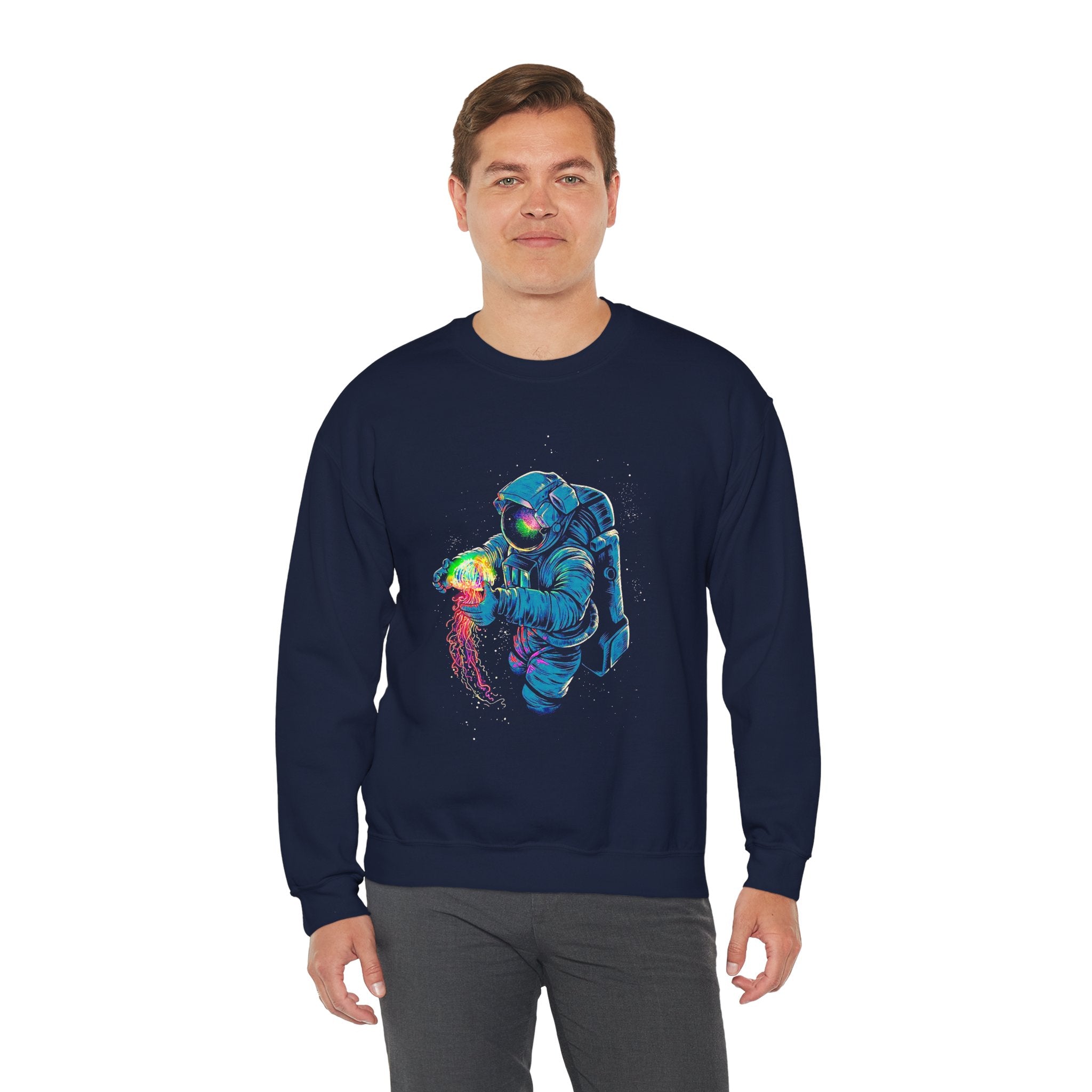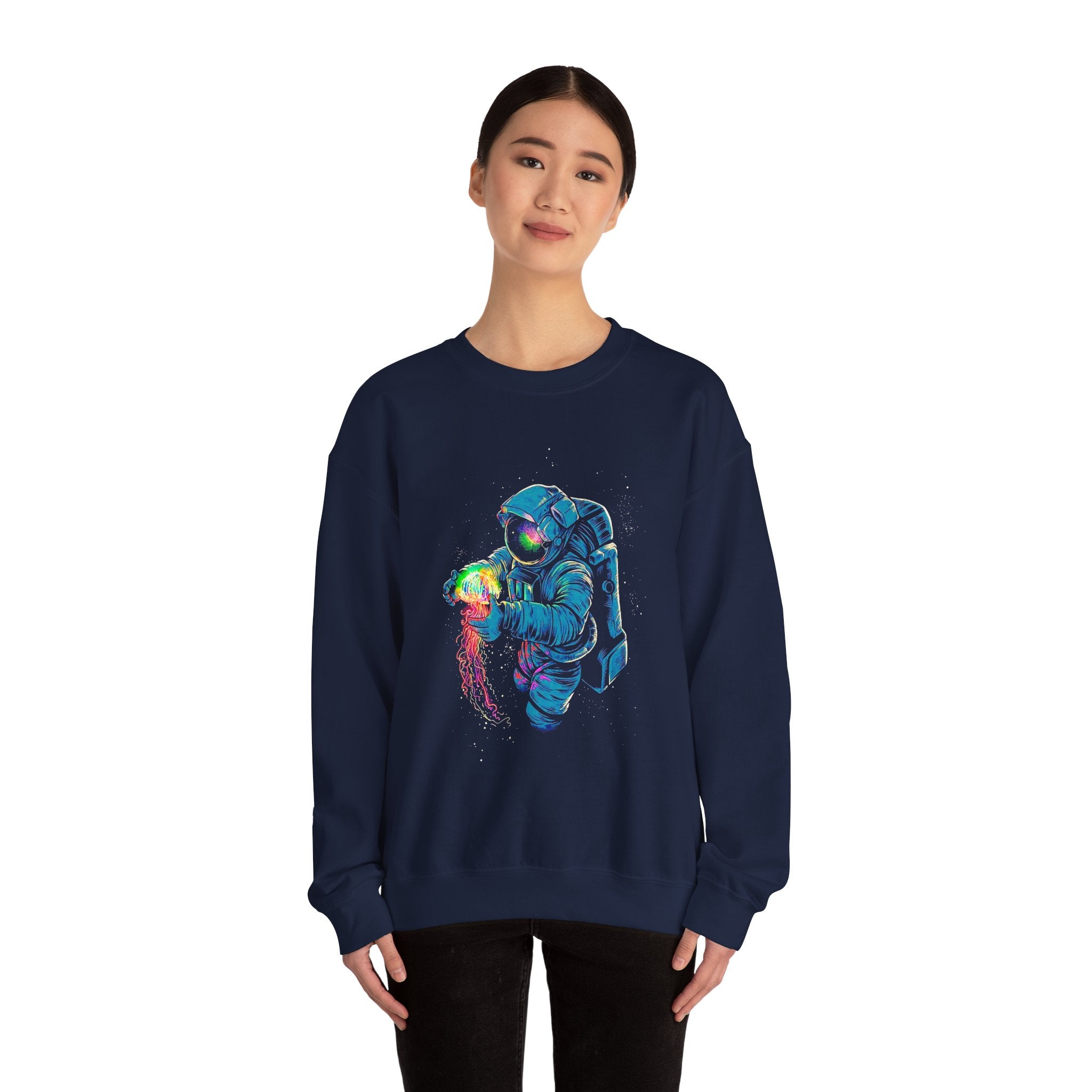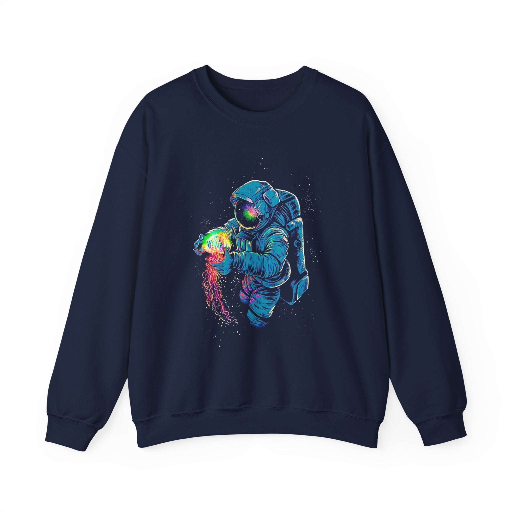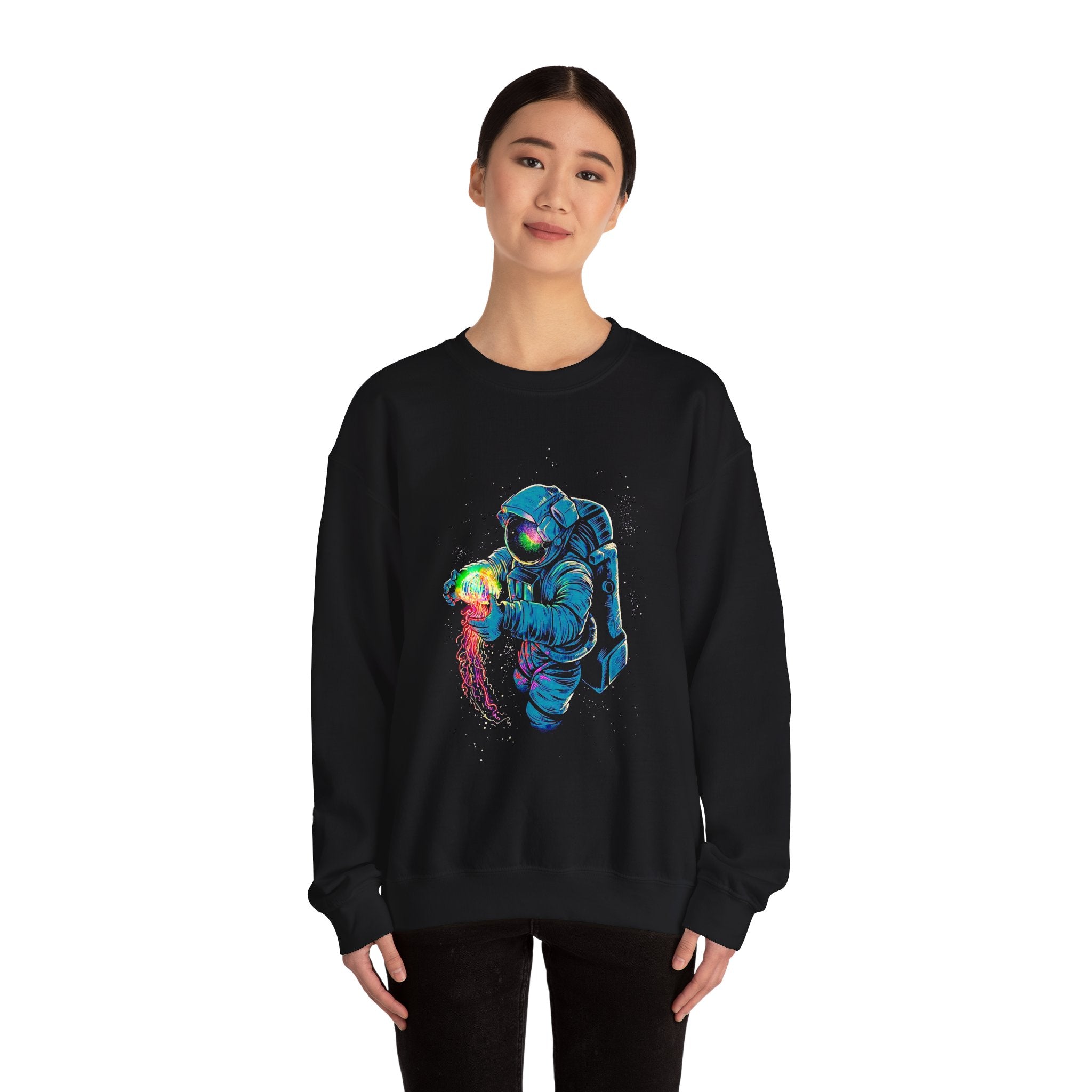 Elevate your wardrobe with this stunning Crewneck Sweatshirt, perfect for those who appreciate art and individuality. Wear it to express your unique style while enjoying warmth and comfort. The vibrant design features an astronaut delicately holding a jellyfish, sparking dreams of exploration and creativity. Ideal for casual outings, cozy evenings at home, or as a standout piece at gatherings with friends. This sweatshirt makes a thoughtful gift for art enthusiasts, space lovers, and anyone who enjoys a one-of-a-kind fashion statement. Perfect for holidays like Christmas, Halloween, or personal celebrations like birthdays, itโs bound to be a cherished addition to any closet.