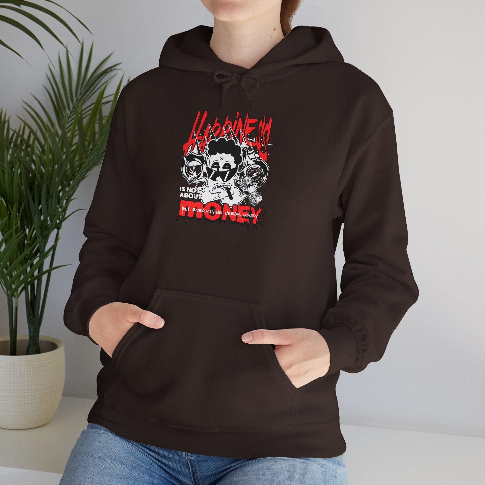 The Happiness vs Money Unisex Heavy Blend Hoodie is more than comfort—it’s a mindset. With its graffiti-style artwork and unapologetic message, it reminds the world that happiness isn’t about money, but everything needs money.
