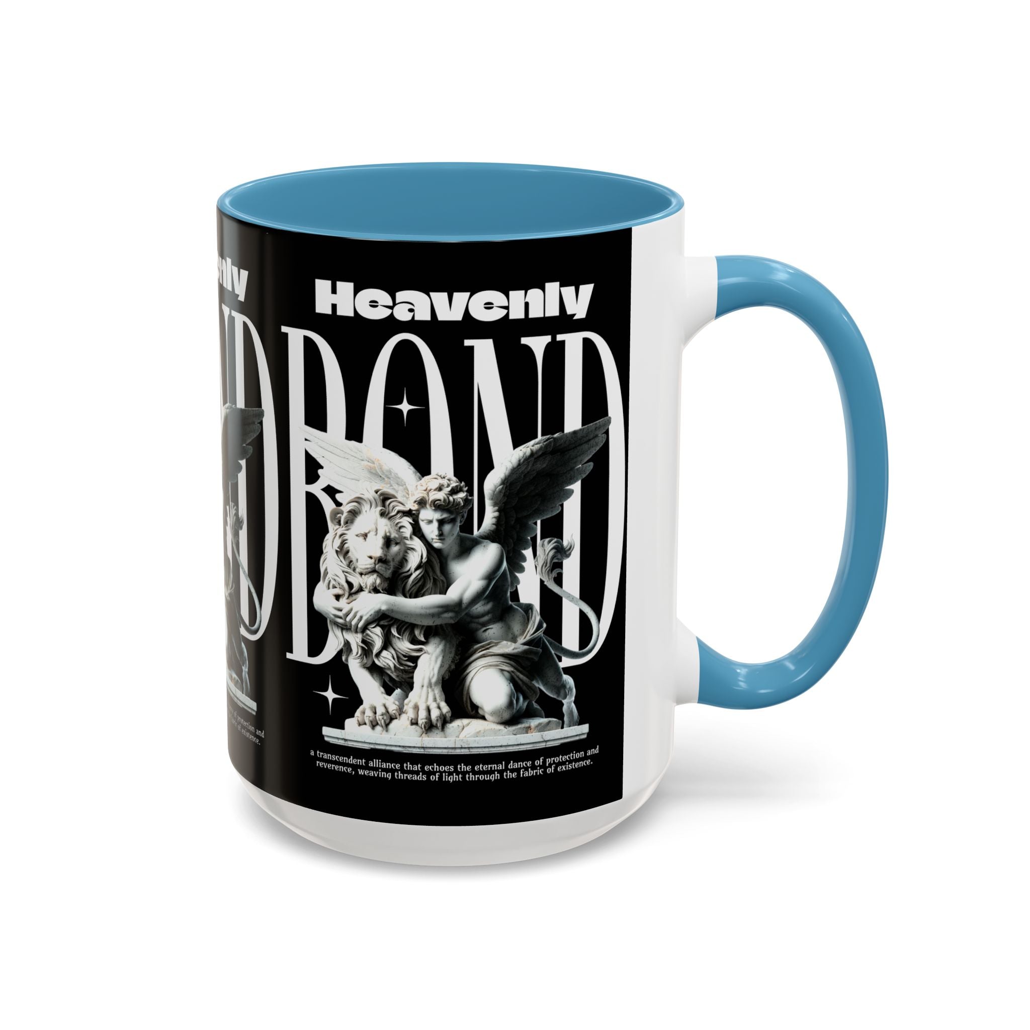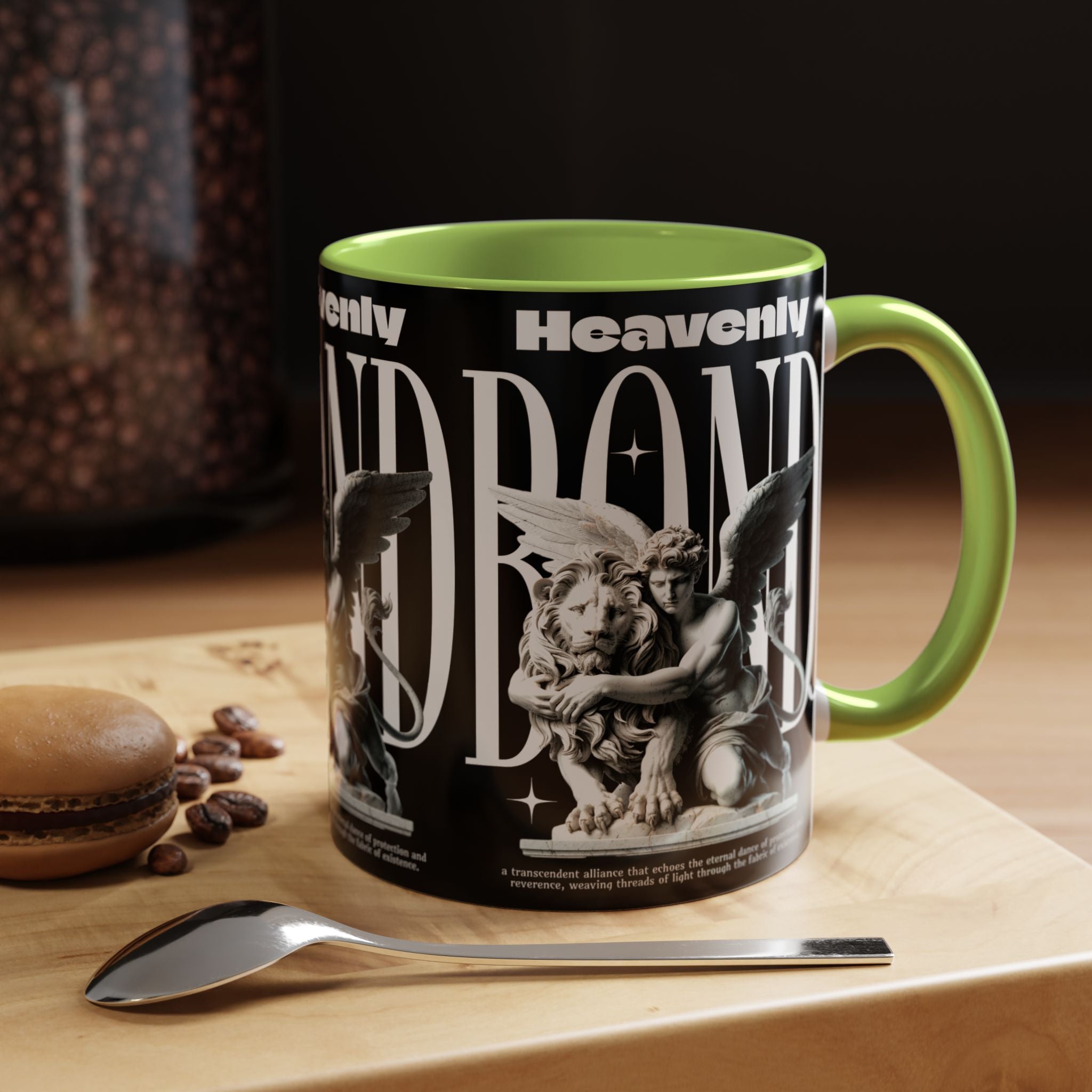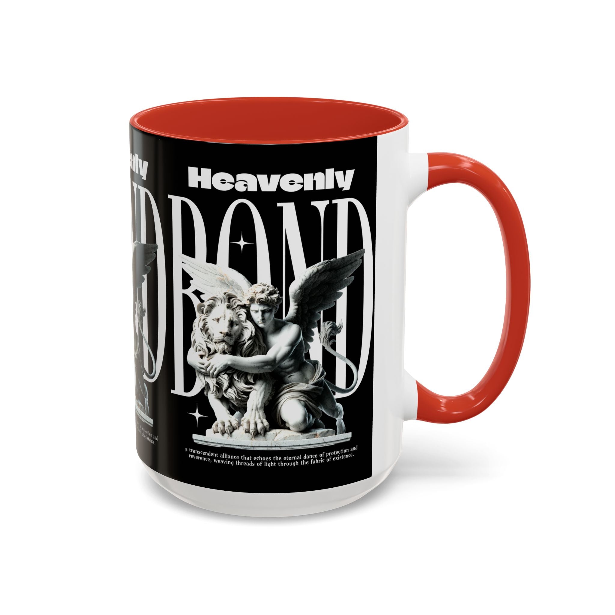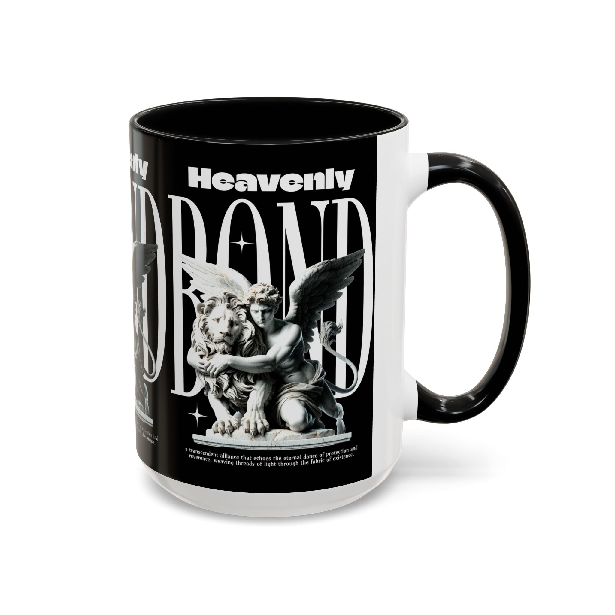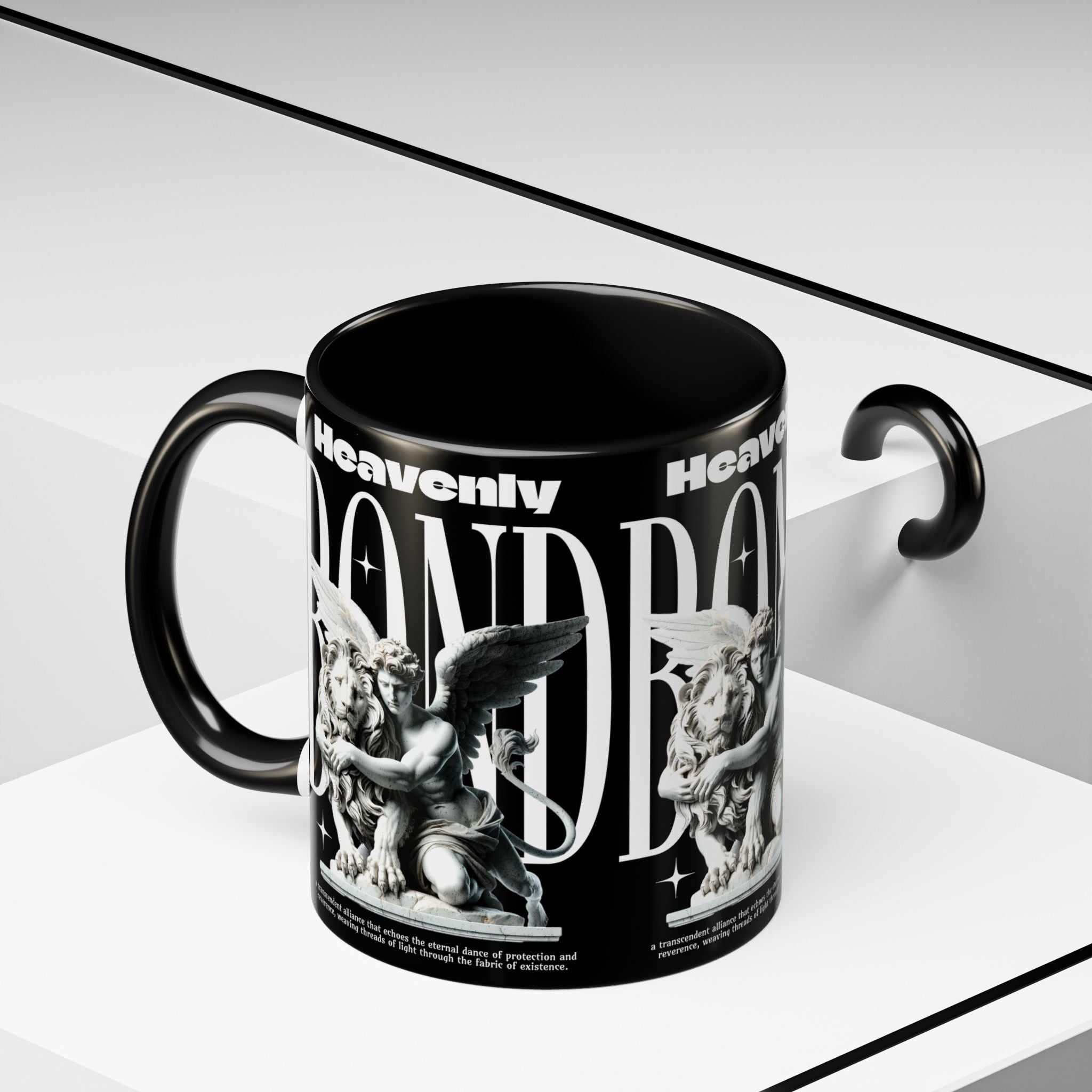 The Heavenly Bond Accent Coffee Mug (11oz & 15oz) is a daily reminder of protection, courage, and unity. Featuring a bold angel embracing a lion statue graphic, this mug symbolizes a divine alliance between strength and spirituality, turning every sip into a moment of reflection and power.