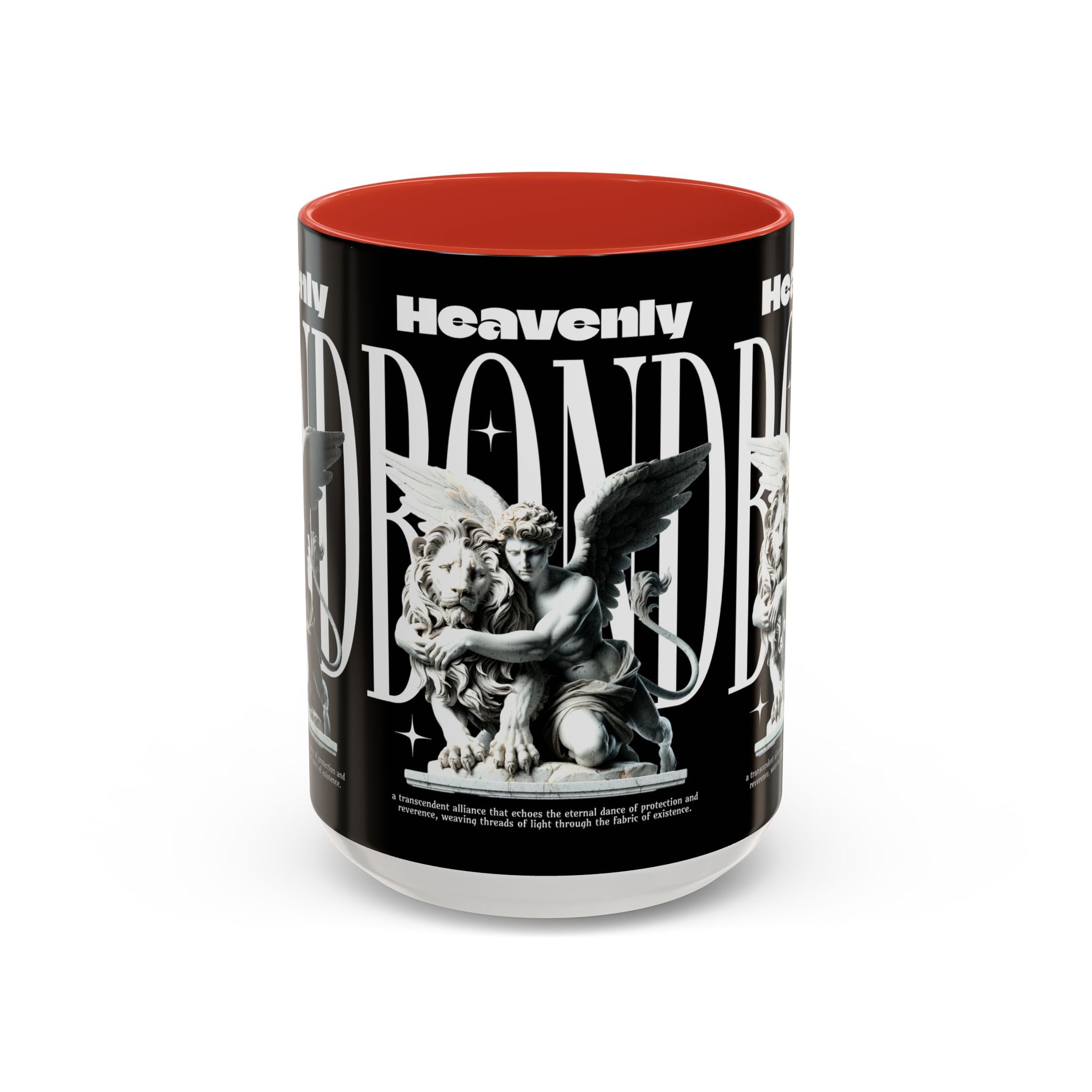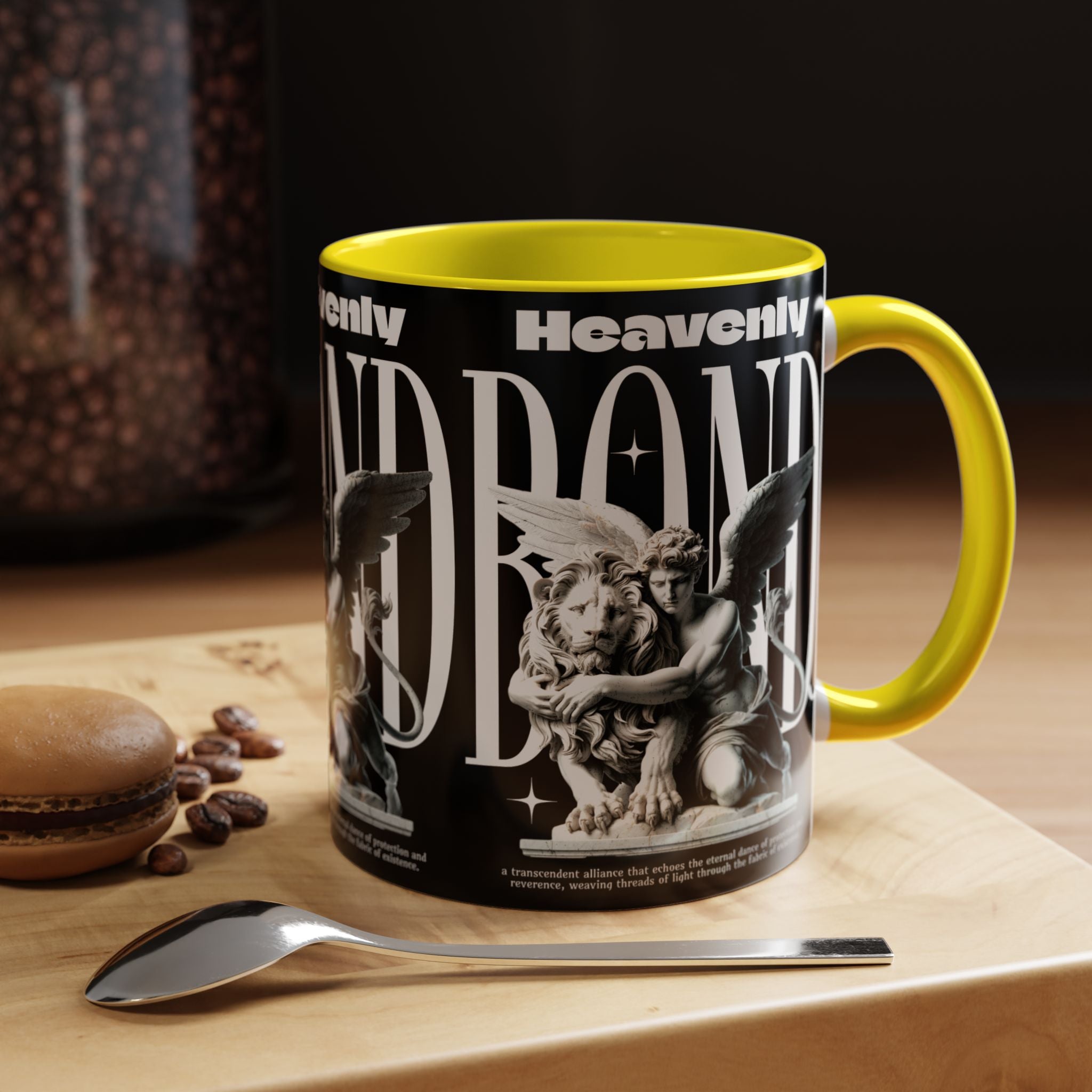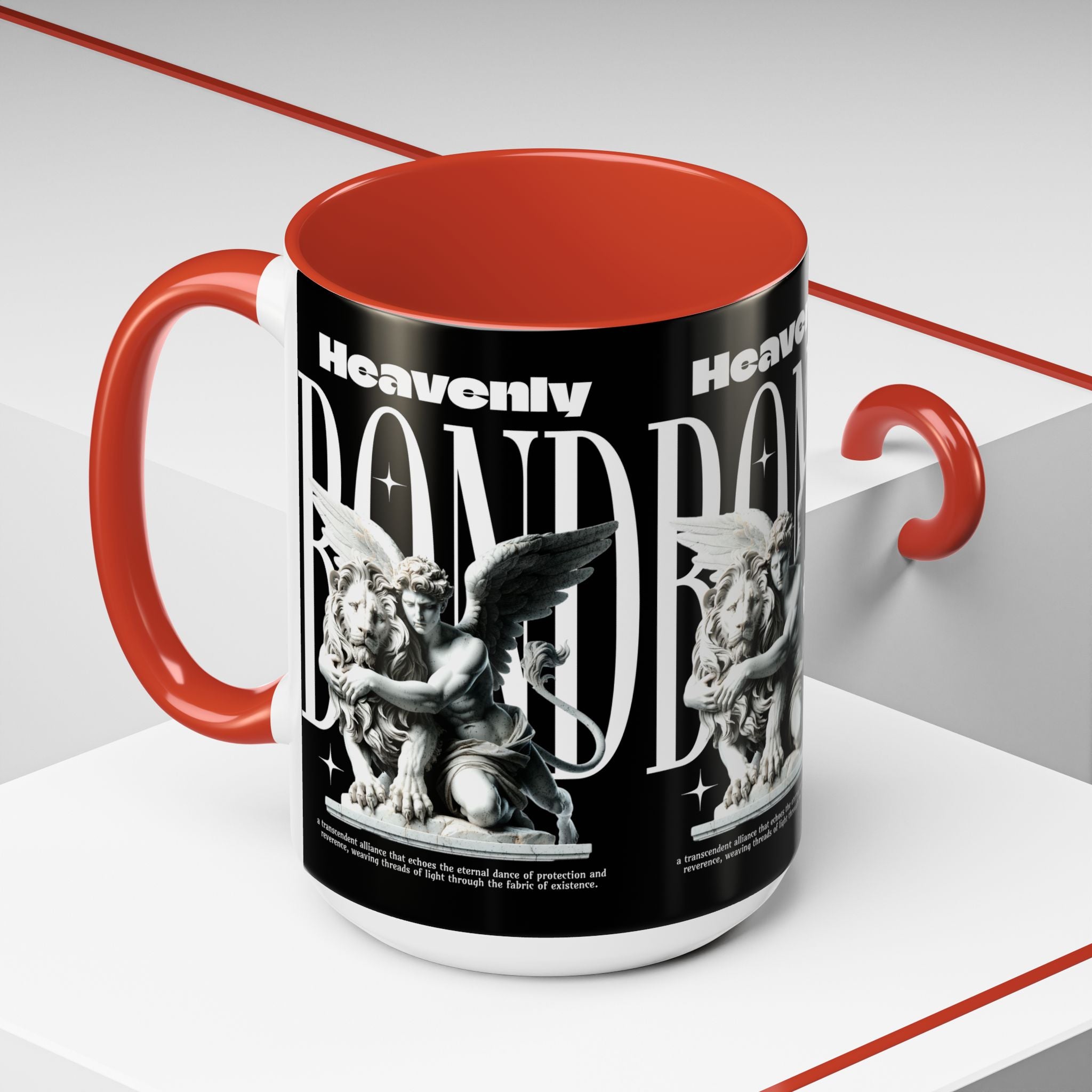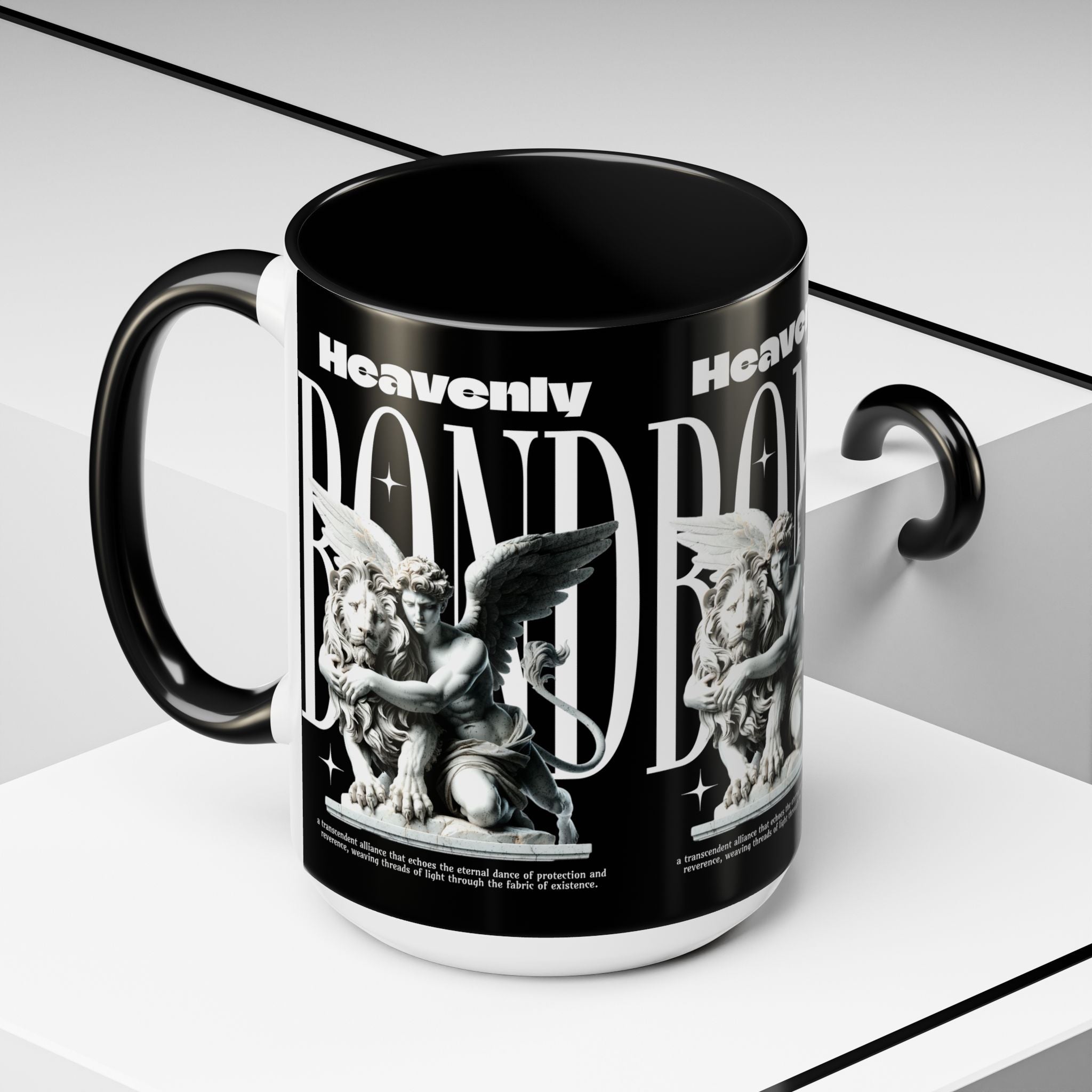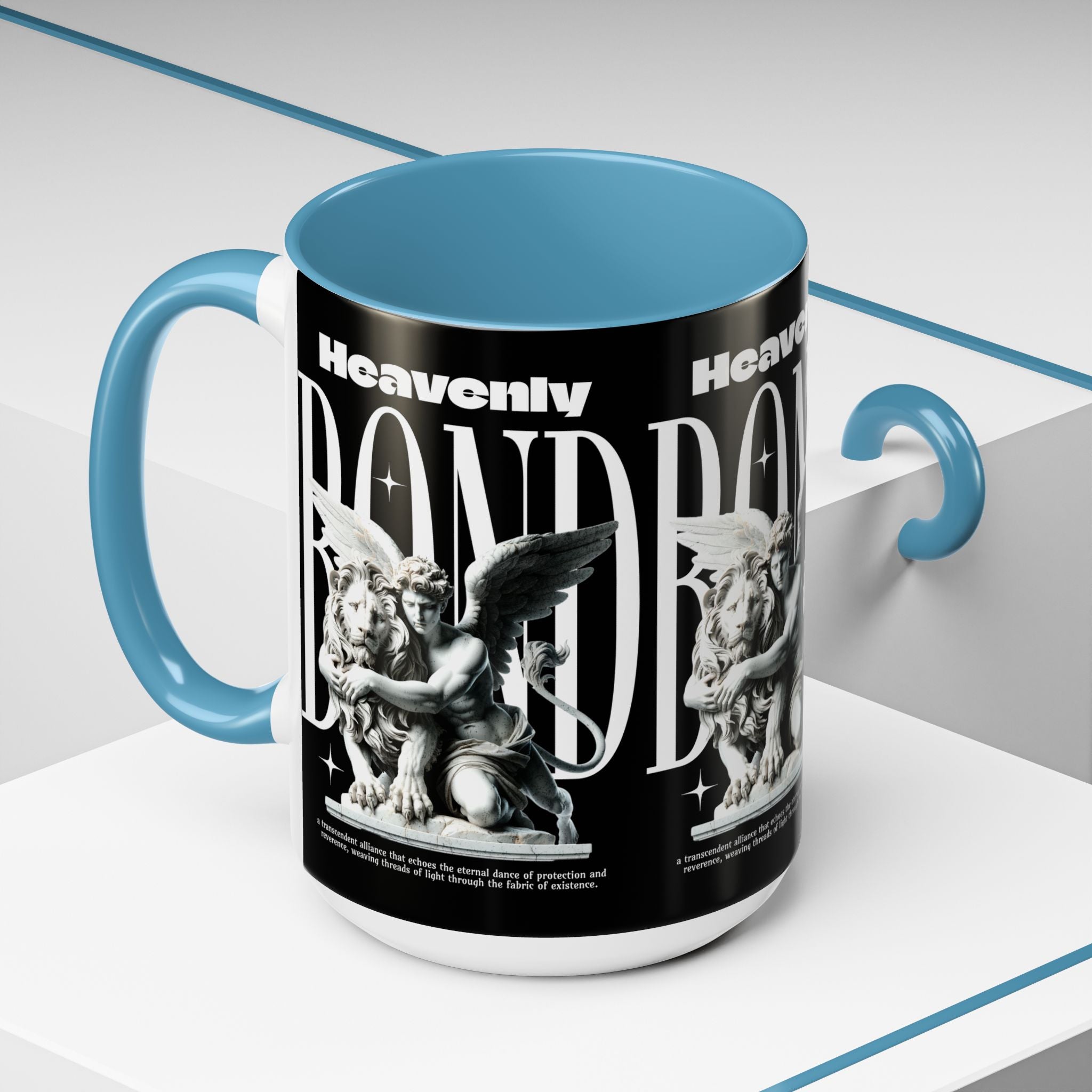 The Heavenly Bond Accent Coffee Mug (11oz & 15oz) is a daily reminder of protection, courage, and unity. Featuring a bold angel embracing a lion statue graphic, this mug symbolizes a divine alliance between strength and spirituality, turning every sip into a moment of reflection and power.