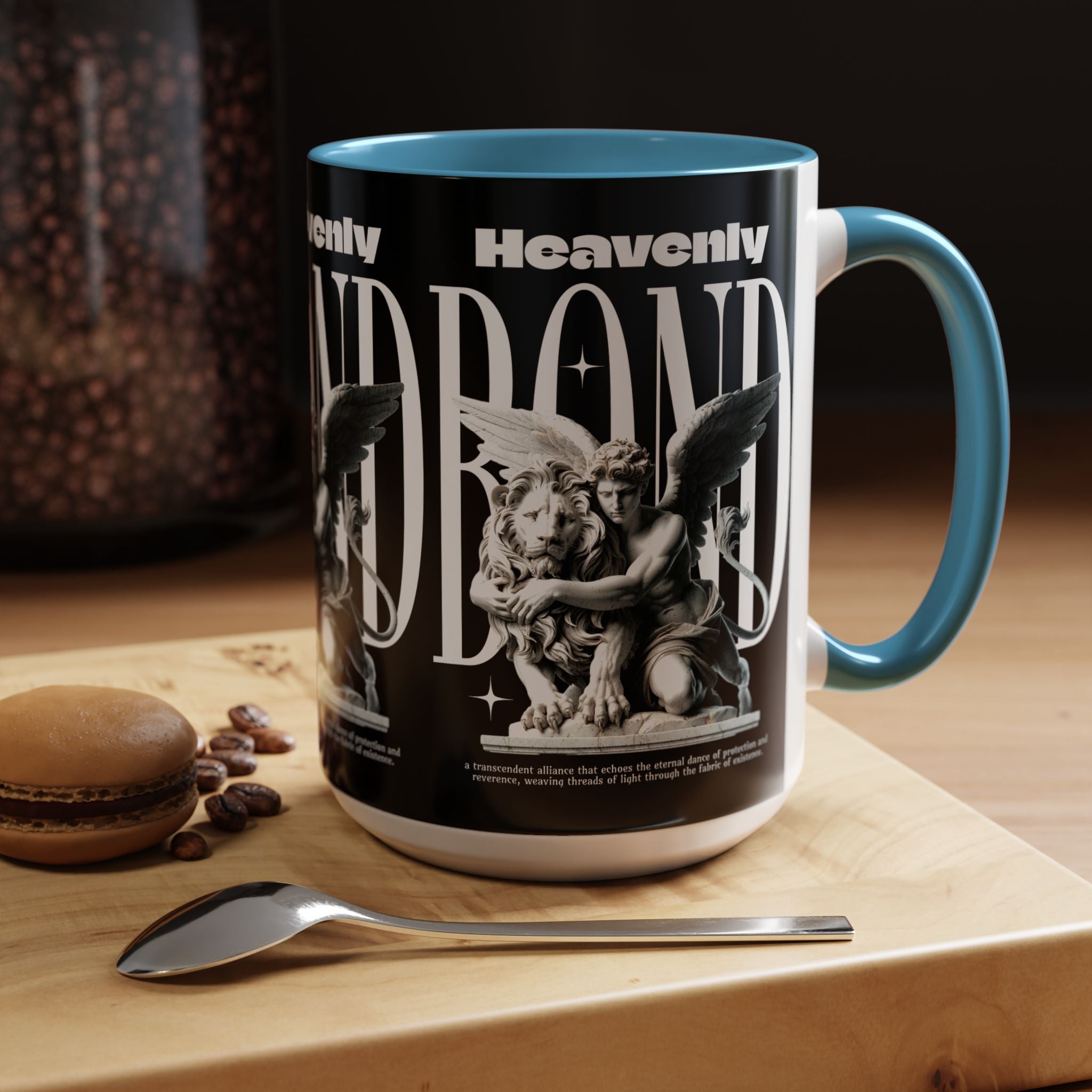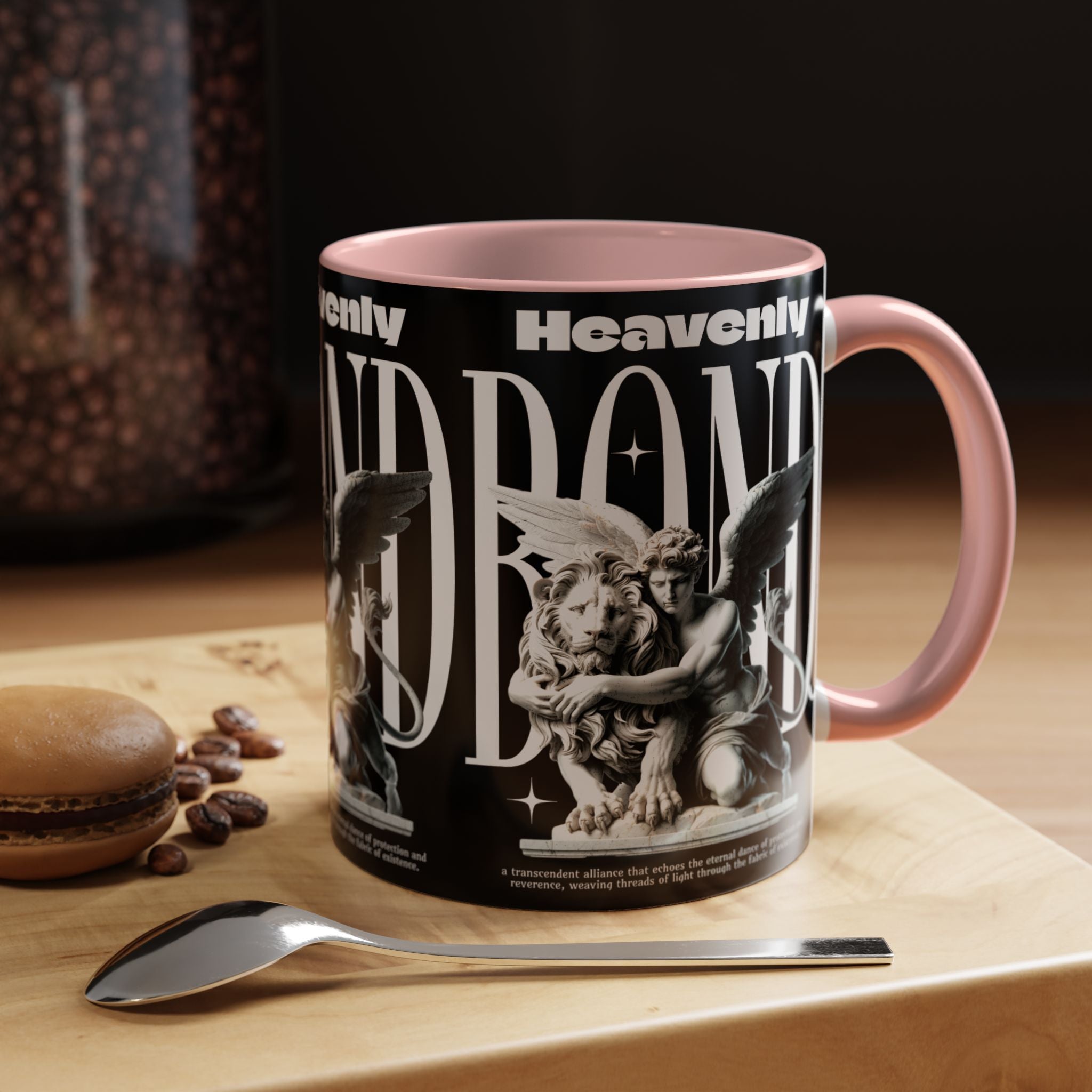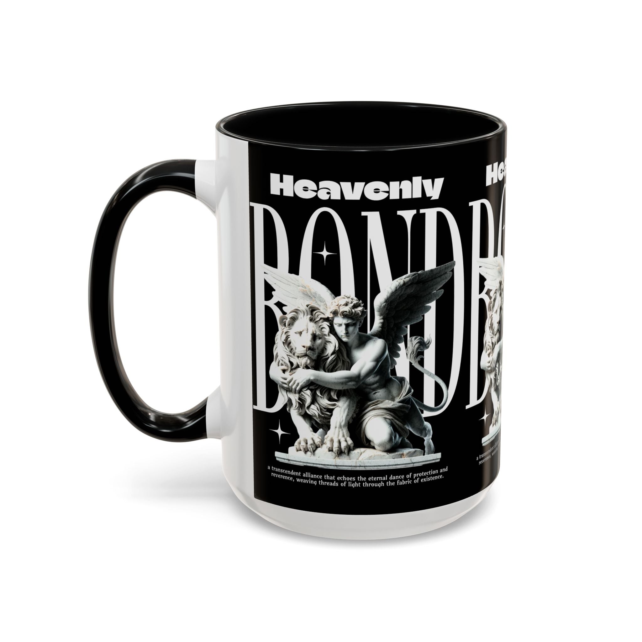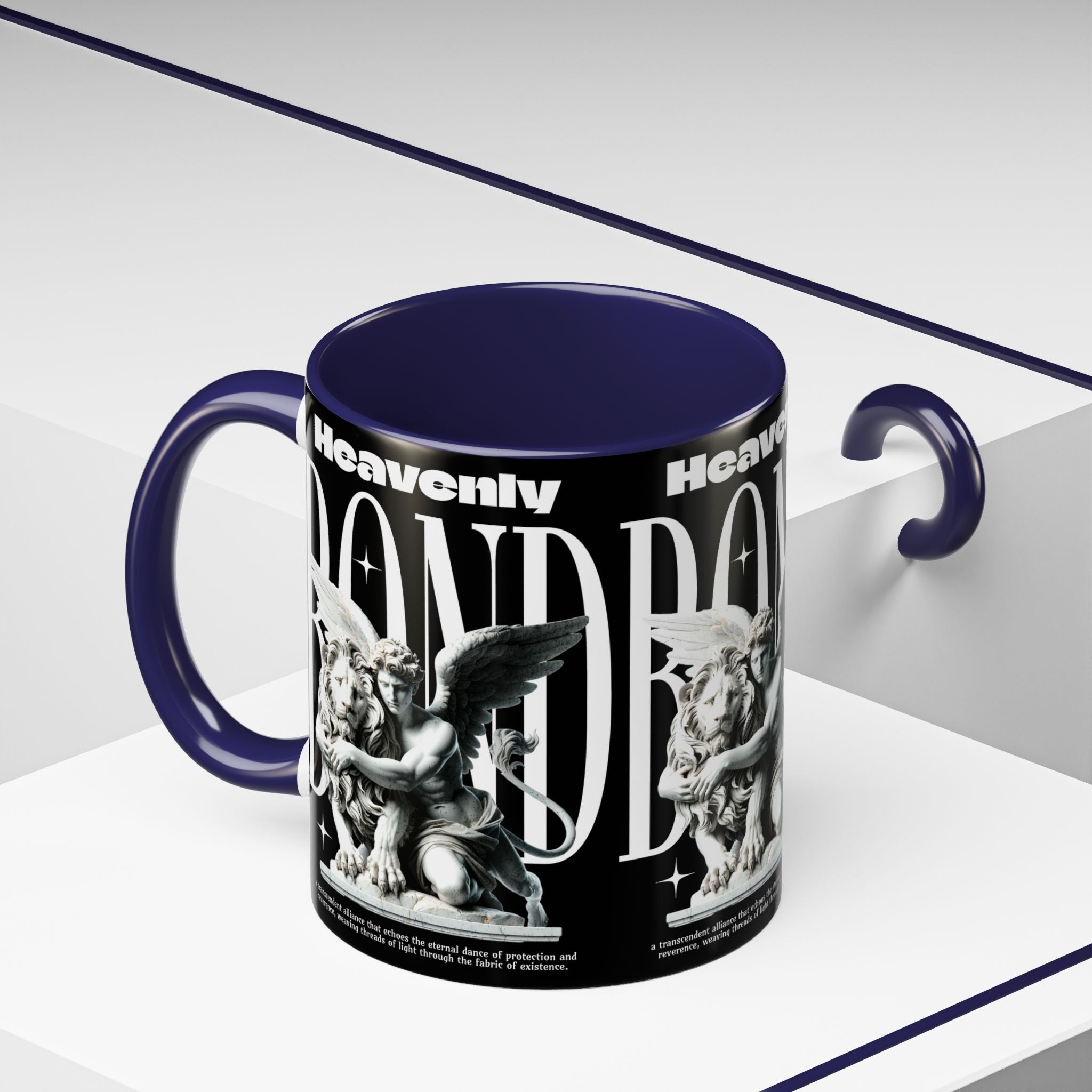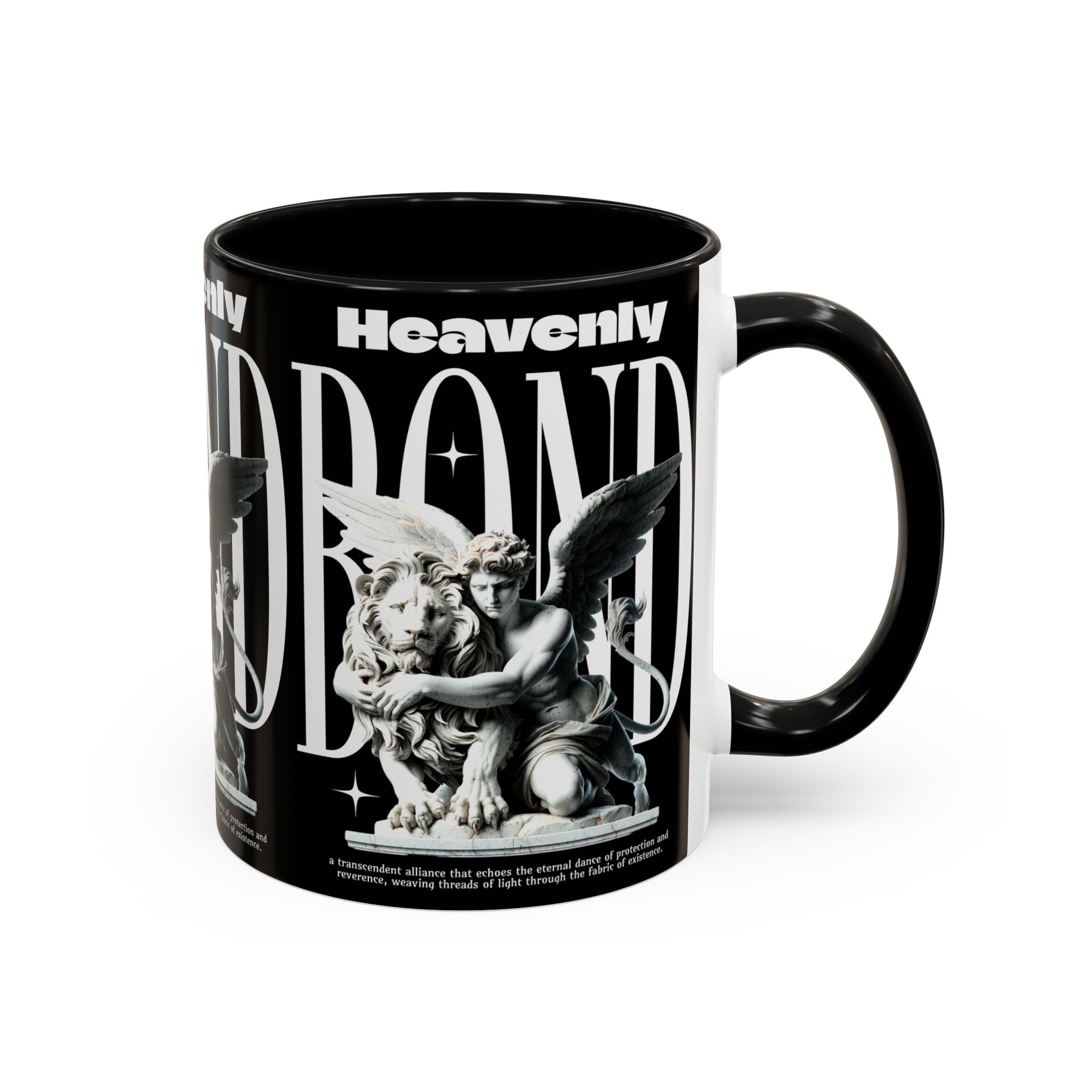 The Heavenly Bond Accent Coffee Mug (11oz & 15oz) is a daily reminder of protection, courage, and unity. Featuring a bold angel embracing a lion statue graphic, this mug symbolizes a divine alliance between strength and spirituality, turning every sip into a moment of reflection and power.