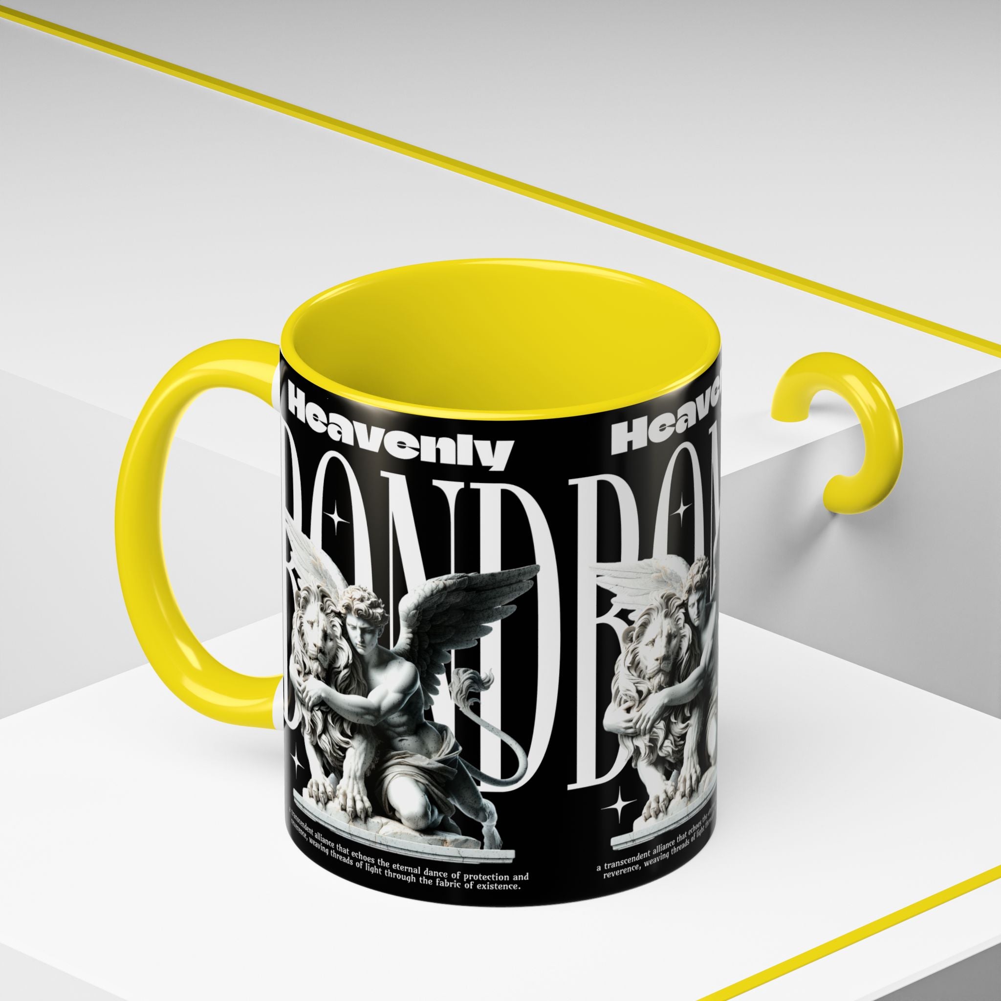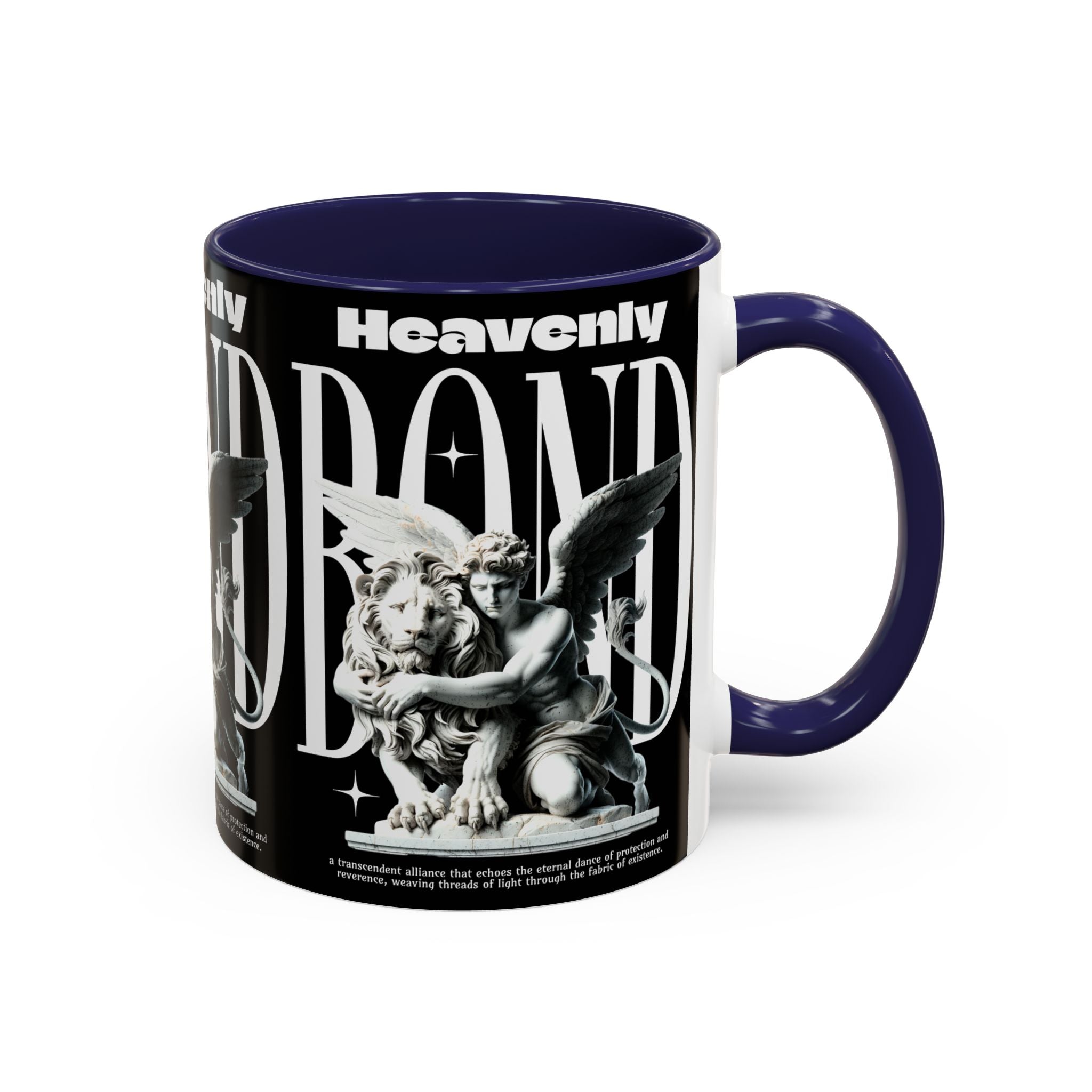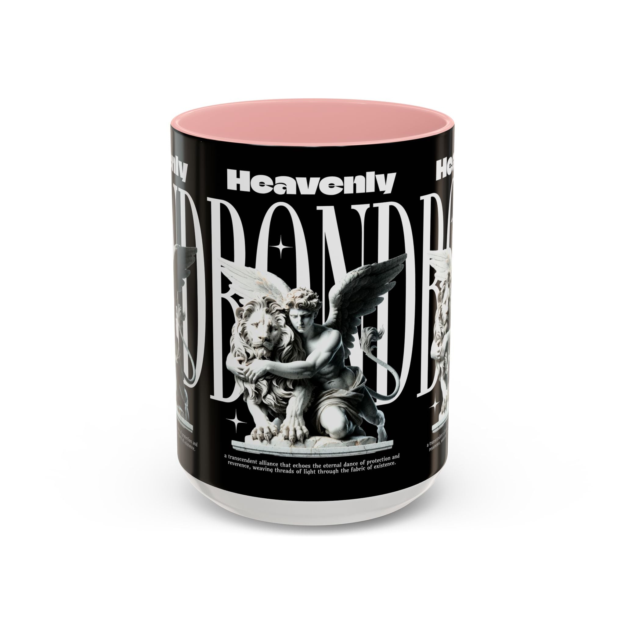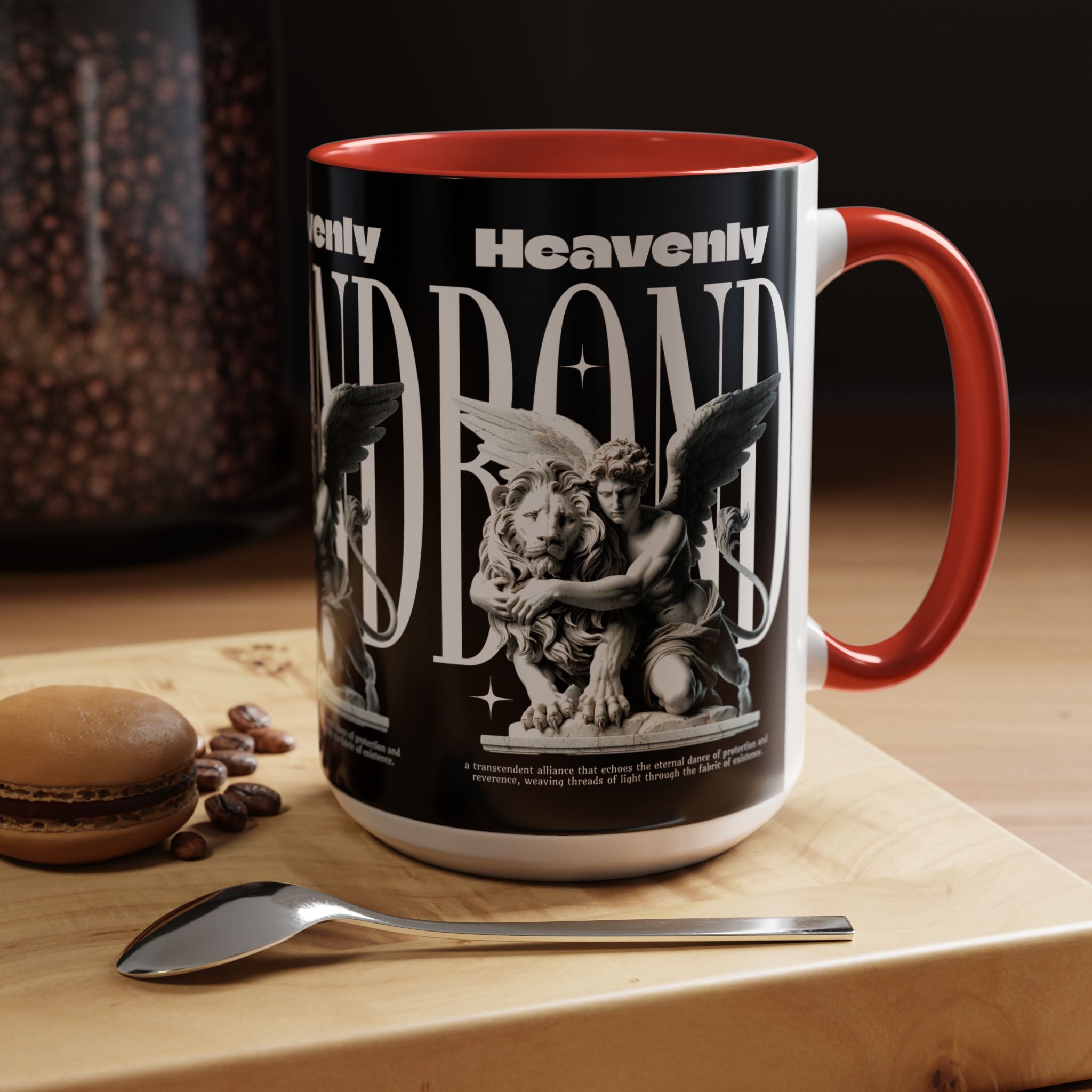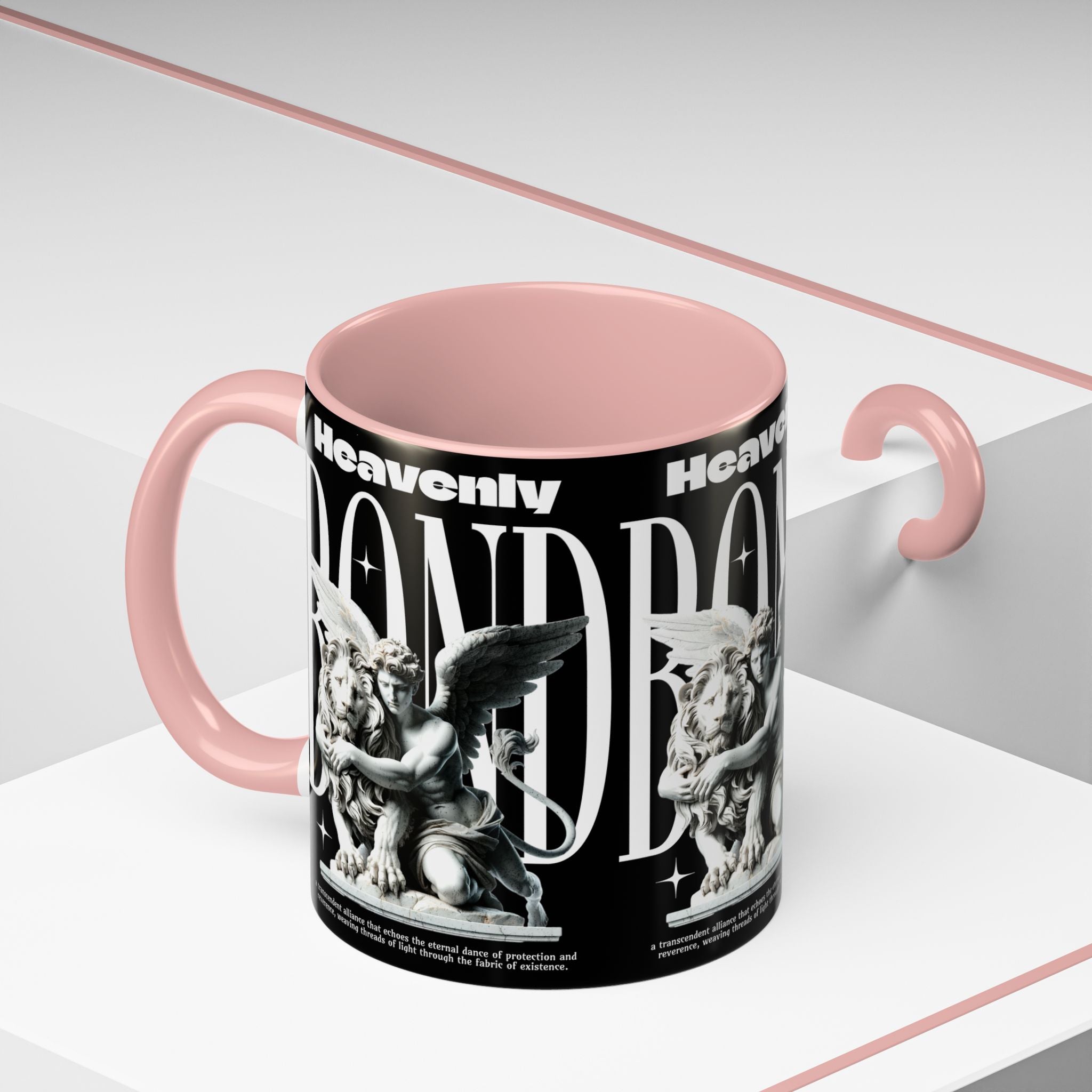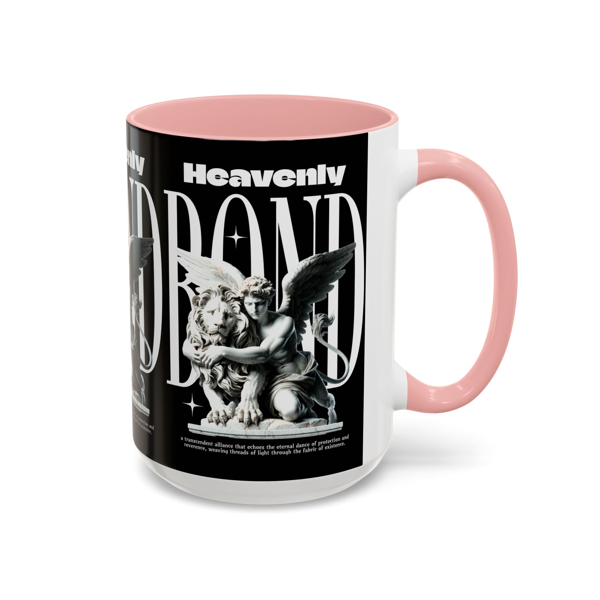 The Heavenly Bond Accent Coffee Mug (11oz & 15oz) is a daily reminder of protection, courage, and unity. Featuring a bold angel embracing a lion statue graphic, this mug symbolizes a divine alliance between strength and spirituality, turning every sip into a moment of reflection and power.