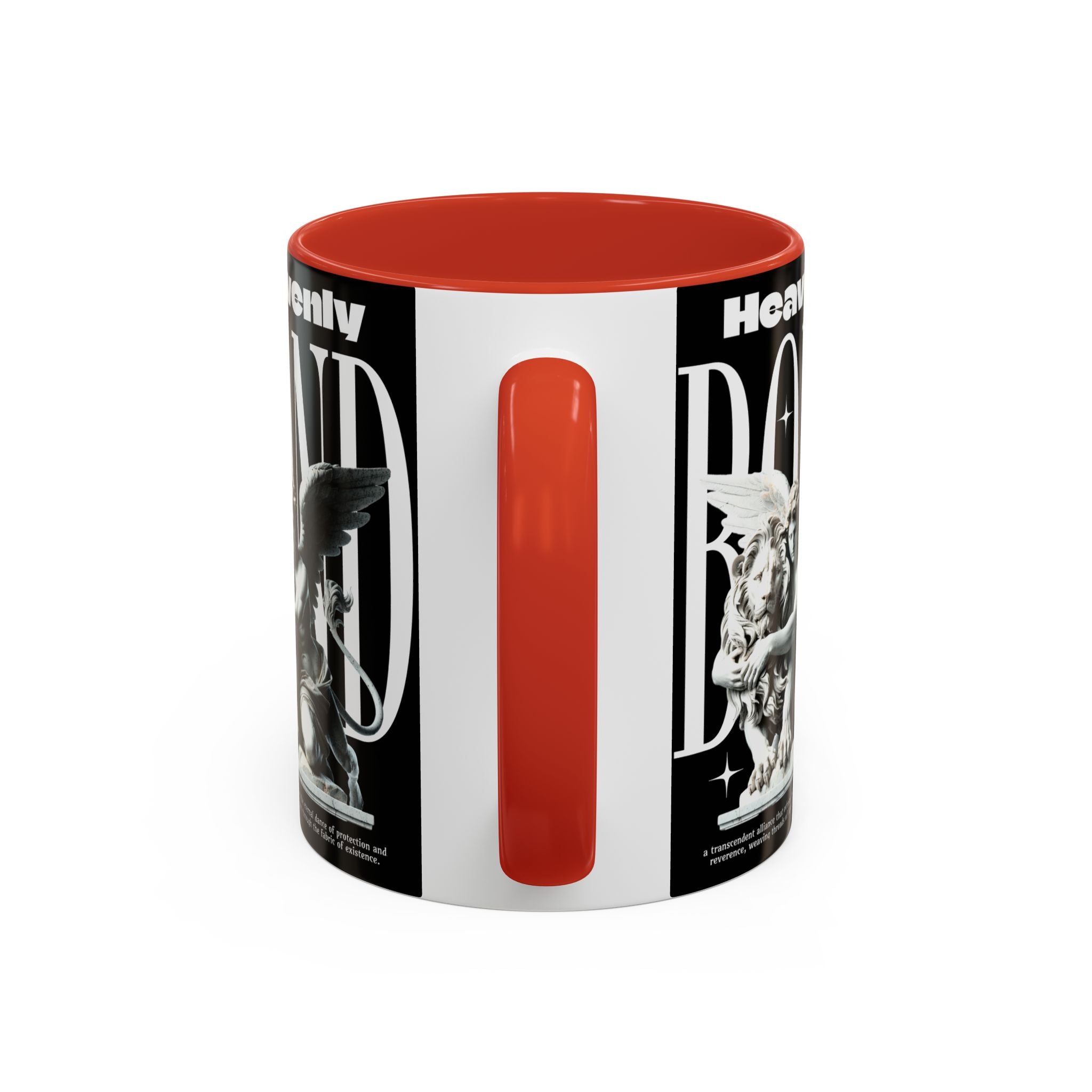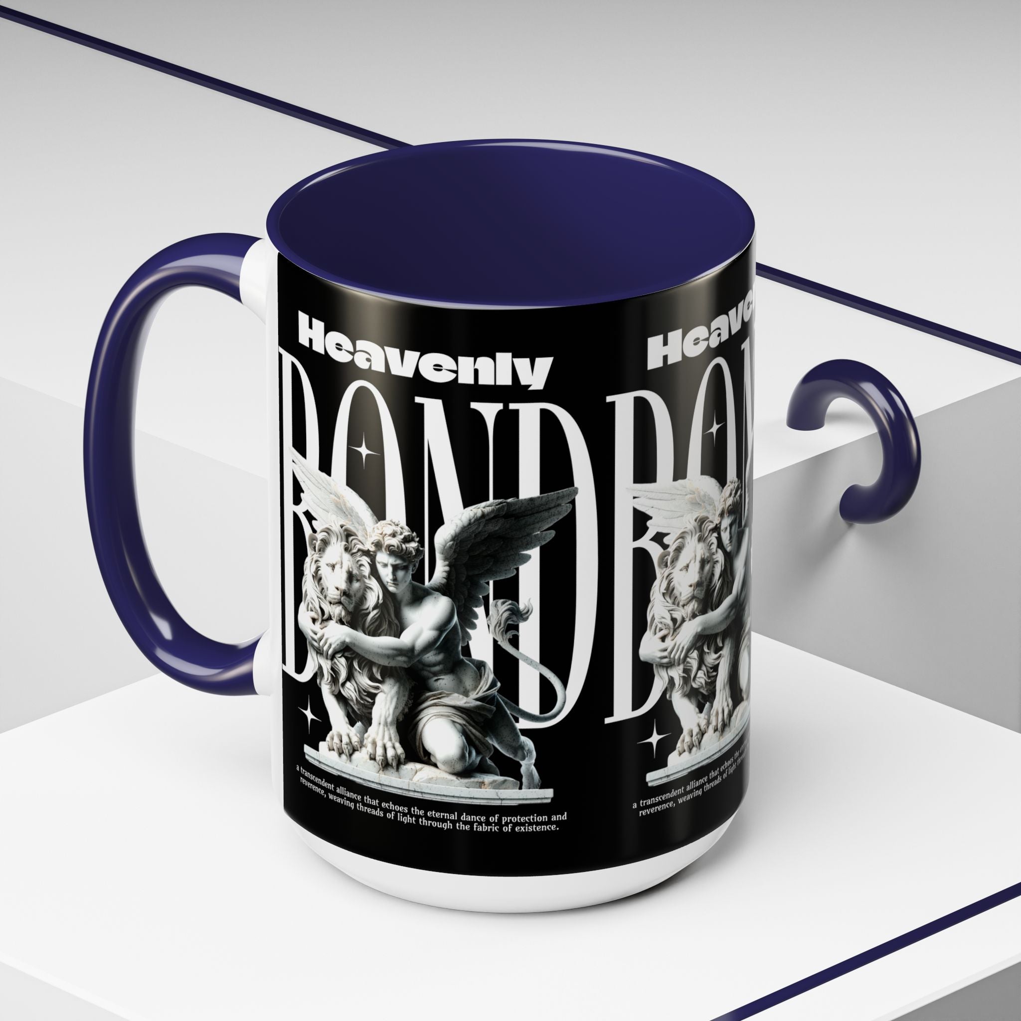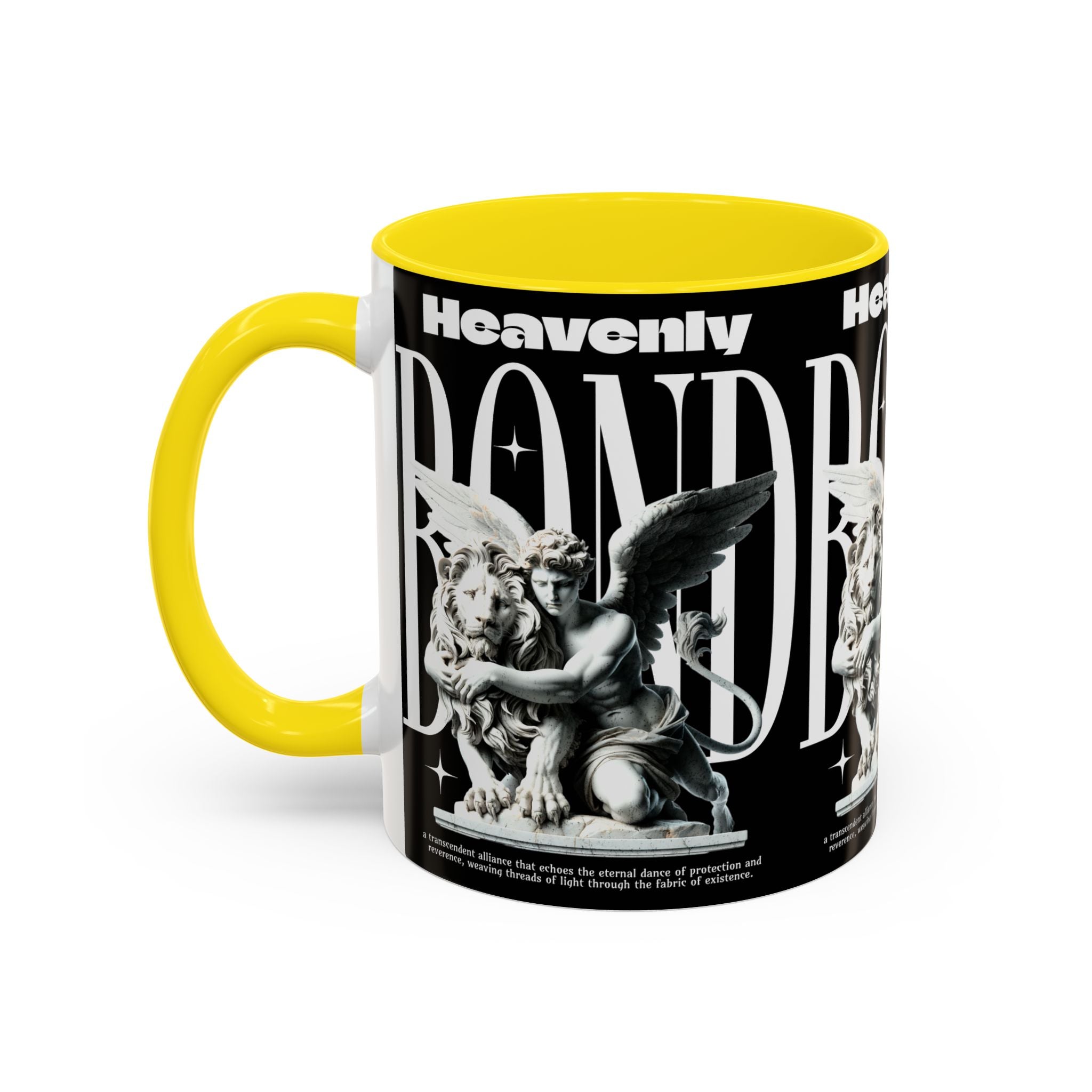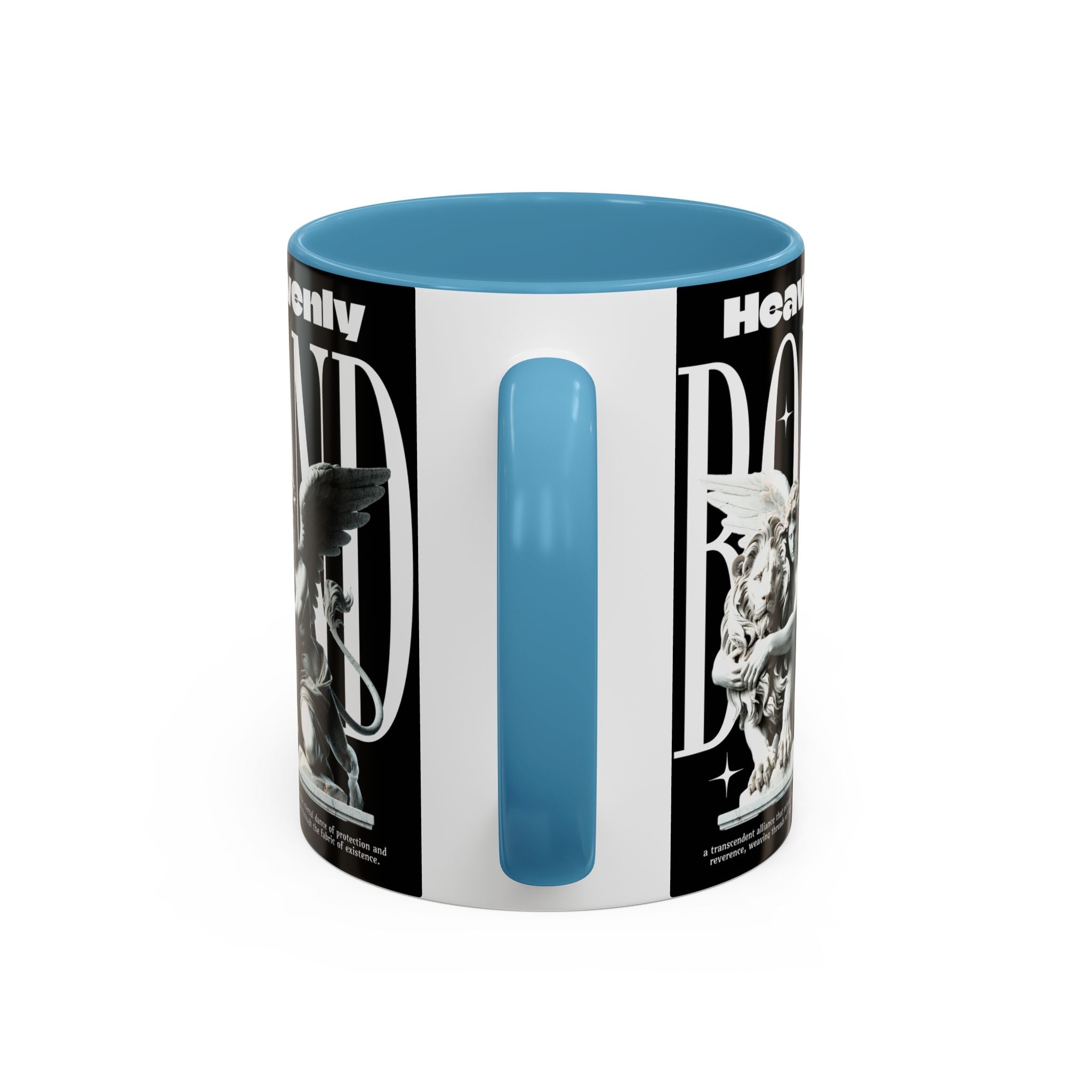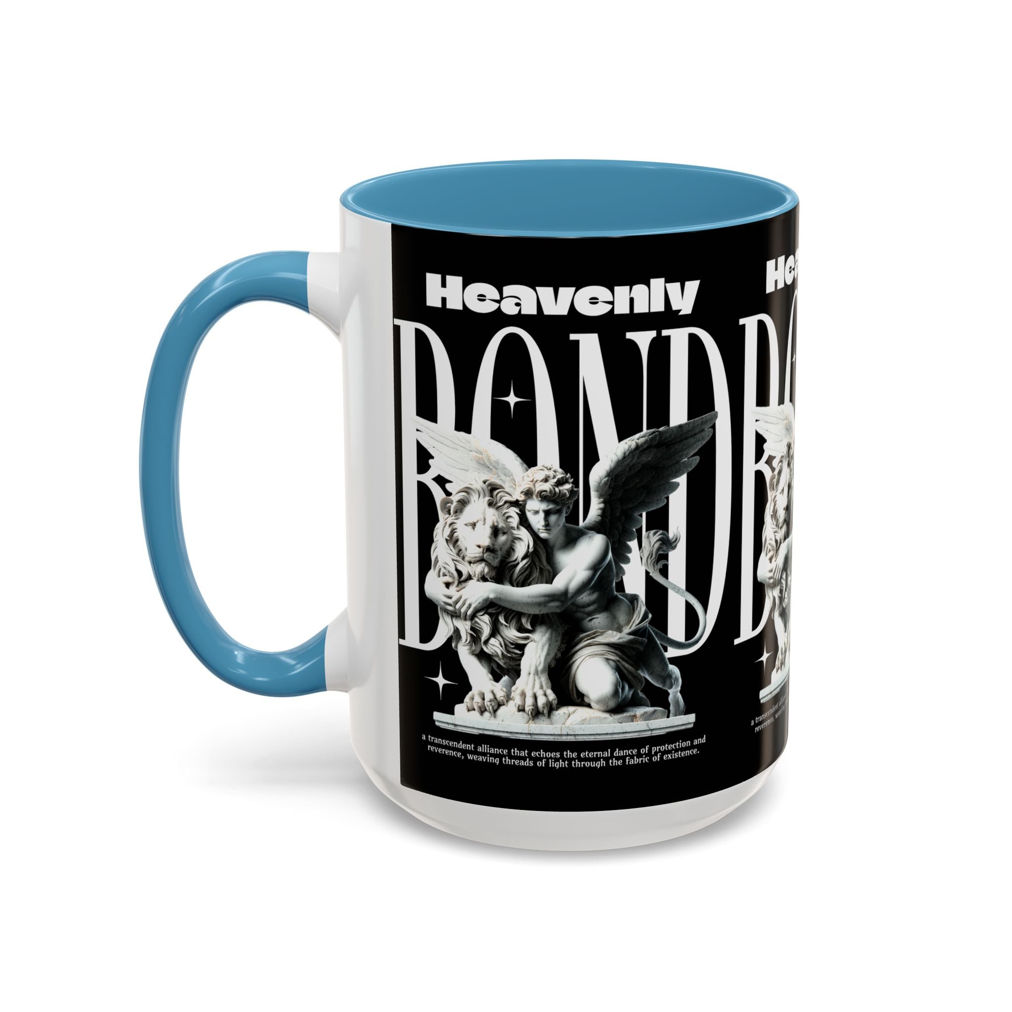 The Heavenly Bond Accent Coffee Mug (11oz & 15oz) is a daily reminder of protection, courage, and unity. Featuring a bold angel embracing a lion statue graphic, this mug symbolizes a divine alliance between strength and spirituality, turning every sip into a moment of reflection and power.