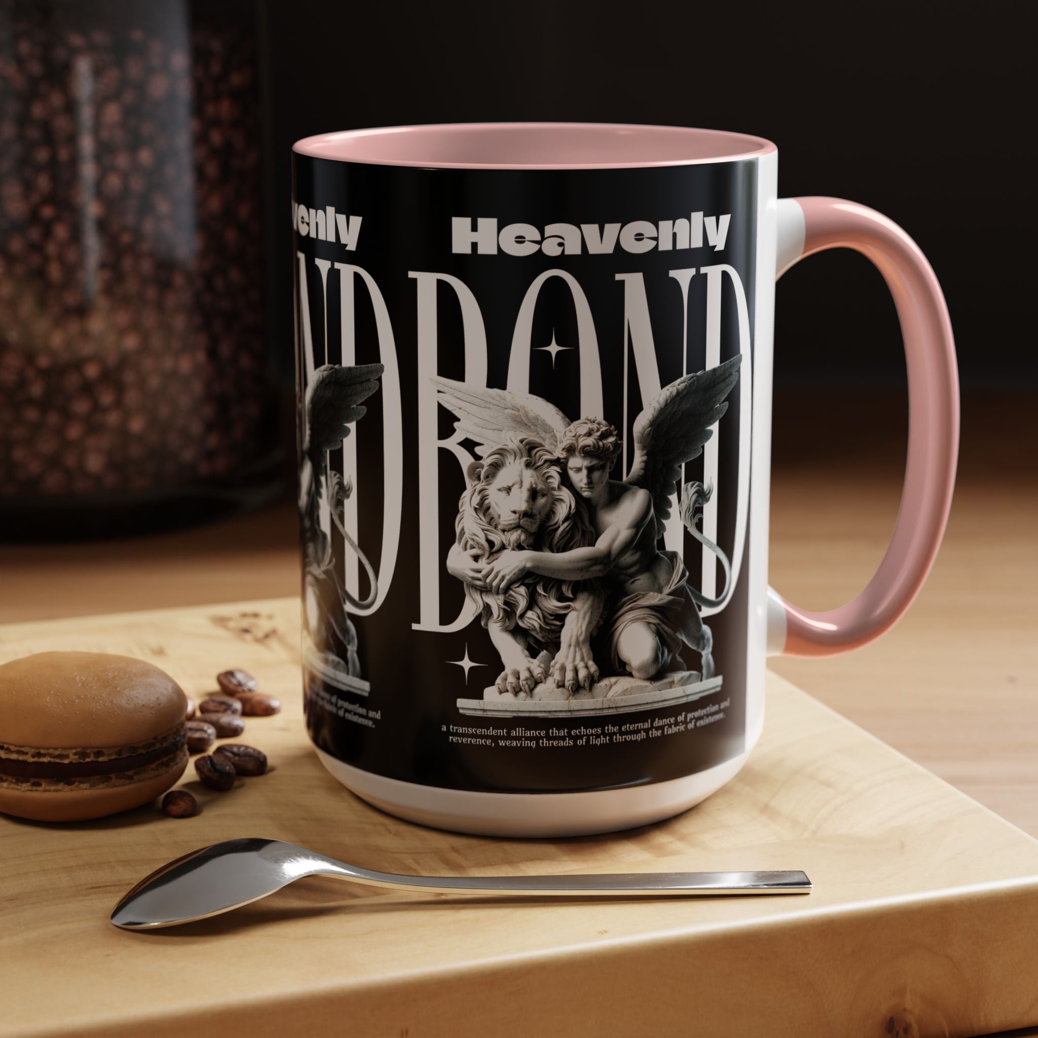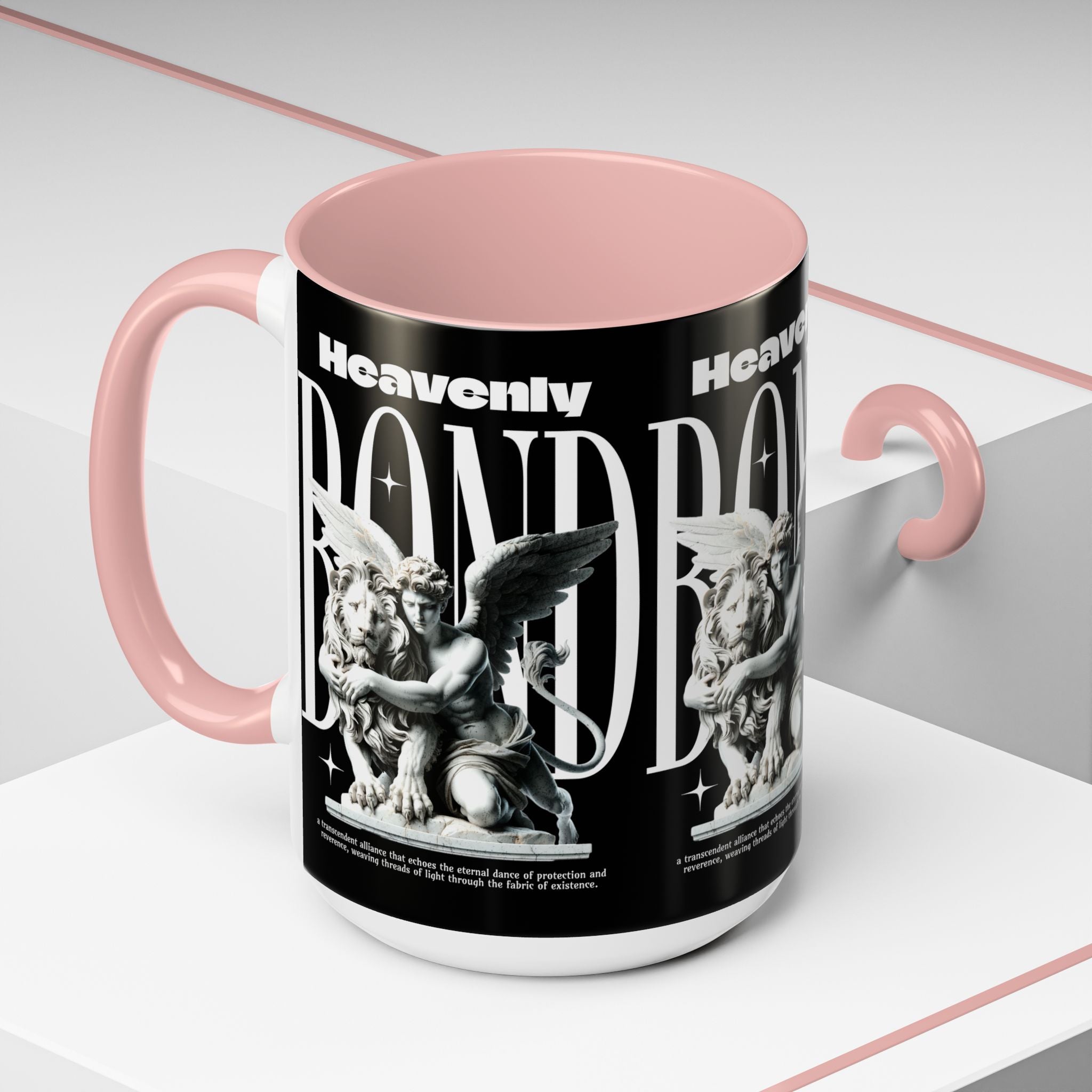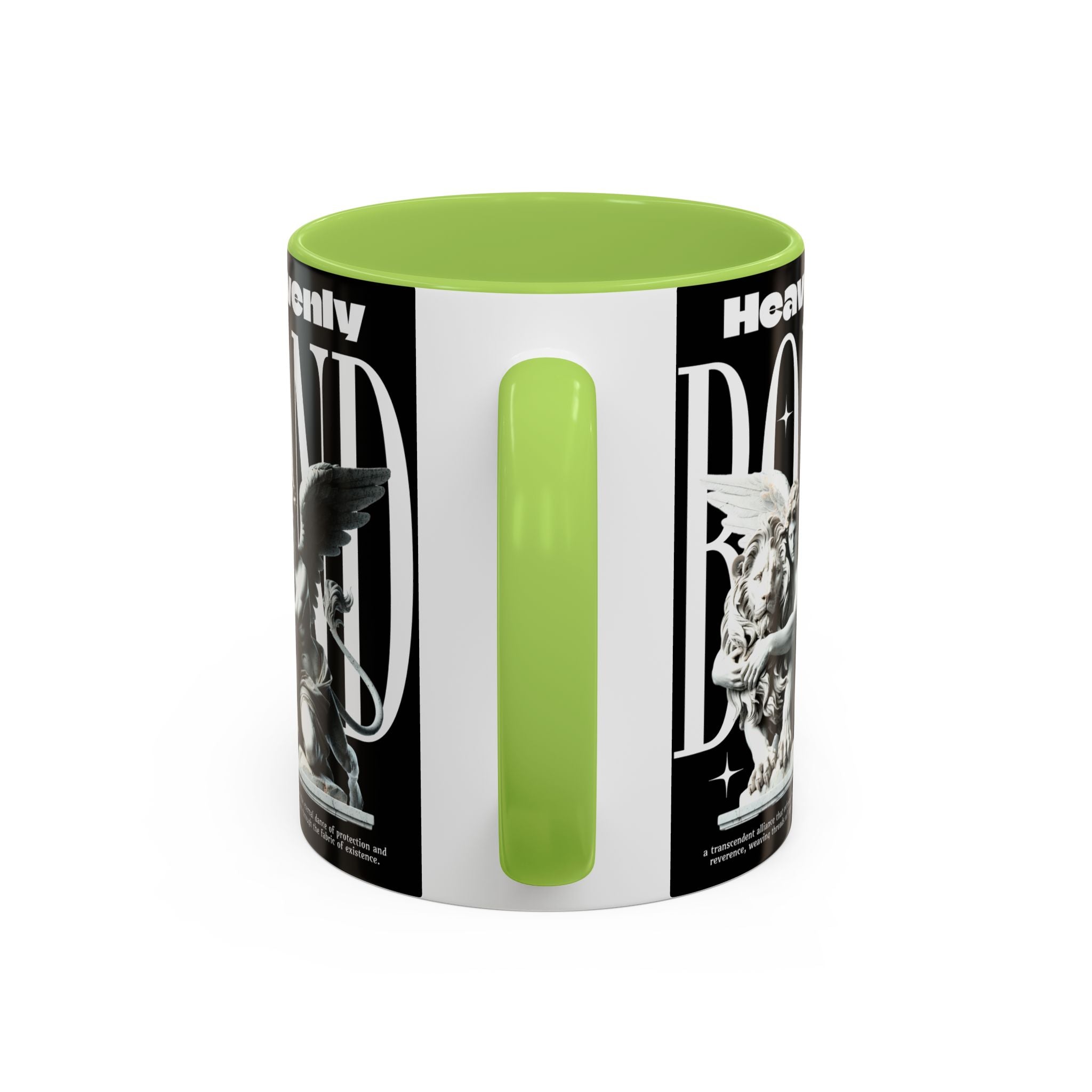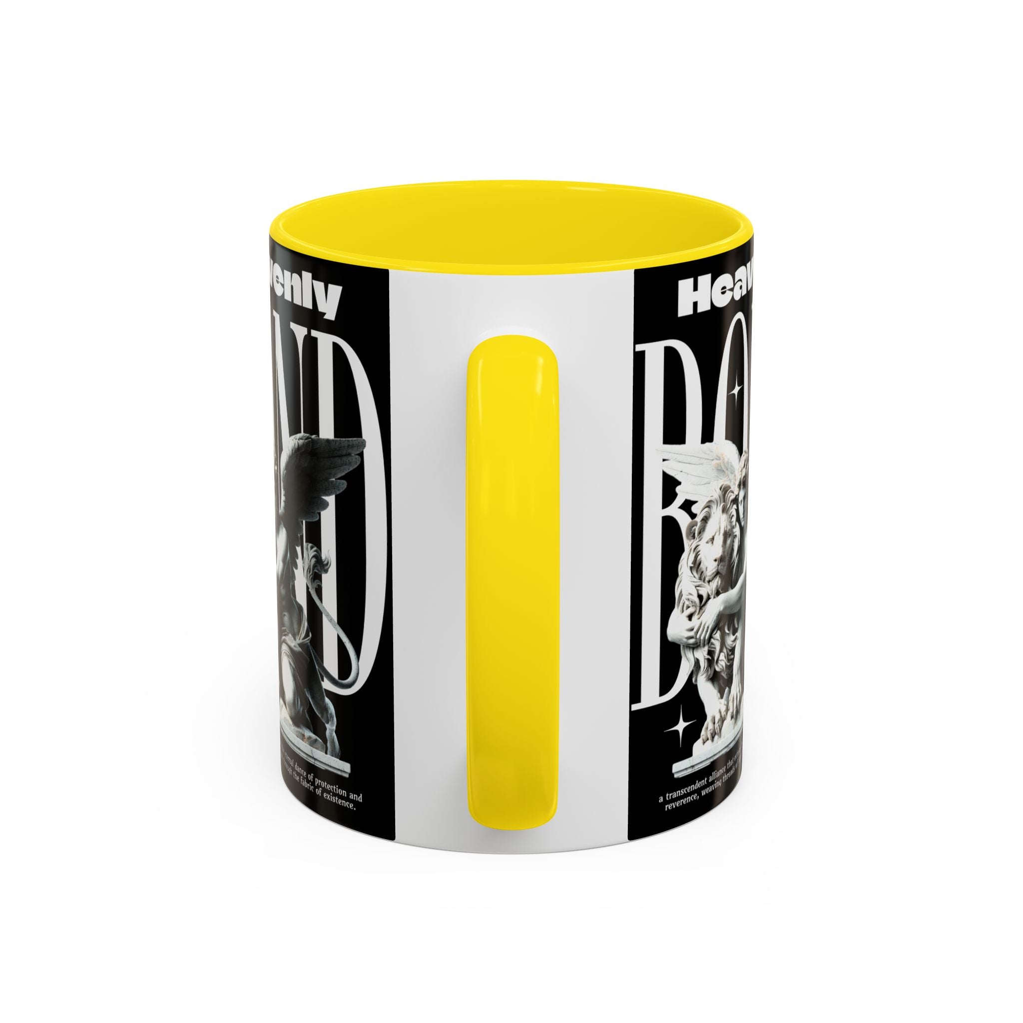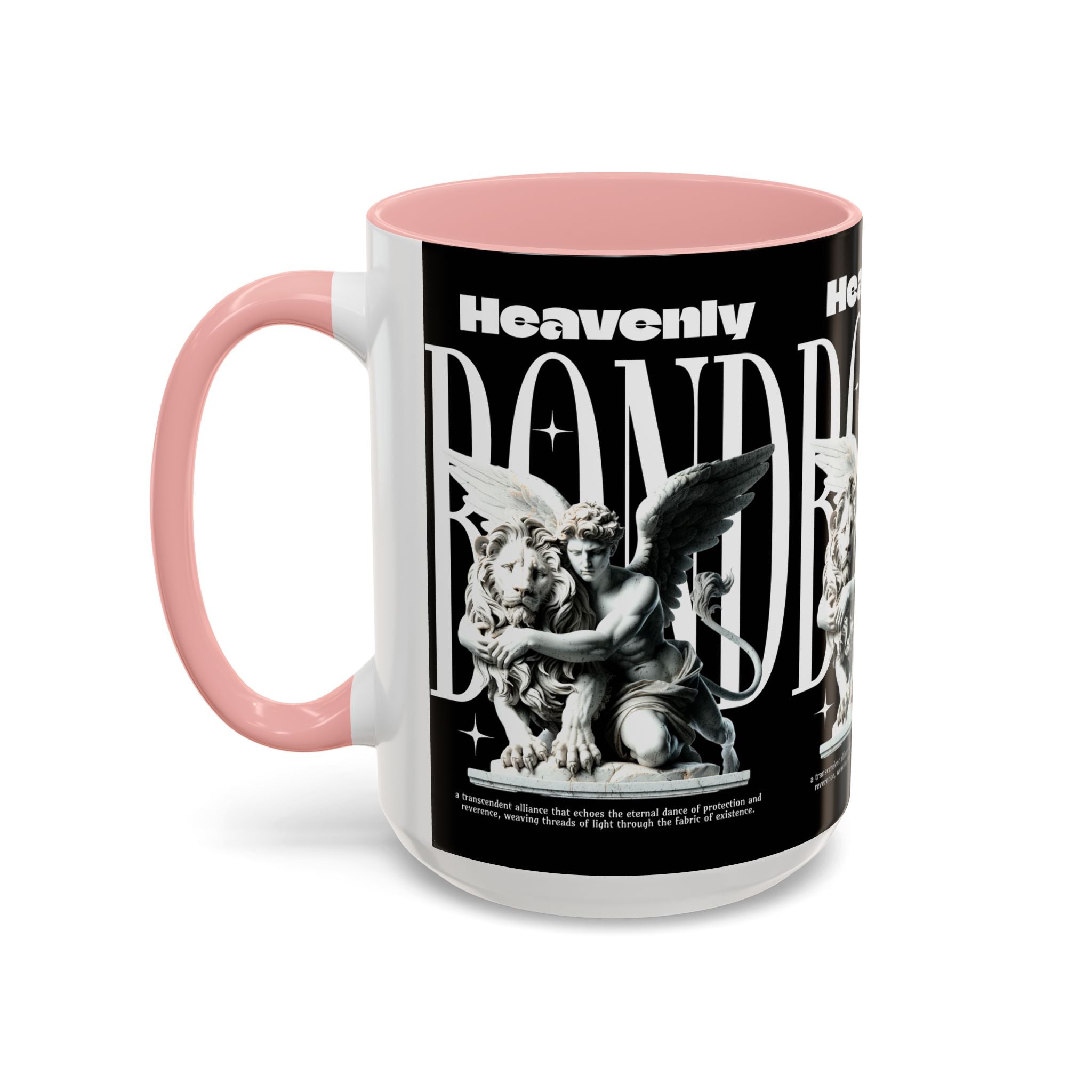 The Heavenly Bond Accent Coffee Mug (11oz & 15oz) is a daily reminder of protection, courage, and unity. Featuring a bold angel embracing a lion statue graphic, this mug symbolizes a divine alliance between strength and spirituality, turning every sip into a moment of reflection and power.