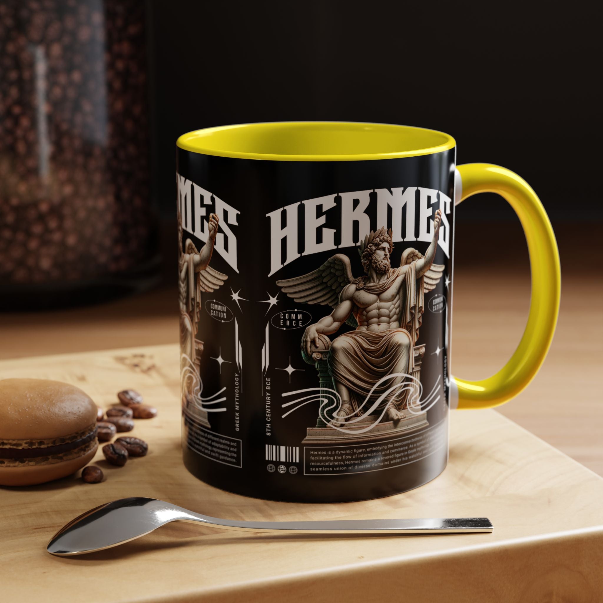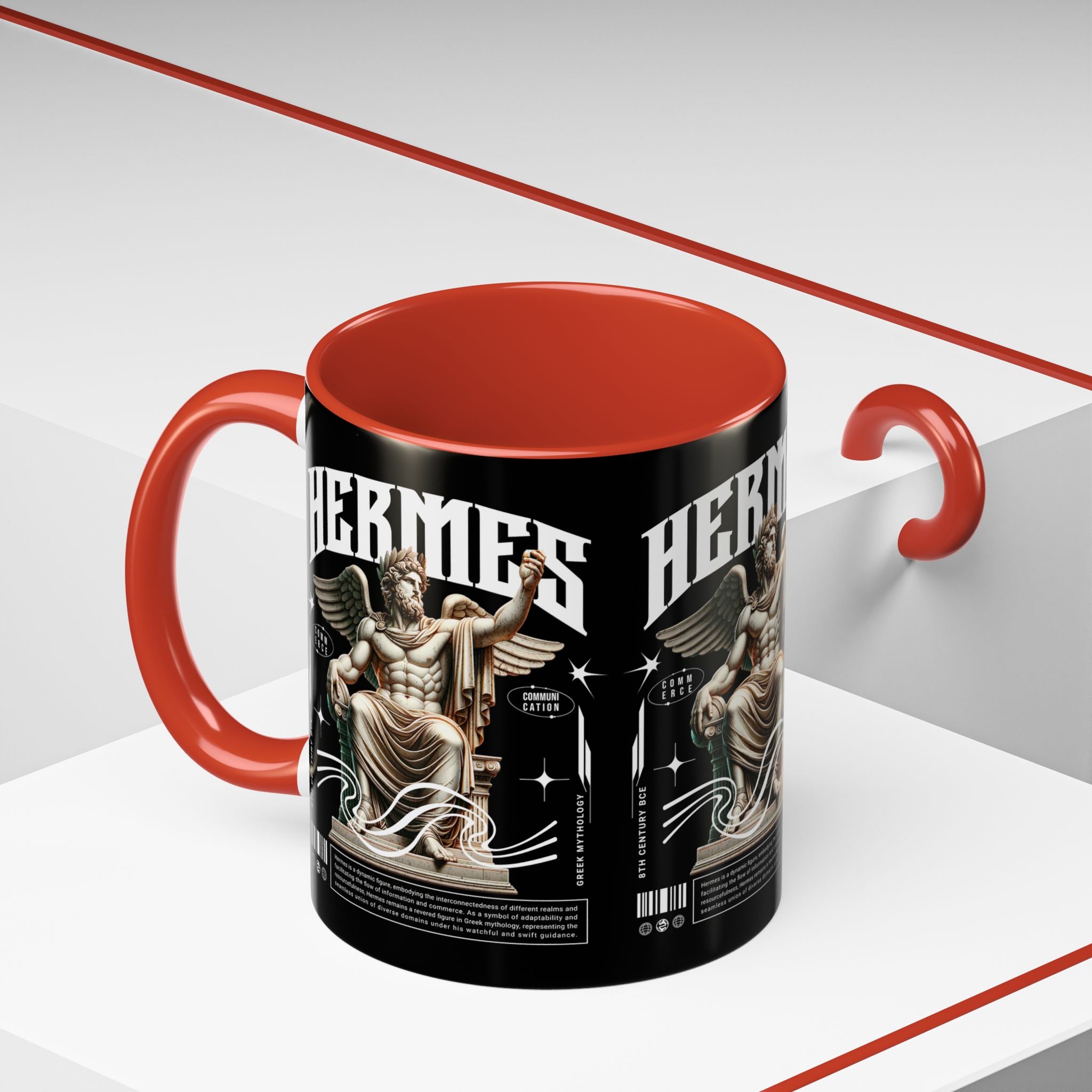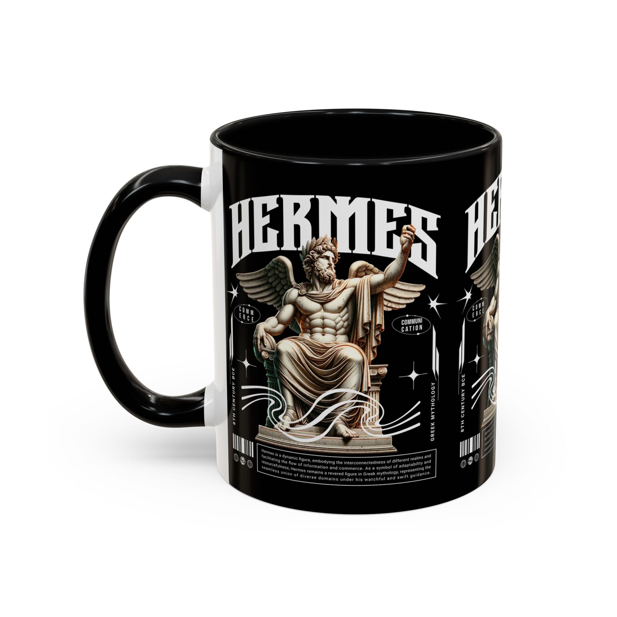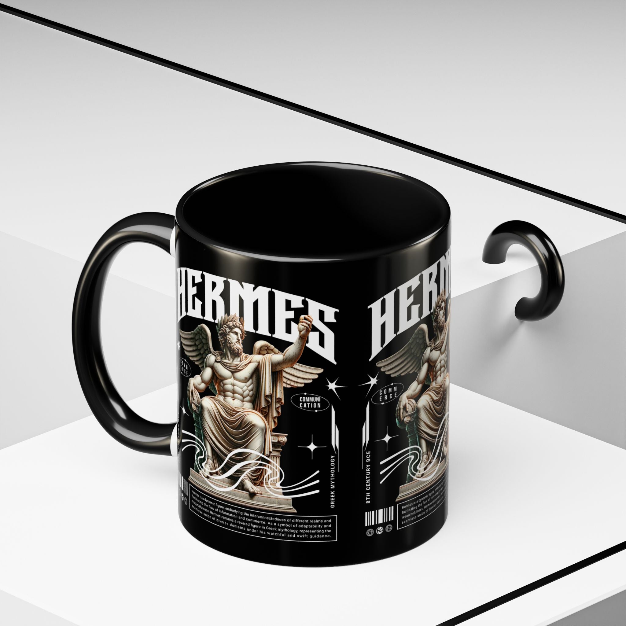 Channel the wisdom and power of Greek mythology with the Hermes Accent Coffee Mug. Featuring the winged god Hermes, the divine messenger of commerce, communication, and speed, this striking mug transforms every sip into a moment of ancient inspiration.