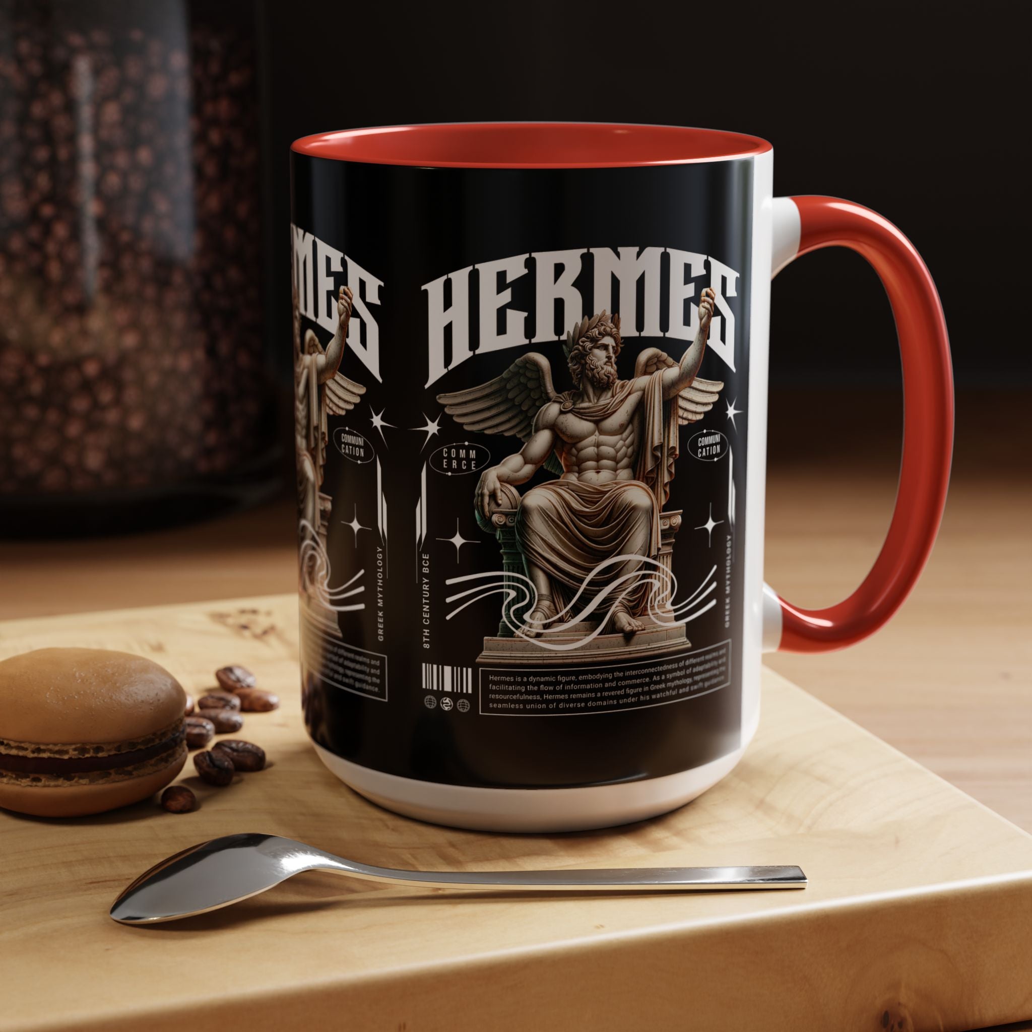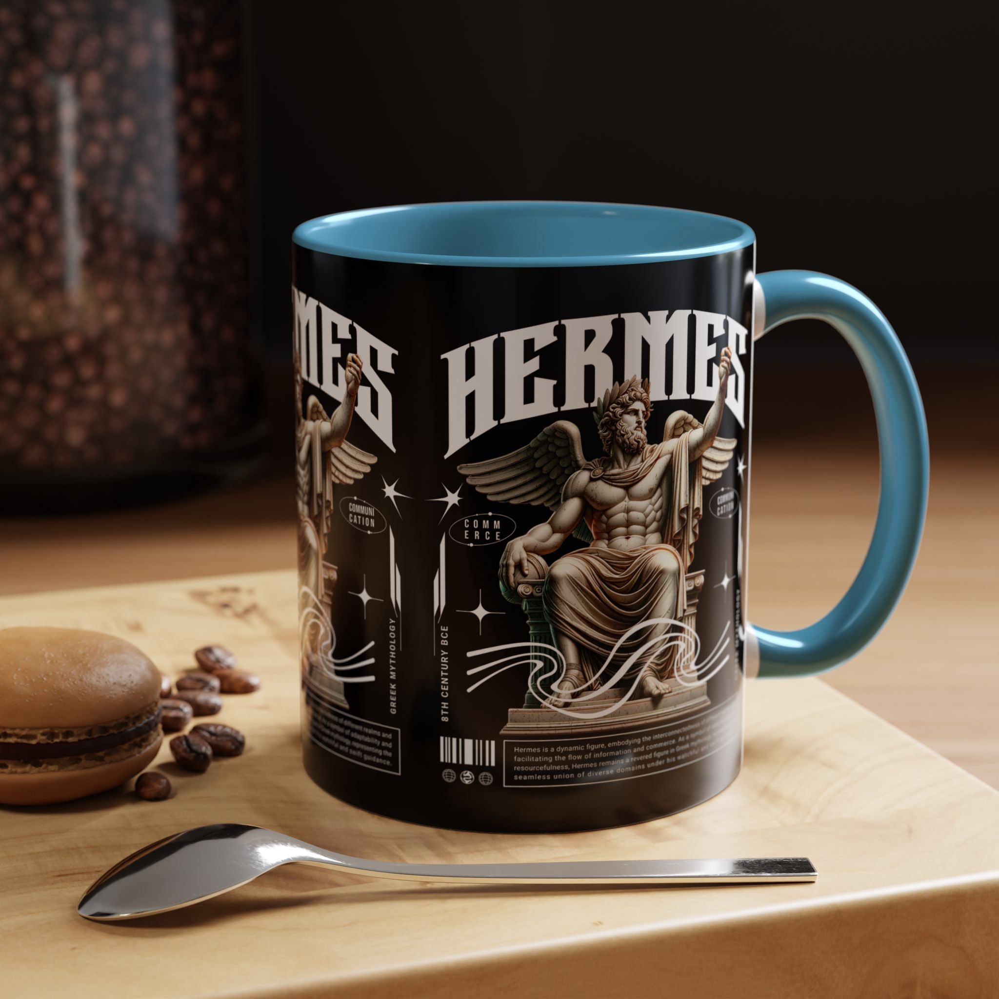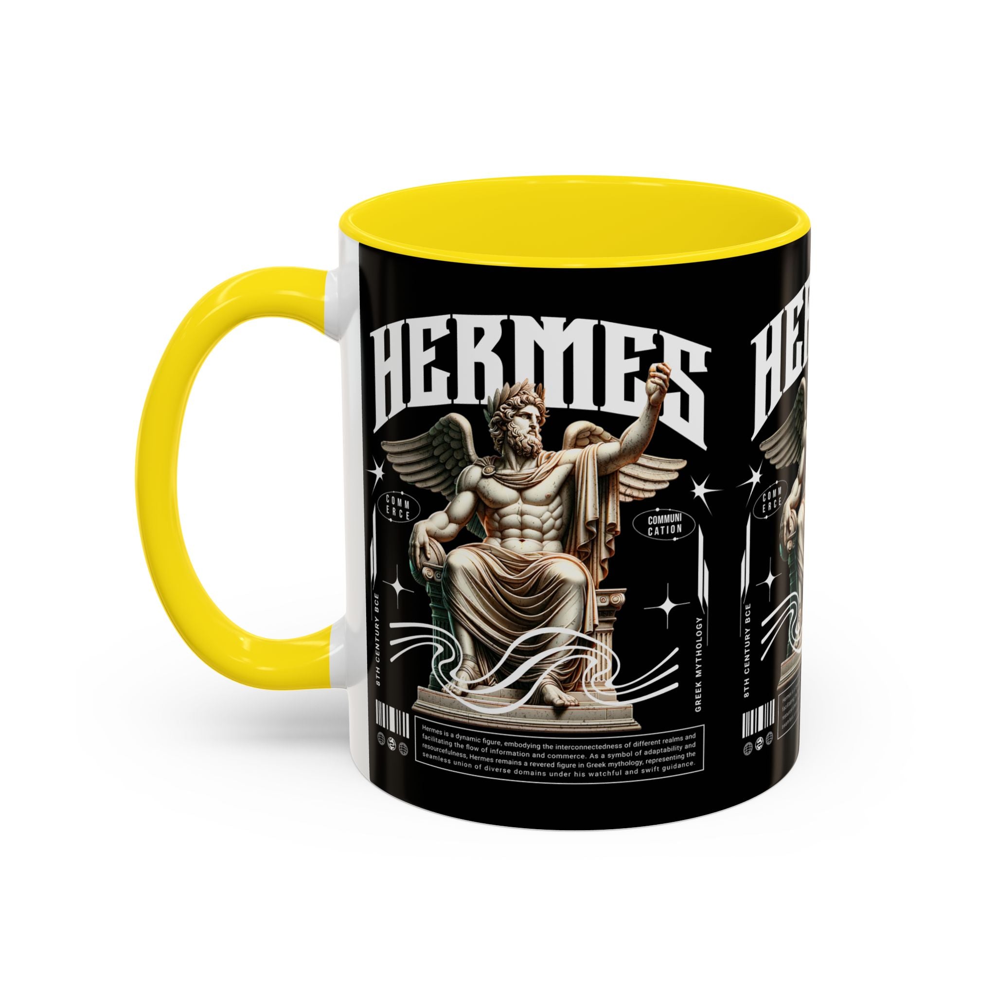 Channel the wisdom and power of Greek mythology with the Hermes Accent Coffee Mug. Featuring the winged god Hermes, the divine messenger of commerce, communication, and speed, this striking mug transforms every sip into a moment of ancient inspiration.