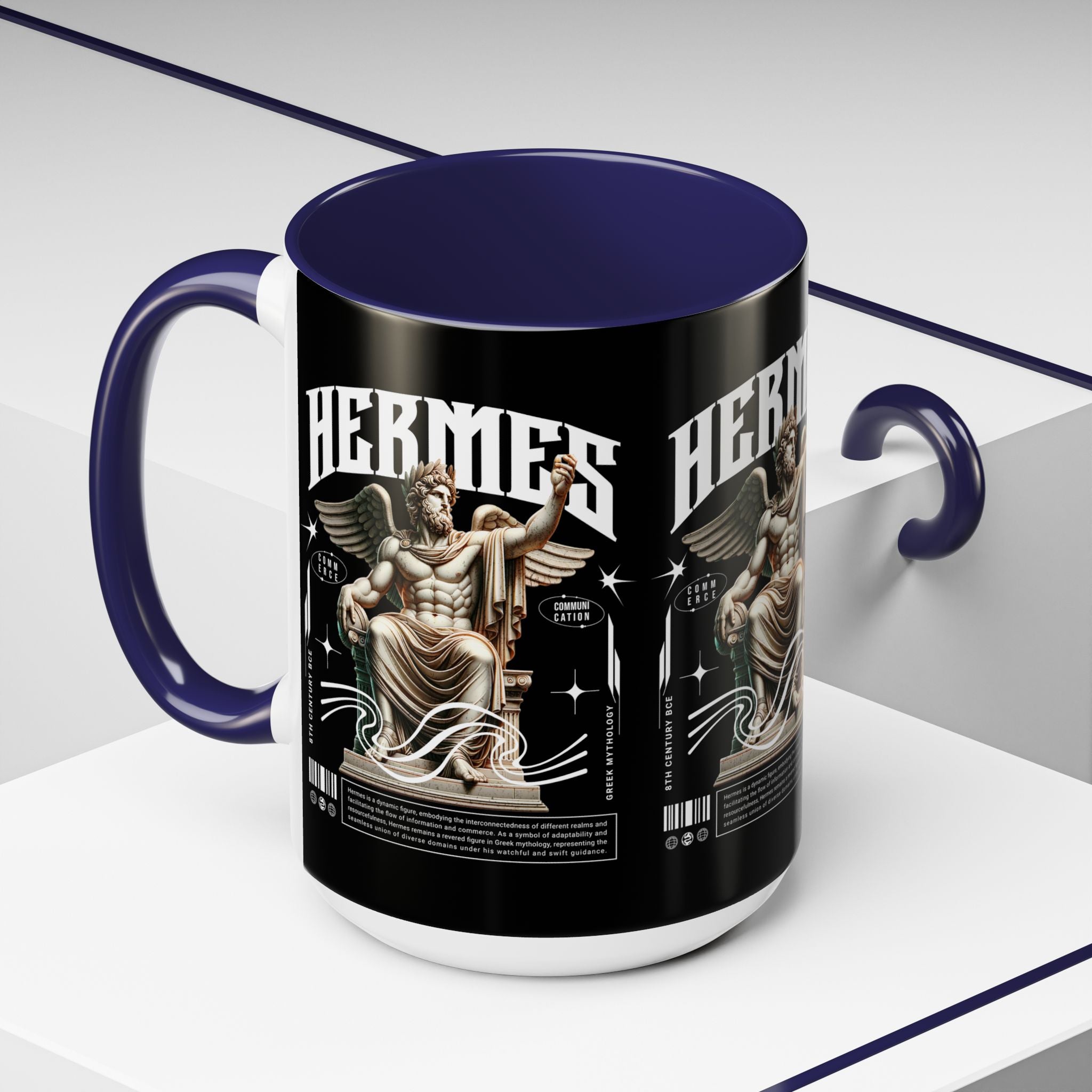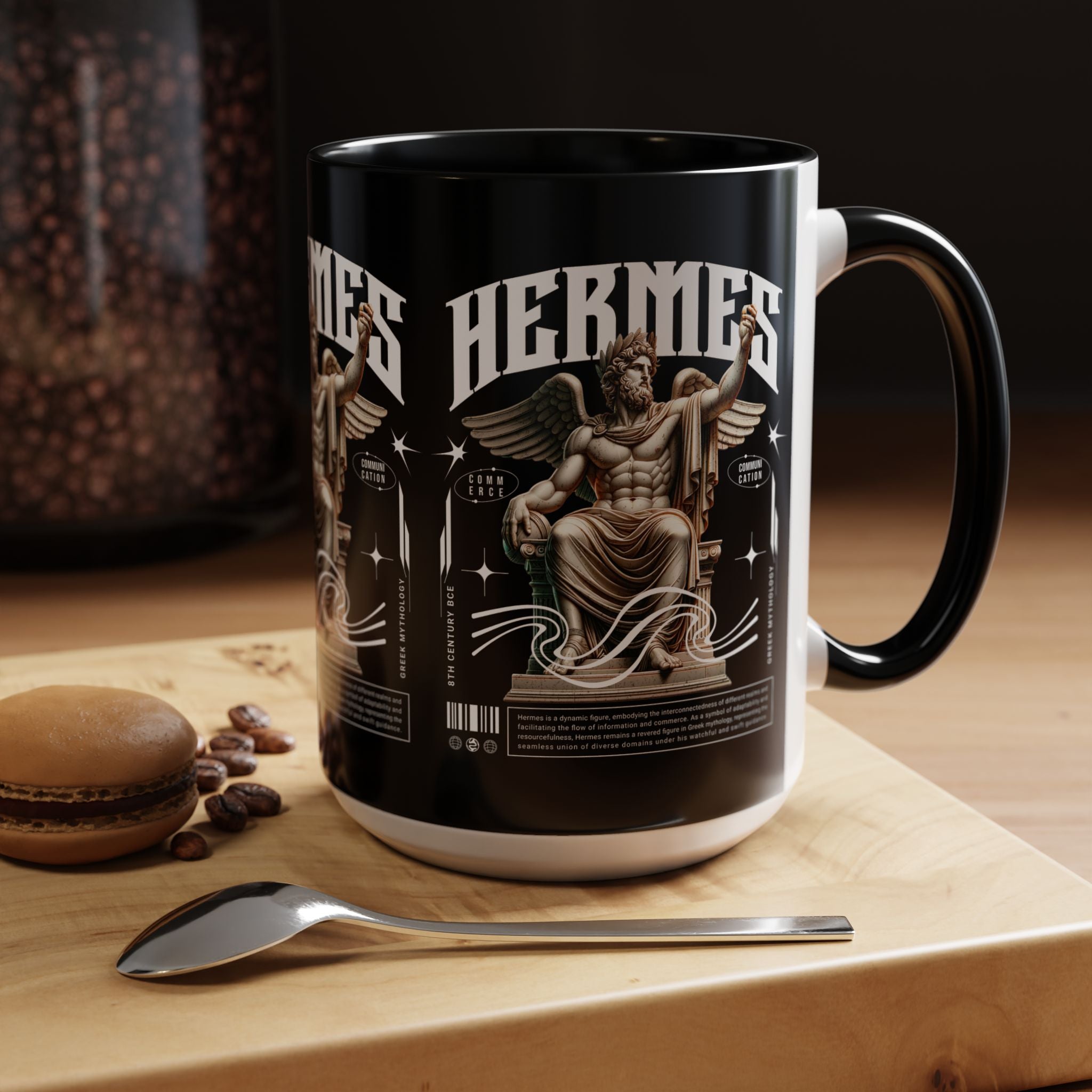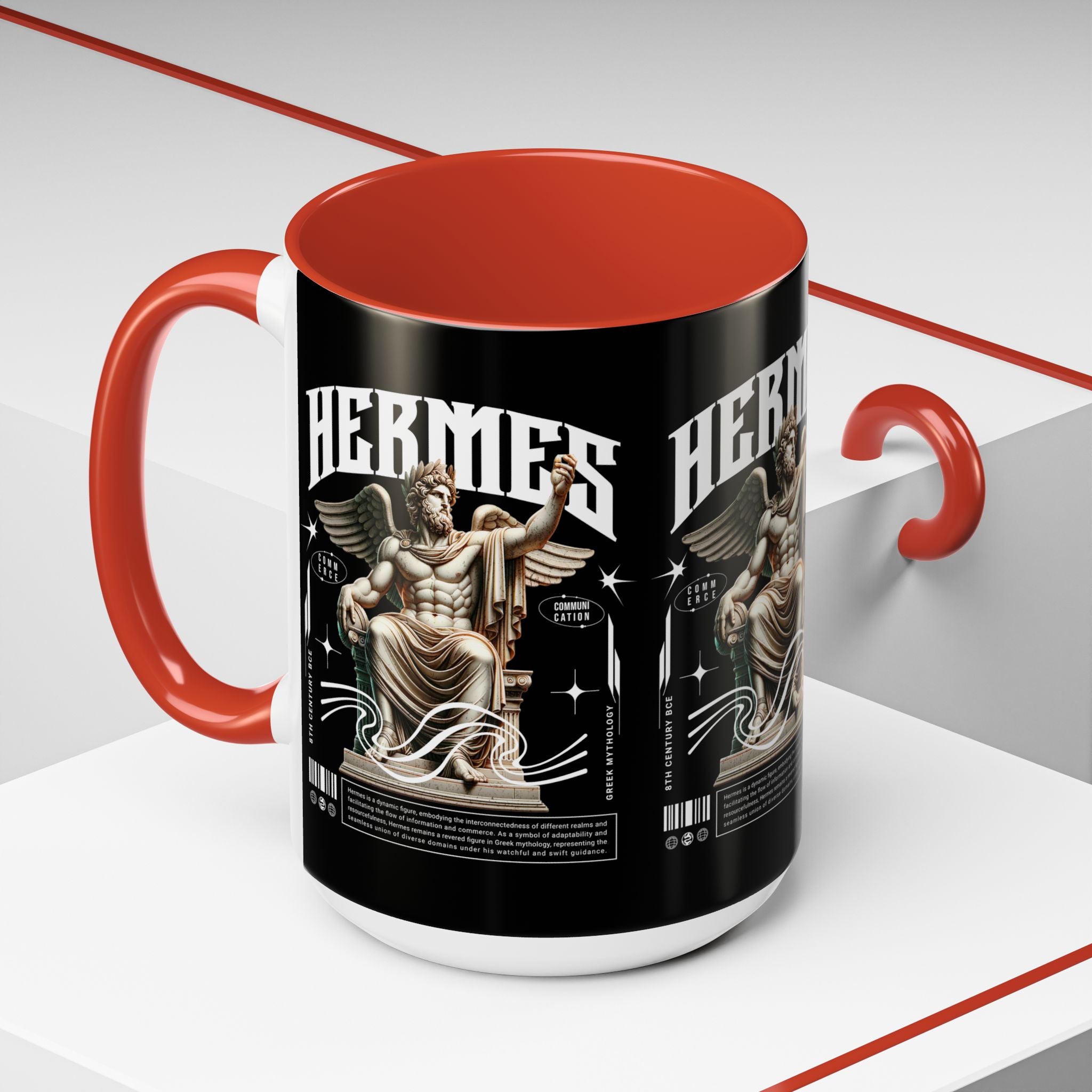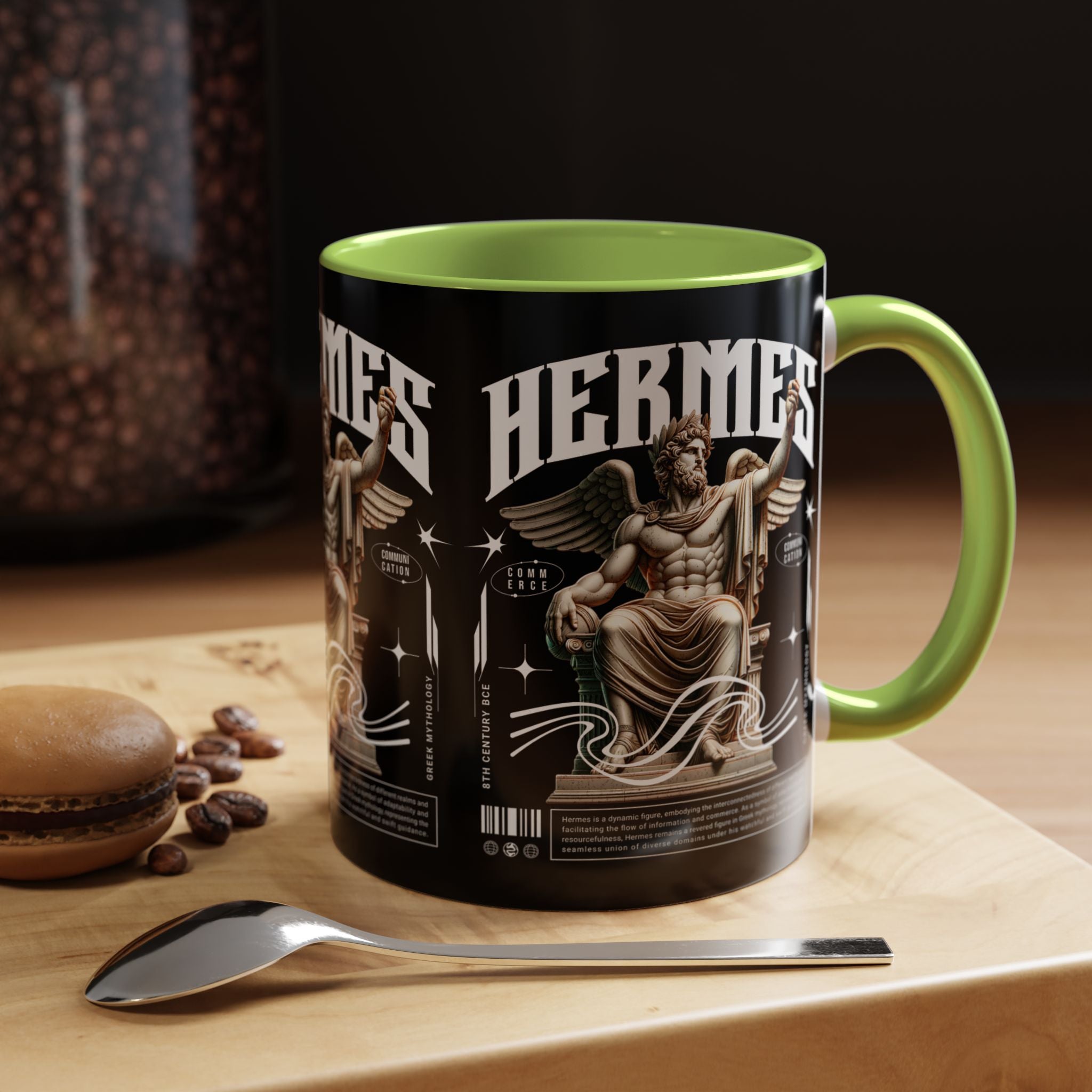 Channel the wisdom and power of Greek mythology with the Hermes Accent Coffee Mug. Featuring the winged god Hermes, the divine messenger of commerce, communication, and speed, this striking mug transforms every sip into a moment of ancient inspiration.