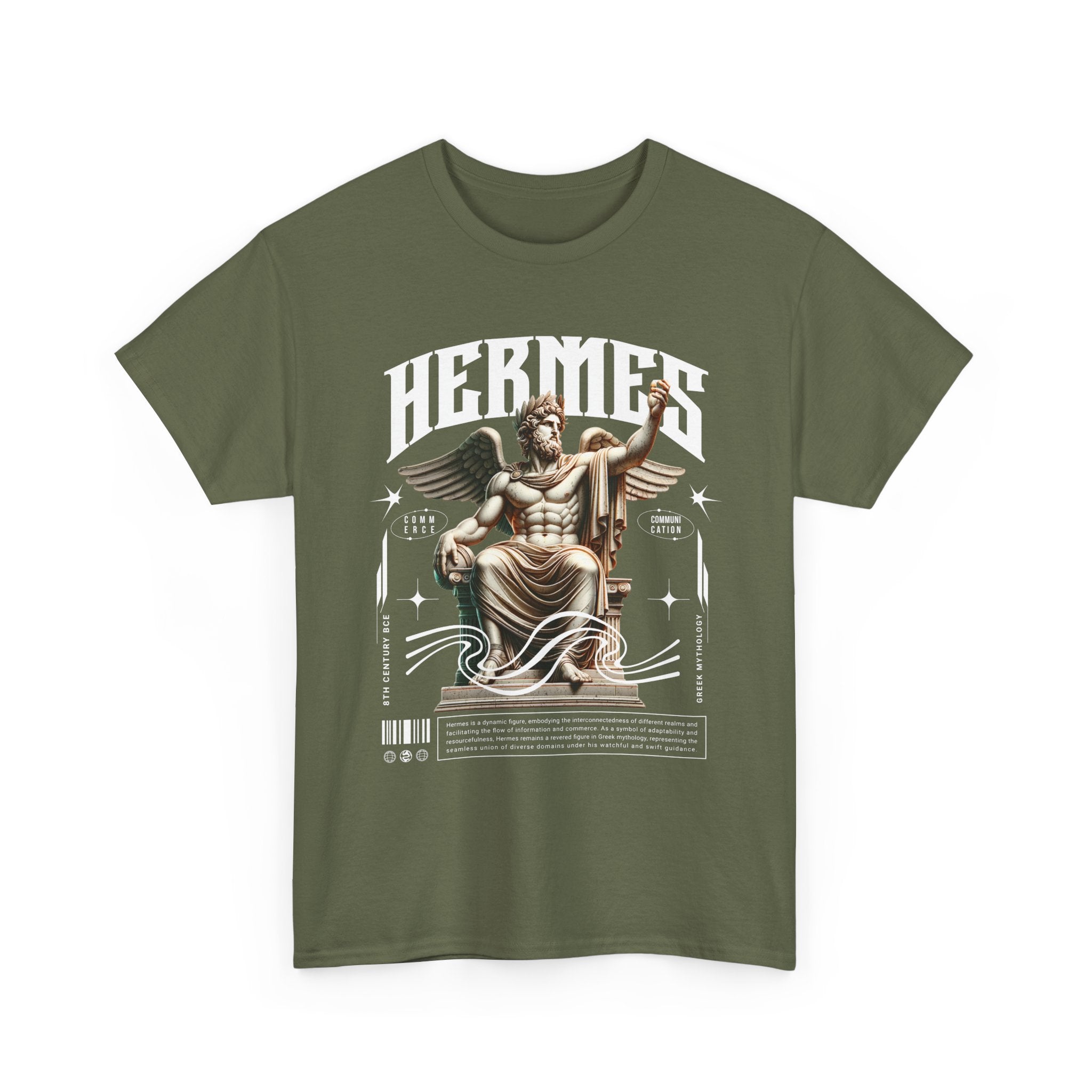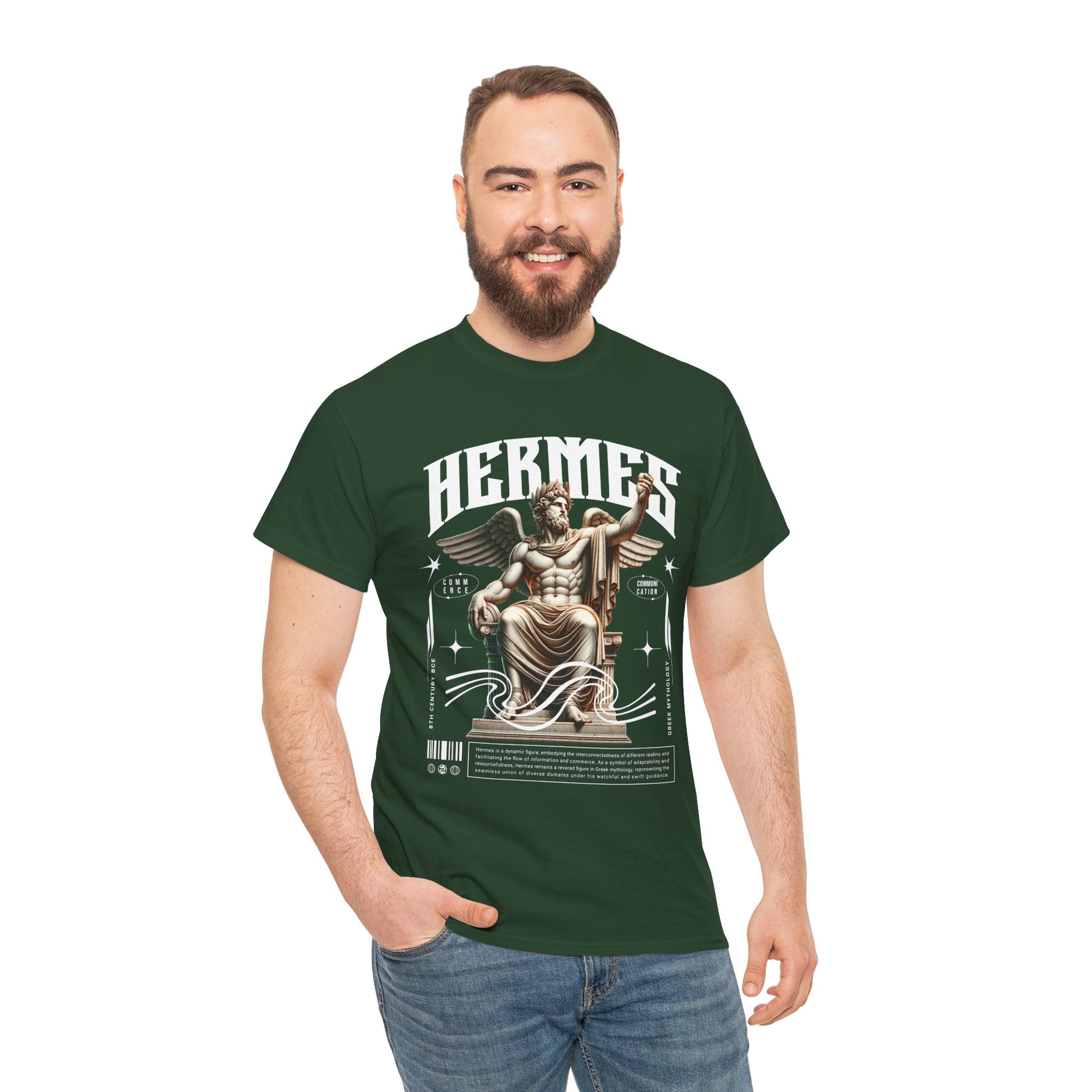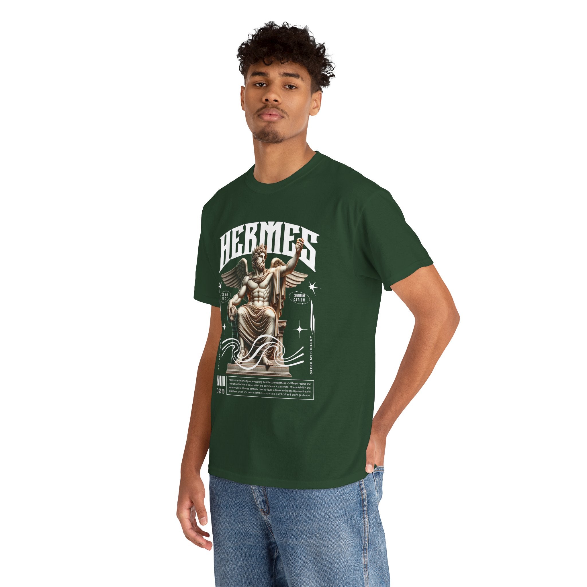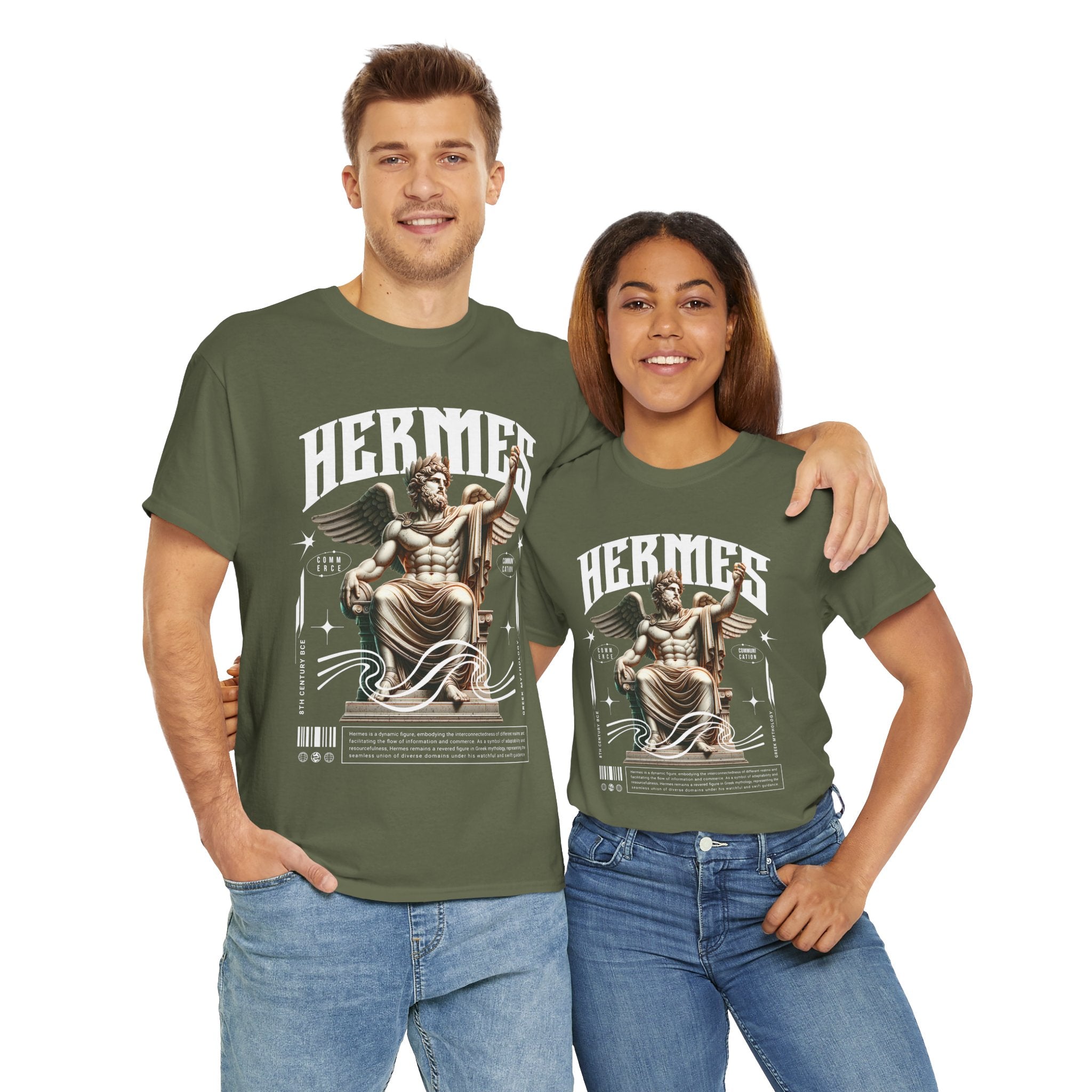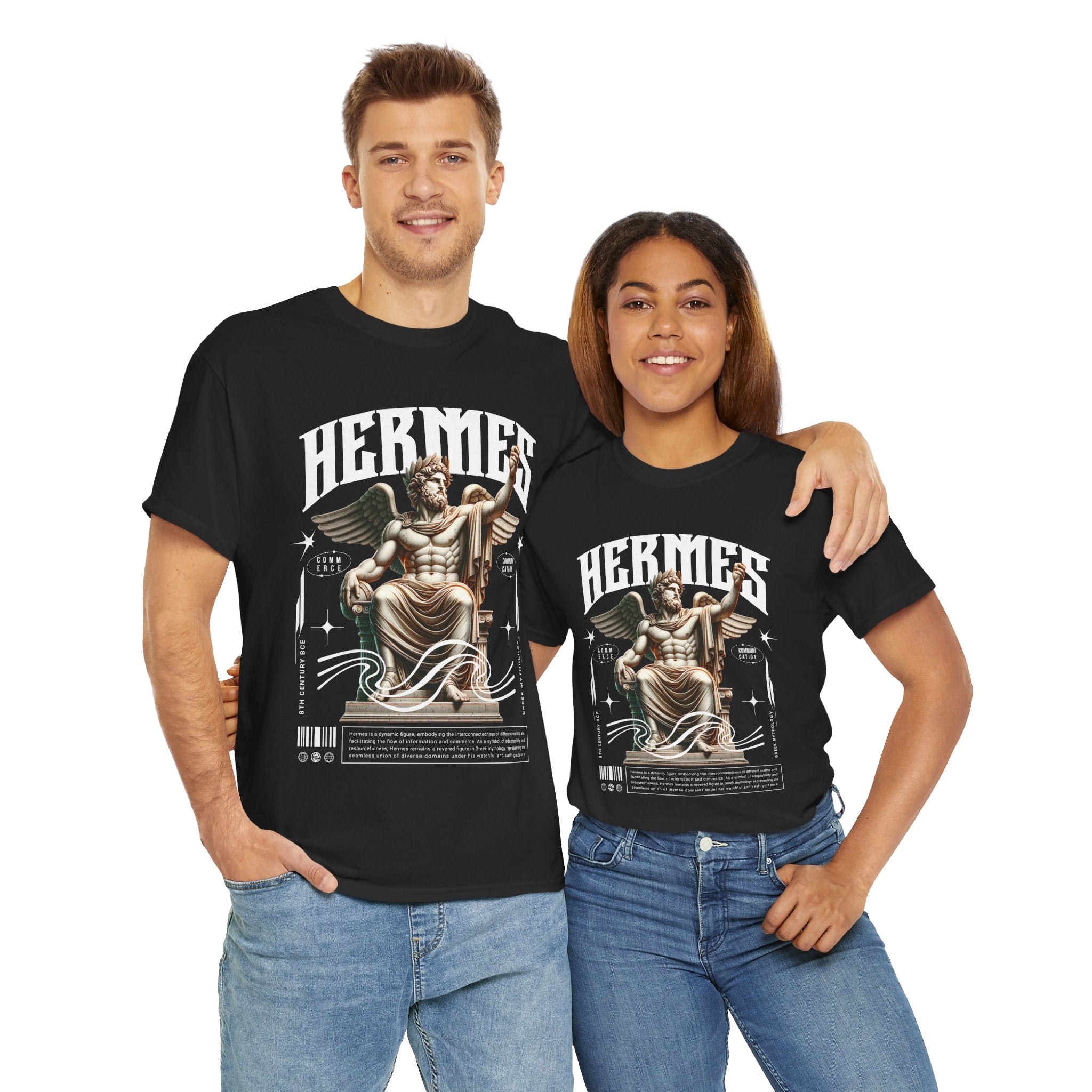 Step into mythology with the Hermes Greek Mythology Unisex Heavy Cotton Tee. This striking design showcases Hermes, the Greek god of speed, communication, and travel, bringing an ancient symbol of wisdom and energy into modern streetwear.